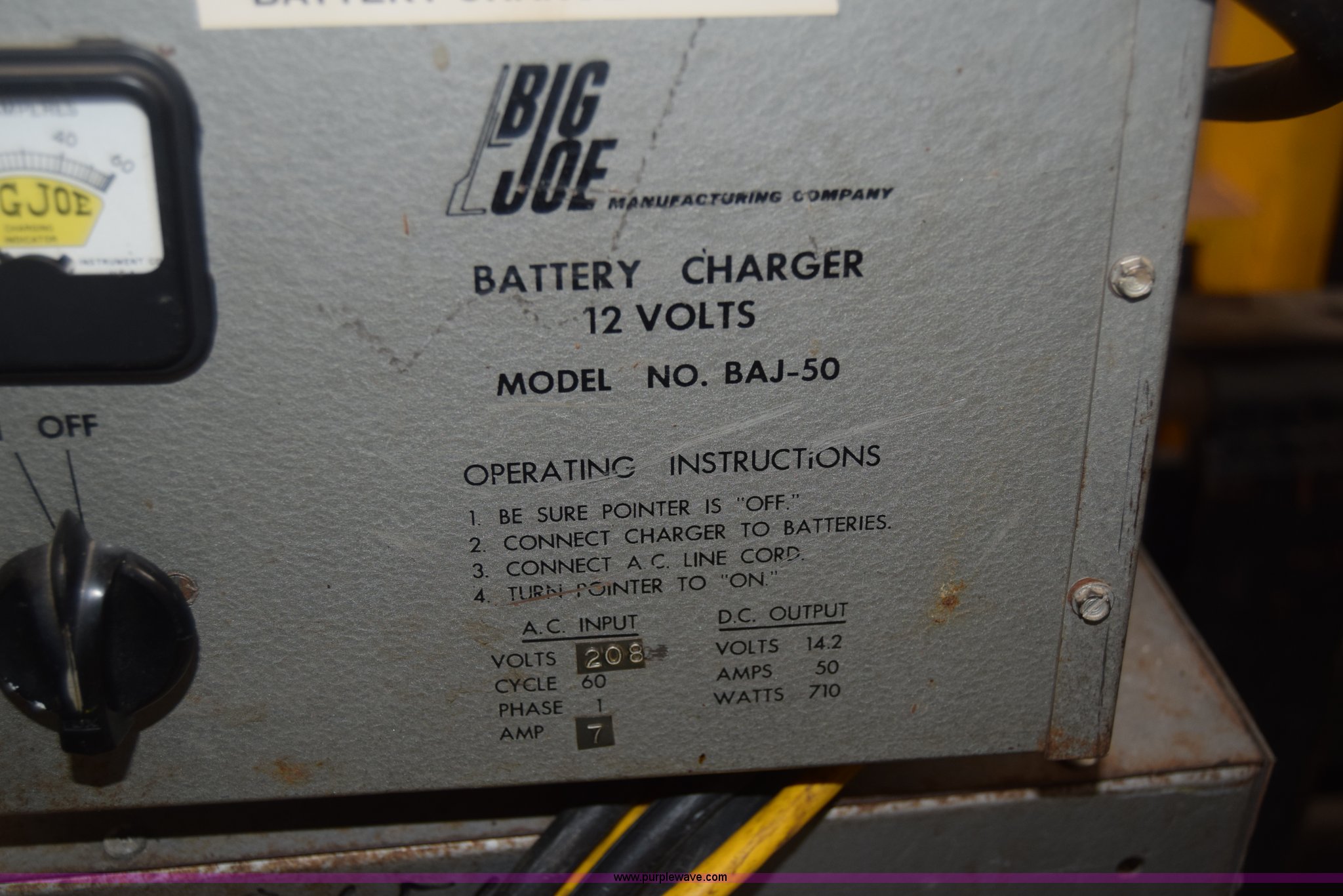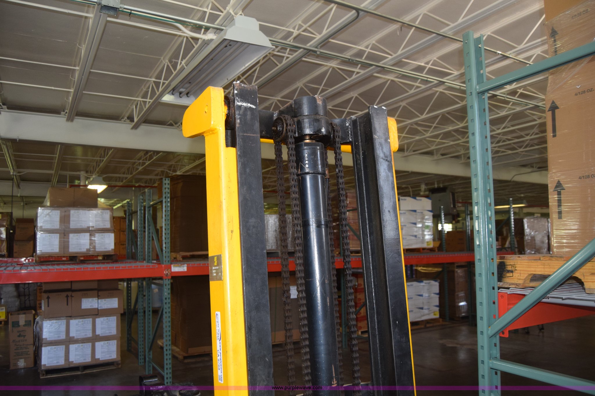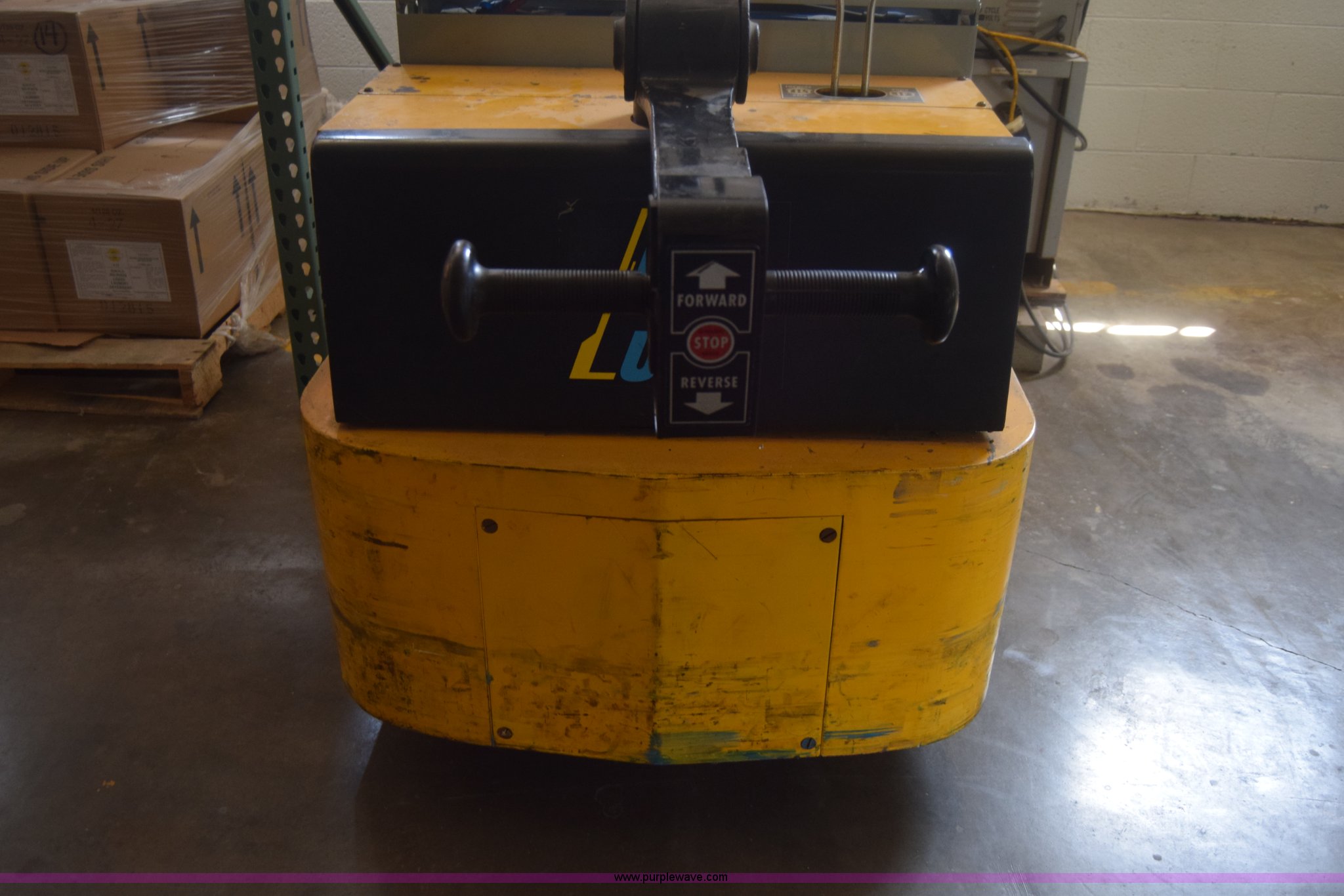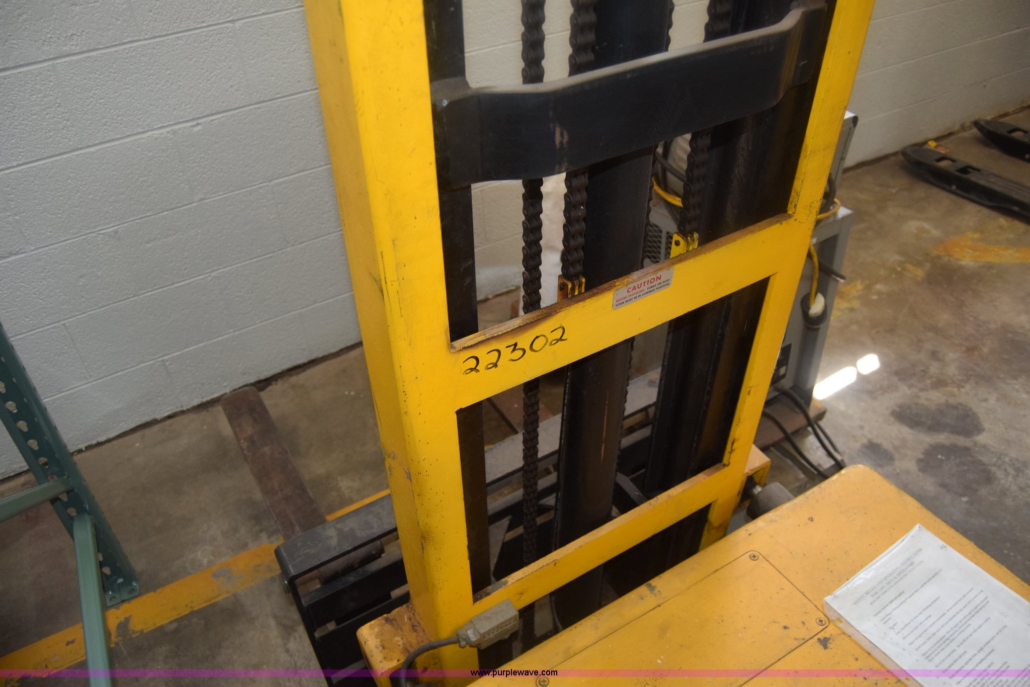 Purple Wave is selling a used Warehouse Forklift in Kansas. This item is a Big Joe forklift with the following: Model PDC-20-124, Electric motor, 2,000 lbs capacity, 36" forks, Charger, Batteries need replaced, Serial 60272