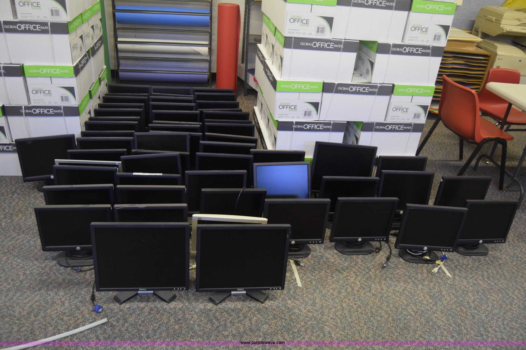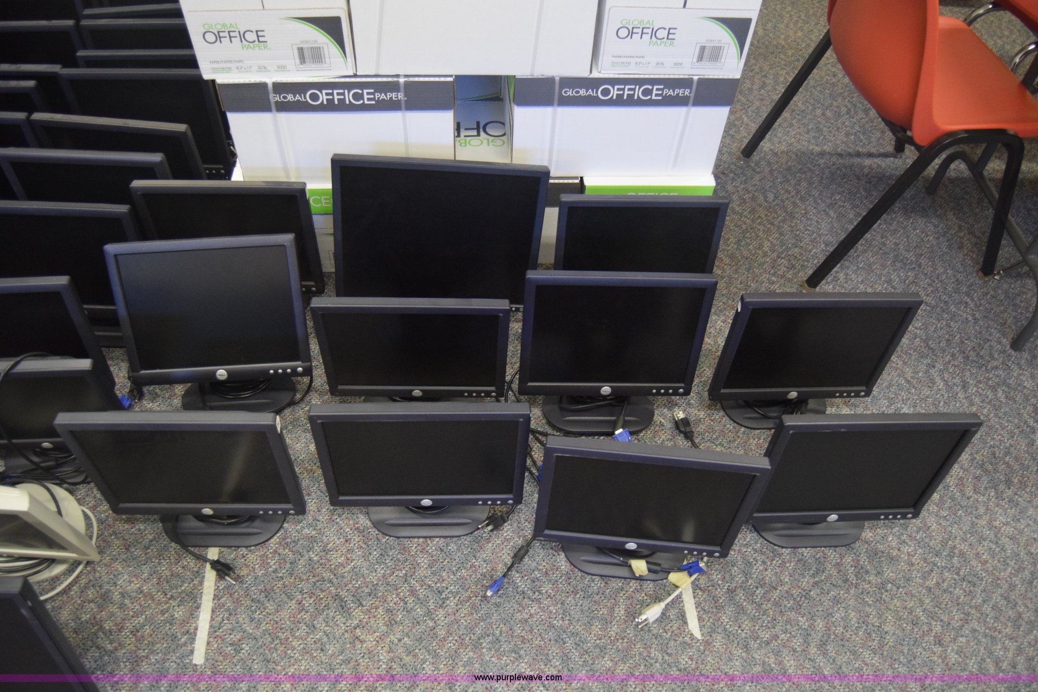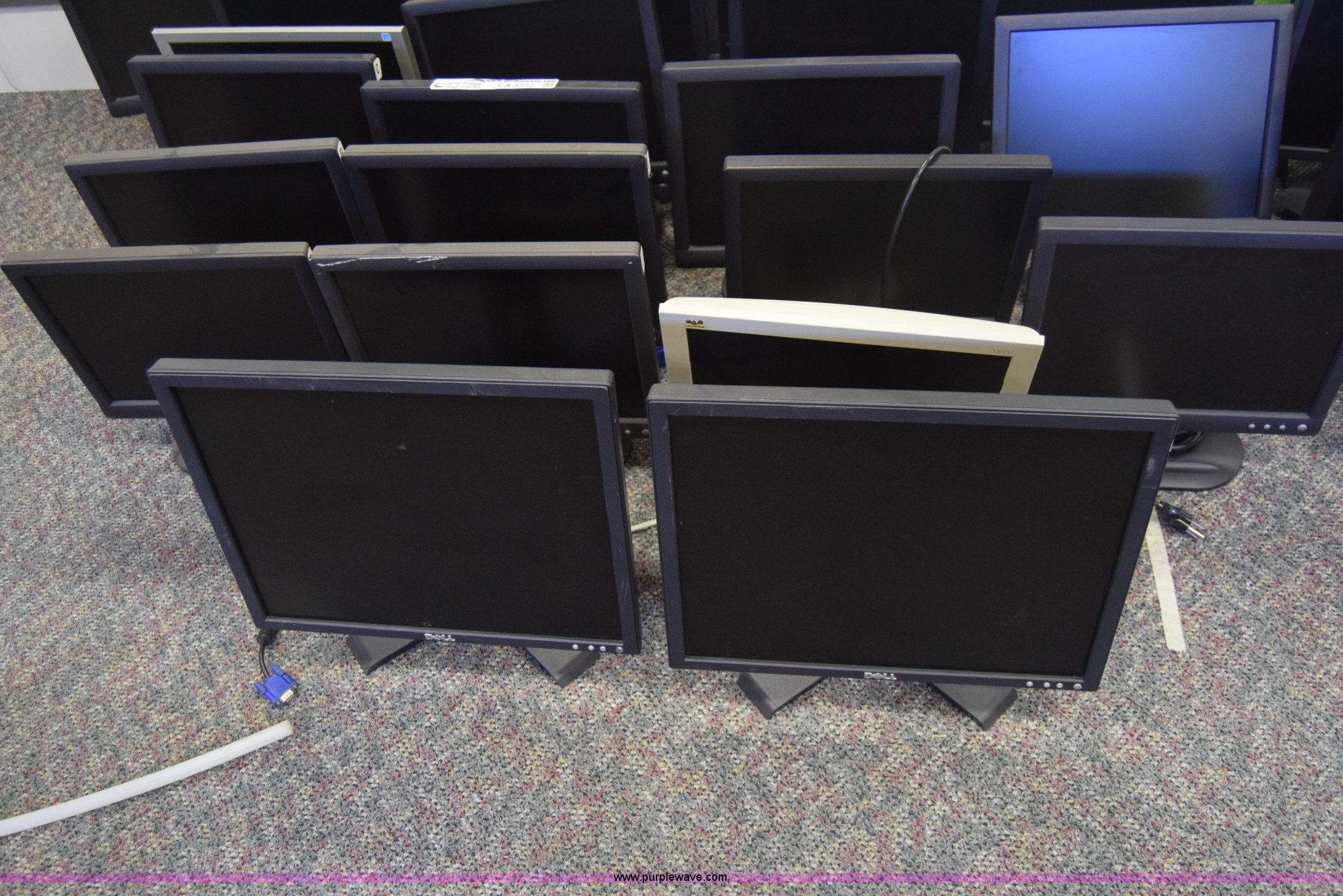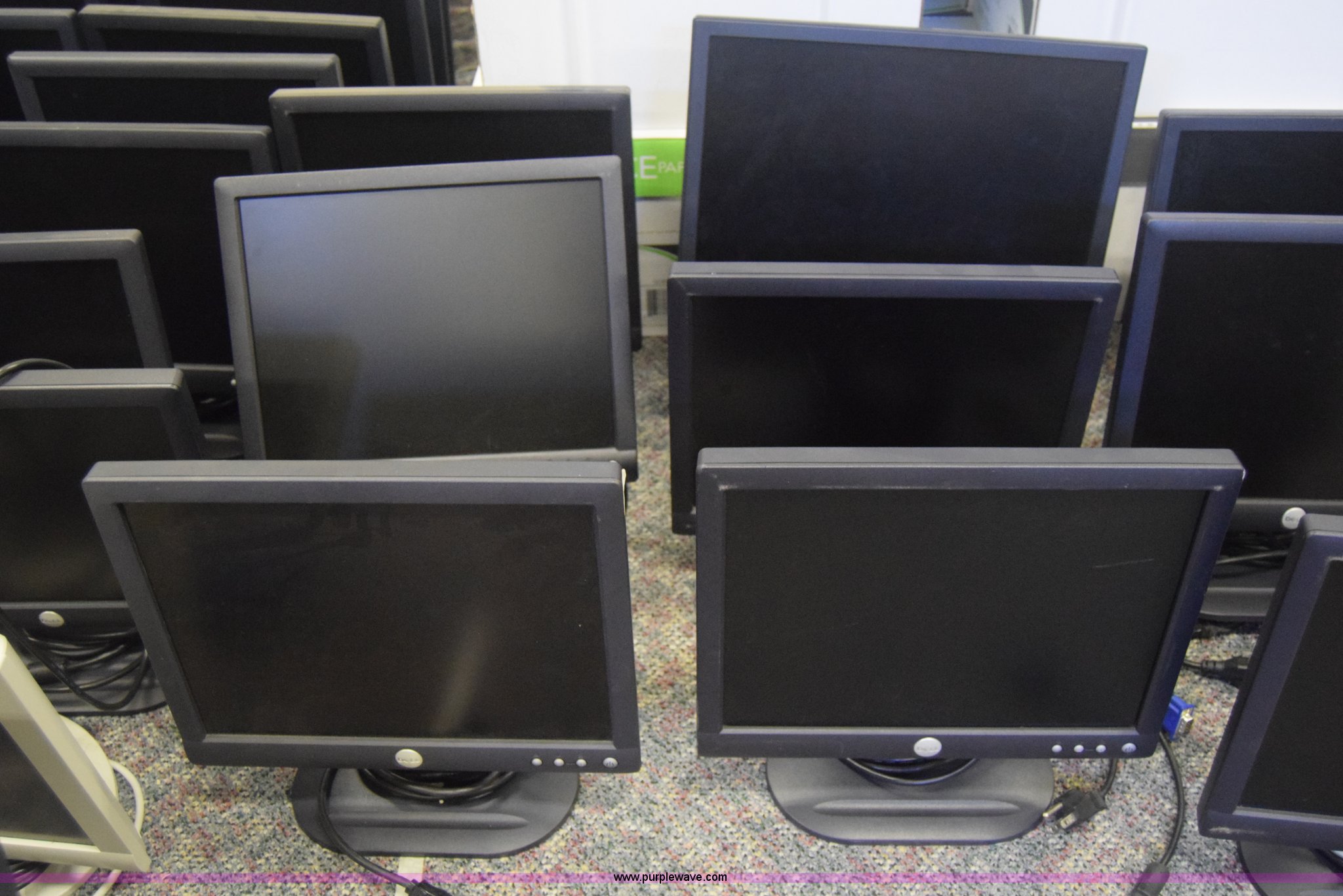 Purple Wave is selling a used Computers in Kansas. This item is a (60) computer monitors with the following: Various makes and models, Most are Dell 15", (2) keyboards