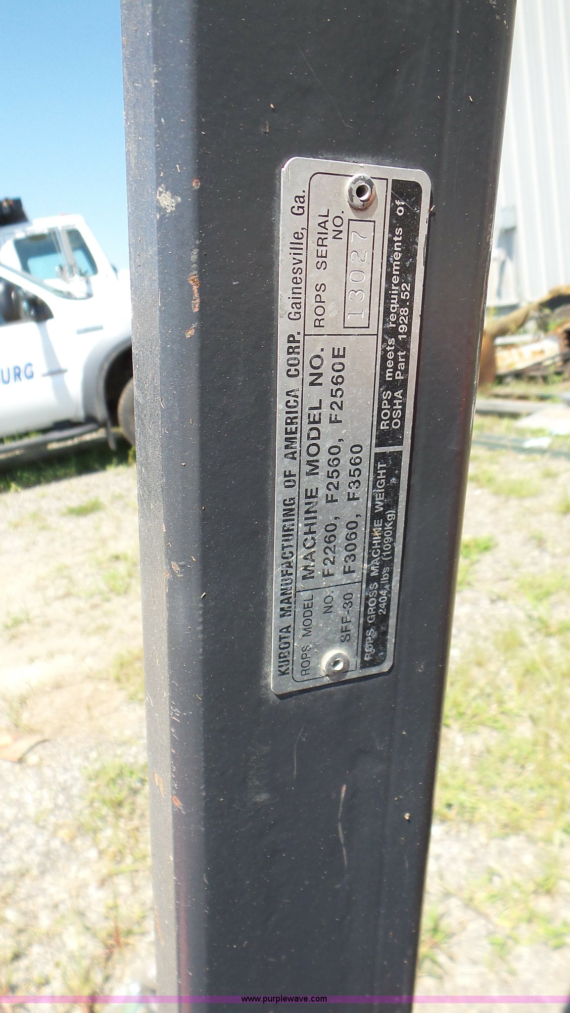 Purple Wave is selling a used Commercial Turf Mower in Kansas. This item is a Kubota F3060 lawn mower with the following: 2,934 hours on meter, 72" cut, Kubota V1305 four cylinder diesel engine, 23x10.50-12 front tires, 18x6.50-8 rear tires, Hydraulic fluid leak, Flat tire will be fixed prior to auction, Ignition issues, will start, Serial 20363
