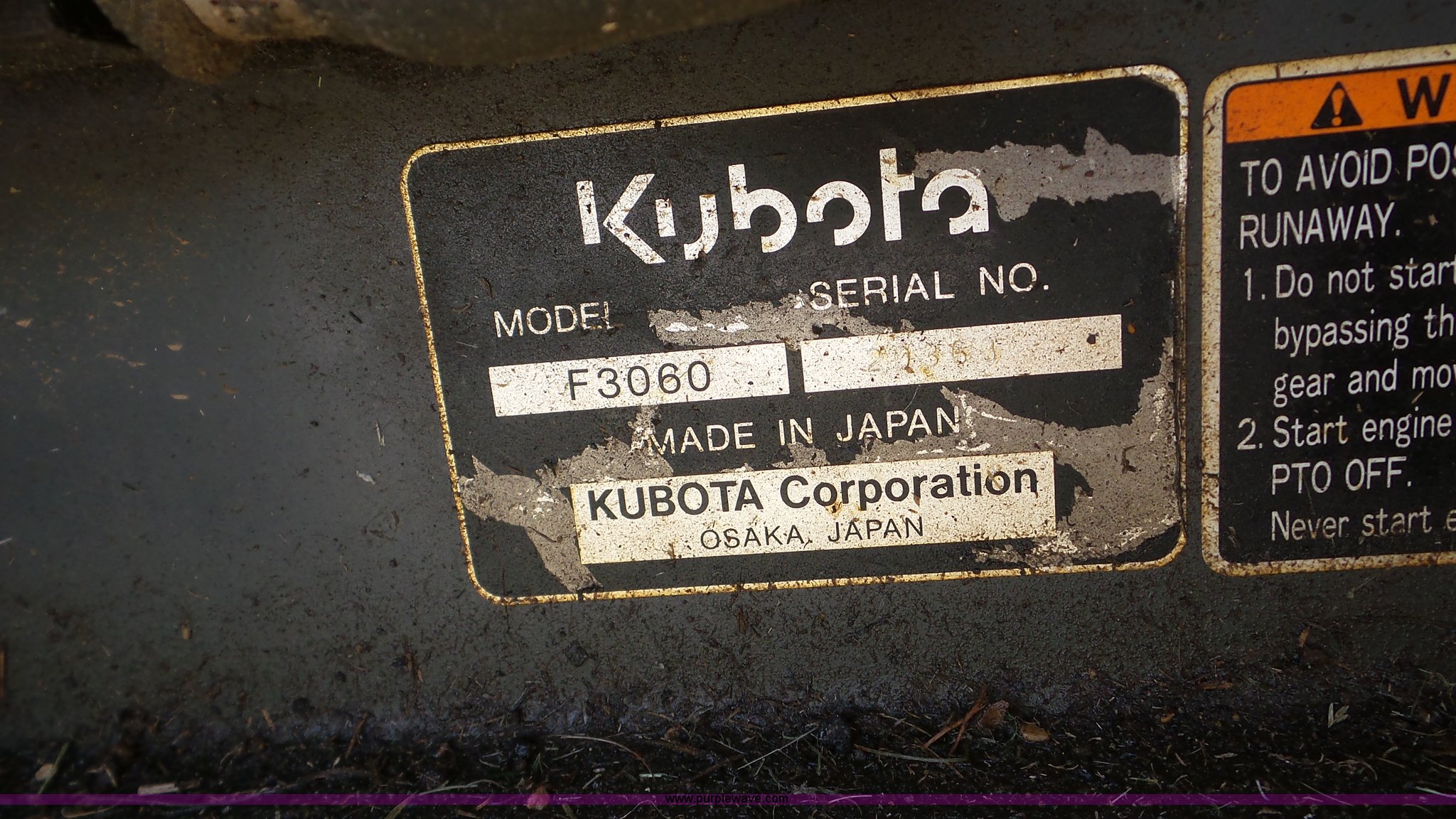 Kubota F3060 lawn mower has sold in Louisburg, Kansas for $3190. Item DA8762 sold on September 13th, 2016.