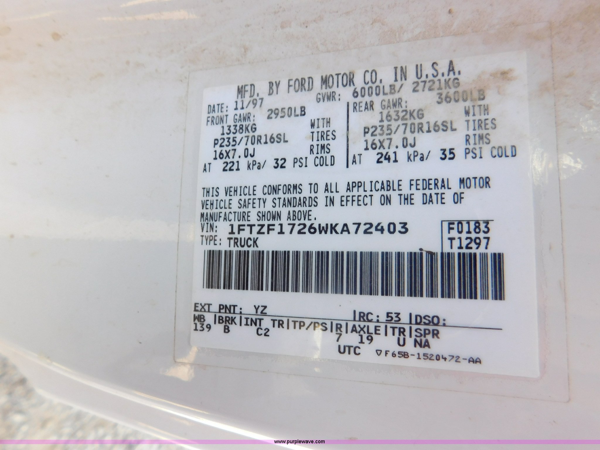 Purple Wave is selling a used 1/2 Ton Pickup or Van in Kansas. This item is a 1998 Ford F150 pickup truck with the following: 100,309 miles on odometer, 4.2L V6 OHV 12V gas engine, Automatic transmission, AC and heat, Non-operational AC, AM/FM, Manual windows and locks, Cloth interior, Long bed, 225/70R16 tires, Seat damage, Decals will be removed prior to auction, Transmission issues, unit must be put in neutral to shift into gear