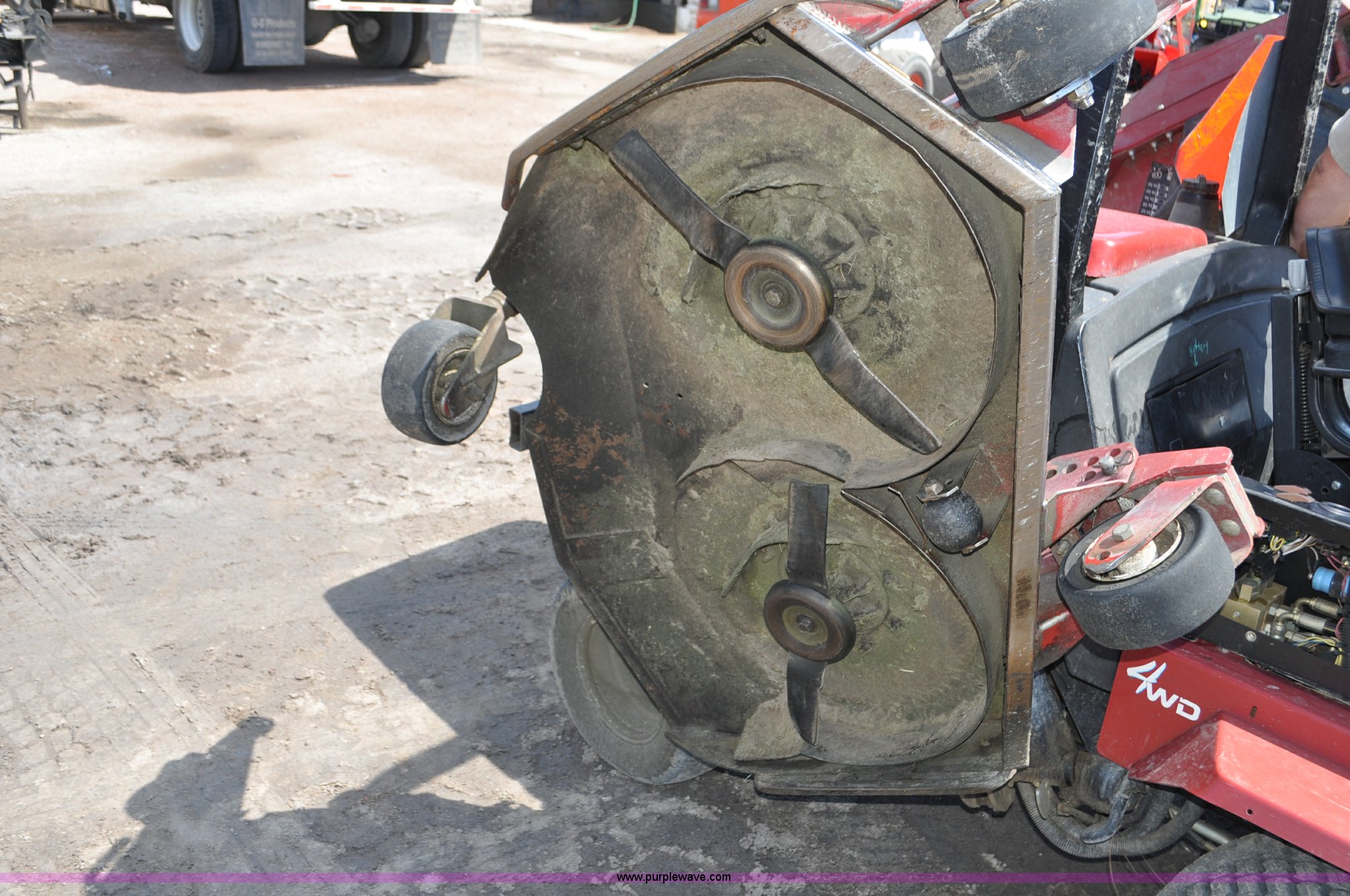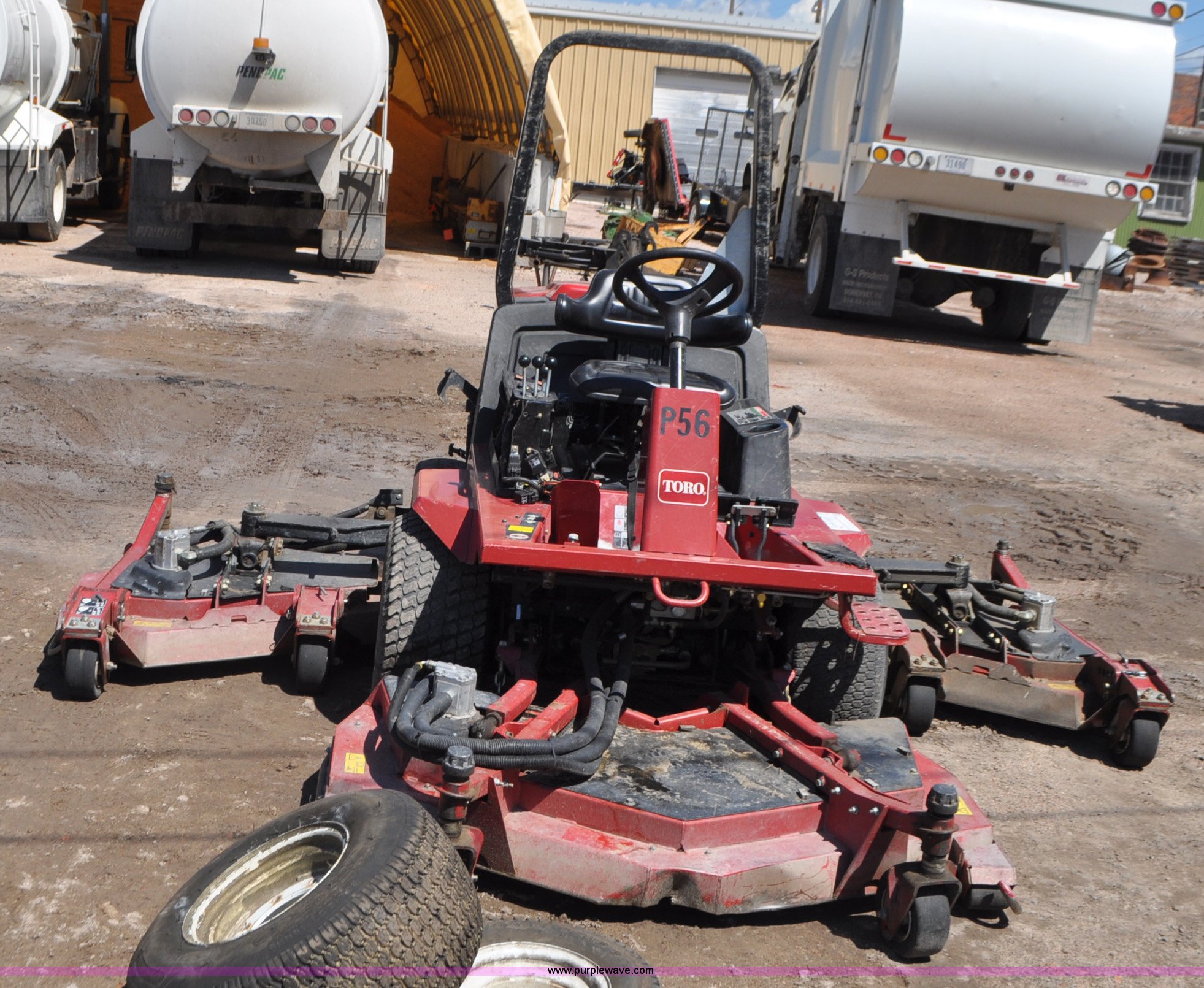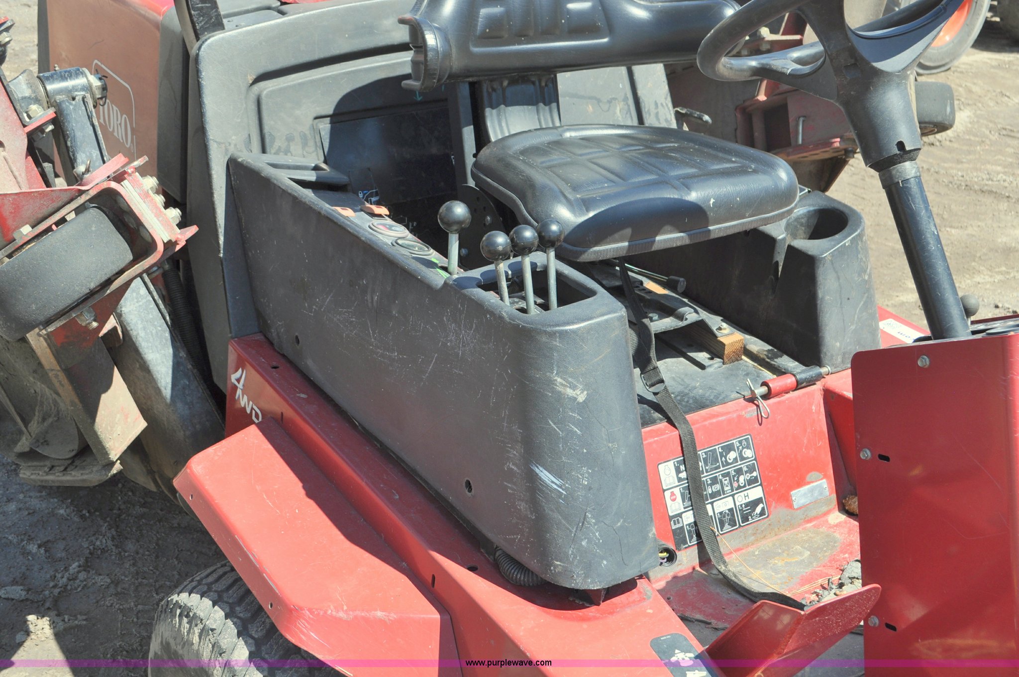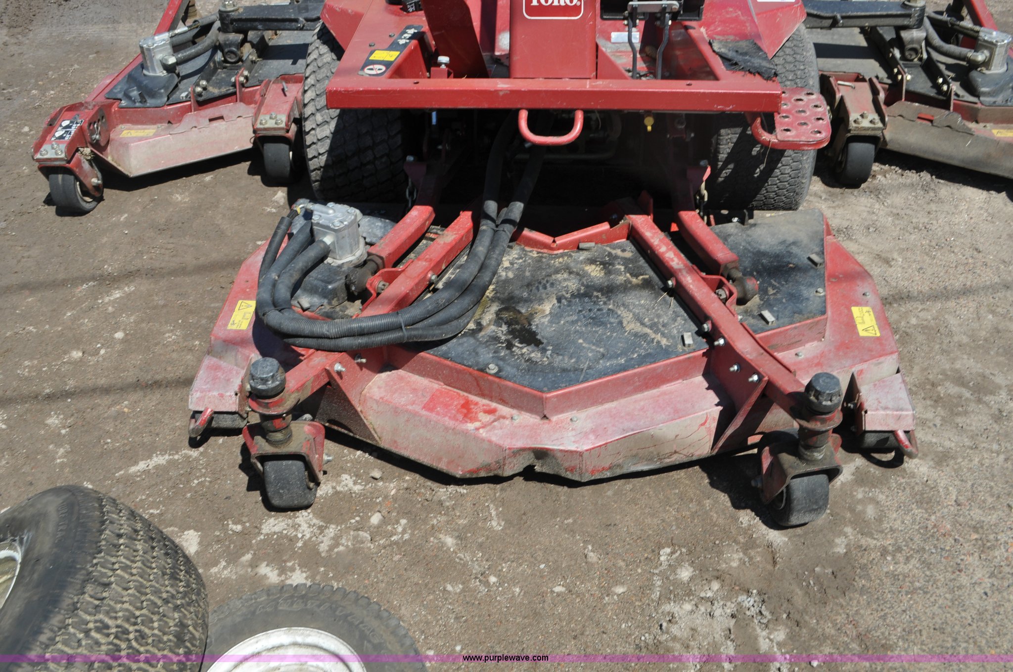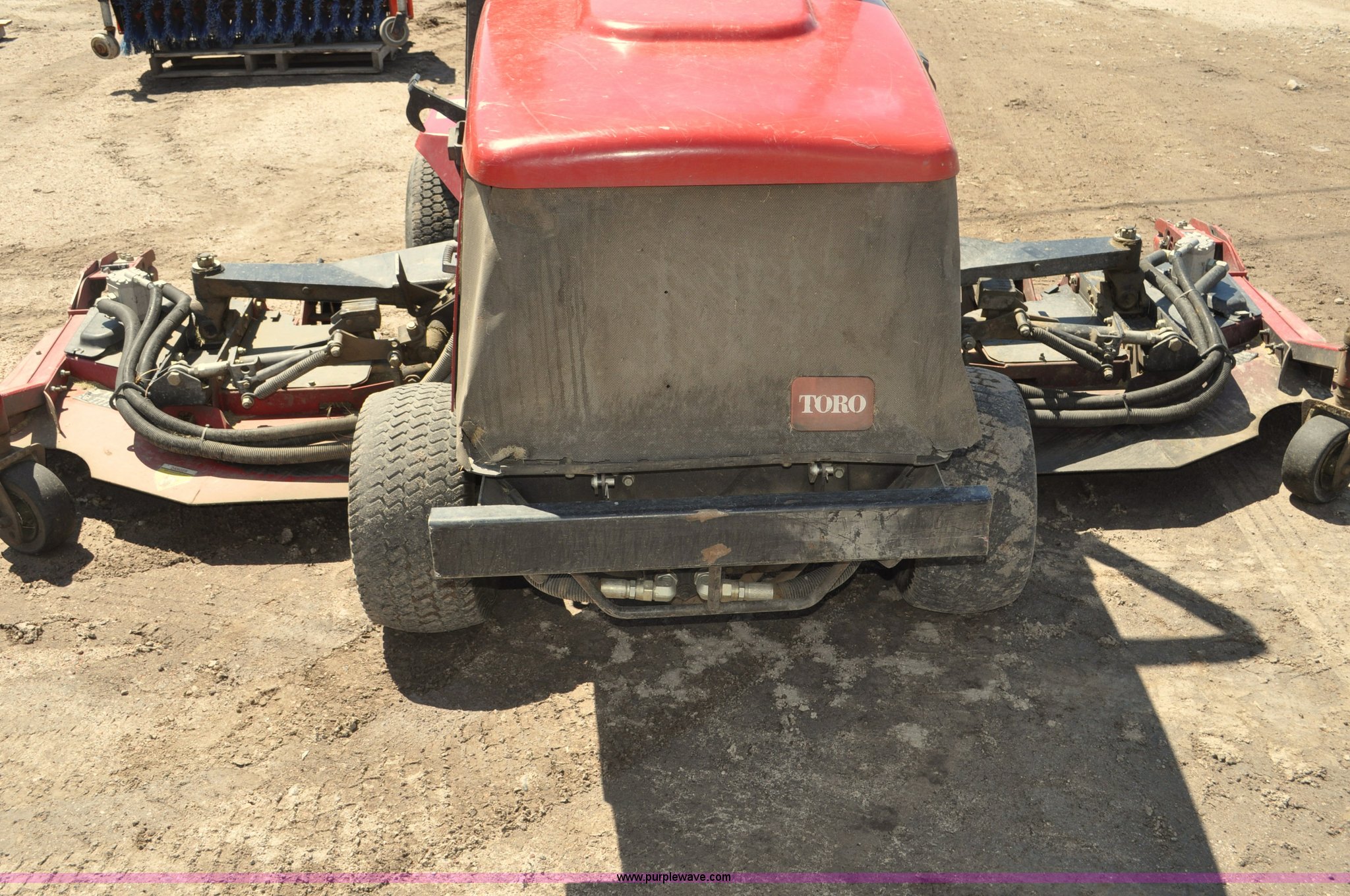 Purple Wave is selling a used Commercial Turf Mower in Nebraska. This item is a Toro Groundsmaster 4000D lawn mower with the following: 5,101 hours on meter, 11' cut, Kubota 2.0L diesel engine, Hydrostatic transmission, Four wheel drive, Roll bar, Hydraulic wing fold side decks, 26x12.00-12 front tires, 20x10.00-10 rear tires, Additional tires, Non-operational neutral start switch