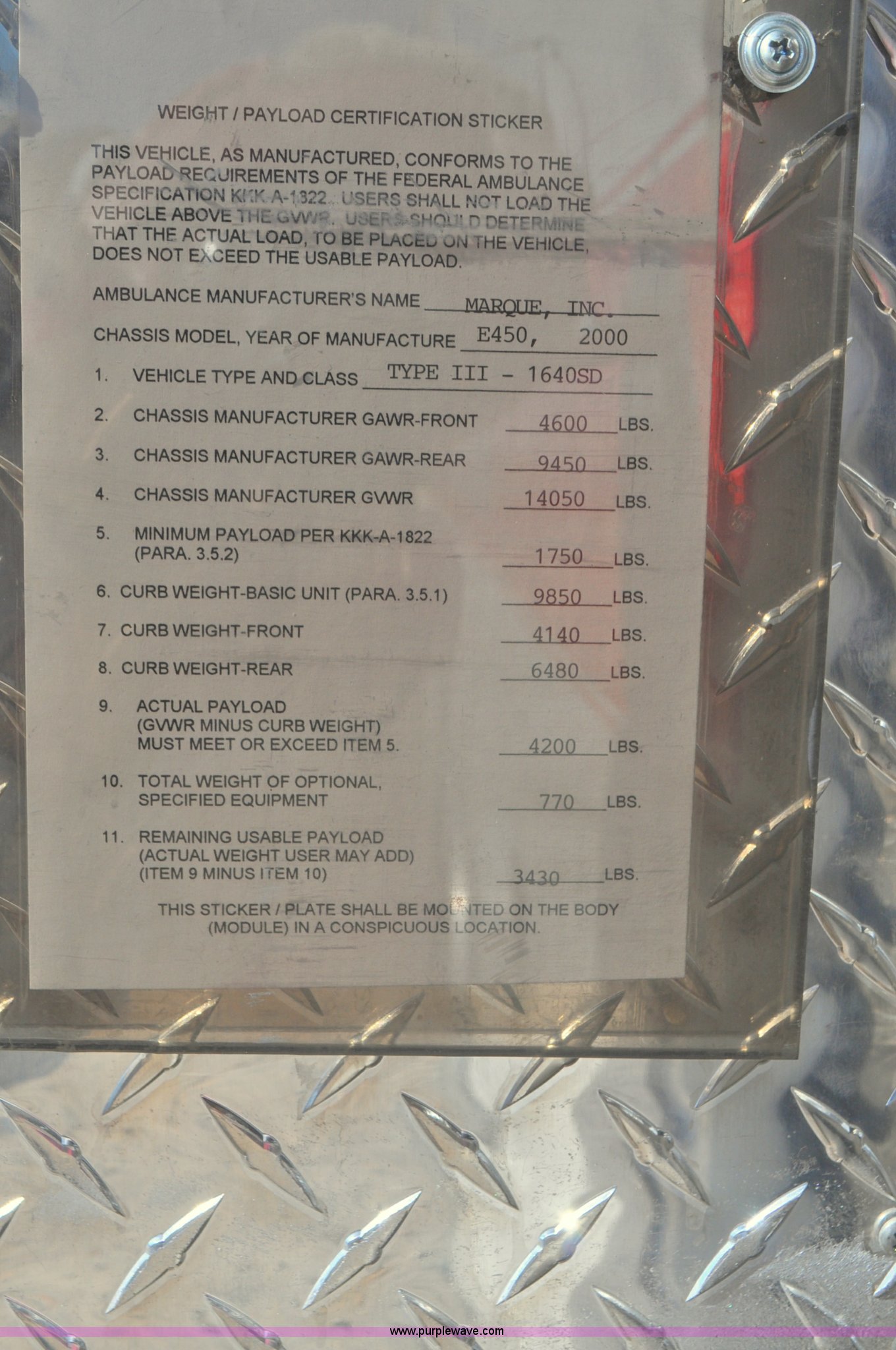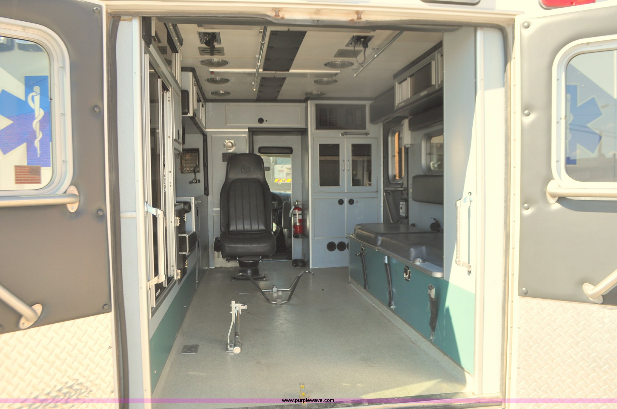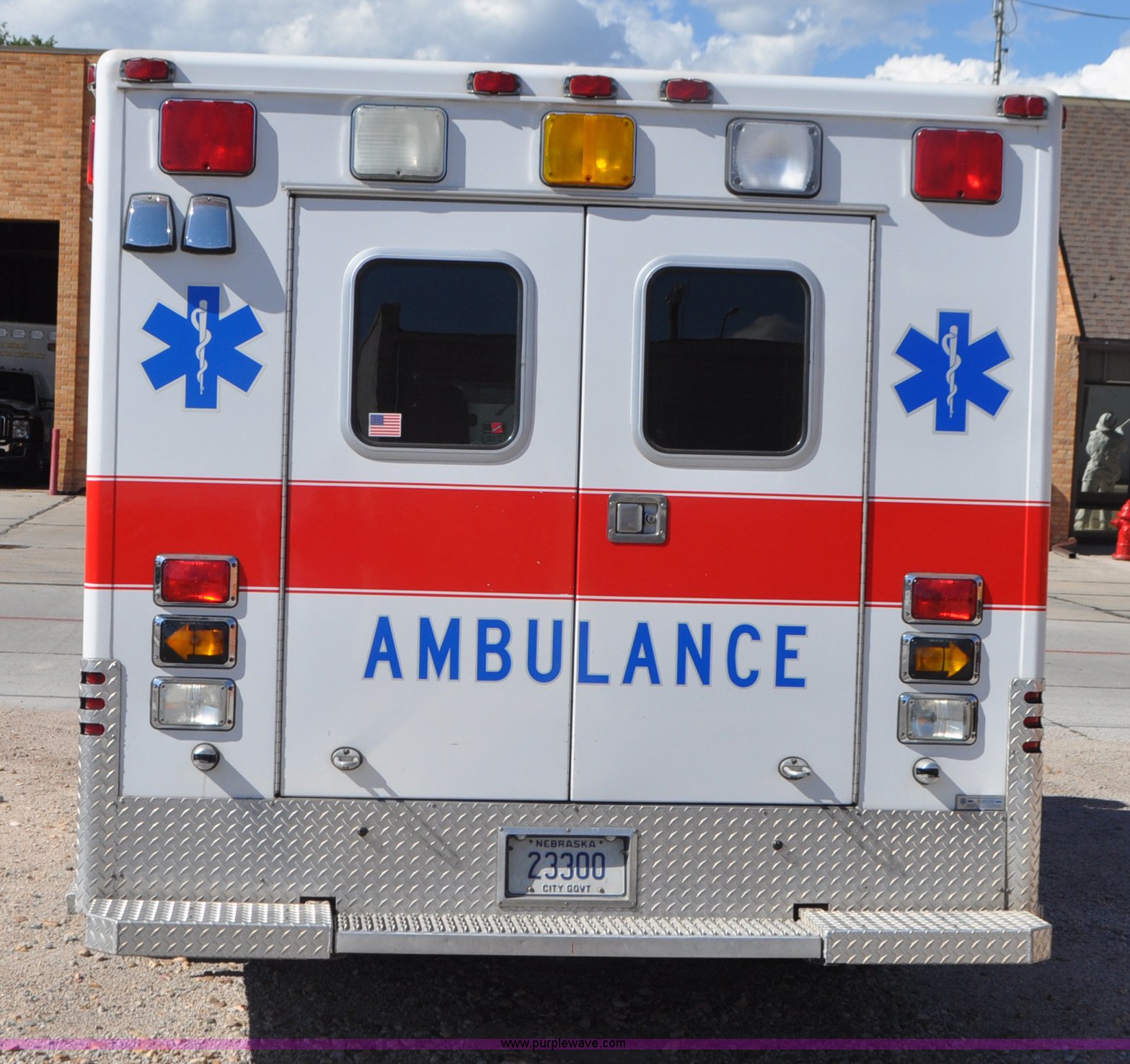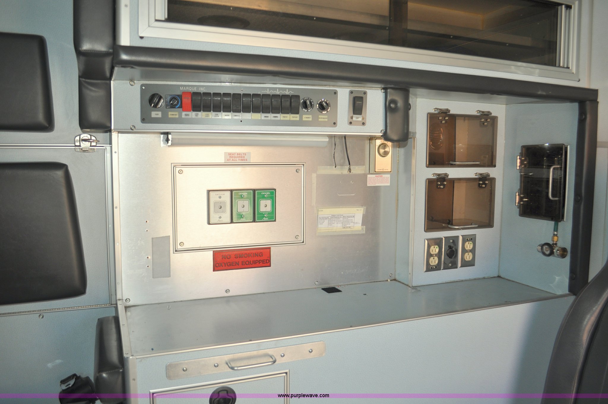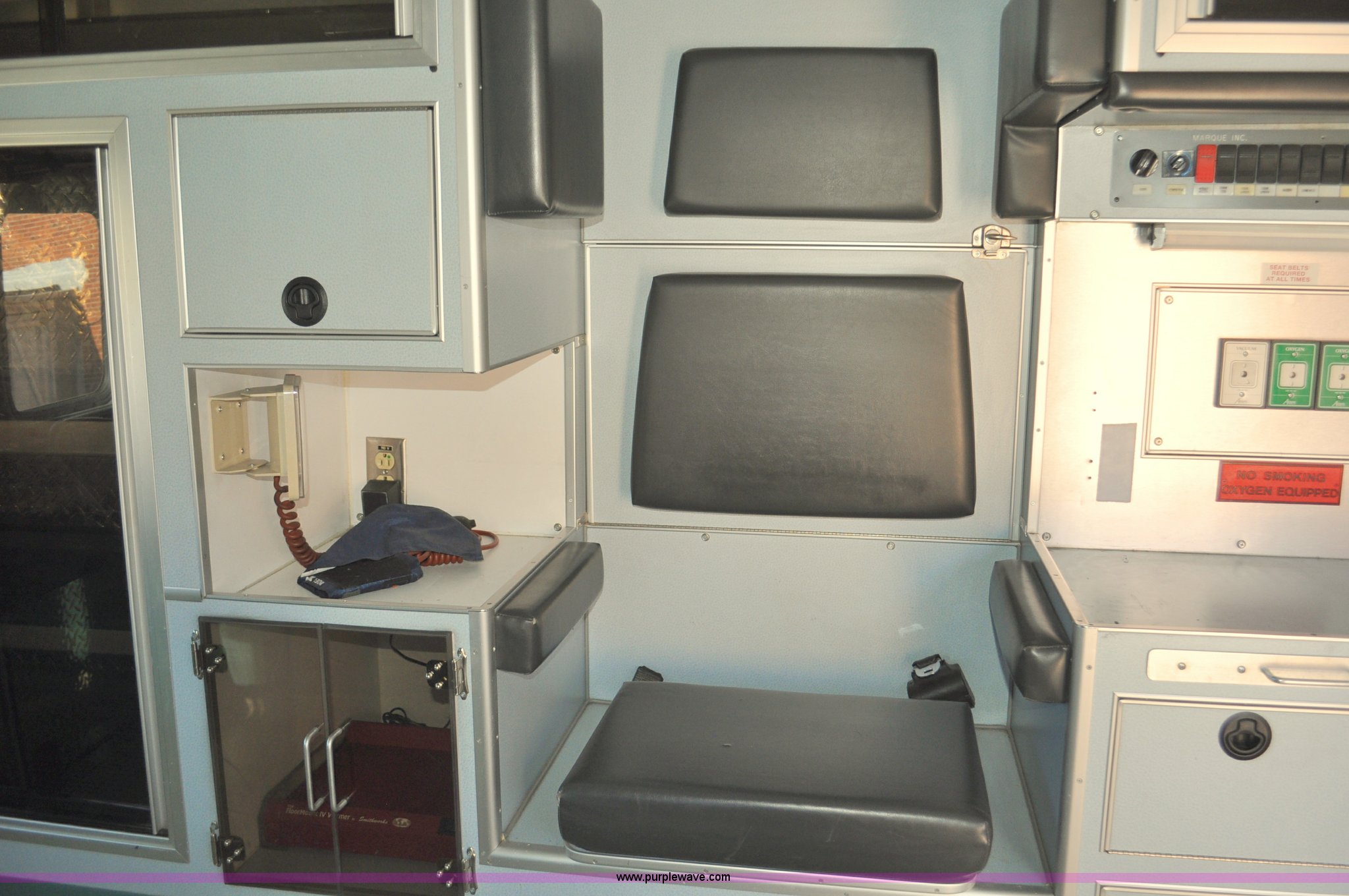 Purple Wave is selling a used Fire Truck or Emergency Vehicle in Nebraska. This item is a 1999 Ford Econoline E450 ambulance with the following: 52,807 miles on odometer, 7,501 hours on meter, 7.3L V8 OHV 16V turbo diesel engine, Automatic transmission, Single axle, AC and heat, AM/FM, Power windows and locks, Marque ambulance body, Emergency lights and sirens, Whelen PA/siren controls, Emergency lights, (3) oxygen hookups, Vacuum hookups, Michelin 225/75R16 tires, GVWR 14,050 lbs