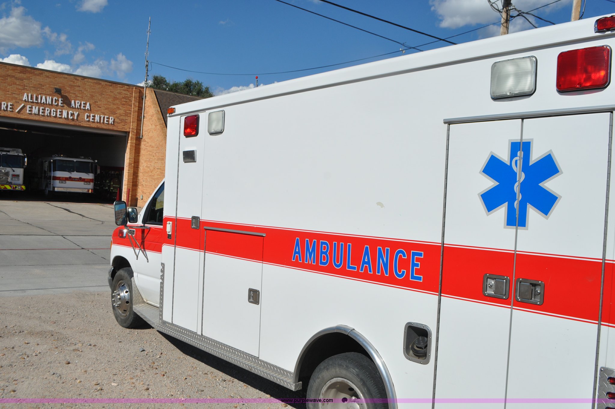1999 Ford Econoline E450 ambulance. 52,807 miles on odometer, 7,501 hours on meter, 7.3L V8 OHV 16V turbo diesel engine, Automatic transmission, Single axle, AC and heat, AM/FM, Power windows and locks, Marque ambulance body, Emergency lights and sirens, Whelen PA/siren controls, Emergency lights, (3) oxygen hookups, Vacuum hookups, Michelin 225/75R16 tires, GVWR 14,050 lbs. Nebraska title. Title distribution may be delayed up to 14 days from verification of funds. 1FDXE40F9XHB45153. City of Alliance. 315 Cheyenne Ave. Alliance, NE 69301