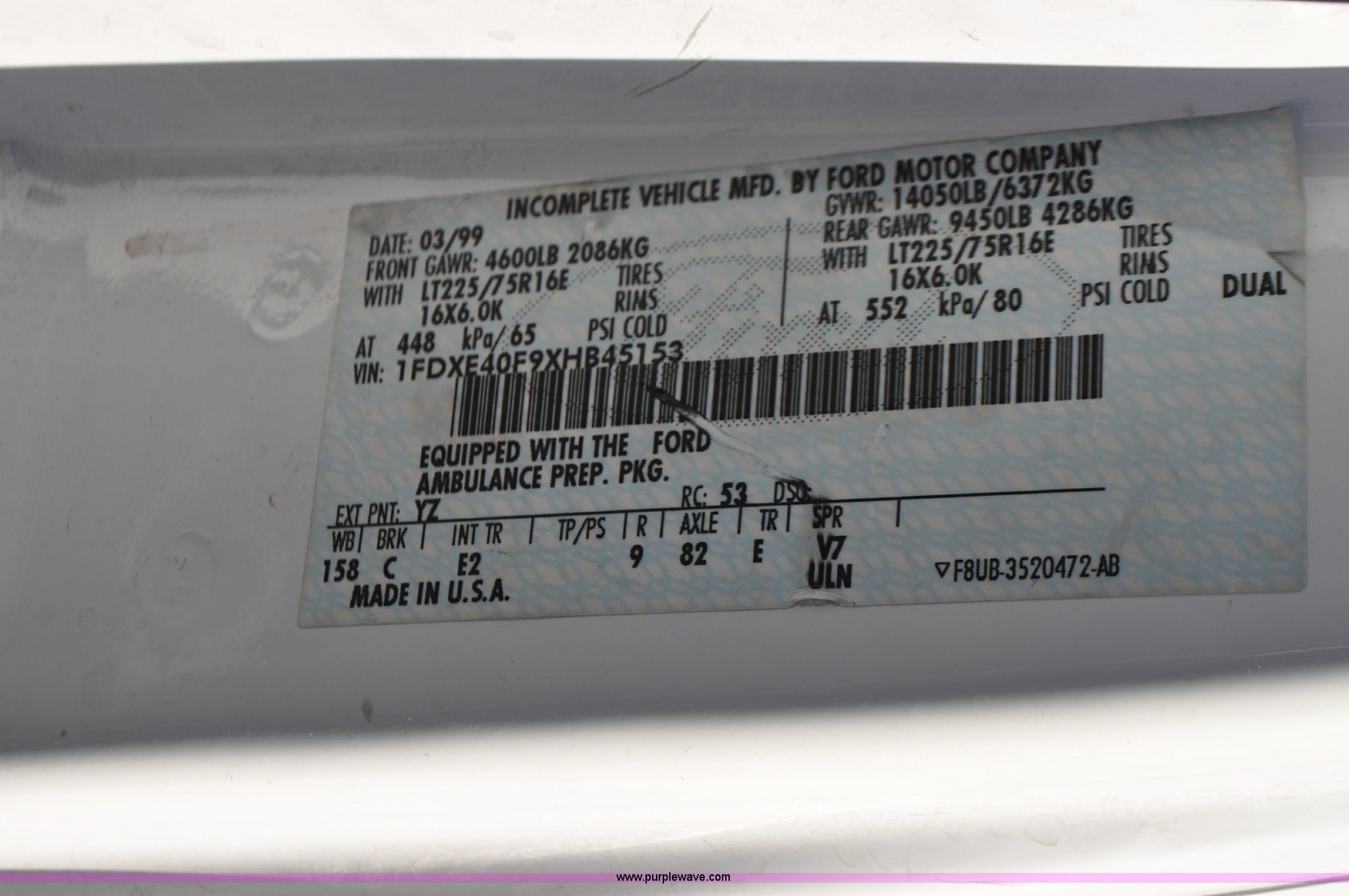 Take a look at this used 1999 Ford Econoline E450 ambulance being sold on September 13th, 2016 in the SOLD! September 13 Government Auction made by Ford. Take a look at all of the item information below or take a look at similar auctions for Trucks.