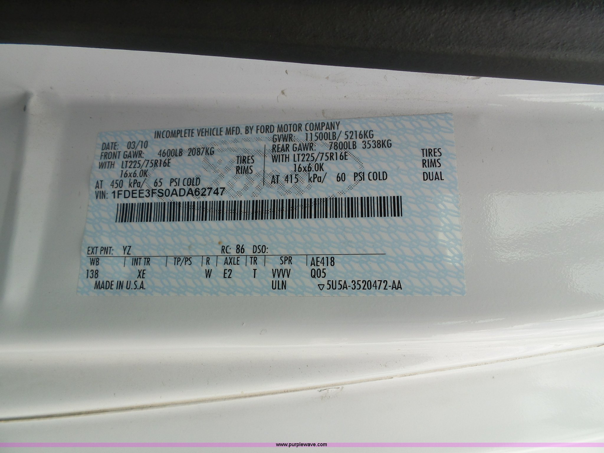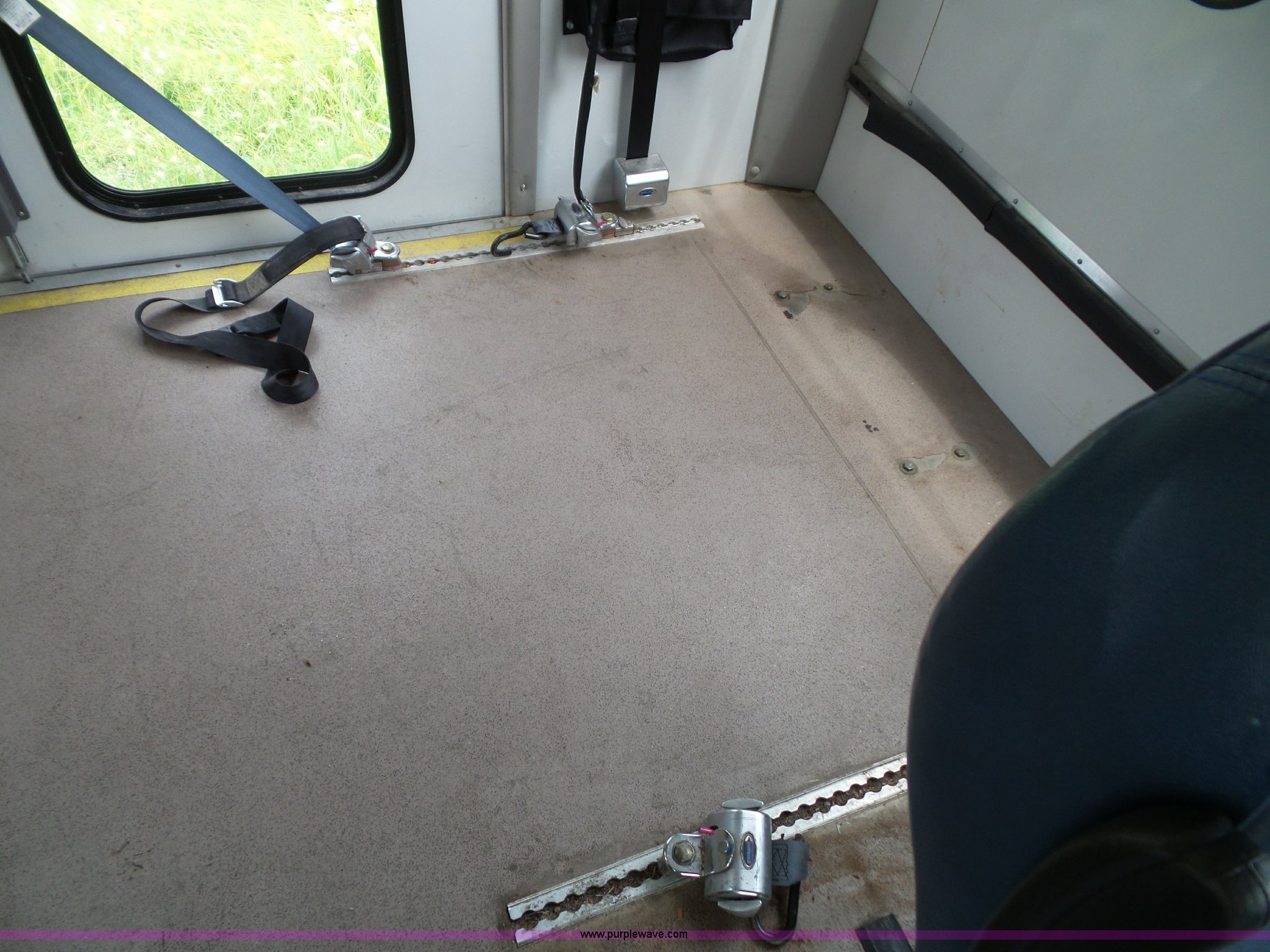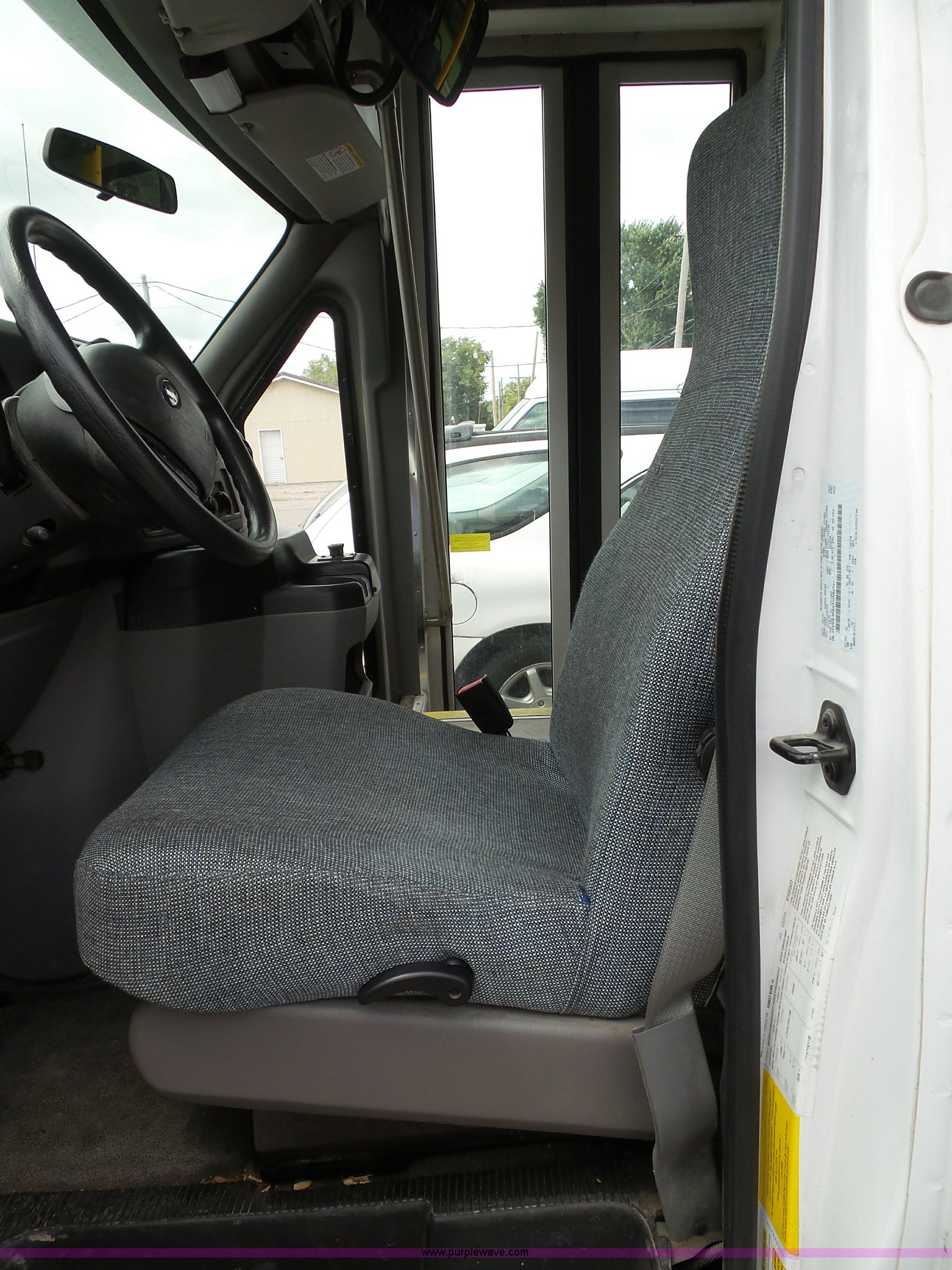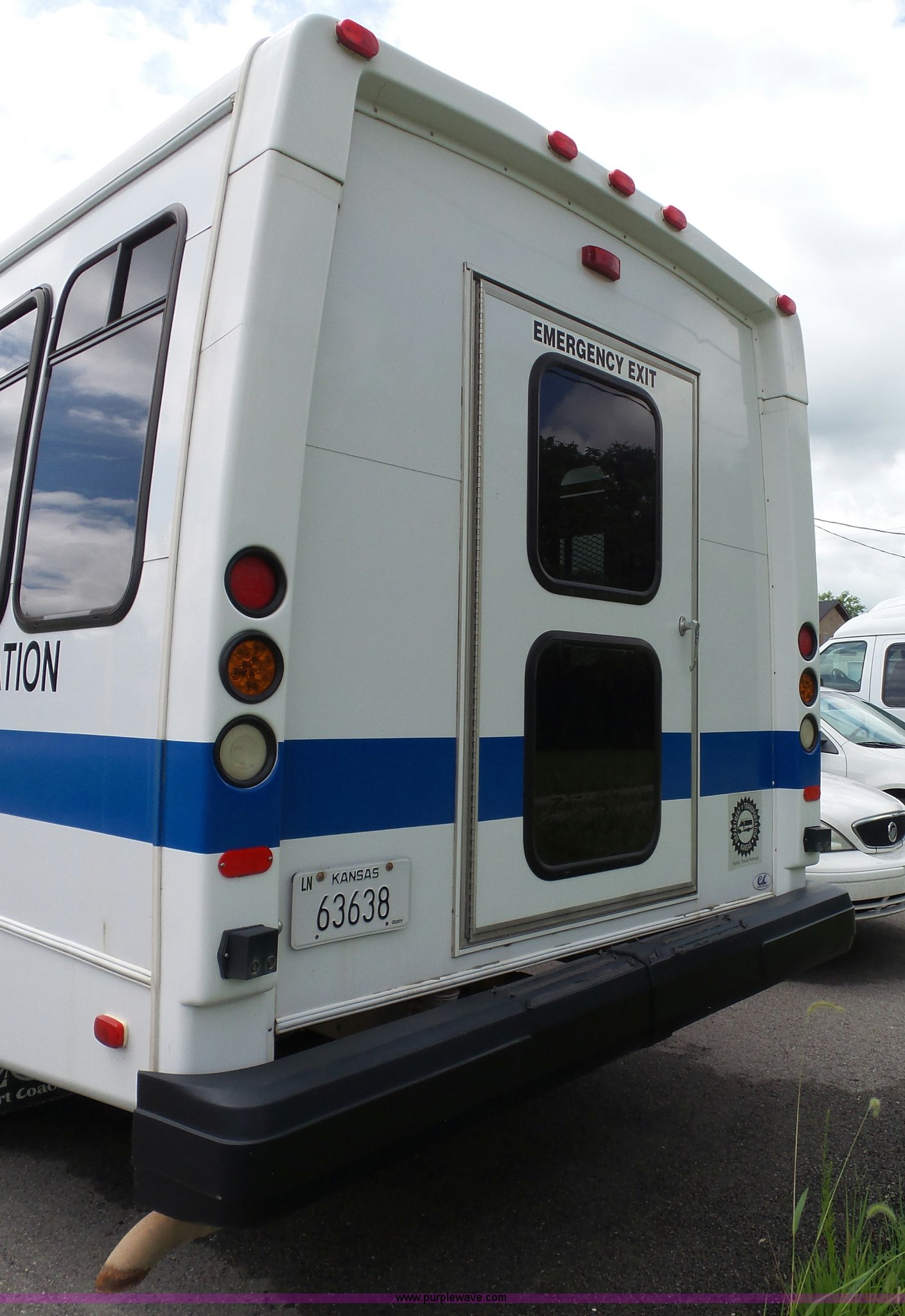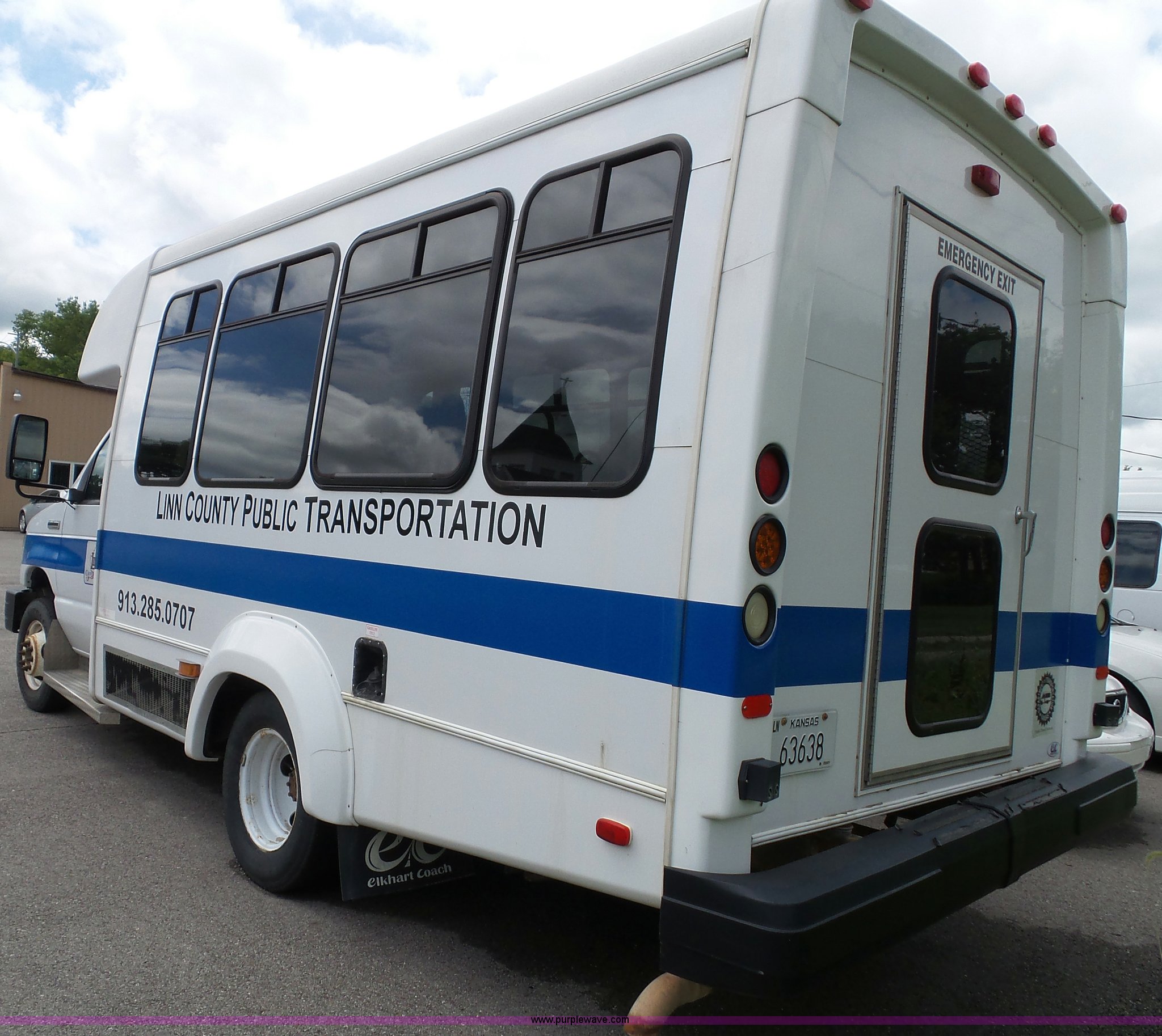Purple Wave is selling a used Bus in Kansas. This item is a 2010 Ford Econoline E350 shuttle bus with the following: 129,623 miles on odometer, 6.8L V10 SOHC 20V gas engine, Automatic transmission, Single axle, AC and heat, Tilt, Cruise, AM/FM/CD, Manual windows and locks, Power mirrors and seat, Cloth driver seat, Vinyl passenger seat, Nine passenger capacity, Seat belts, 2010 Braun NCL919FIB-2 wheelchair lift, Serial DA-03858, Wheelchair tie down area, Ceiling, rear, and side emergency egress, Acc Climate Control AC roof unit, Spring suspension, Hydraulic brakes, 138" wheelbase, Firestone 225/75R16 tires, Decals will be removed prior to auction, Non-operational engine, Unit must be towed or hauled