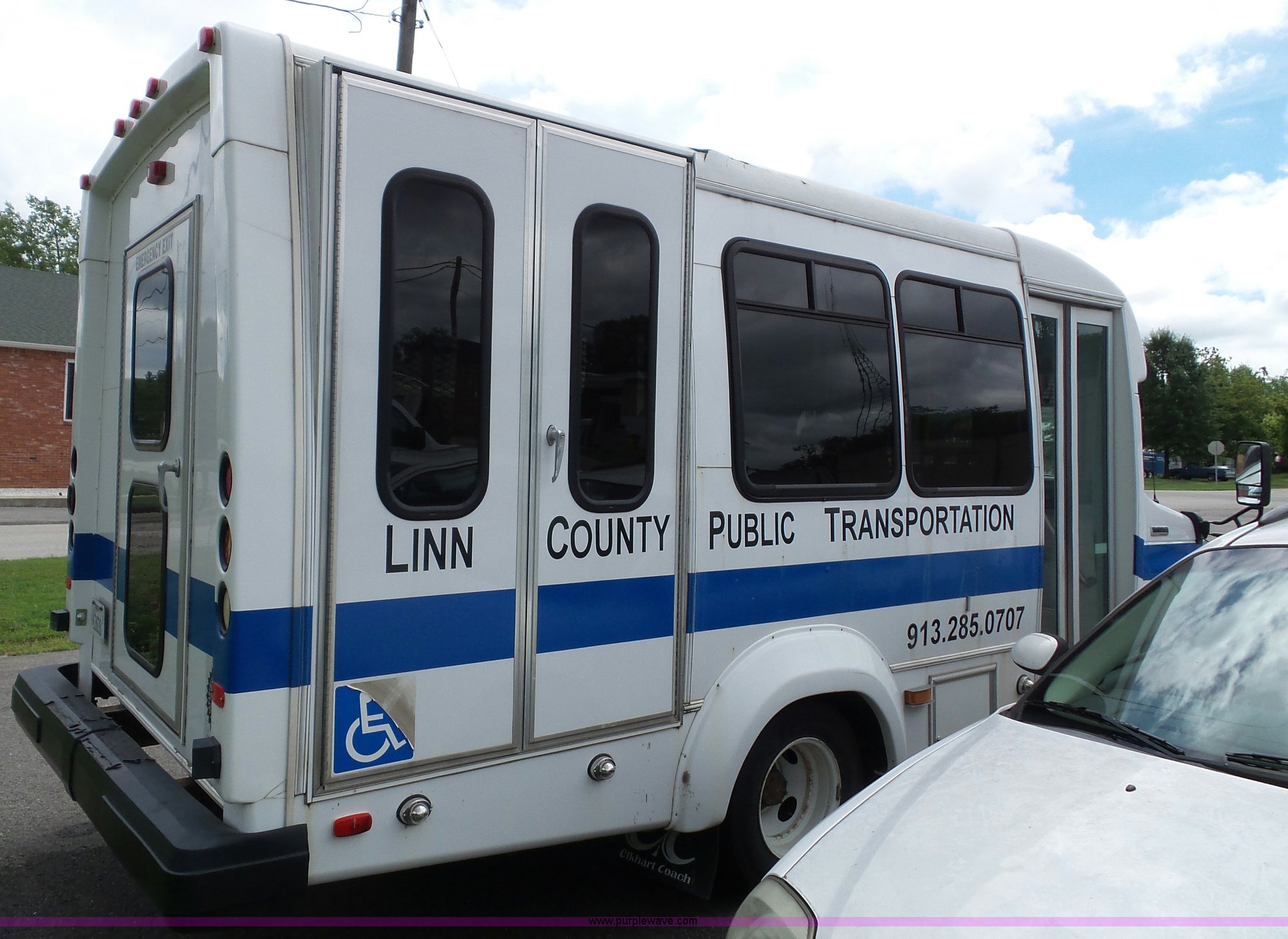 2010 Ford Econoline E350 shuttle bus. 129,623 miles on odometer, 6.8L V10 SOHC 20V gas engine, Automatic transmission, Single axle, AC and heat, Tilt, Cruise, AM/FM/CD, Manual windows and locks, Power mirrors and seat, Cloth driver seat, Vinyl passenger seat, Nine passenger capacity, Seat belts, 2010 Braun NCL919FIB-2 wheelchair lift Serial DA-03858, Wheelchair tie down area, Ceiling, rear, and side emergency egress, Acc Climate Control AC roof unit, Spring suspension, Hydraulic brakes, 138" wheelbase, Firestone 225/75R16 tires, Decals will be removed prior to auction, Non-operational engine, Unit must be towed or hauled. Kansas title. 1FDEE3FS0ADA62747. Linn County. 306 Main St. Mound City, KS 66056