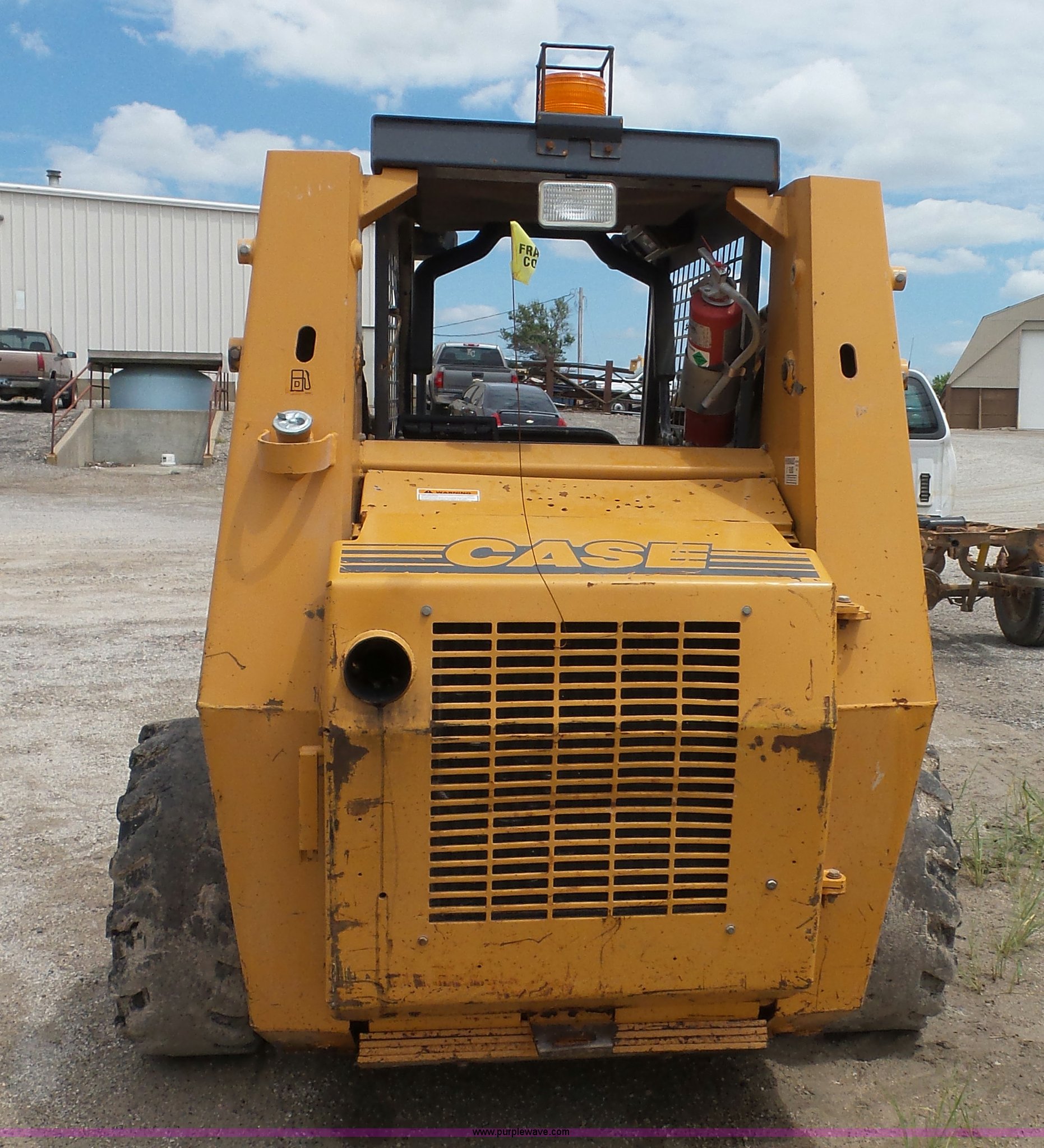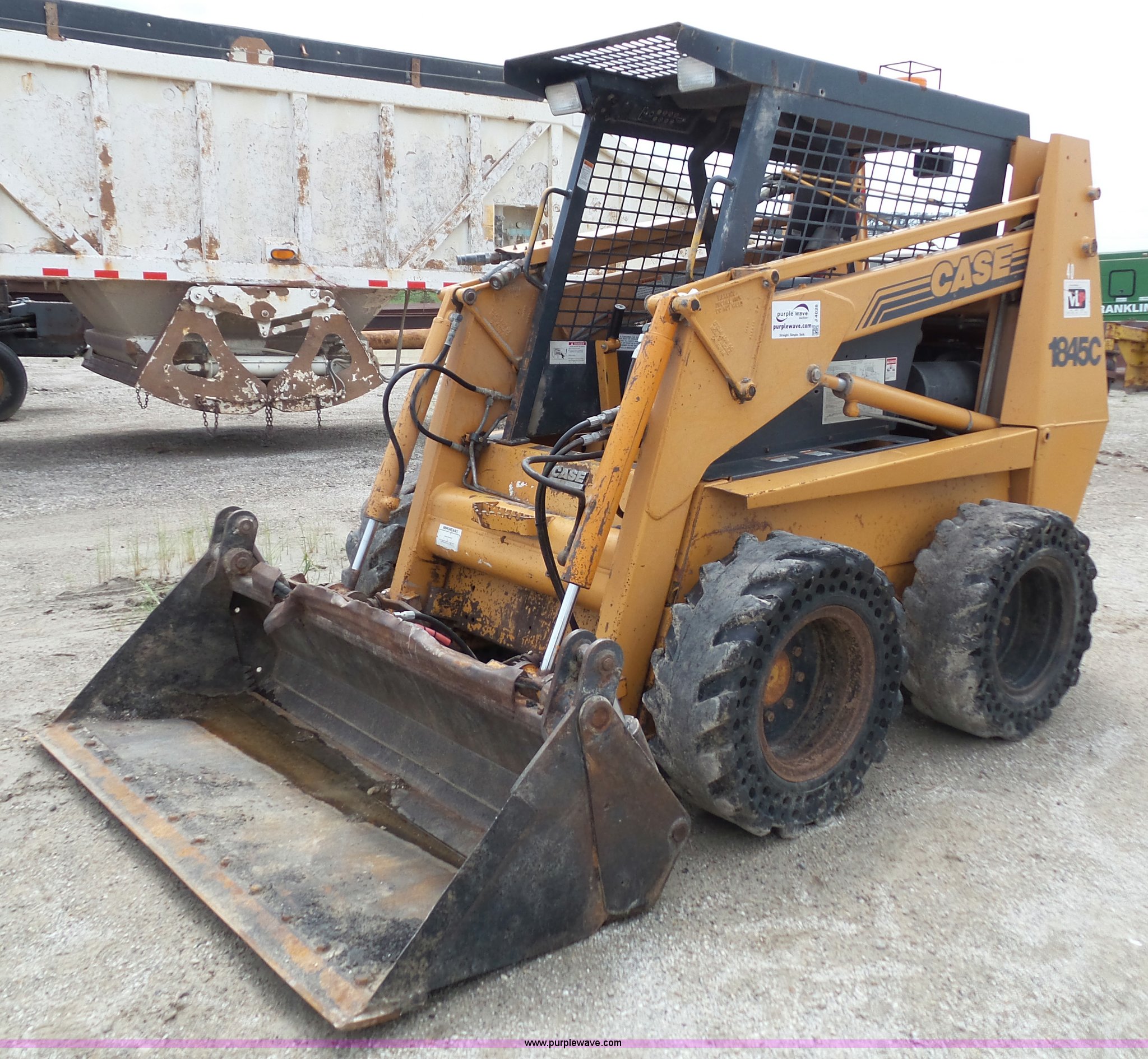 Purple Wave is selling a used Skid Steer Loader in Kansas. This item is a 1999 Case 1845C skid steer with the following: 2,392 hours on meter, Case four cylinder diesel engine, Hydrostatic transmission, Open station/canopy, Hand and foot controls, Front and rear work lights, Strobe light, Auxiliary hydraulics, 72"W clamshell bucket, Bolt-on cutting edge, 1,750 lbs capacity, 33x12-16 solid tires, 6,185 lbs. base operating weight, Serial JAF0276110