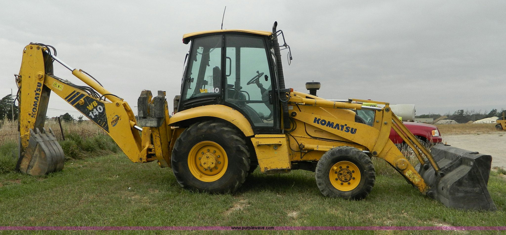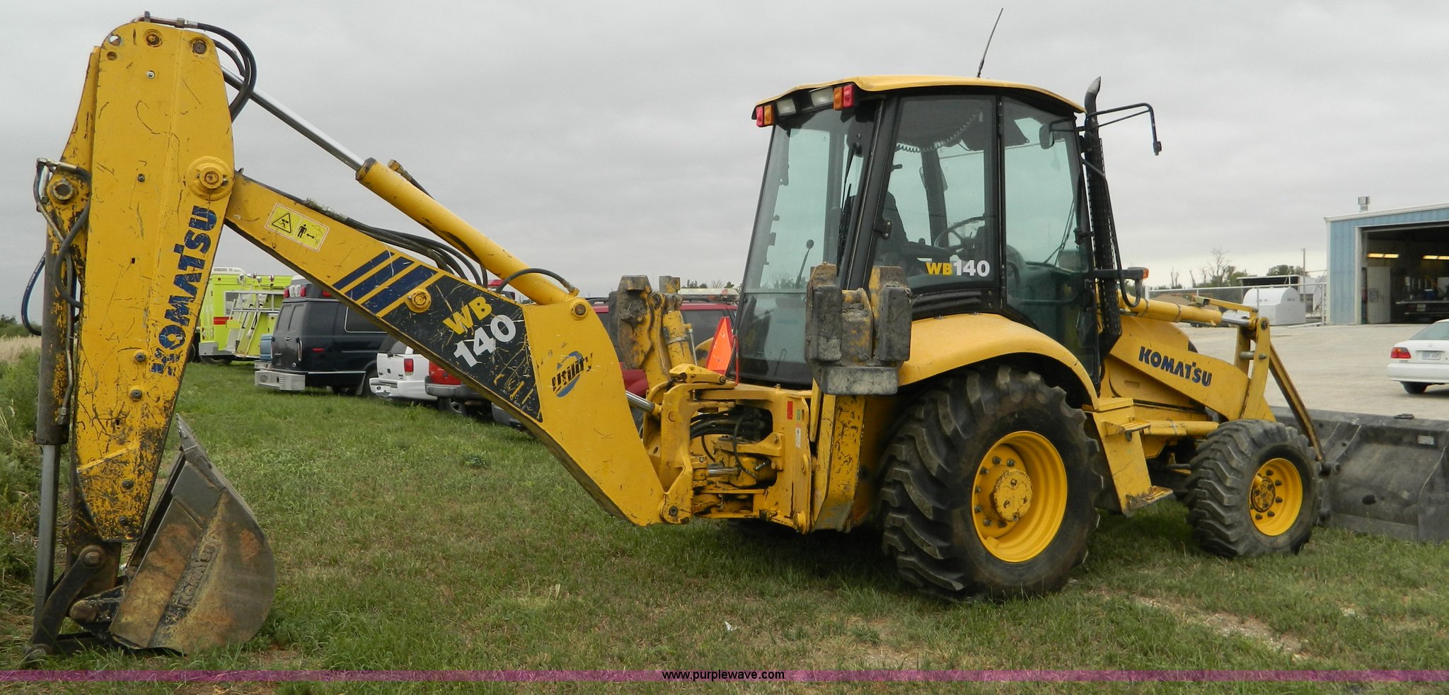 Purple Wave is selling a used Tractor Loader Backhoe in Kansas. This item is a 2006 Komatsu WB140-2N backhoe with the following: 9,100 hours on meter, Yanmar 540106-2XEH four cylinder turbo diesel engine, Serial V09559, Shuttle shift transmission, 4F-4R gears, Four wheel drive, Enclosed cab, AC and heat, Non-operational AC, AM/FM, Suspension seat, Wipers, Wobble stick backhoe controls, Front and rear work lights, Manual quick coupler, Komatsu WB140/158-8BLL loader bucket, 90"W, Bolt-on cutting edge, Auxiliary hydraulics, Extendable stick, Komatsu backhoe bucket, 24"W, (4) teeth, Front counterweights, Drivetrain guards, Firestone 14-17.5 front tires, Firestone 19.5L-24 rear tires, 16,600 lbs. base operating weight, Auxiliary hydraulic hoses will be included, Boom lock needs replaced, Serial KMIWB001136A22271, Unit# 54558