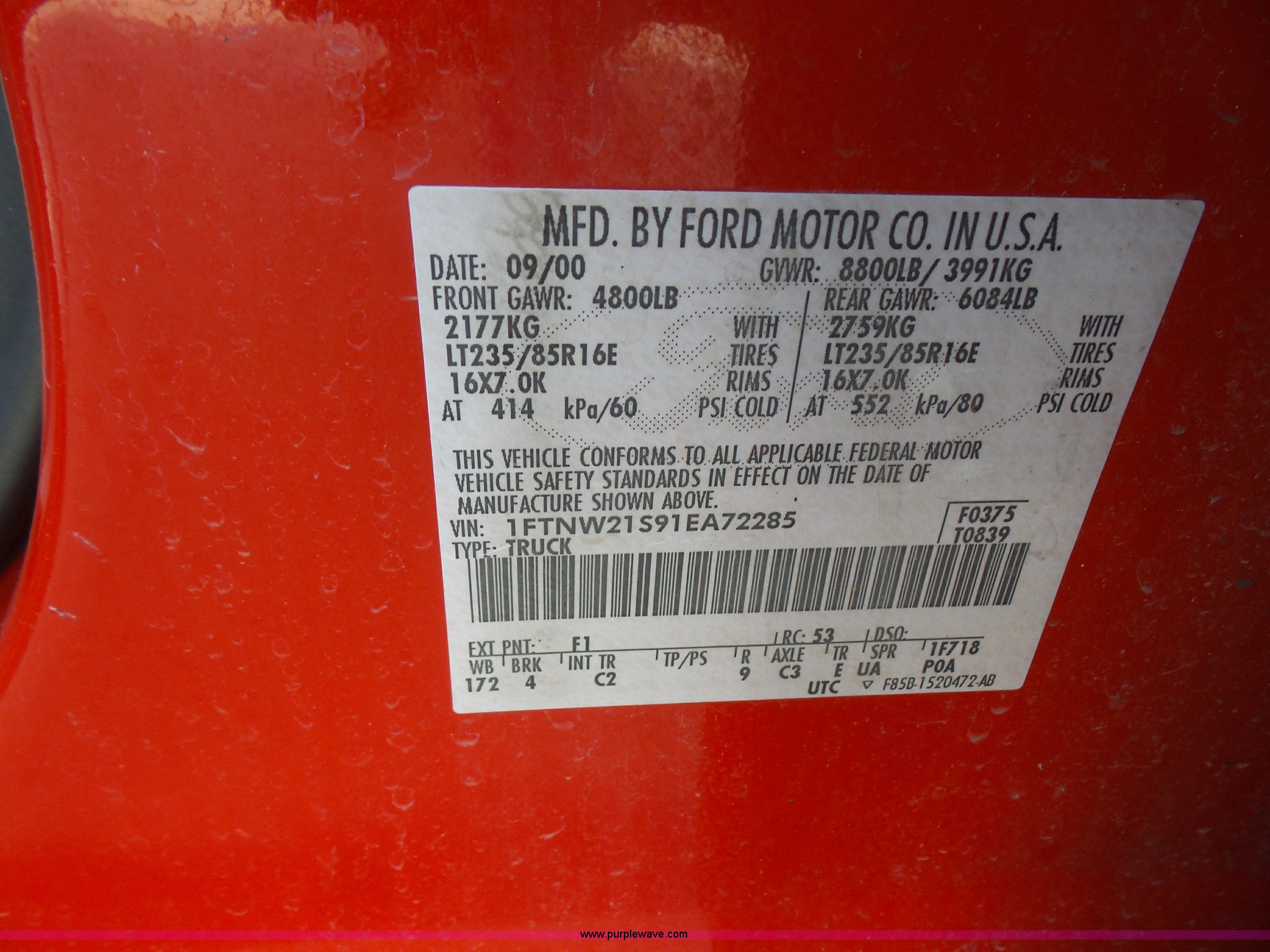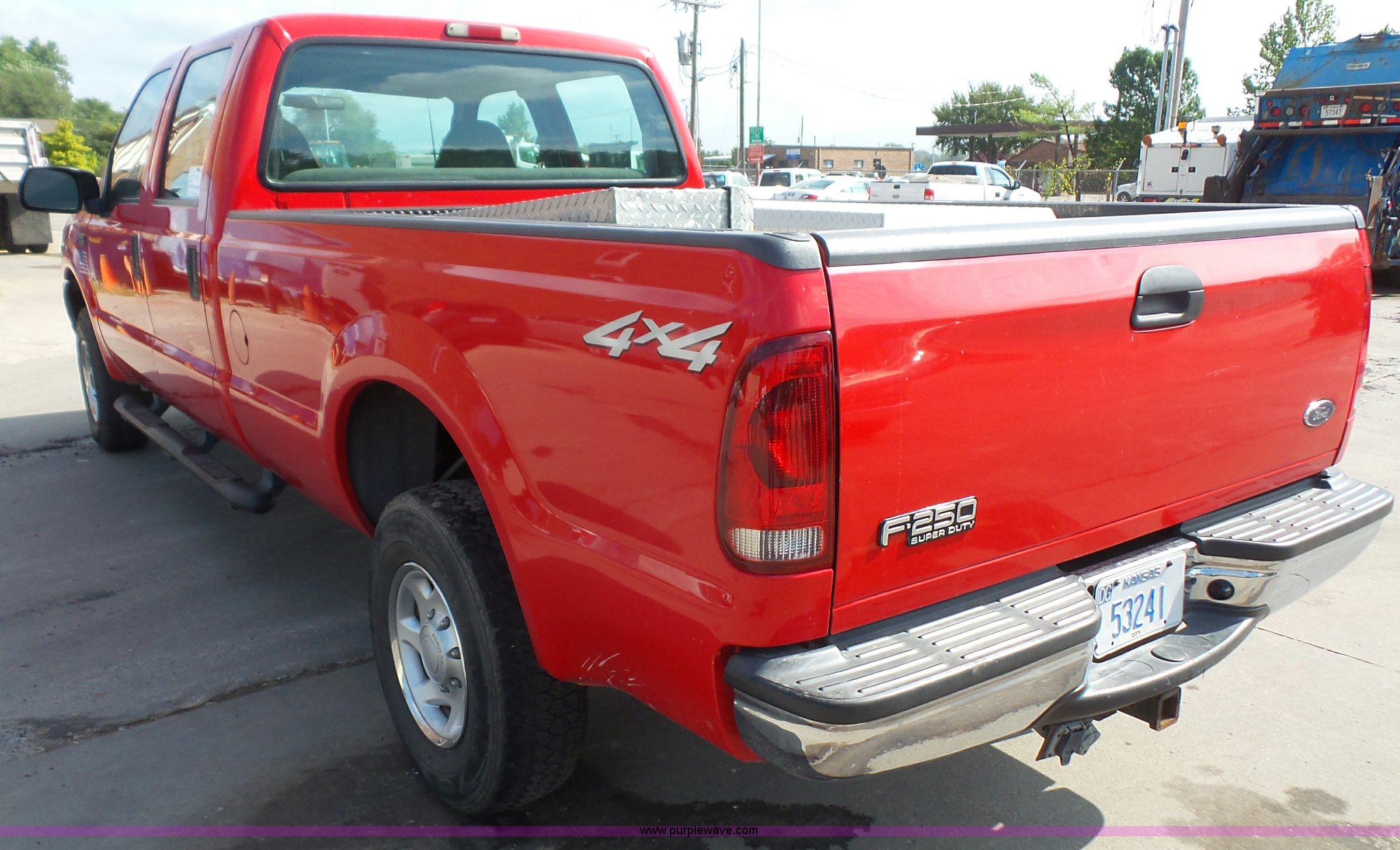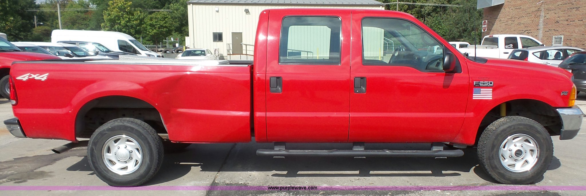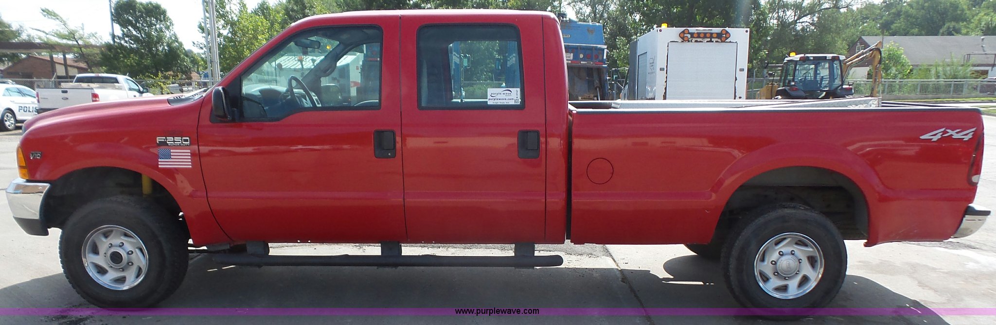 Purple Wave is selling a used 3/4 or 1 Ton Pickup or Van in Kansas. This item is a 2001 Ford F250 Super Duty XL Crew Cab pickup truck with the following: 71,062 miles on odometer, 6.8L V10 SOHC 20V gas engine, Automatic transmission, Four wheel drive, AC and heat, Tilt, Cruise, AM/FM/cassette, Manual windows and locks, Cloth interior, Running boards, Long bed, Receiver hitch, 235/85R16 tires, Toolboxes not included, Right side bed damage, Unit# 611