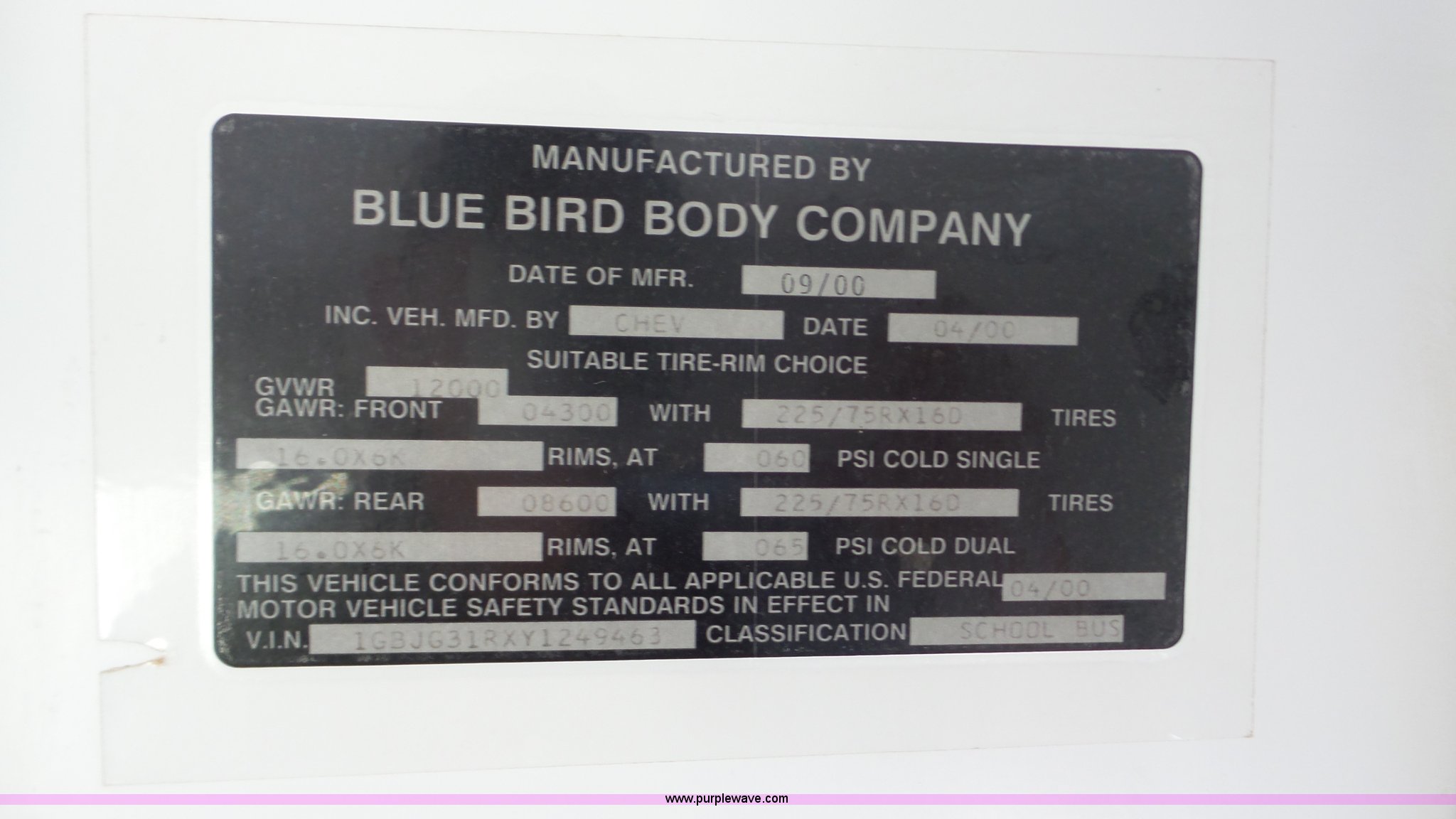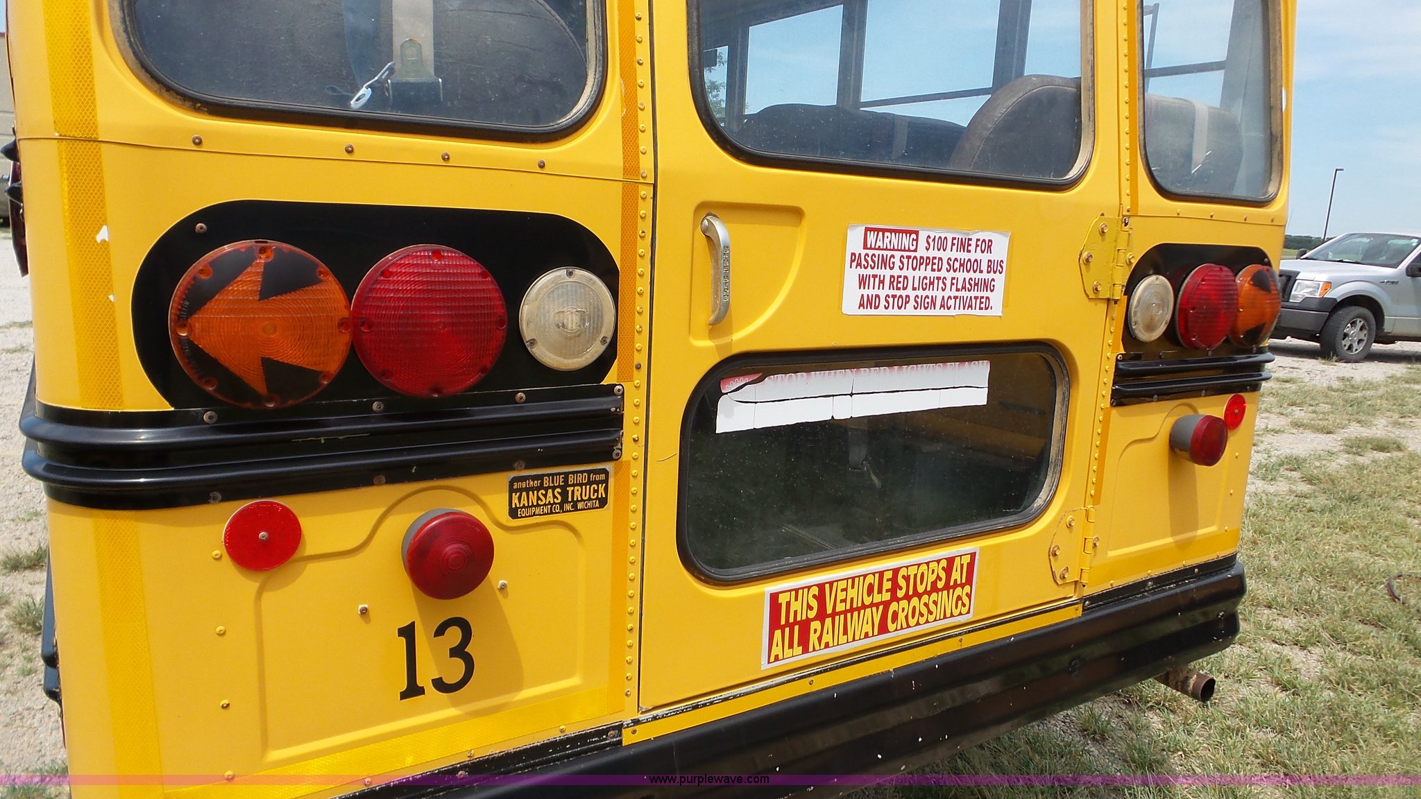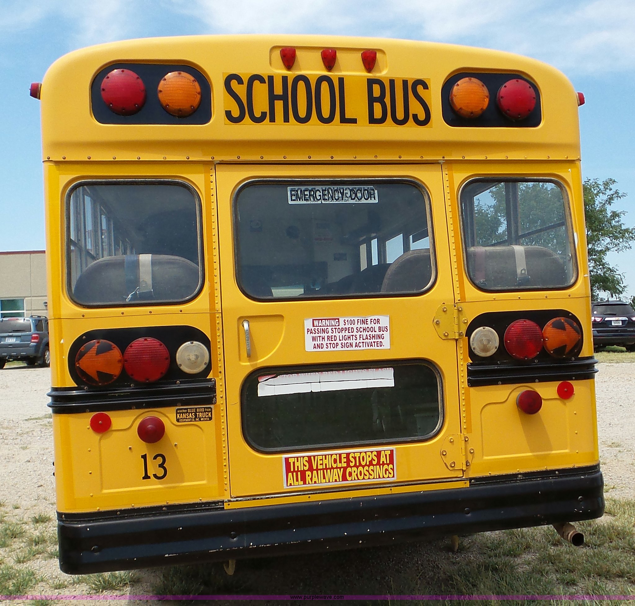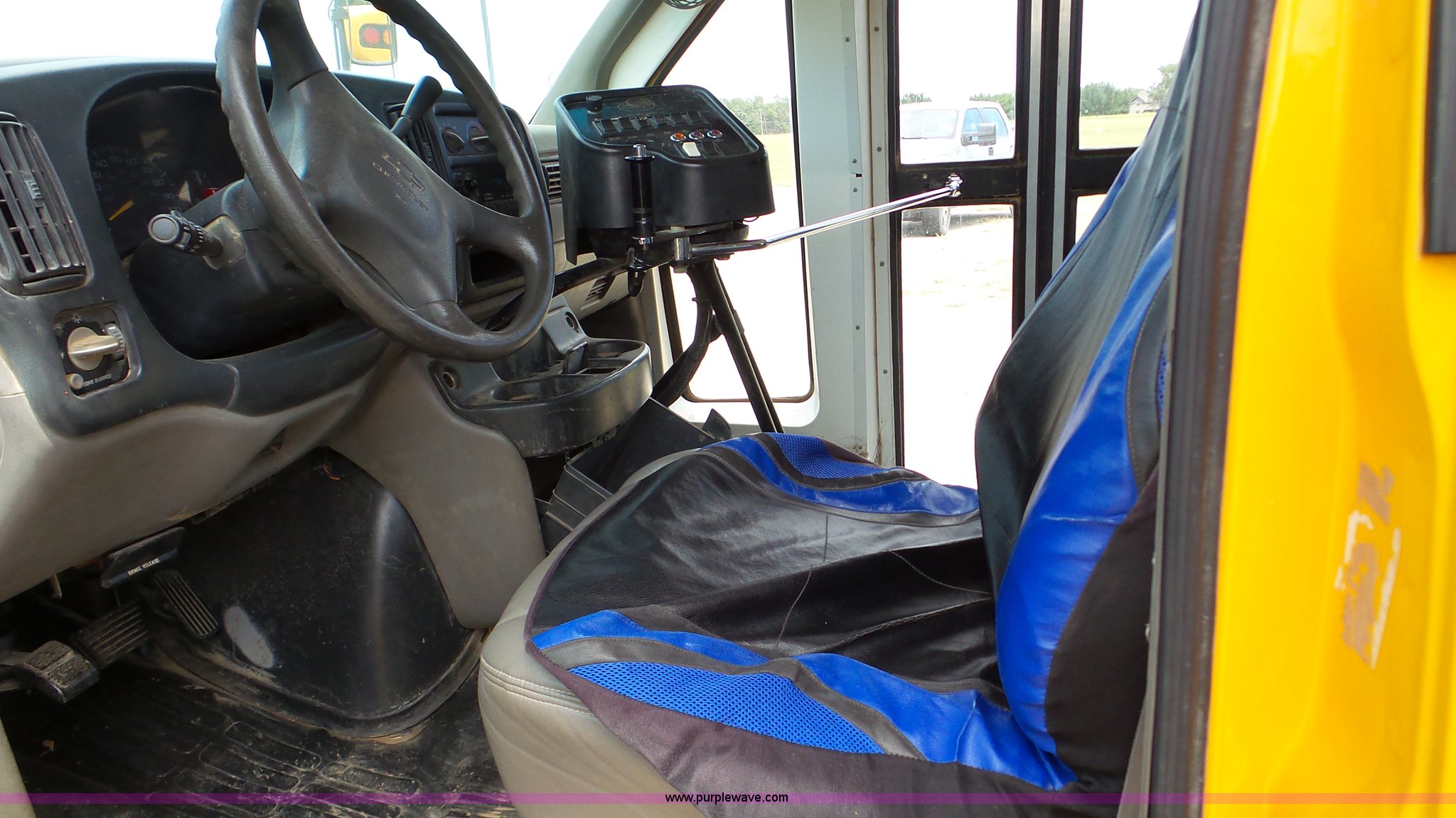 Purple Wave is selling a used Bus in Kansas. This item is a 2000 Chevrolet Express G3500 school bus with the following: 232,494 miles on odometer, 5.7L V8 OHV 16V gas engine, Automatic transmission, Single axle, AC and heat, Non-operational AC, AM/FM, 29 passenger capacity, Ceiling, rear, and side emergency egress, Lighted stop sign, Spring suspension, Hydraulic brakes, 225/75R16 tires, Dead battery, Uses oil, Unit# 13