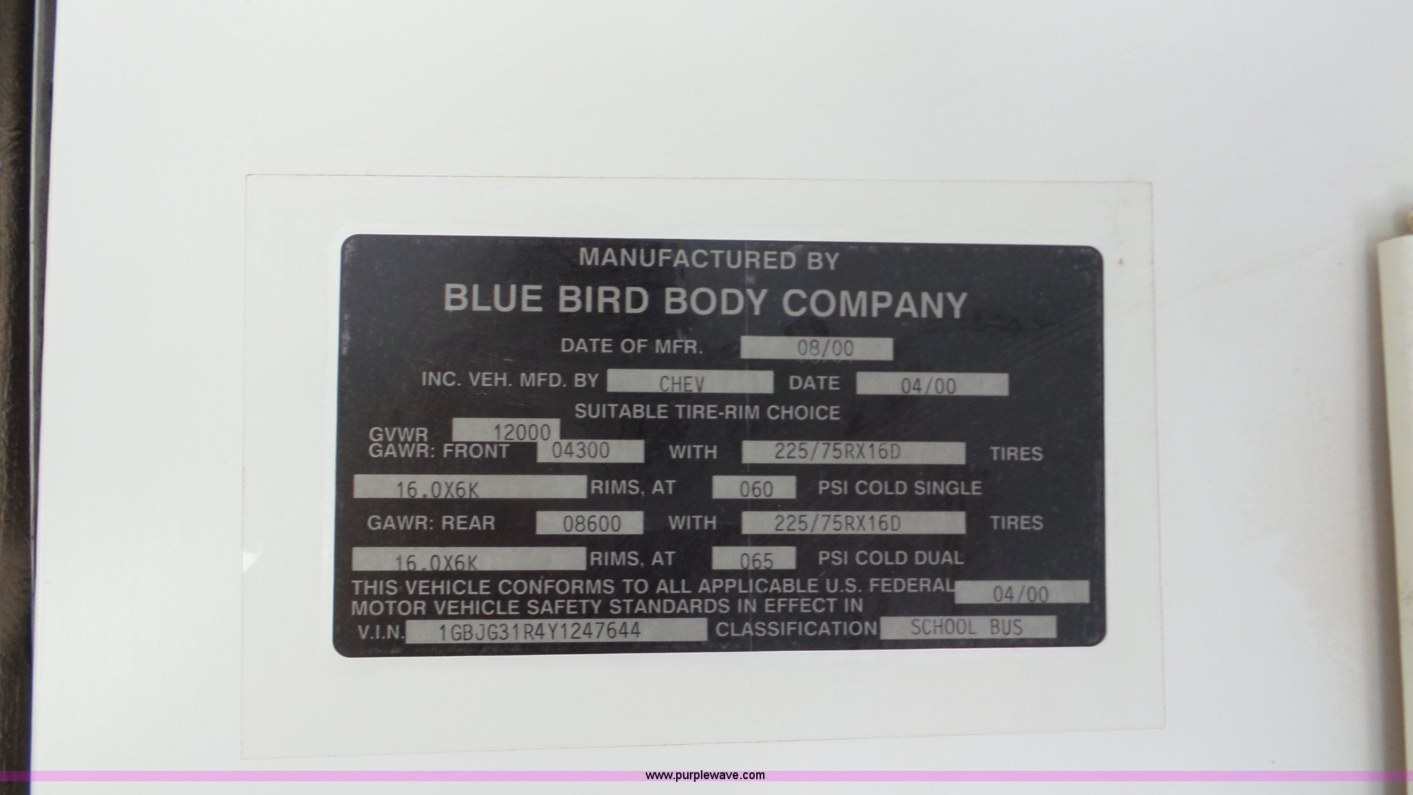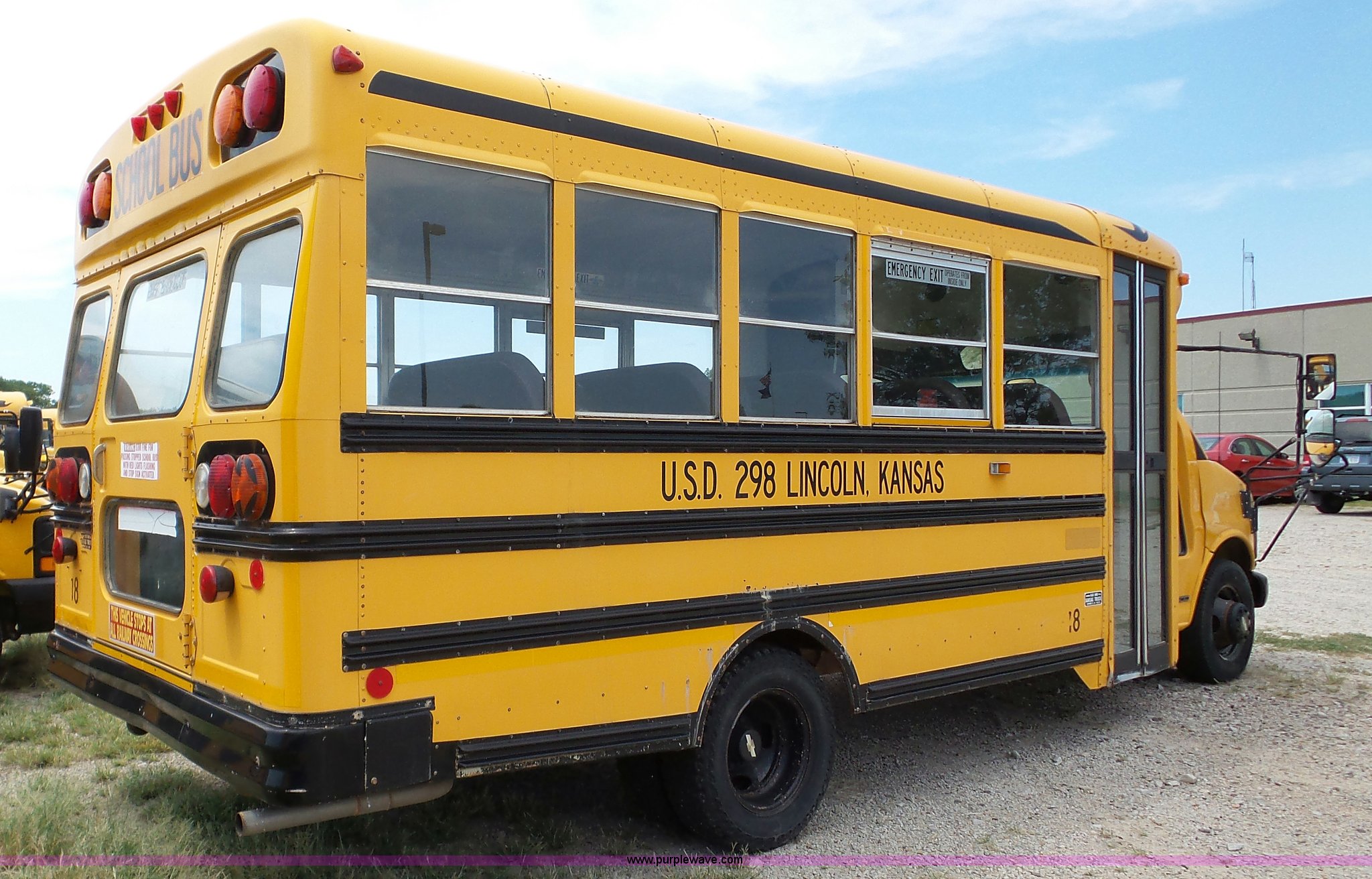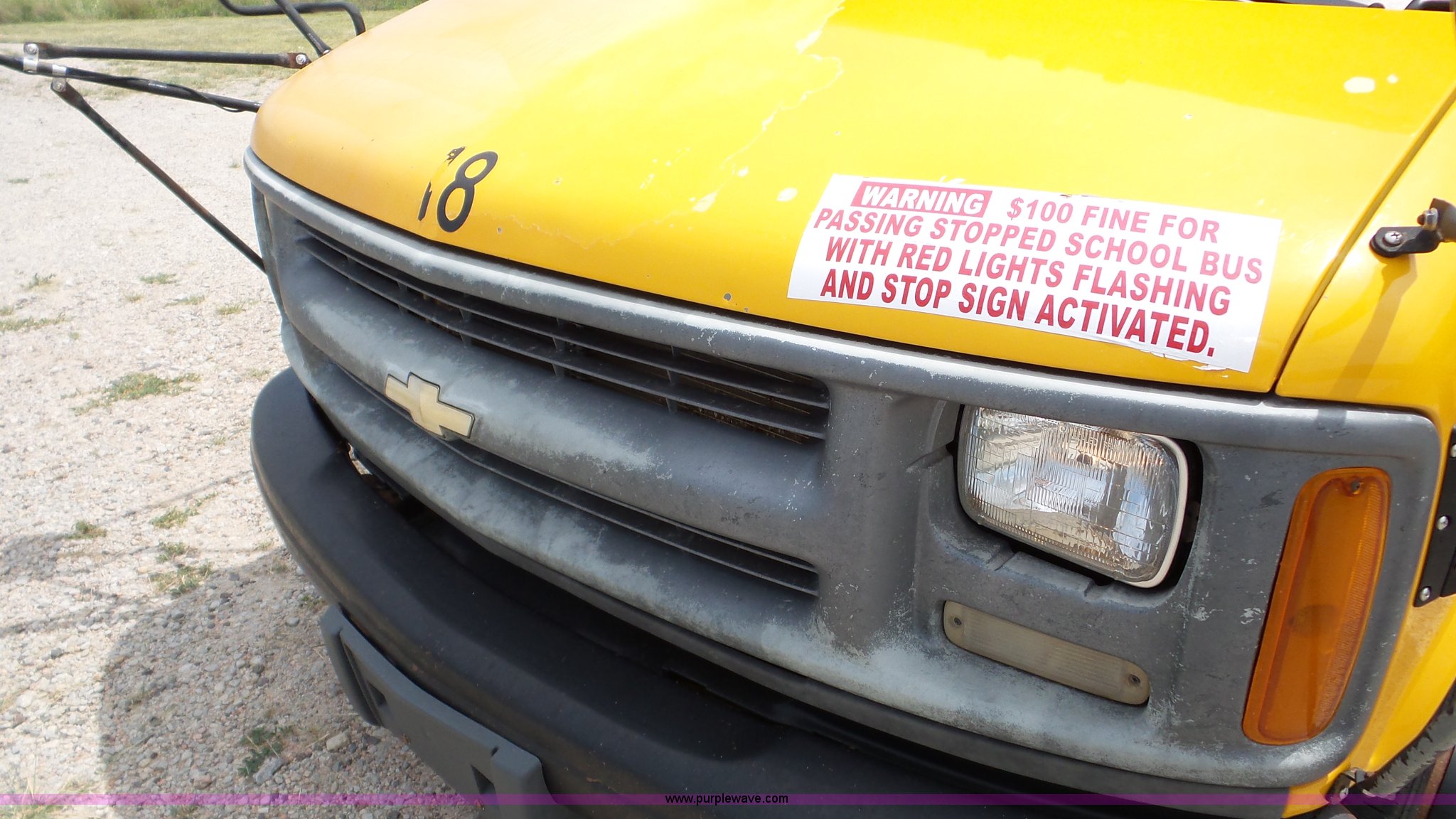 Purple Wave is selling a used Bus in Kansas. This item is a 2000 Chevrolet Express G3500 school bus with the following: 268,276 miles on odometer, 5.7L V8 OHV 16V gas engine, Automatic transmission, Single axle, AC and heat, Non-operational AC, AM/FM, 29 passenger capacity, Lighted stop sign, Spring suspension, Hydraulic brakes, 225/75R16 tires, Weak battery, Unit# 18