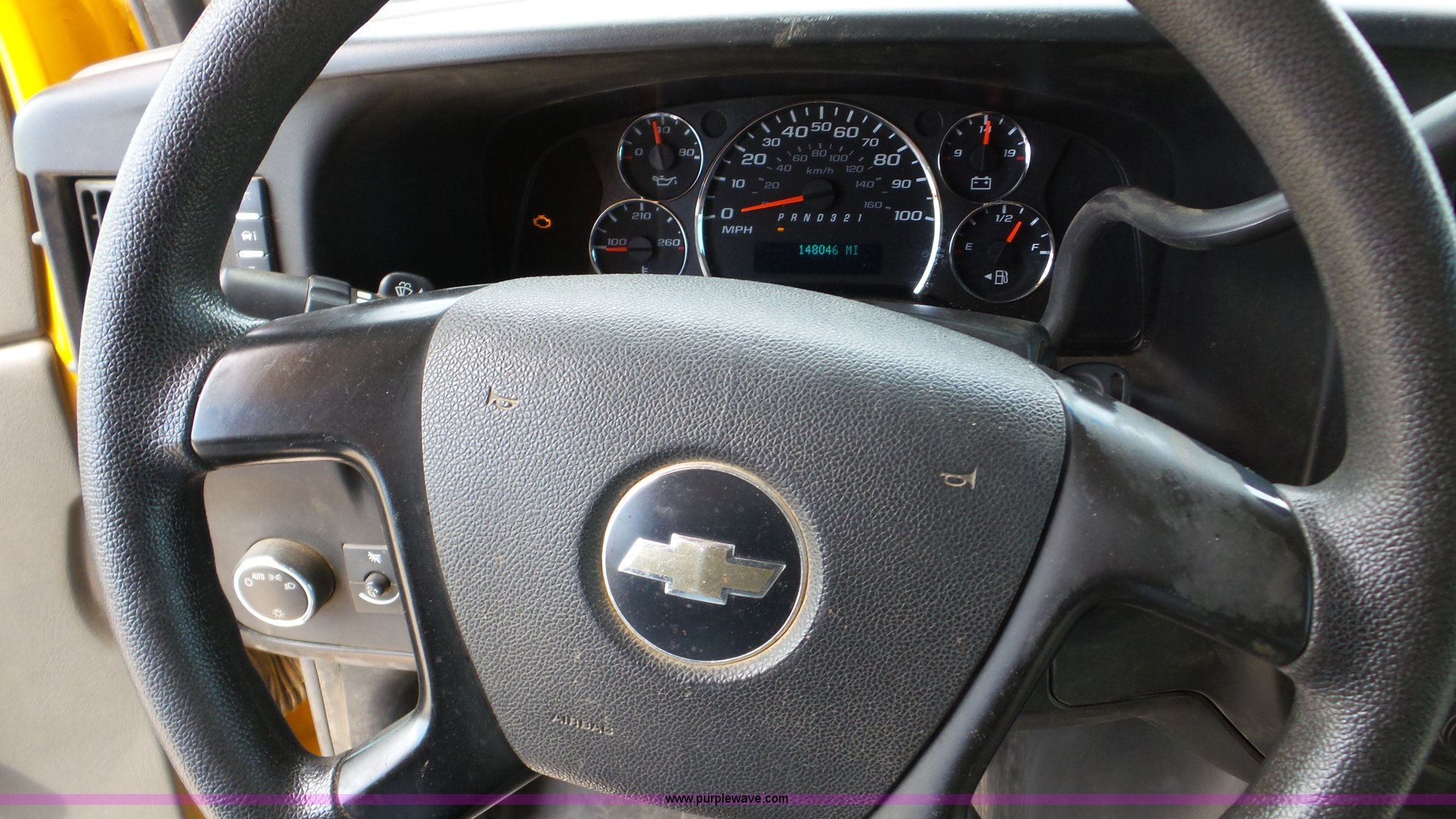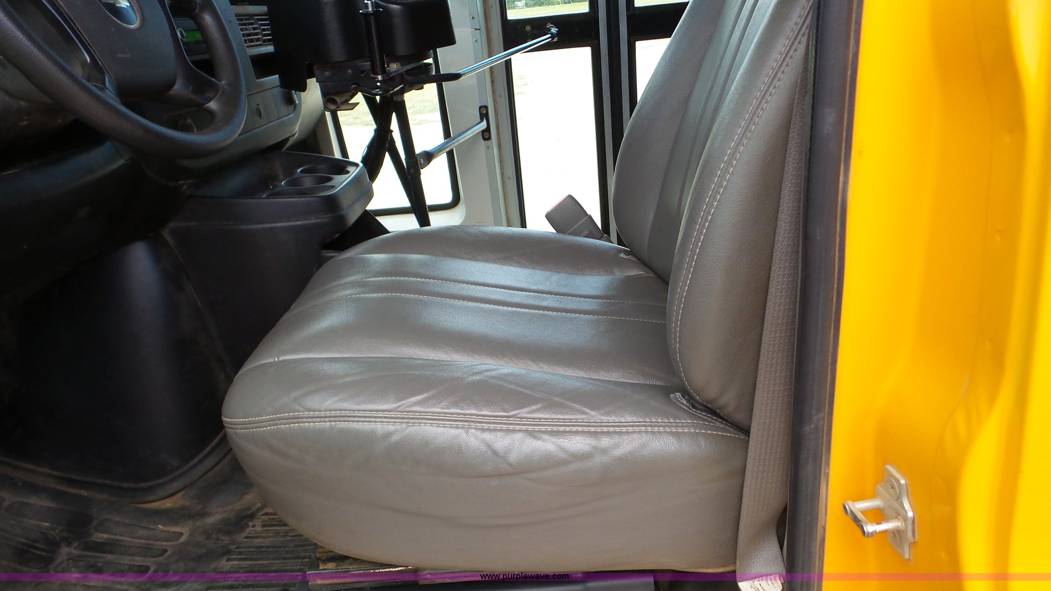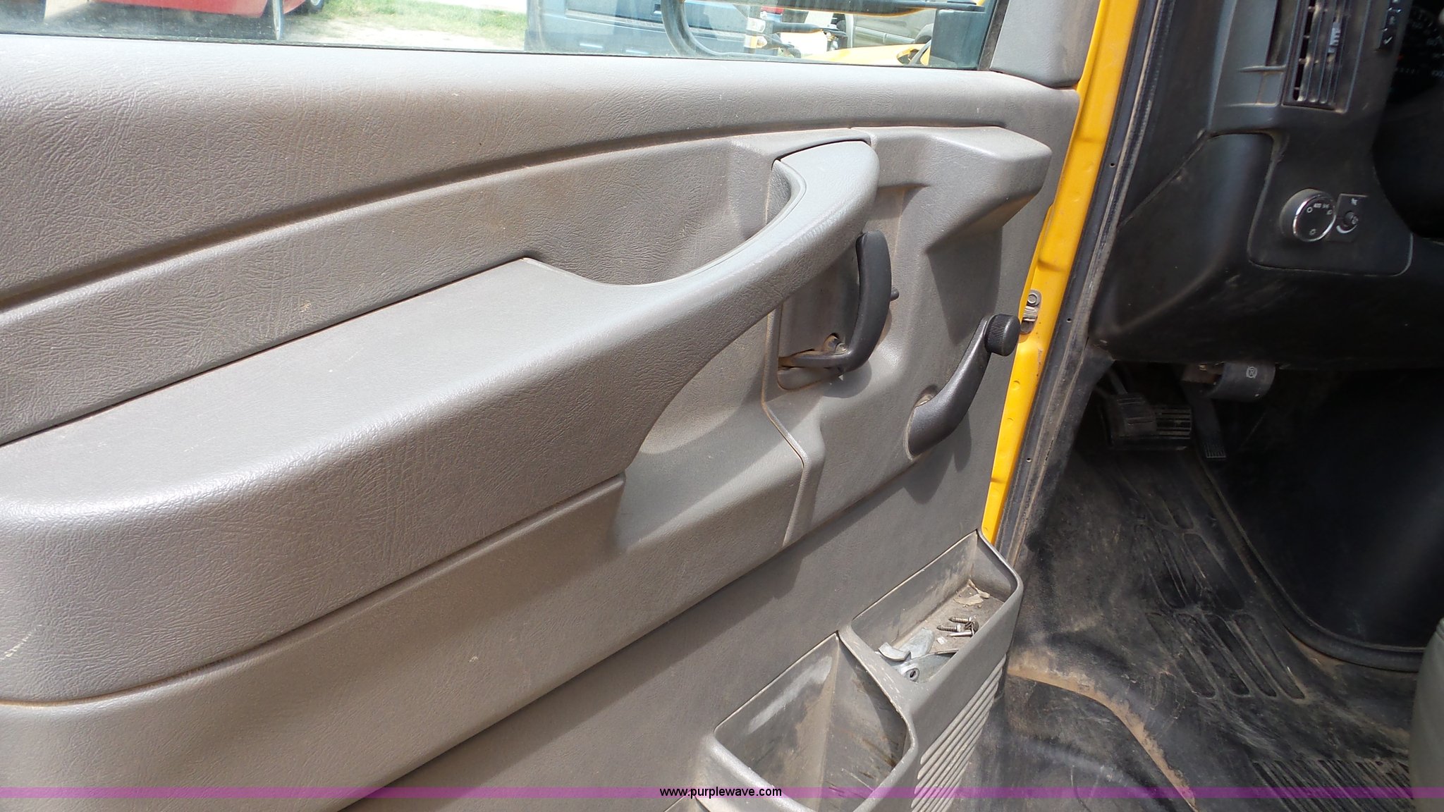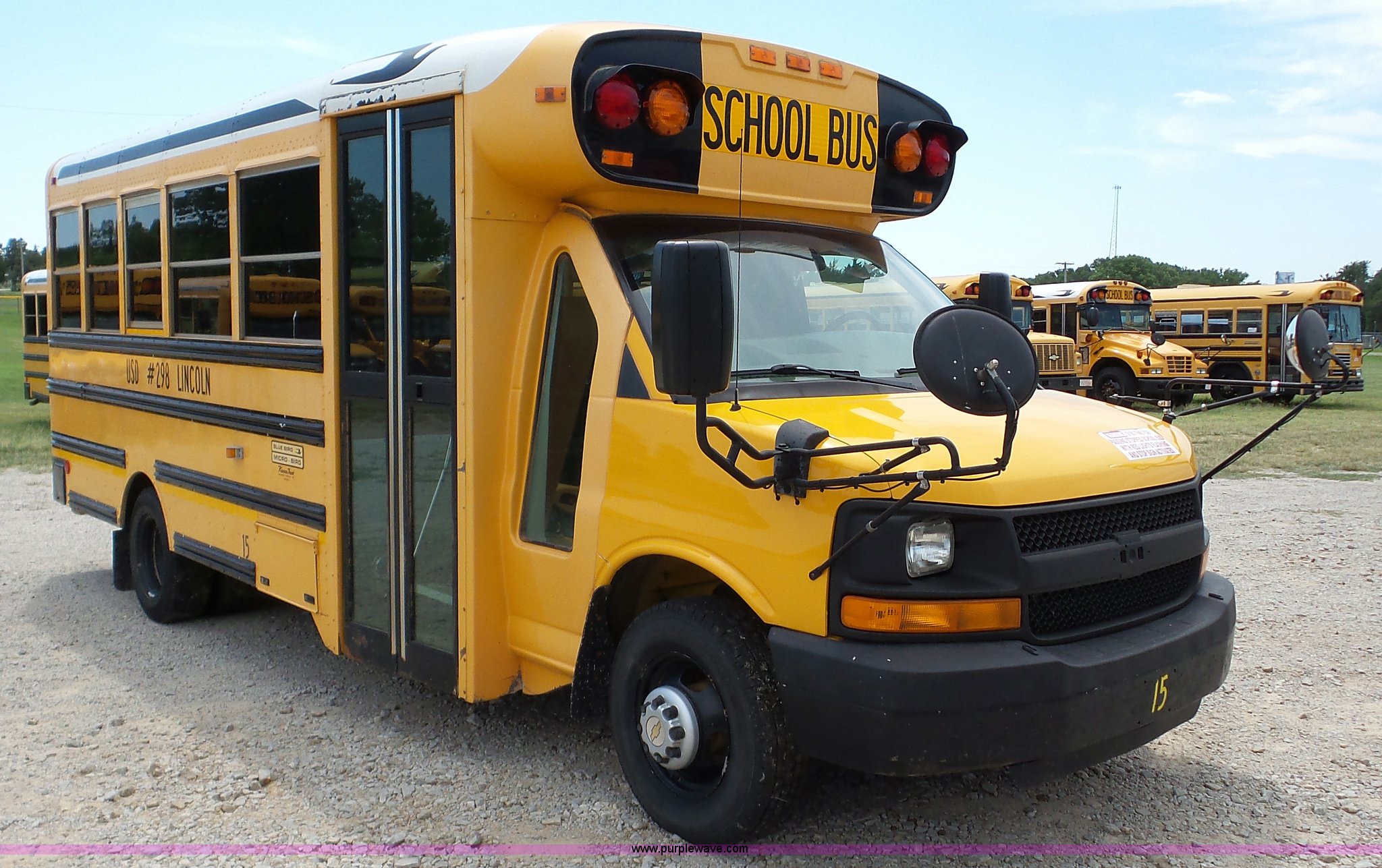 Purple Wave is selling a used Bus in Kansas. This item is a 2009 Chevrolet Express 3500 Cargo school bus with the following: 148,046 miles on odometer, 6.0L V8 OHV 16V gas engine, Automatic transmission, Single axle, AC and heat, AM/FM, 29 passenger capacity, Lighted stop sign, Spring suspension, Hydraulic brakes, 225/75R16 tires, Rust, Weak battery, Unit# 15