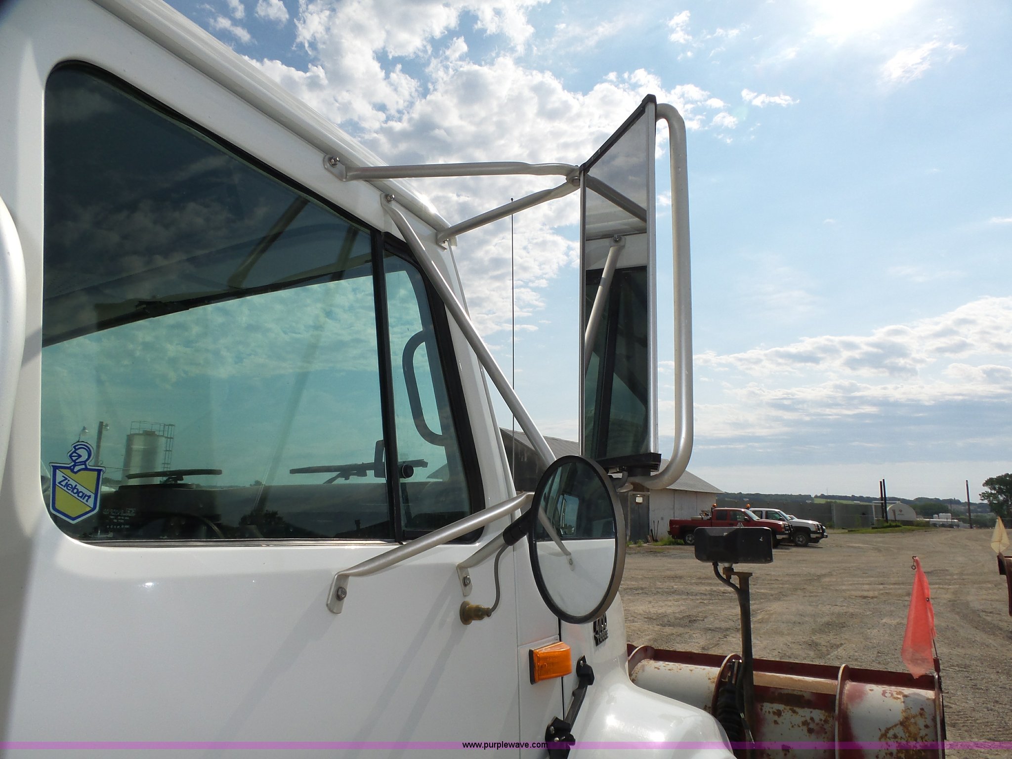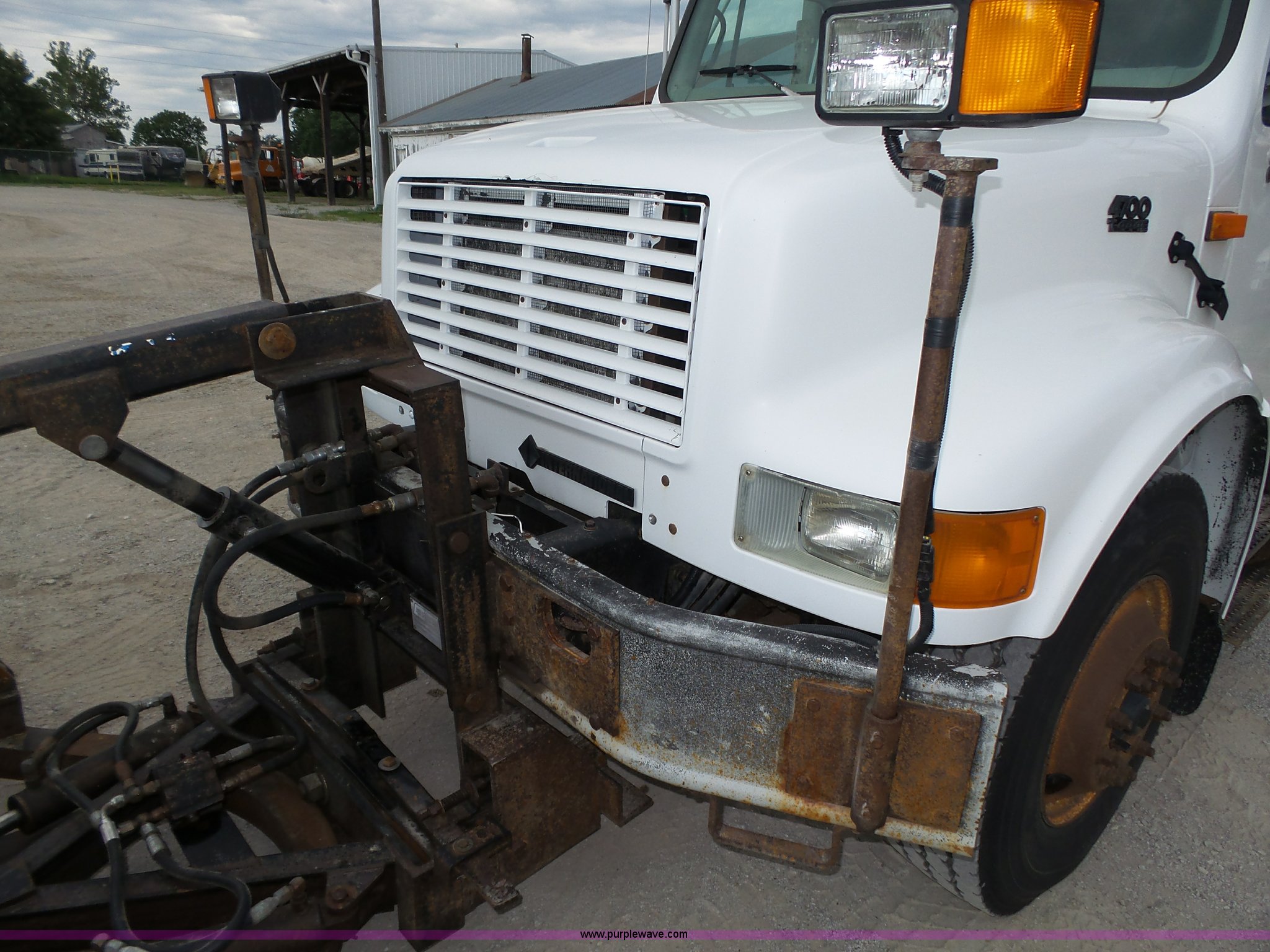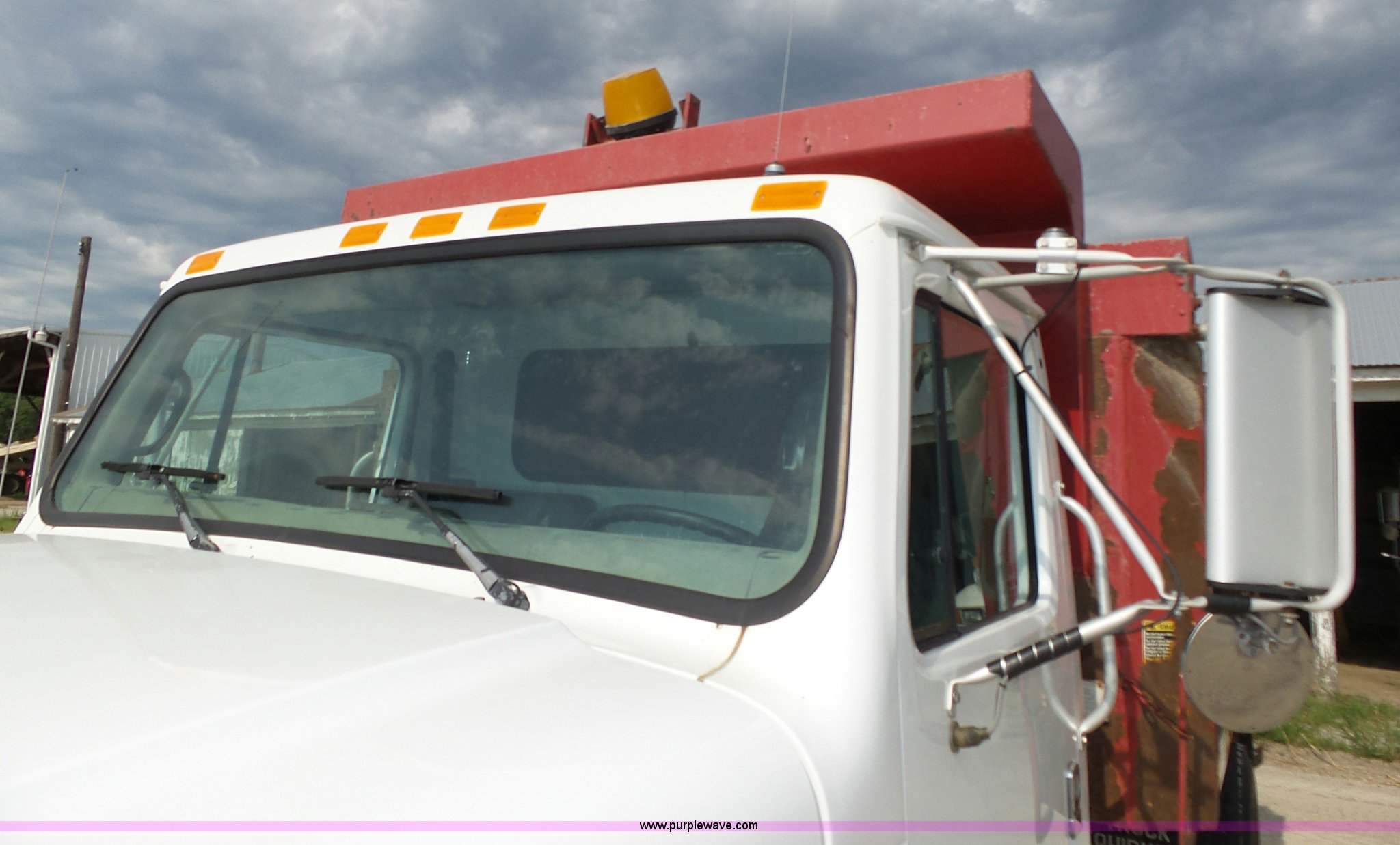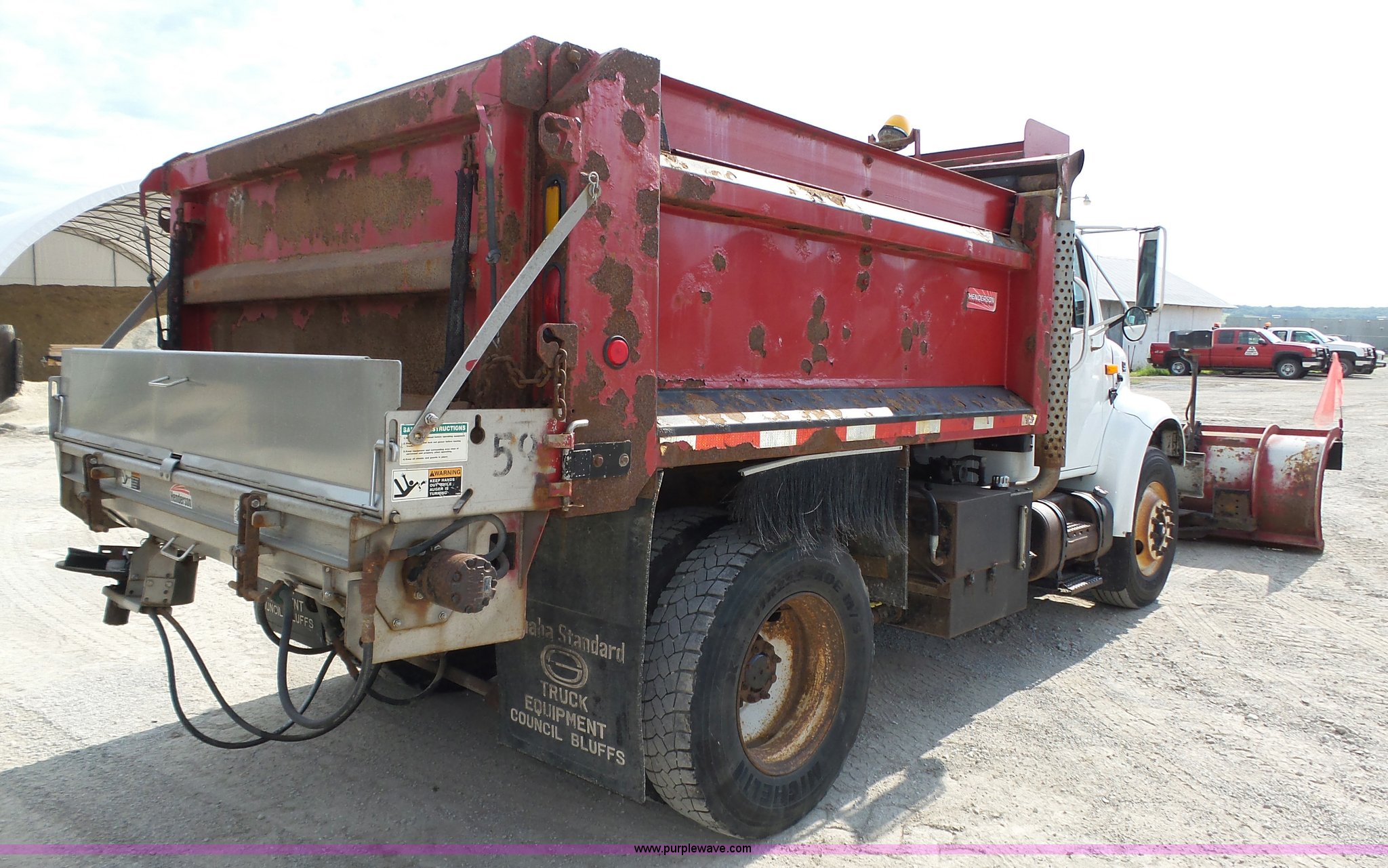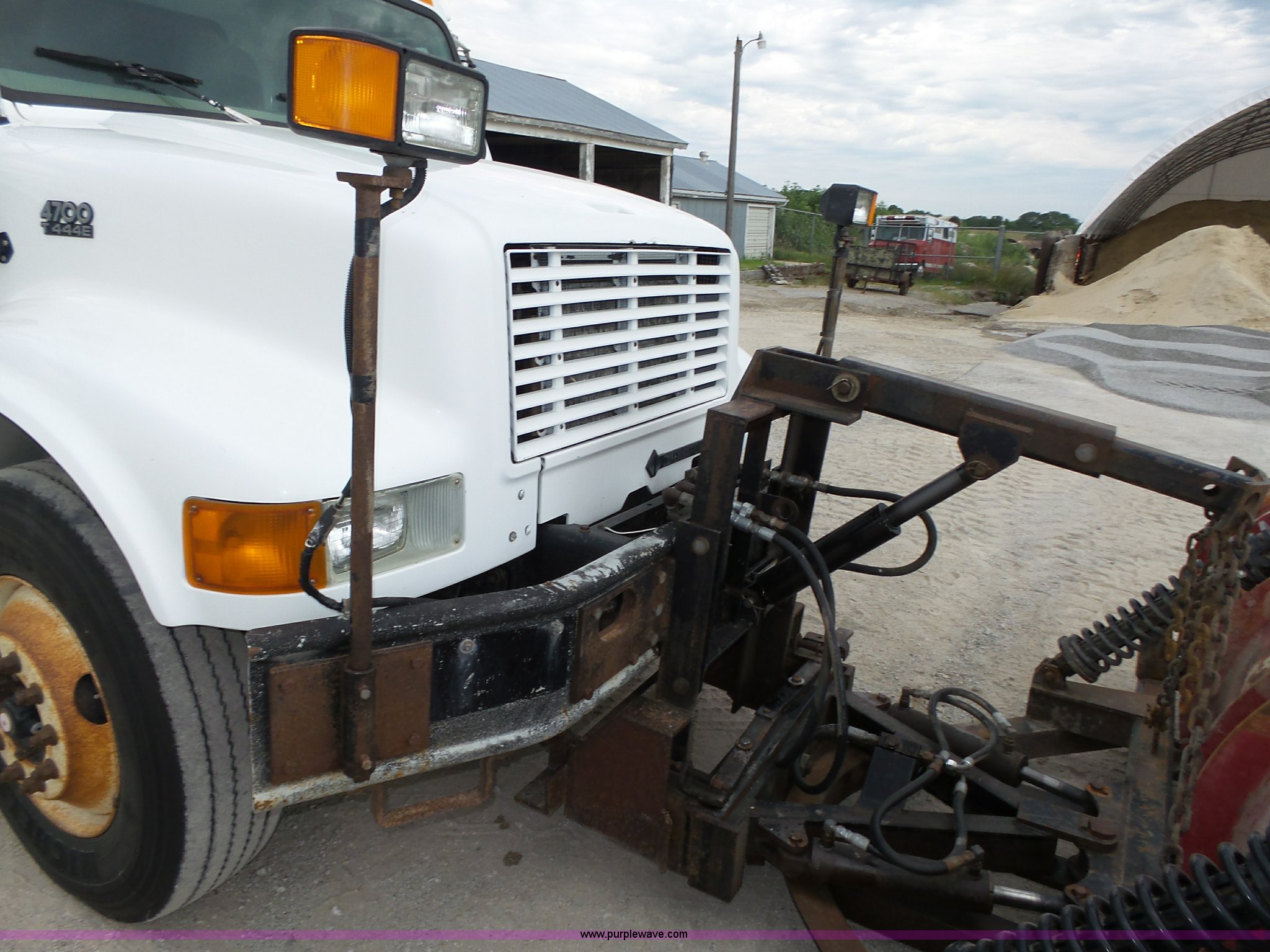 Purple Wave is selling a used Construction Dump Truck in Iowa. This item is a 2001 International 4700 dump truck with the following: 96,509 miles on odometer, International T444E 7.3L V8 turbo diesel engine, Automatic transmission, Single axle, AC and heat, Cruise, AM/FM/weatherband, Heated mirrors, Air suspension seat, Vinyl seats, Block heater, Beacon lights, Component Technology MS203 control panel, Plow and spreader controls, Single rear exhaust stack, Hydraulic reservoir, PTO, Henderson 10x30xUB steel dump bed, 10'L x 96"W, 30" side height, 8" side board height, Single ram hoist, Manual end gate, Serial HDSA-10765, Henderson plow hitch, Model 82435, Serial HT-00684, Henderson 11x36x15 plow, 11'W, Serial RSP-00873, Henderson 96x9xDDx034SS spreader, Front and rear tow hooks, Dual fuel tanks, Spring suspension, Air brakes, 152" wheelbase, 11R22.5 tires, GVWR 35,000 lbs, FAWR 12,000 lbs, RAWR 23,000 lbs, Engine manual, Unit# 81