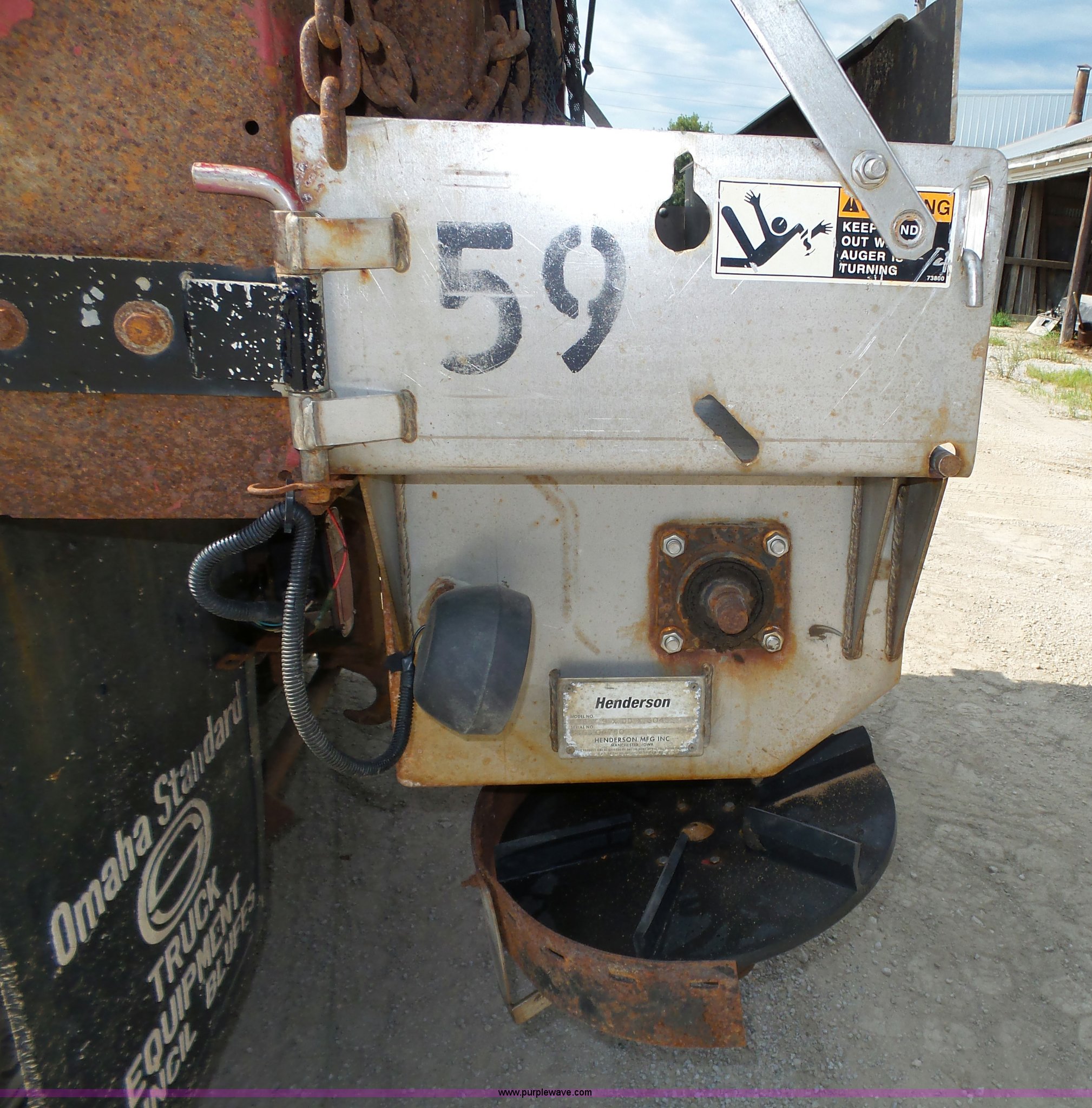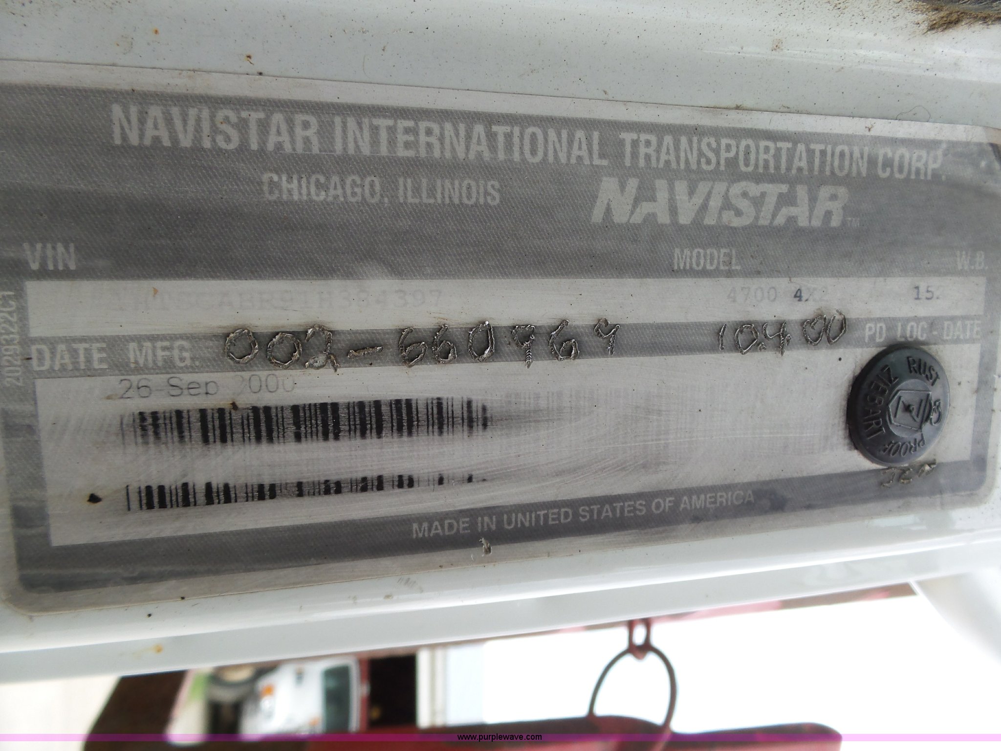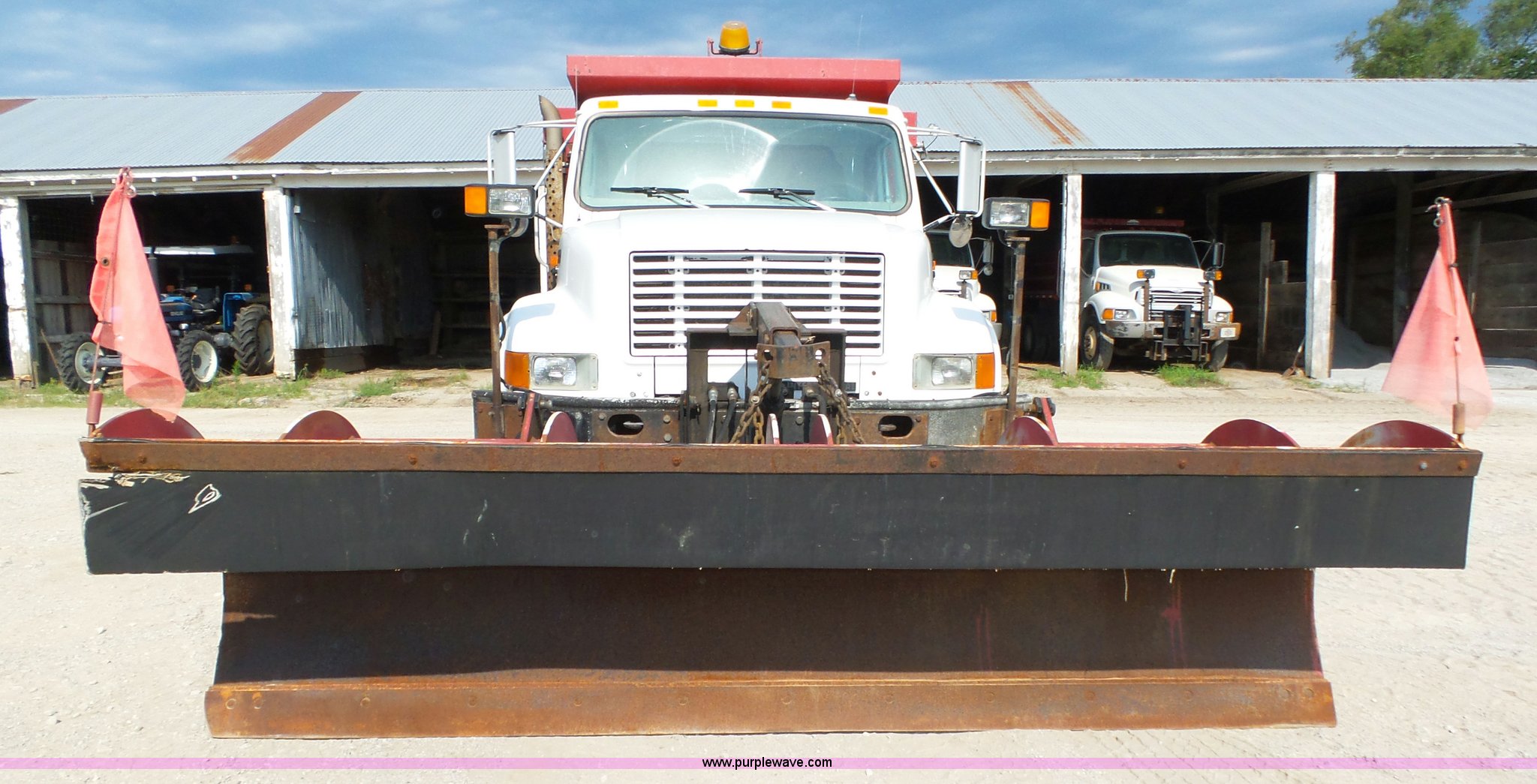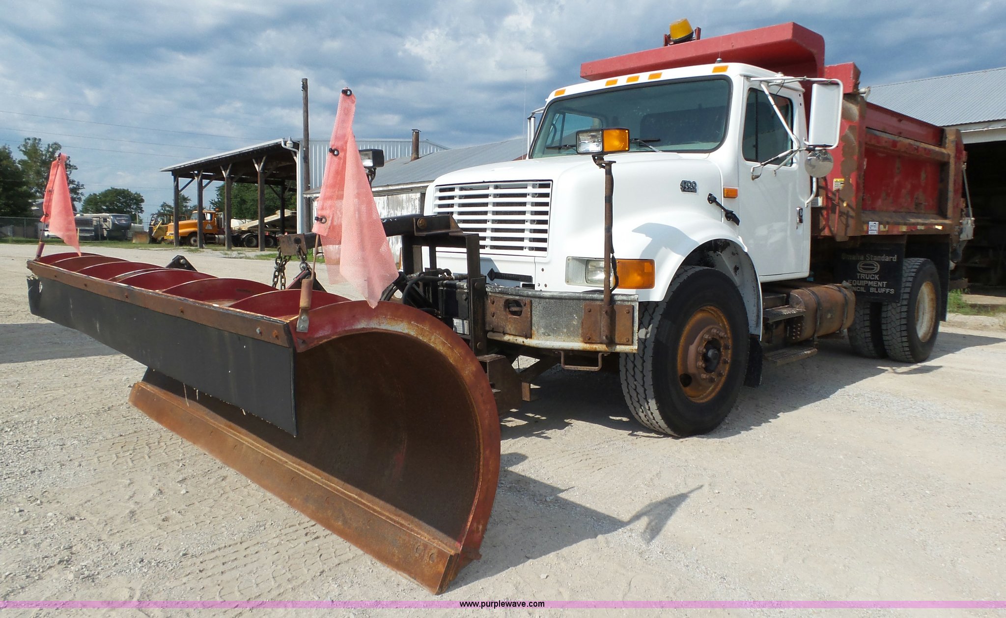 Purple Wave is selling a used Construction Dump Truck in Iowa. This item is a 2001 International 4700 dump truck with the following: 96,509 miles on odometer, International T444E 7.3L V8 turbo diesel engine, Automatic transmission, Single axle, AC and heat, Cruise, AM/FM/weatherband, Heated mirrors, Air suspension seat, Vinyl seats, Block heater, Beacon lights, Component Technology MS203 control panel, Plow and spreader controls, Single rear exhaust stack, Hydraulic reservoir, PTO, Henderson 10x30xUB steel dump bed, 10'L x 96"W, 30" side height, 8" side board height, Single ram hoist, Manual end gate, Serial HDSA-10765, Henderson plow hitch, Model 82435, Serial HT-00684, Henderson 11x36x15 plow, 11'W, Serial RSP-00873, Henderson 96x9xDDx034SS spreader, Front and rear tow hooks, Dual fuel tanks, Spring suspension, Air brakes, 152" wheelbase, 11R22.5 tires, GVWR 35,000 lbs, FAWR 12,000 lbs, RAWR 23,000 lbs, Engine manual, Unit# 81
