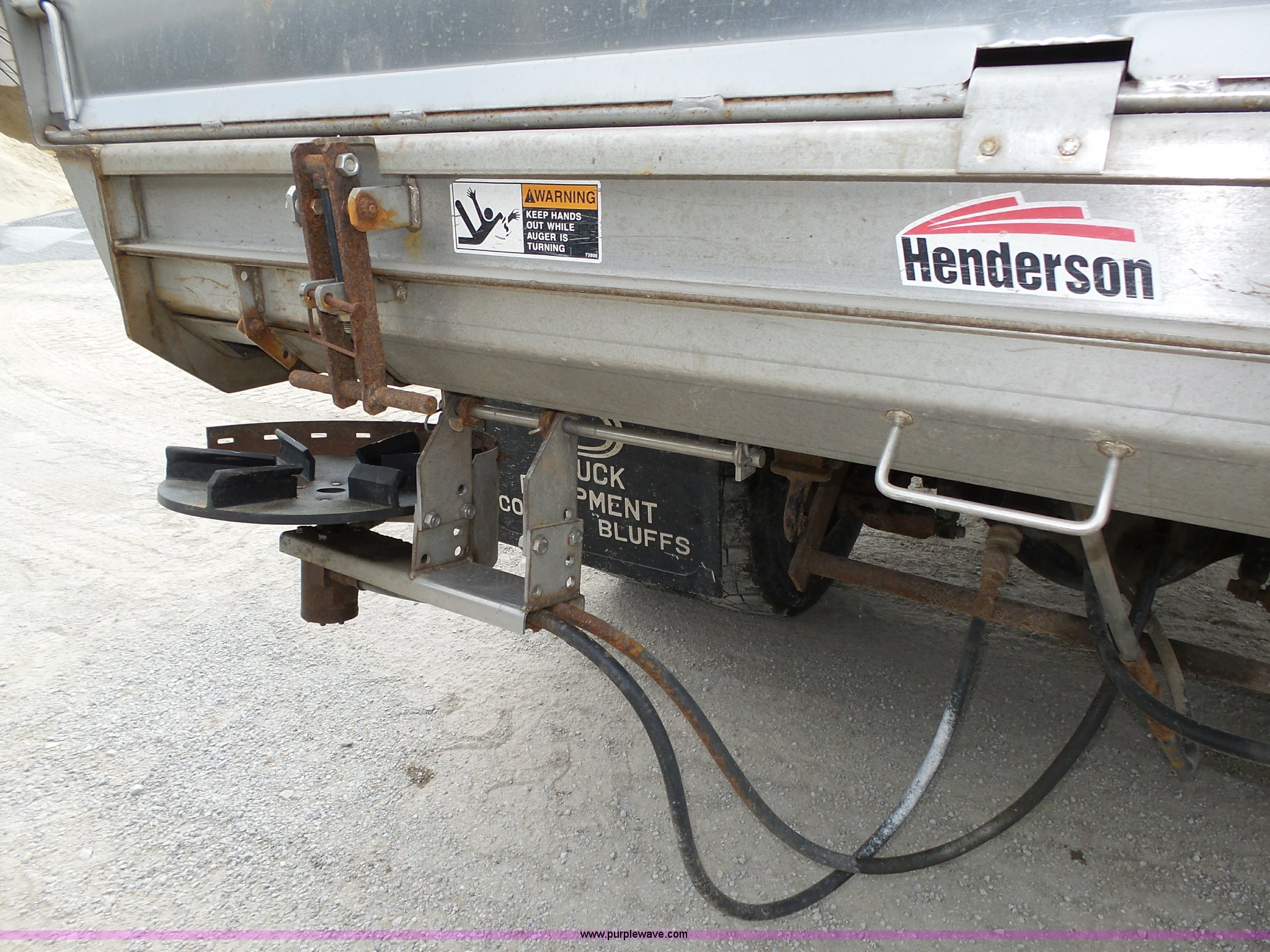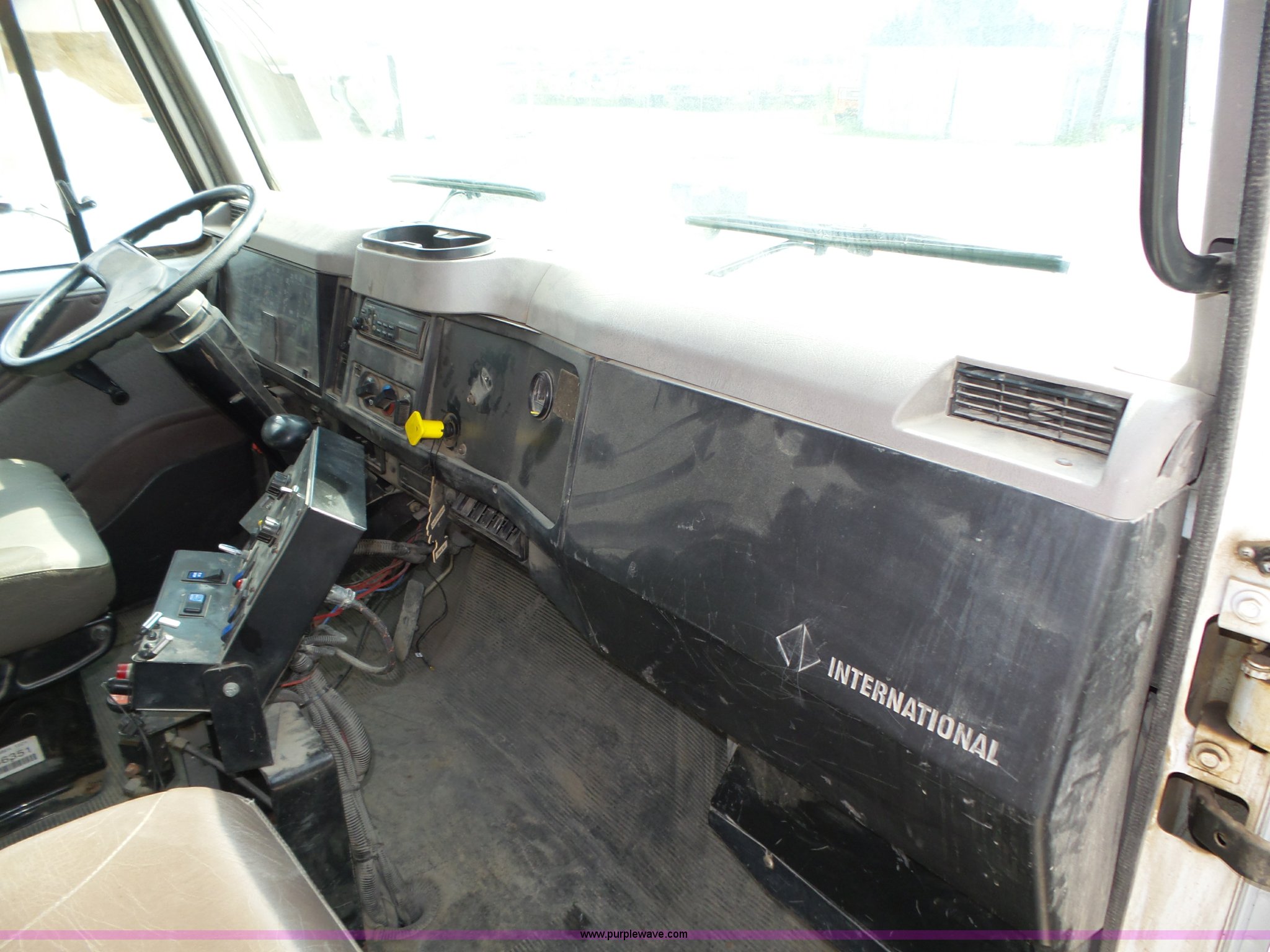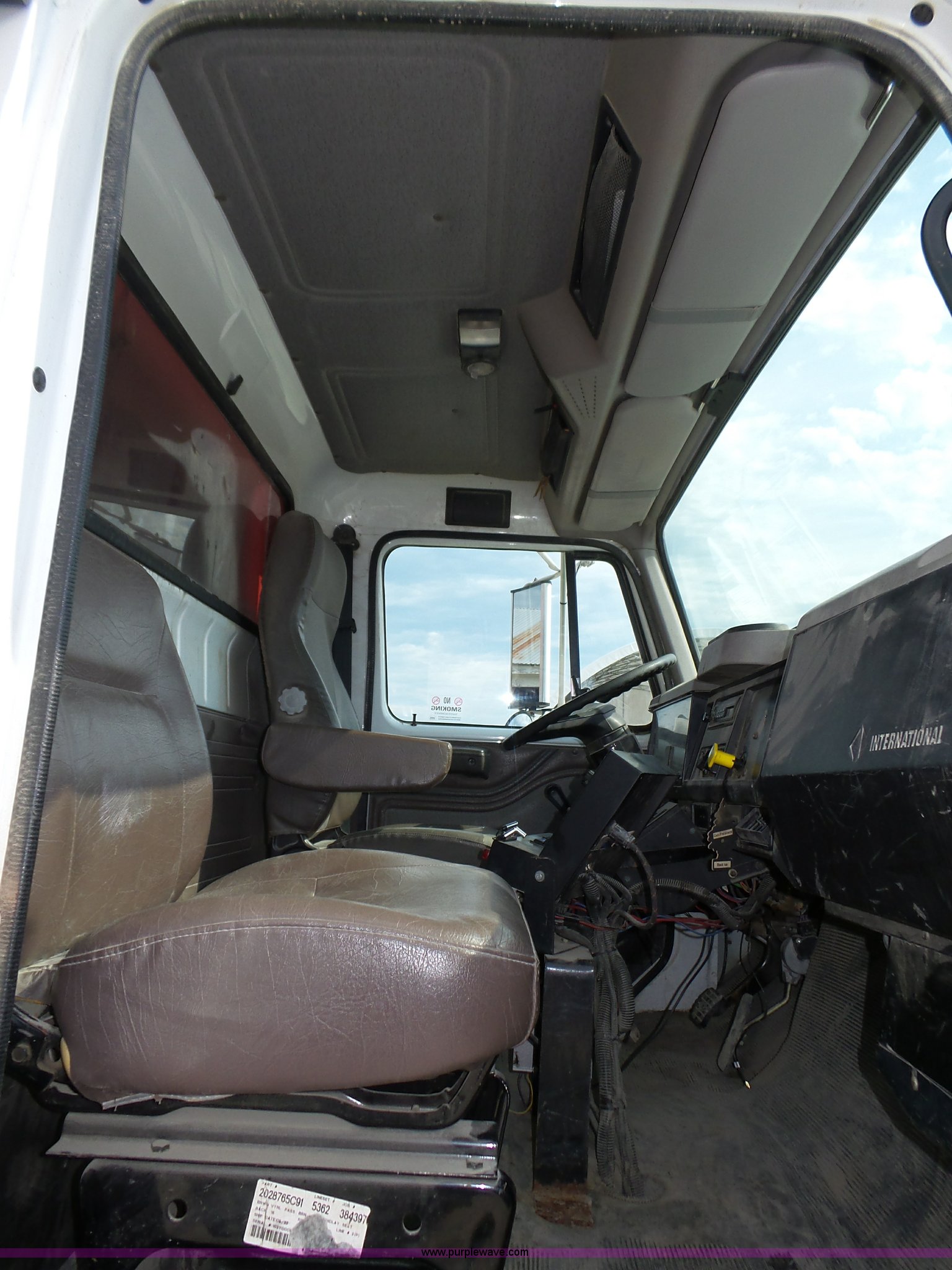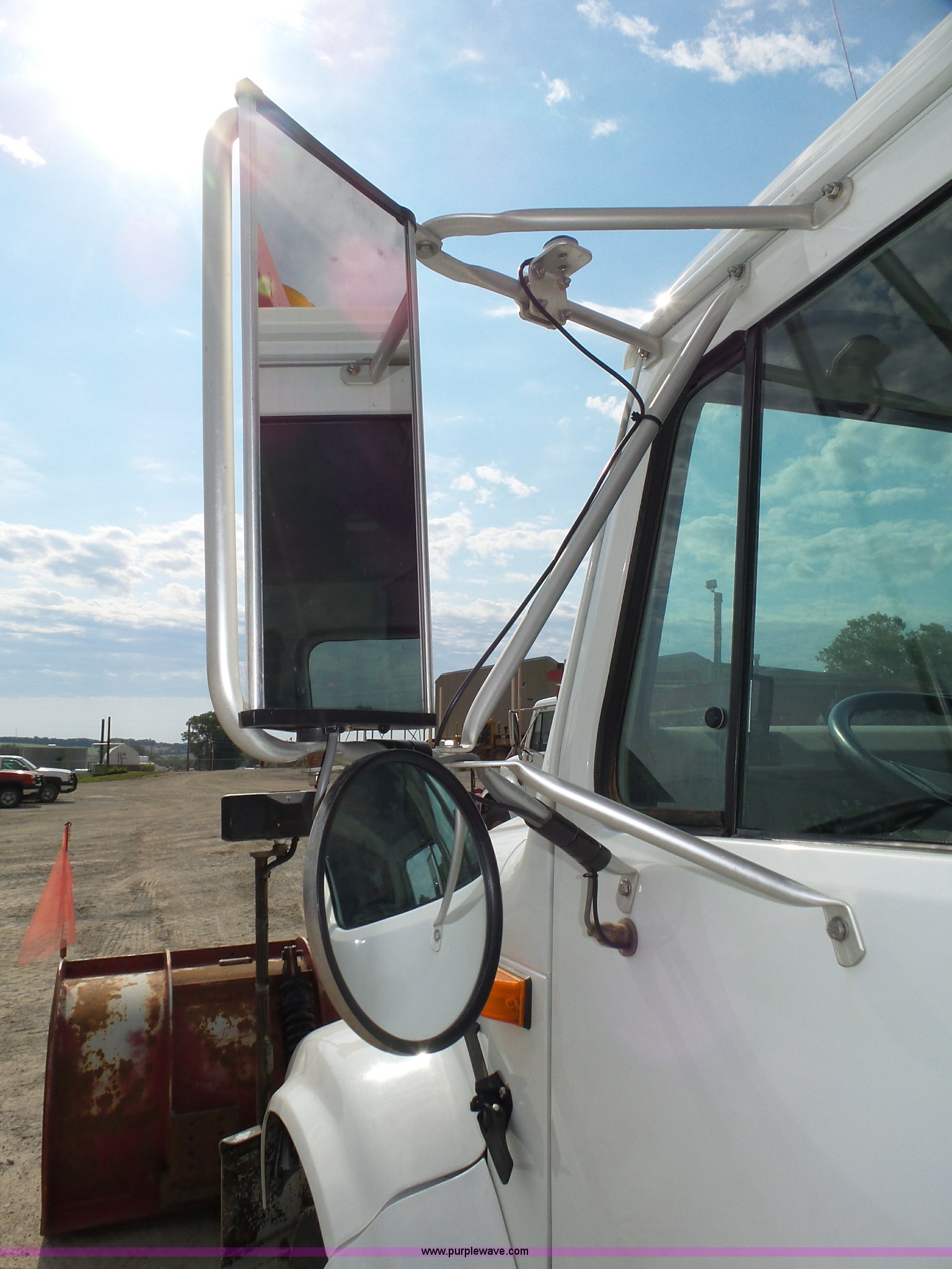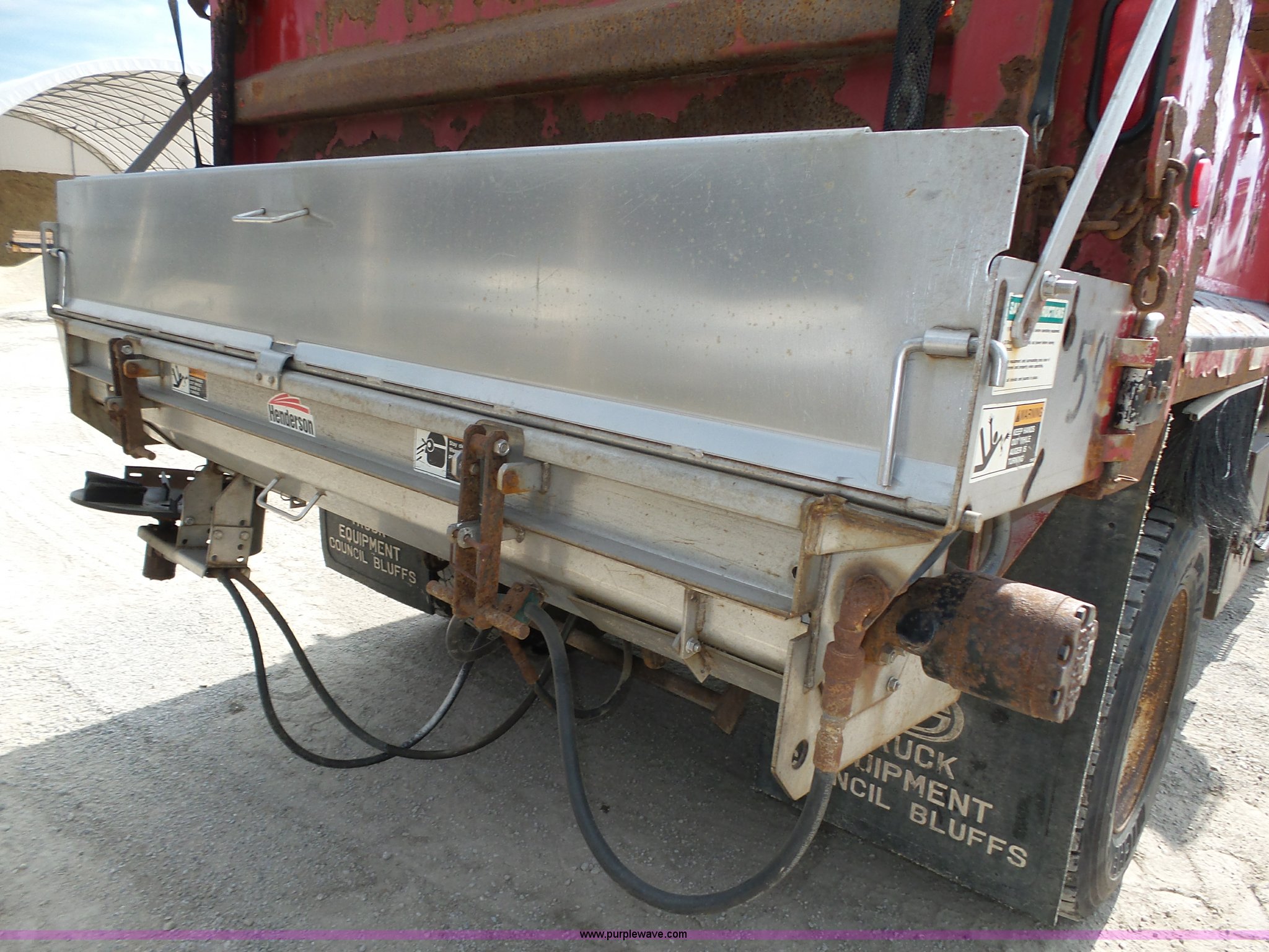 Purple Wave is selling a used Construction Dump Truck in Iowa. This item is a 2001 International 4700 dump truck with the following: 96,509 miles on odometer, International T444E 7.3L V8 turbo diesel engine, Automatic transmission, Single axle, AC and heat, Cruise, AM/FM/weatherband, Heated mirrors, Air suspension seat, Vinyl seats, Block heater, Beacon lights, Component Technology MS203 control panel, Plow and spreader controls, Single rear exhaust stack, Hydraulic reservoir, PTO, Henderson 10x30xUB steel dump bed, 10'L x 96"W, 30" side height, 8" side board height, Single ram hoist, Manual end gate, Serial HDSA-10765, Henderson plow hitch, Model 82435, Serial HT-00684, Henderson 11x36x15 plow, 11'W, Serial RSP-00873, Henderson 96x9xDDx034SS spreader, Front and rear tow hooks, Dual fuel tanks, Spring suspension, Air brakes, 152" wheelbase, 11R22.5 tires, GVWR 35,000 lbs, FAWR 12,000 lbs, RAWR 23,000 lbs, Engine manual, Unit# 81