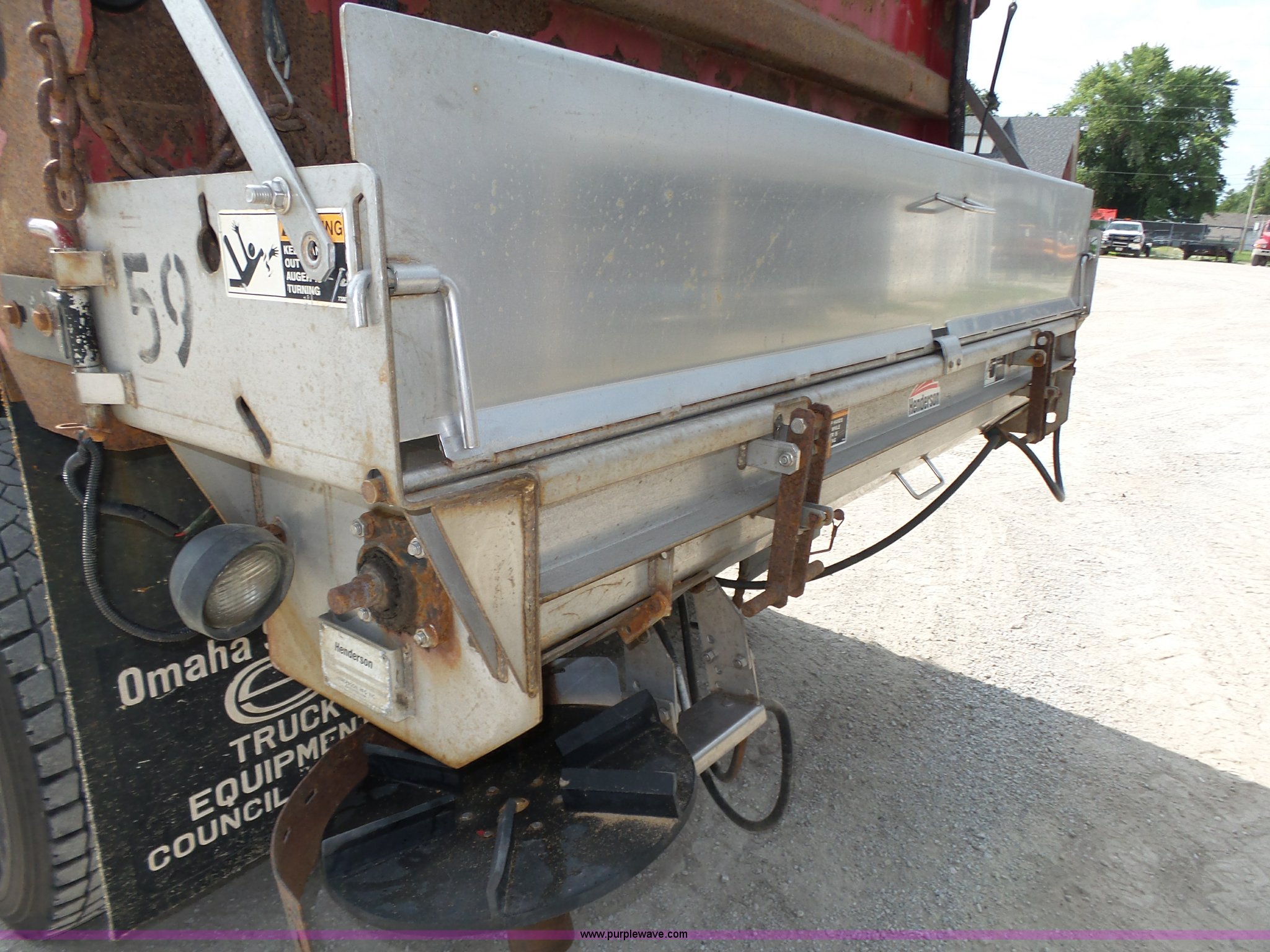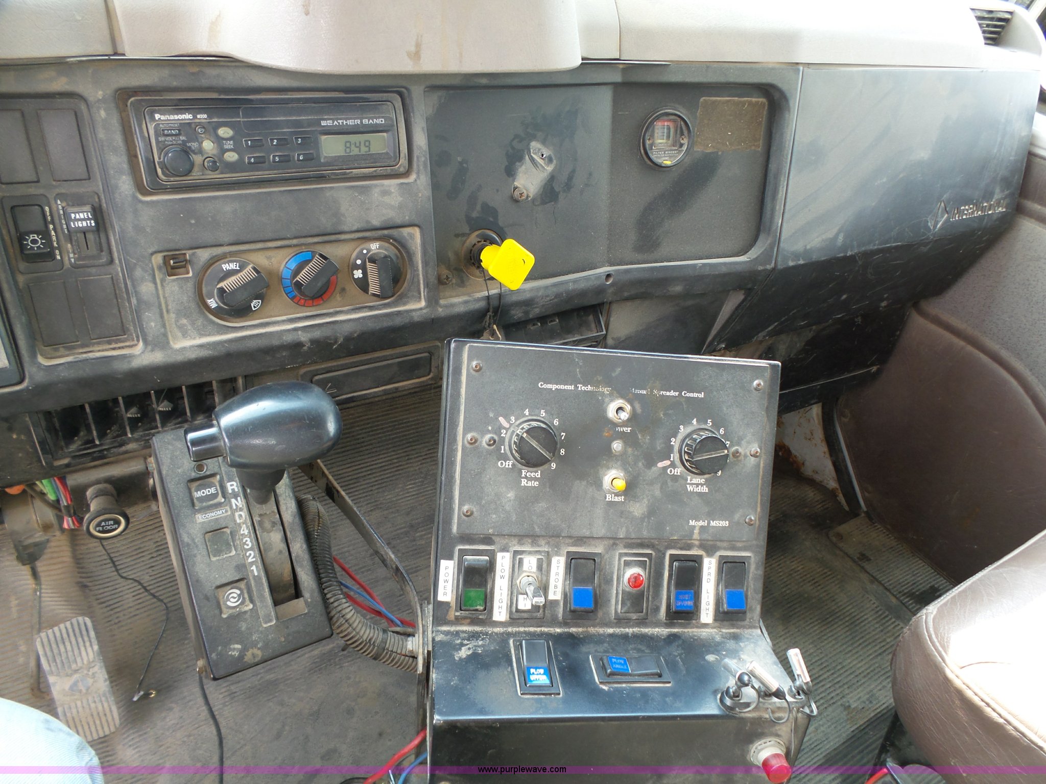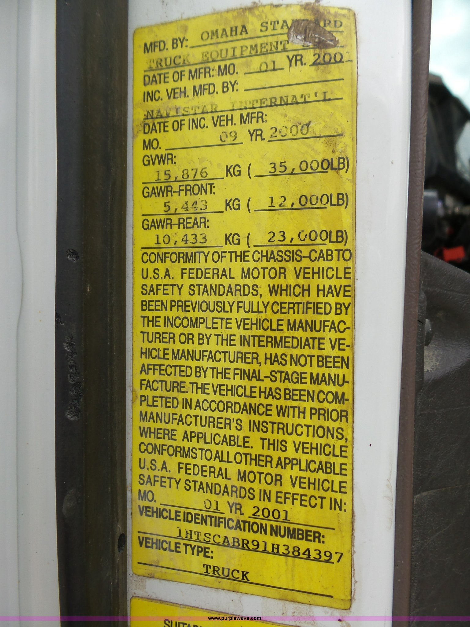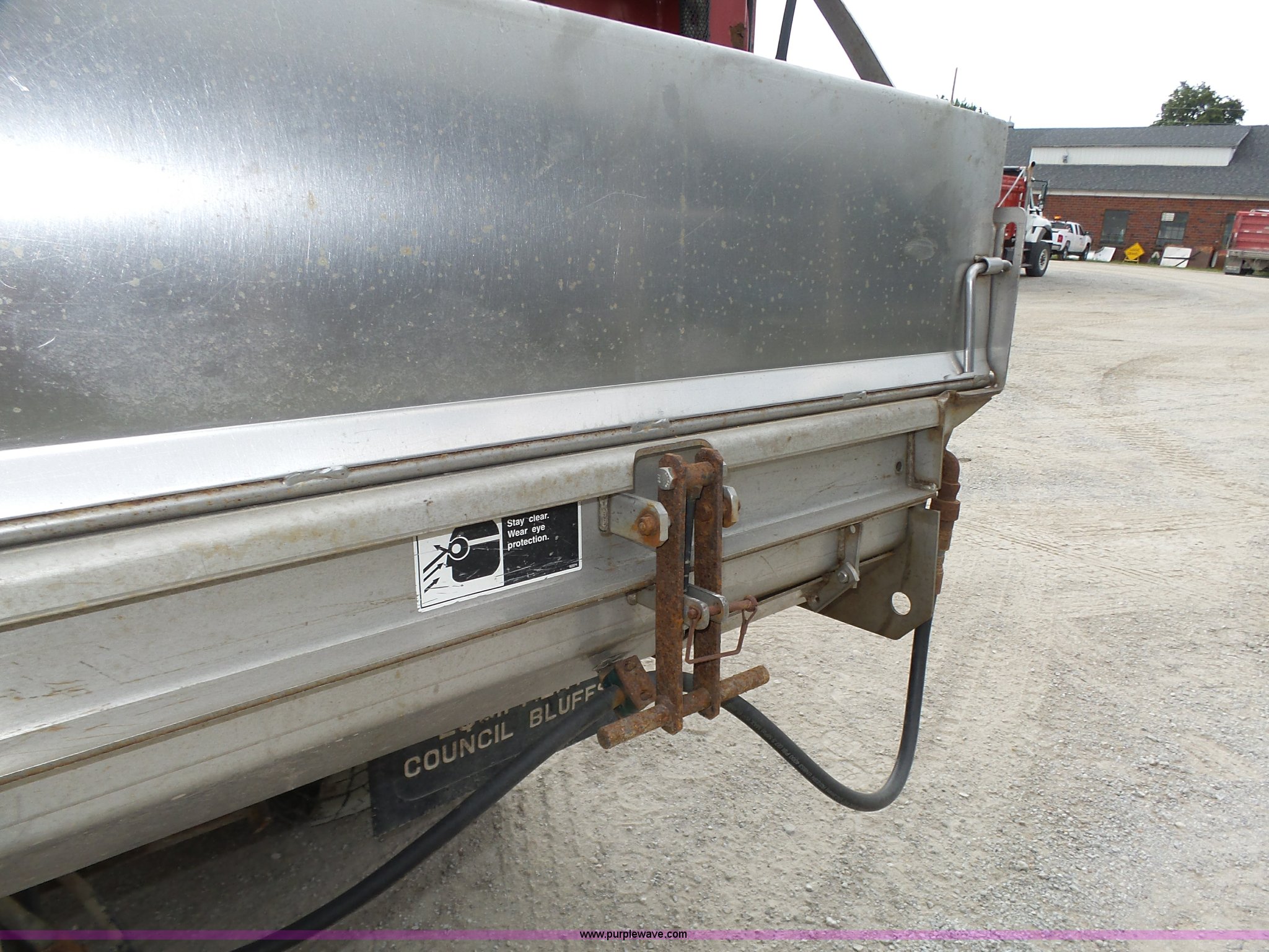 Purple Wave is selling a used Construction Dump Truck in Iowa. This item is a 2001 International 4700 dump truck with the following: 96,509 miles on odometer, International T444E 7.3L V8 turbo diesel engine, Automatic transmission, Single axle, AC and heat, Cruise, AM/FM/weatherband, Heated mirrors, Air suspension seat, Vinyl seats, Block heater, Beacon lights, Component Technology MS203 control panel, Plow and spreader controls, Single rear exhaust stack, Hydraulic reservoir, PTO, Henderson 10x30xUB steel dump bed, 10'L x 96"W, 30" side height, 8" side board height, Single ram hoist, Manual end gate, Serial HDSA-10765, Henderson plow hitch, Model 82435, Serial HT-00684, Henderson 11x36x15 plow, 11'W, Serial RSP-00873, Henderson 96x9xDDx034SS spreader, Front and rear tow hooks, Dual fuel tanks, Spring suspension, Air brakes, 152" wheelbase, 11R22.5 tires, GVWR 35,000 lbs, FAWR 12,000 lbs, RAWR 23,000 lbs, Engine manual, Unit# 81
