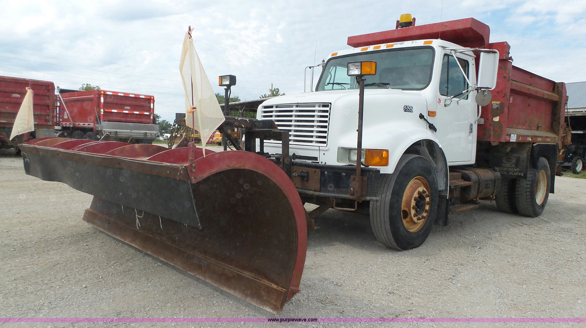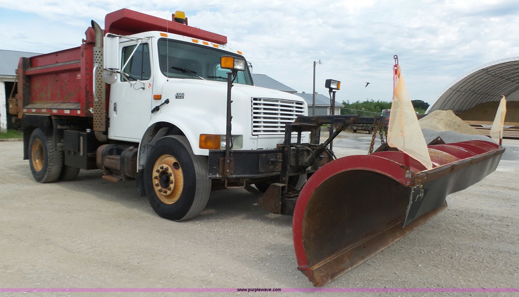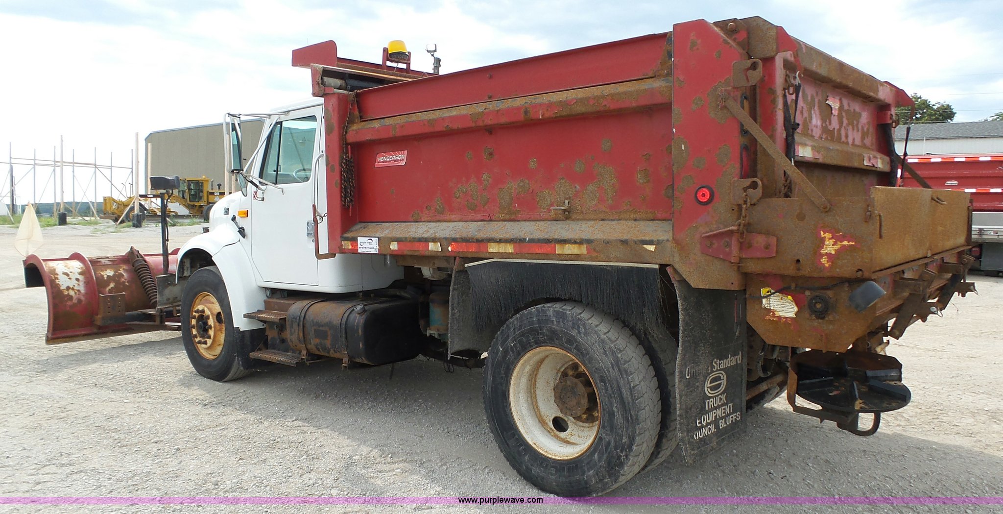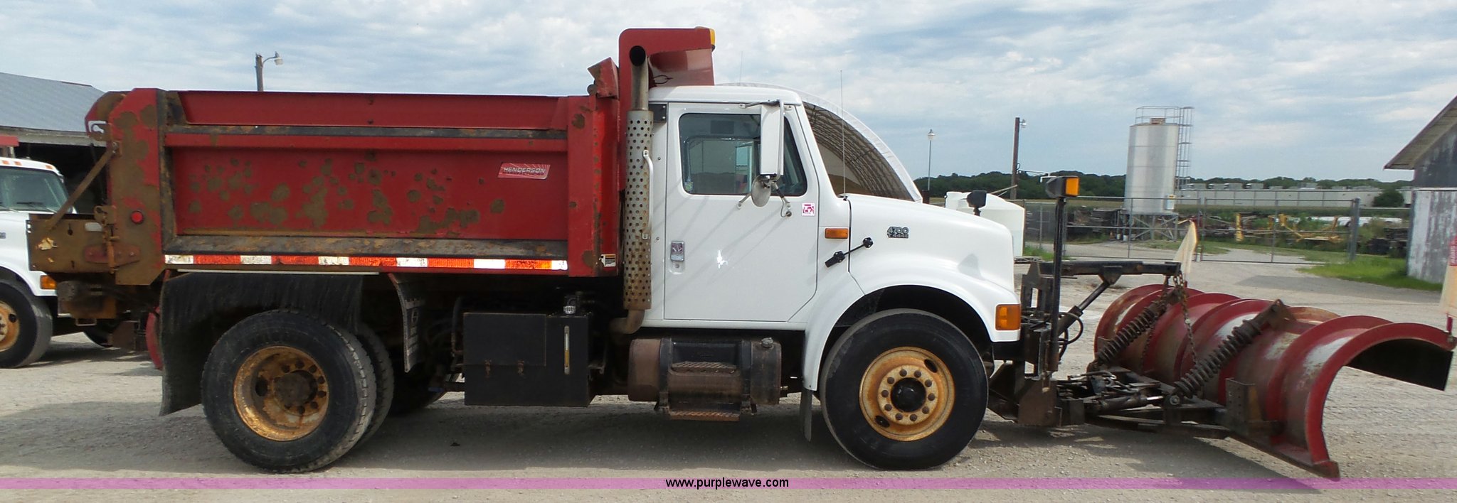 Purple Wave is selling a used Construction Dump Truck in Iowa. This item is a 2001 International 4700 dump truck with the following: 94,594 miles on odometer, International T444E 7.3L V8 turbo diesel engine, Allison automatic transmission, Single axle, AC and Heat, Cruise, AM/FM/weatherband, Heated mirrors, Air suspension seat, Vinyl seats, Beacon lights, Component Techology control panel, Plow and spreader controls, Single rear exhaust stack, Hydraulic reservoir, PTO, Henderson 10x30xUB steel dump bed, 10'L x 96"W, 30" side height, 8" side board height, Single ram hoist, Manual end gate, Serial HDSA-10764, Henderson 82435 plow hitch, Serial HT-00685, Henderson 11x36x15 plow, 11'W, Serial RSP-00874, Highway Equipment Co. SA-9 spreader, 9'W, Serial 11686, Front and rear tow hooks, Dual fuel tanks, Spring suspension, Air brakes, 152" wheelbase, 11R22.5 tires, GVWR 35,000 lbs, FAWR 12,000 lbs, RAWR 23,000 lbs, Engine and transmission manuals, Unit# 79