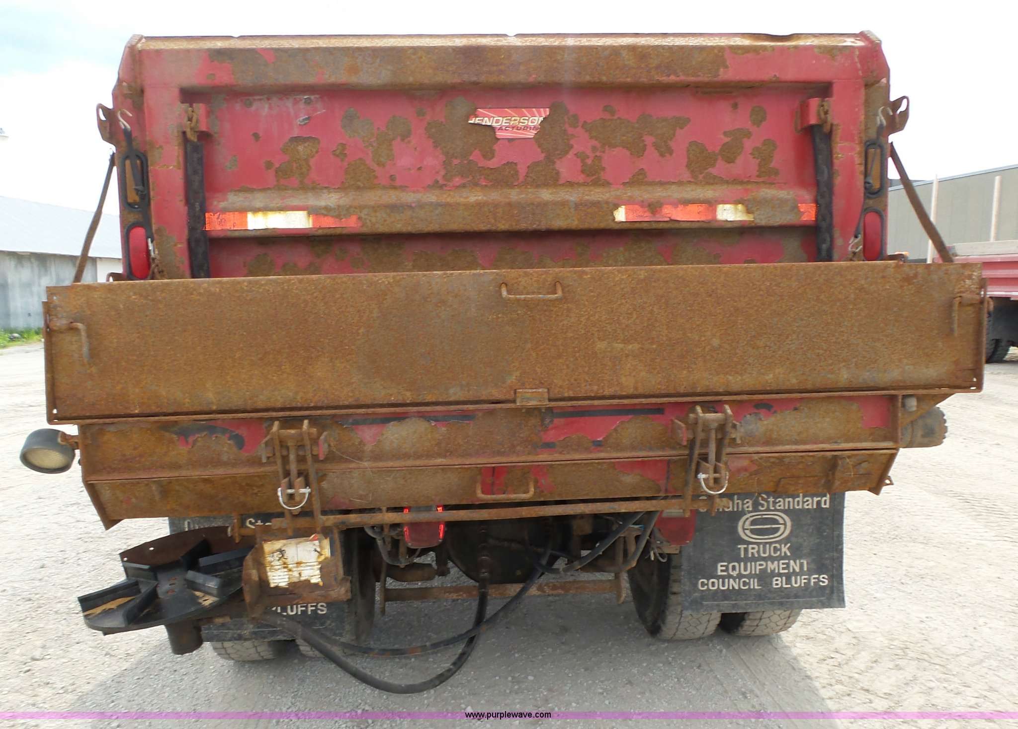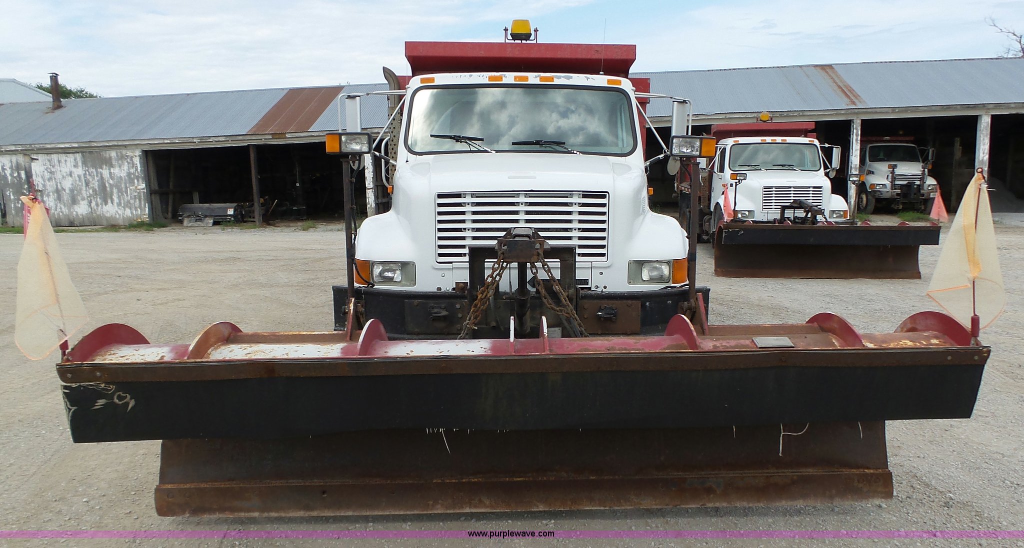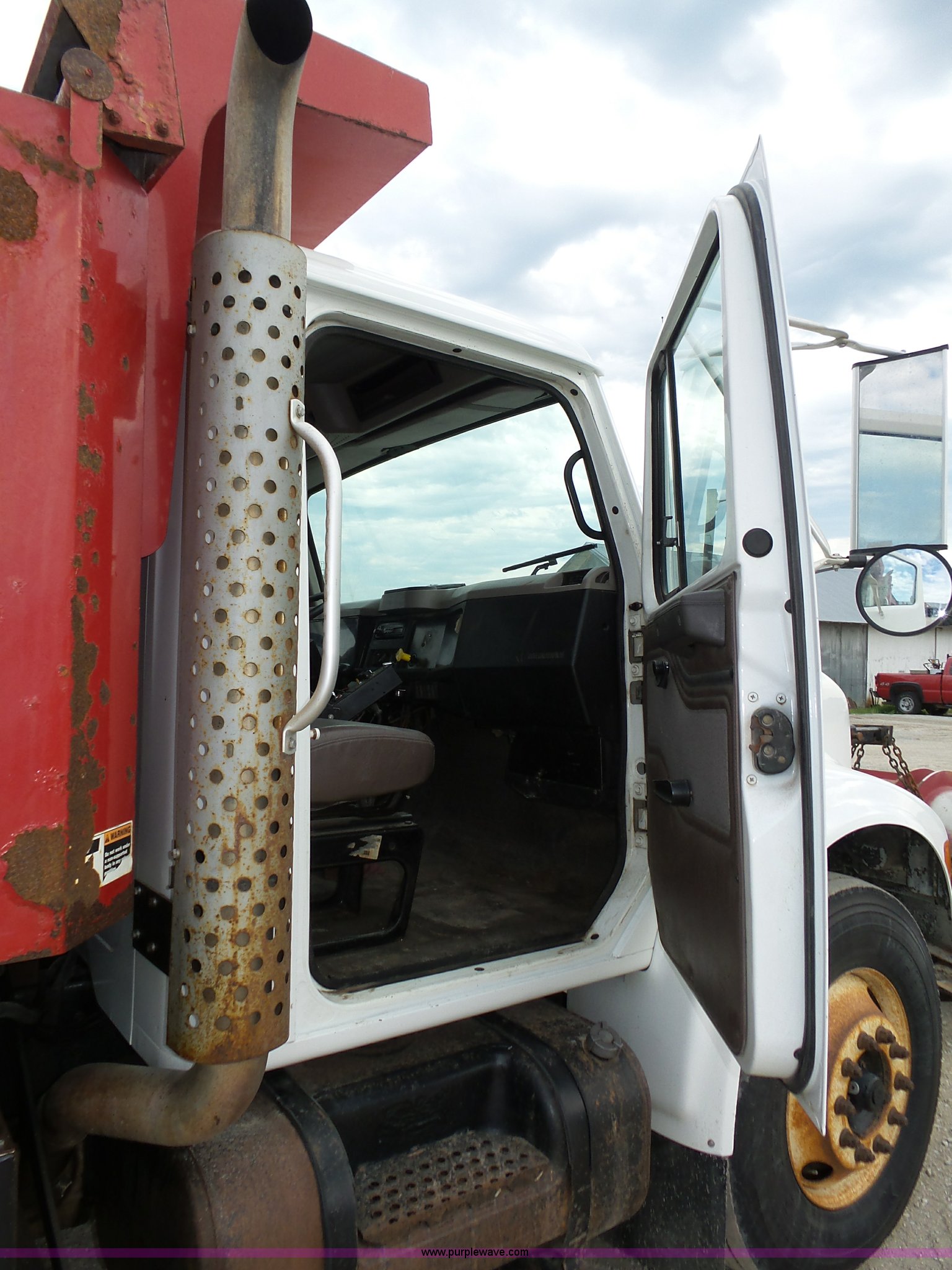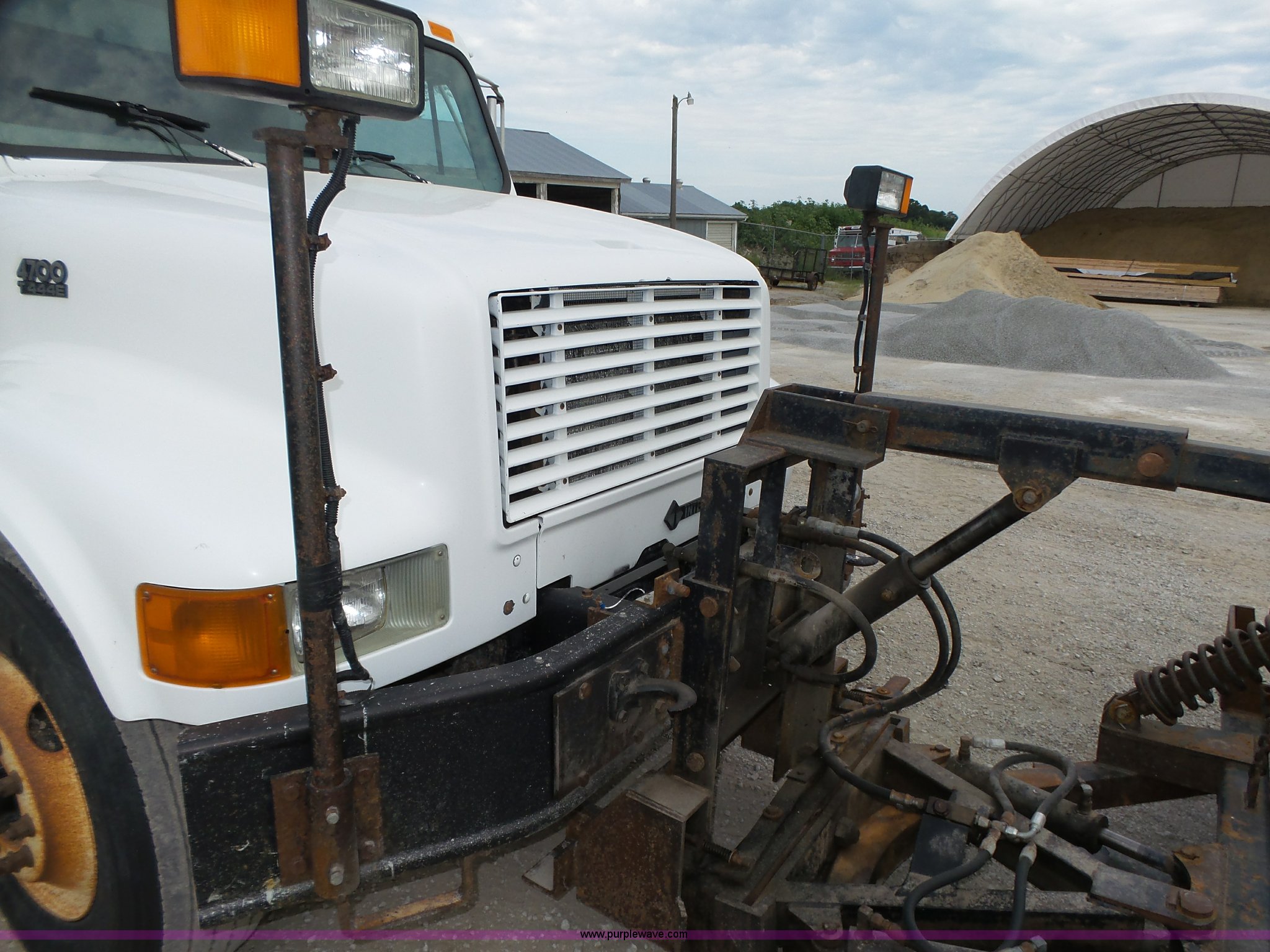 Purple Wave is selling a used Construction Dump Truck in Iowa. This item is a 2001 International 4700 dump truck with the following: 94,594 miles on odometer, International T444E 7.3L V8 turbo diesel engine, Allison automatic transmission, Single axle, AC and Heat, Cruise, AM/FM/weatherband, Heated mirrors, Air suspension seat, Vinyl seats, Beacon lights, Component Techology control panel, Plow and spreader controls, Single rear exhaust stack, Hydraulic reservoir, PTO, Henderson 10x30xUB steel dump bed, 10'L x 96"W, 30" side height, 8" side board height, Single ram hoist, Manual end gate, Serial HDSA-10764, Henderson 82435 plow hitch, Serial HT-00685, Henderson 11x36x15 plow, 11'W, Serial RSP-00874, Highway Equipment Co. SA-9 spreader, 9'W, Serial 11686, Front and rear tow hooks, Dual fuel tanks, Spring suspension, Air brakes, 152" wheelbase, 11R22.5 tires, GVWR 35,000 lbs, FAWR 12,000 lbs, RAWR 23,000 lbs, Engine and transmission manuals, Unit# 79