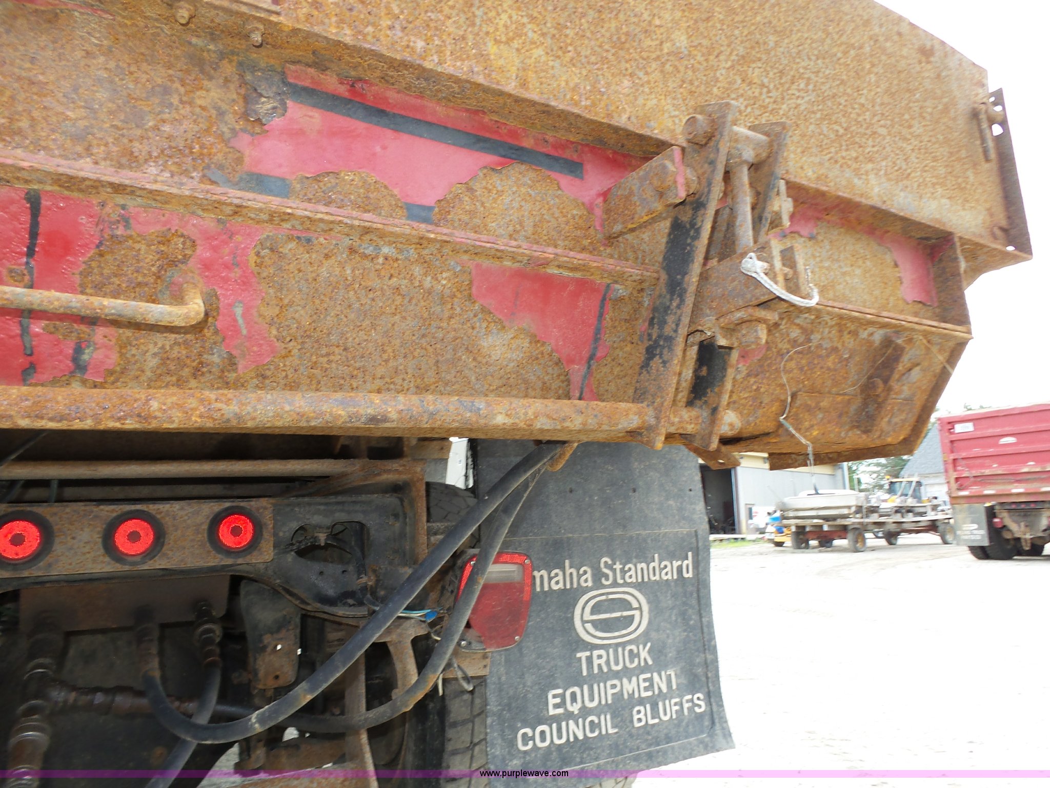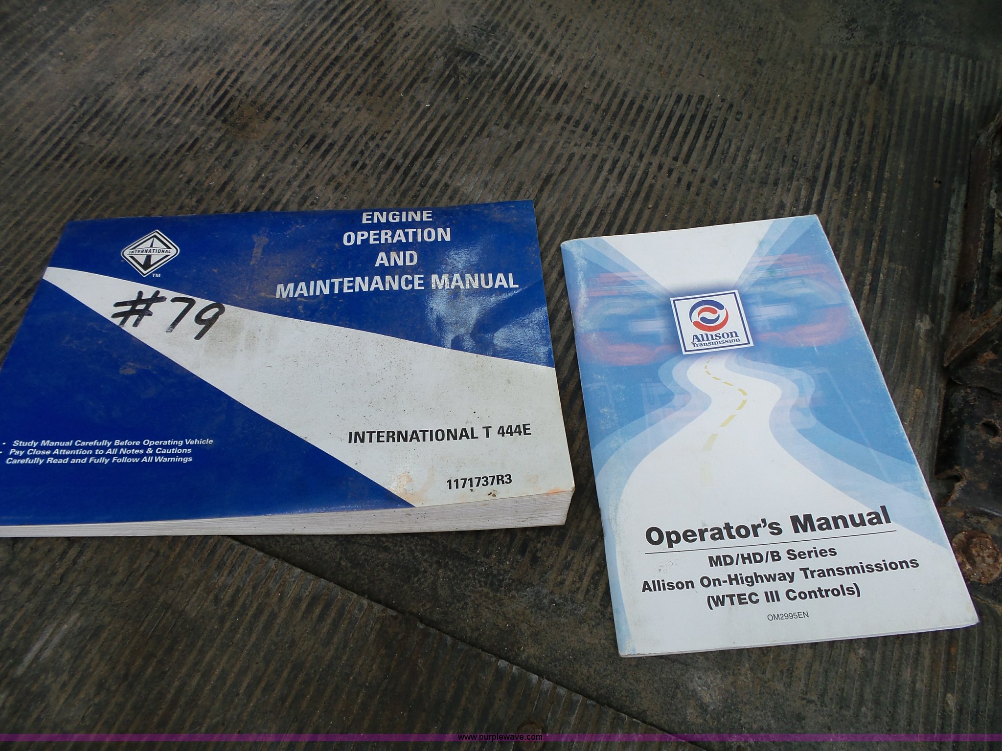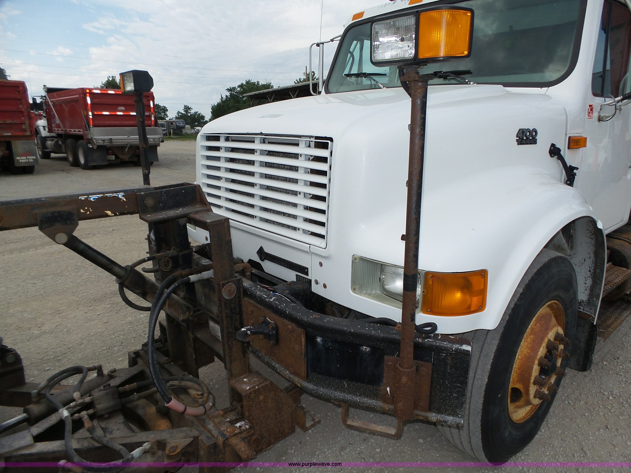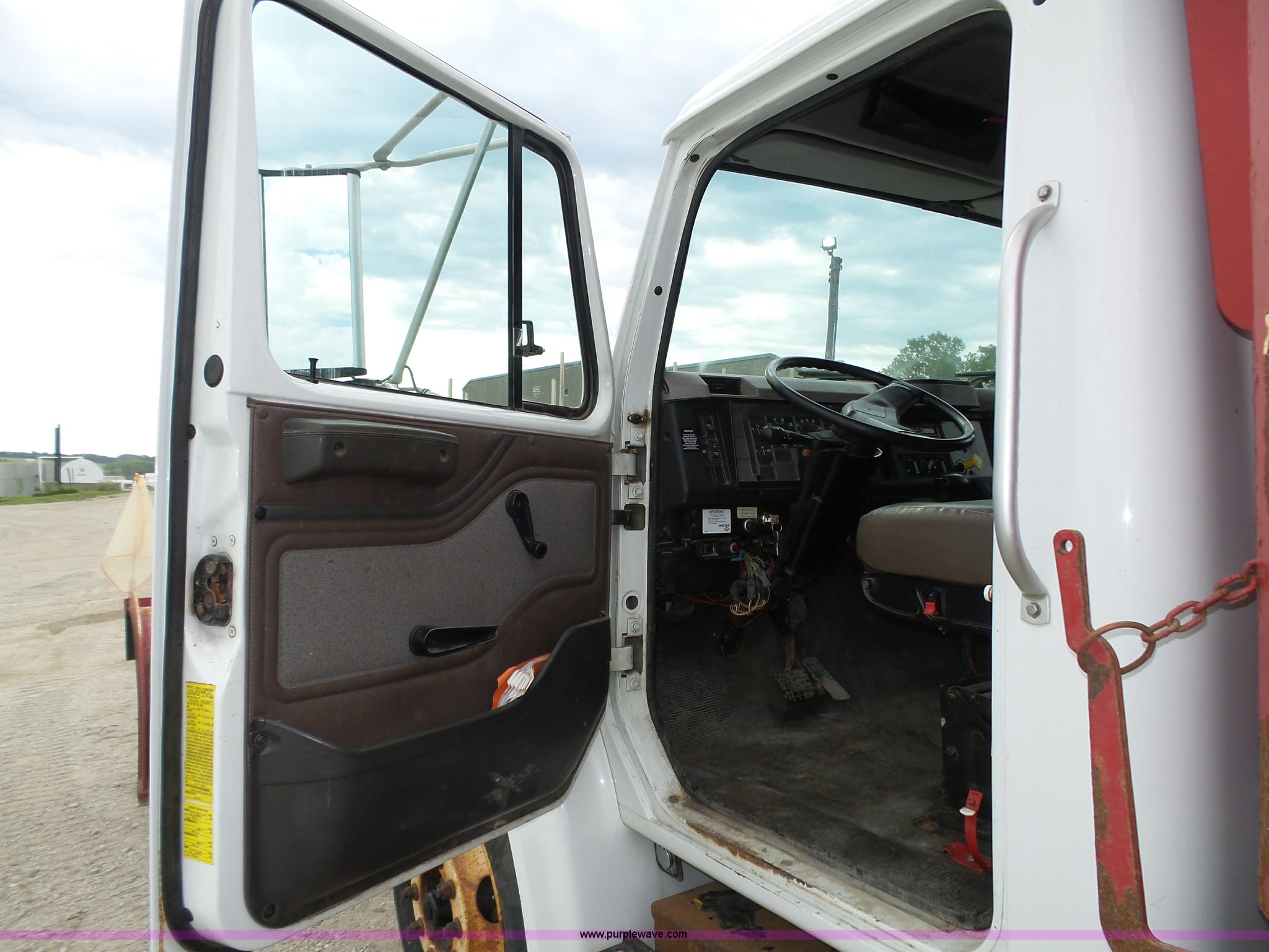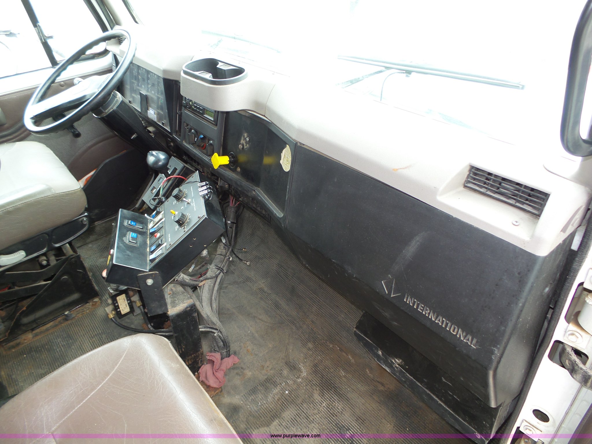 Purple Wave is selling a used Construction Dump Truck in Iowa. This item is a 2001 International 4700 dump truck with the following: 94,594 miles on odometer, International T444E 7.3L V8 turbo diesel engine, Allison automatic transmission, Single axle, AC and Heat, Cruise, AM/FM/weatherband, Heated mirrors, Air suspension seat, Vinyl seats, Beacon lights, Component Techology control panel, Plow and spreader controls, Single rear exhaust stack, Hydraulic reservoir, PTO, Henderson 10x30xUB steel dump bed, 10'L x 96"W, 30" side height, 8" side board height, Single ram hoist, Manual end gate, Serial HDSA-10764, Henderson 82435 plow hitch, Serial HT-00685, Henderson 11x36x15 plow, 11'W, Serial RSP-00874, Highway Equipment Co. SA-9 spreader, 9'W, Serial 11686, Front and rear tow hooks, Dual fuel tanks, Spring suspension, Air brakes, 152" wheelbase, 11R22.5 tires, GVWR 35,000 lbs, FAWR 12,000 lbs, RAWR 23,000 lbs, Engine and transmission manuals, Unit# 79