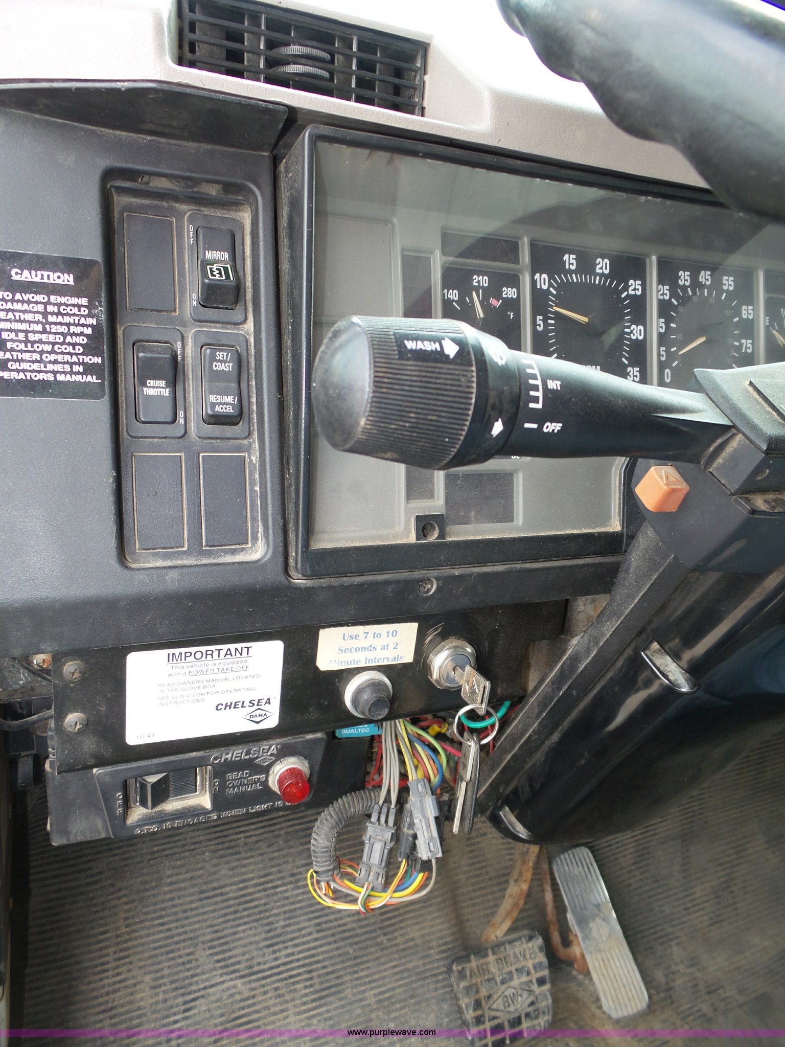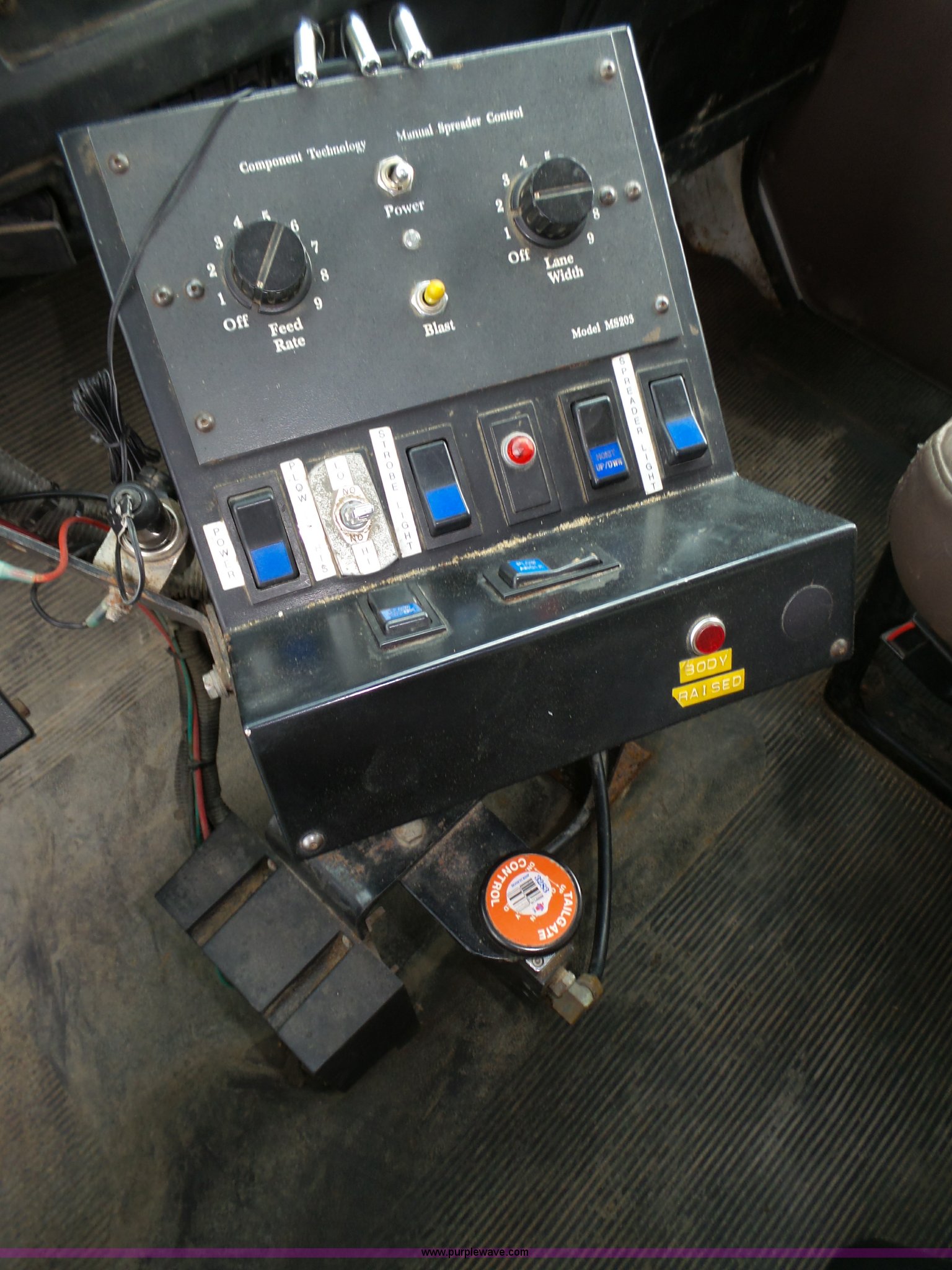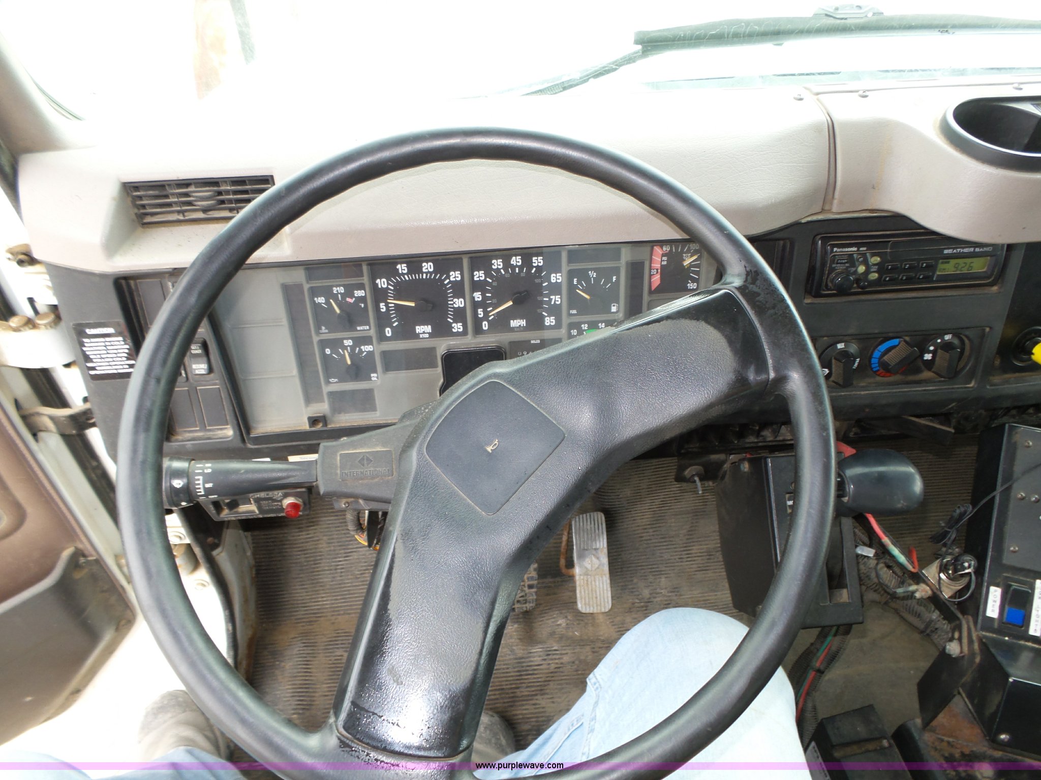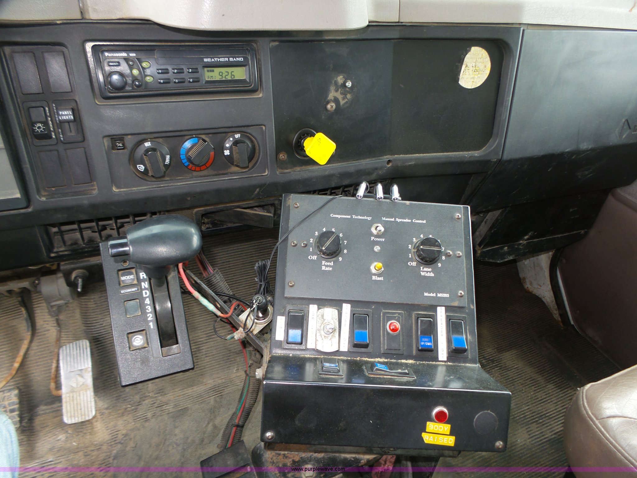 Purple Wave is selling a used Construction Dump Truck in Iowa. This item is a 2001 International 4700 dump truck with the following: 94,594 miles on odometer, International T444E 7.3L V8 turbo diesel engine, Allison automatic transmission, Single axle, AC and Heat, Cruise, AM/FM/weatherband, Heated mirrors, Air suspension seat, Vinyl seats, Beacon lights, Component Techology control panel, Plow and spreader controls, Single rear exhaust stack, Hydraulic reservoir, PTO, Henderson 10x30xUB steel dump bed, 10'L x 96"W, 30" side height, 8" side board height, Single ram hoist, Manual end gate, Serial HDSA-10764, Henderson 82435 plow hitch, Serial HT-00685, Henderson 11x36x15 plow, 11'W, Serial RSP-00874, Highway Equipment Co. SA-9 spreader, 9'W, Serial 11686, Front and rear tow hooks, Dual fuel tanks, Spring suspension, Air brakes, 152" wheelbase, 11R22.5 tires, GVWR 35,000 lbs, FAWR 12,000 lbs, RAWR 23,000 lbs, Engine and transmission manuals, Unit# 79