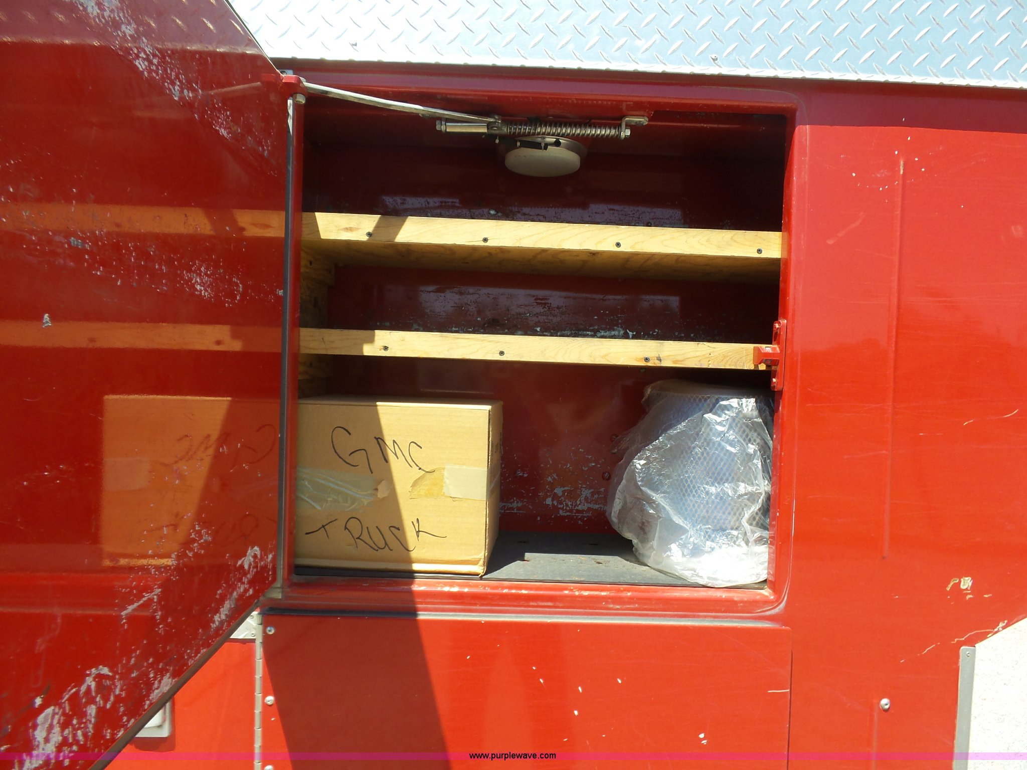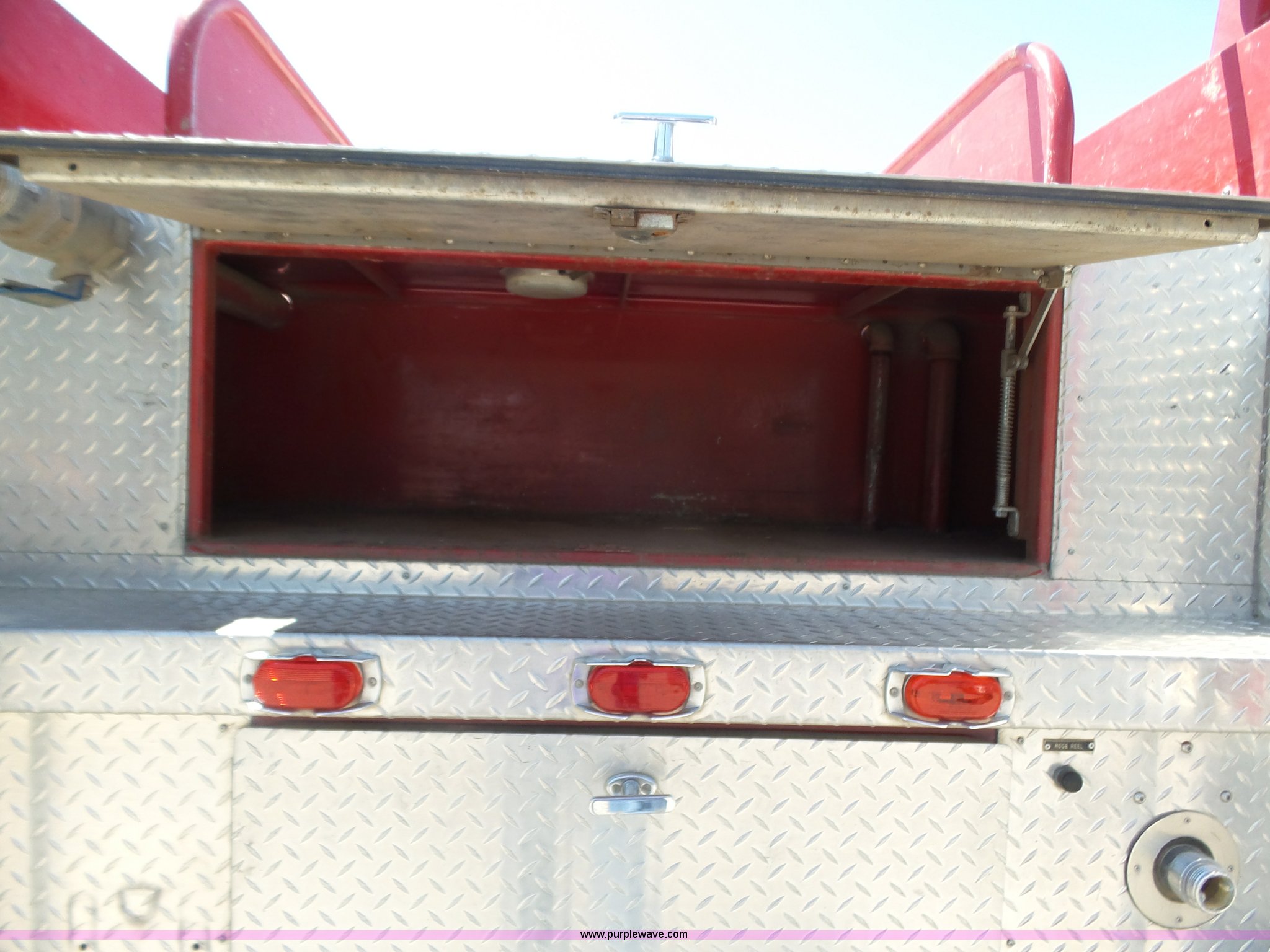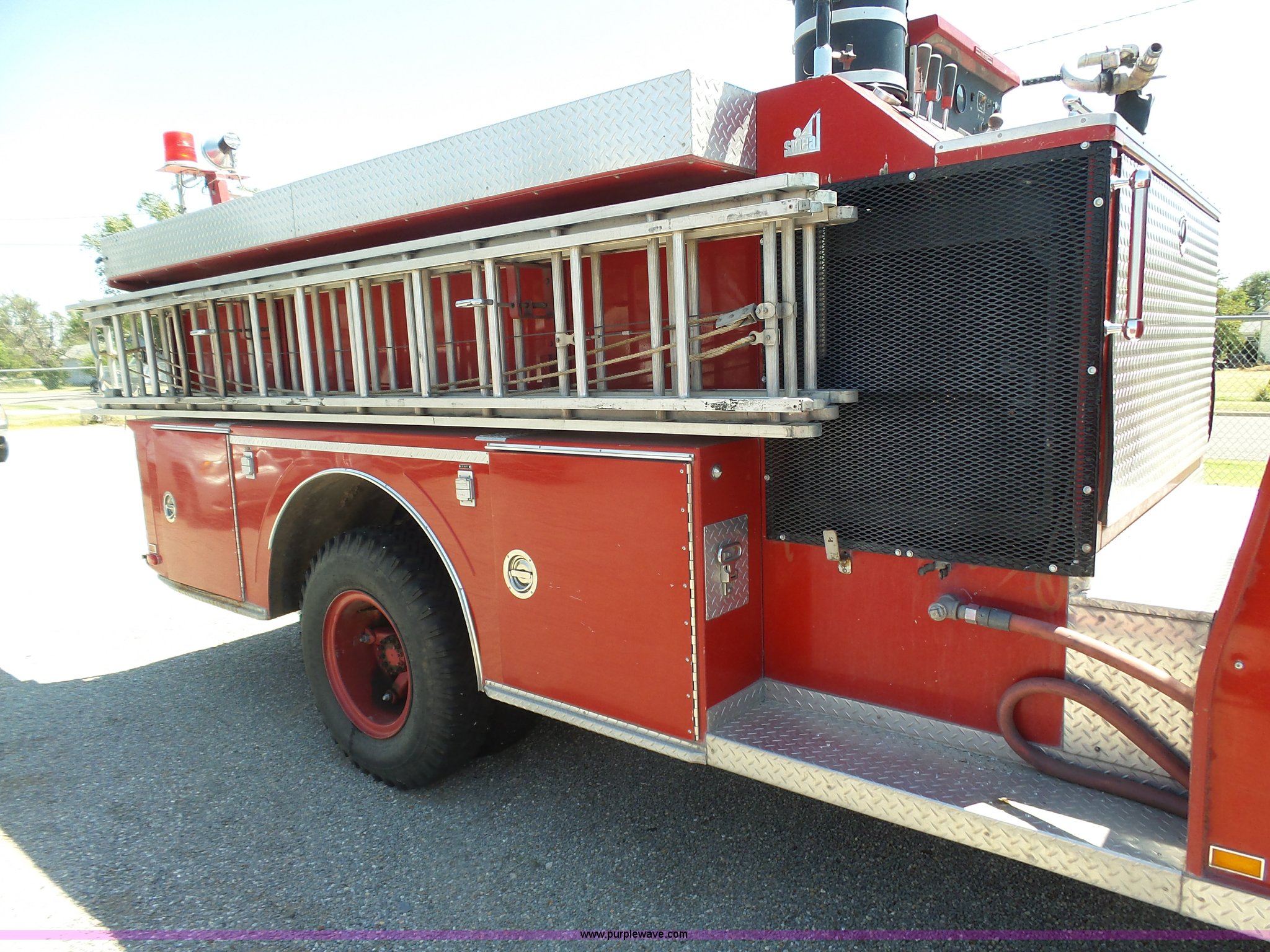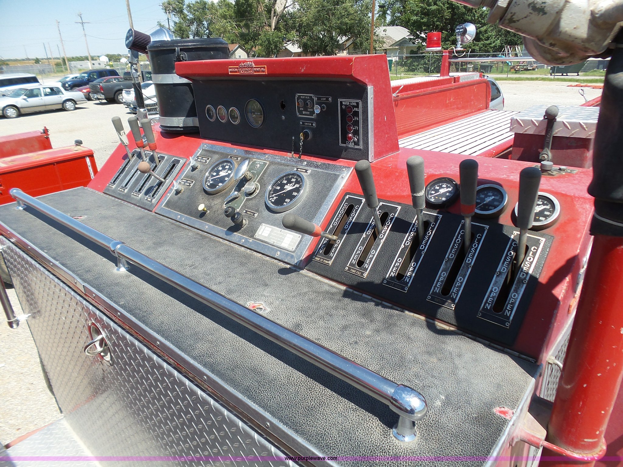 Purple Wave is selling a used Fire Truck or Emergency Vehicle in Kansas. This item is a 1985 GMC 7000 fire truck with the following: 27,139 miles on odometer, 7.0L eight cylinder gas engine, Five speed manual transmission, Single axle, Heat, 17'L bed, 750 gallon tank, 750 gpm pump, Smeal V-801 platform, Waterous CGNT fire apparatus, Elevated control station, Water gun, Electric cord reel, Outlet box, Work lights, Eight cylinder pump engine, Hose, Extension ladder, (4) sections, Air brakes, 10.00-20 tires, Additional air filters, Weak batteries, Unit# 400