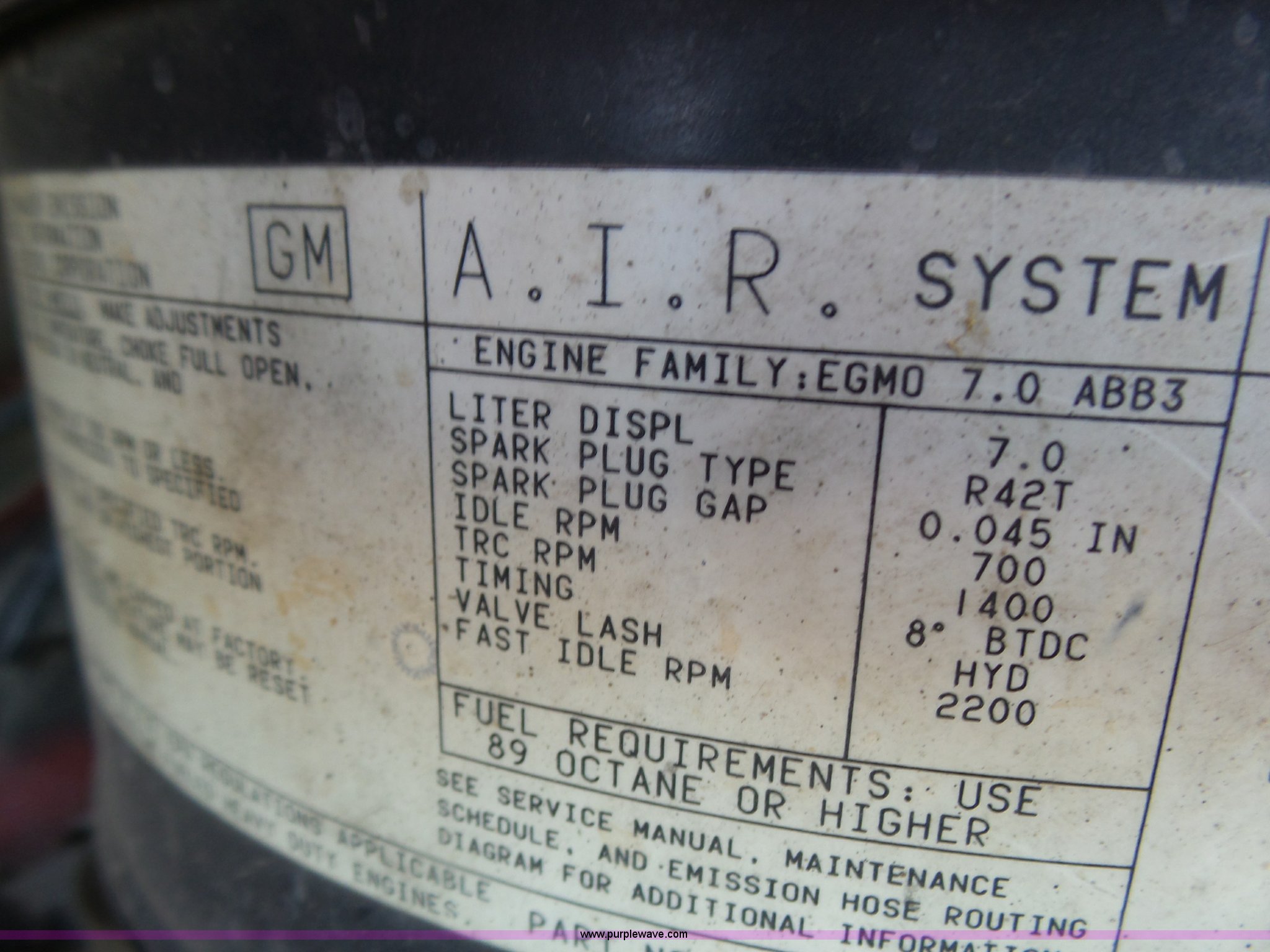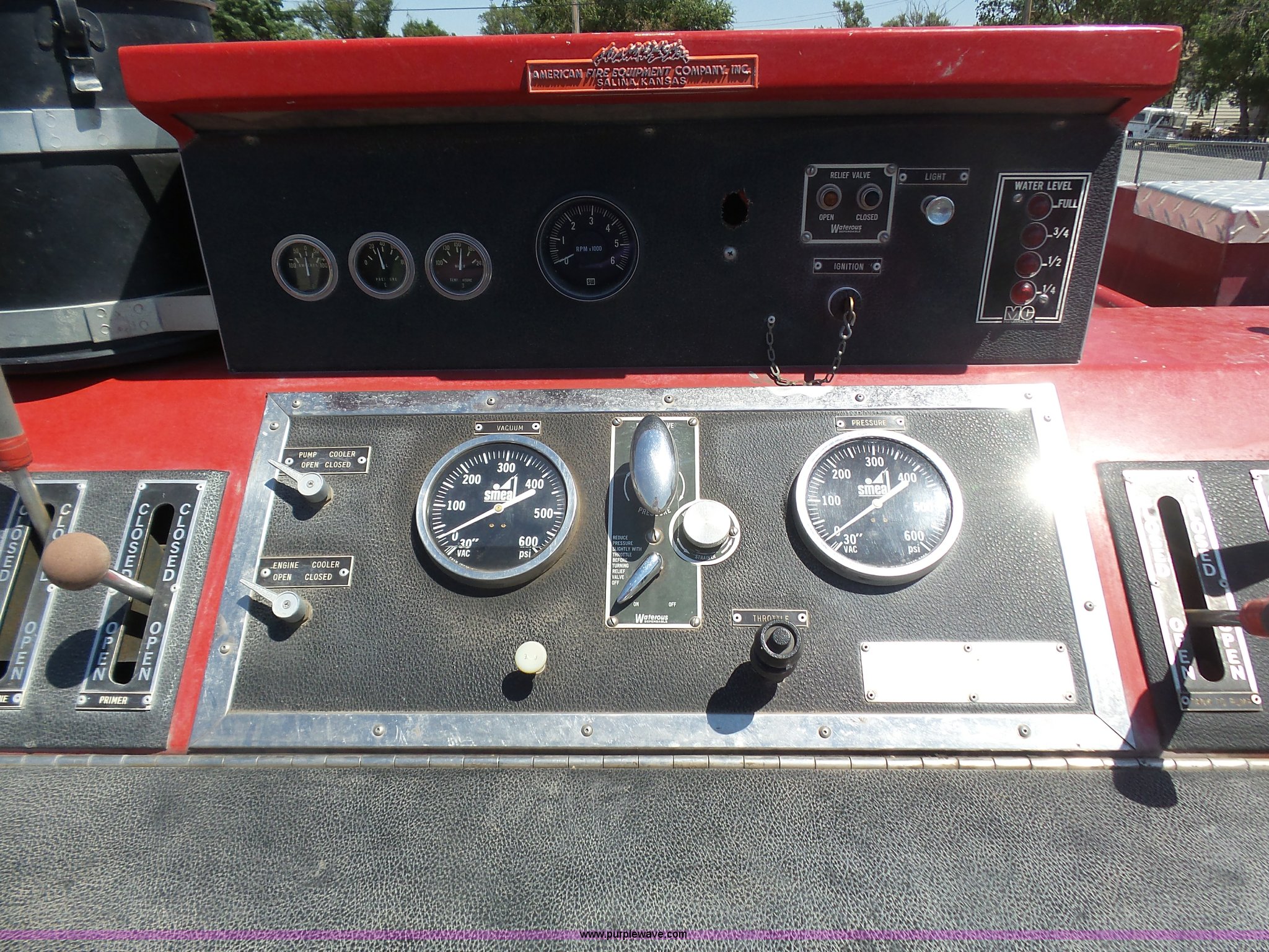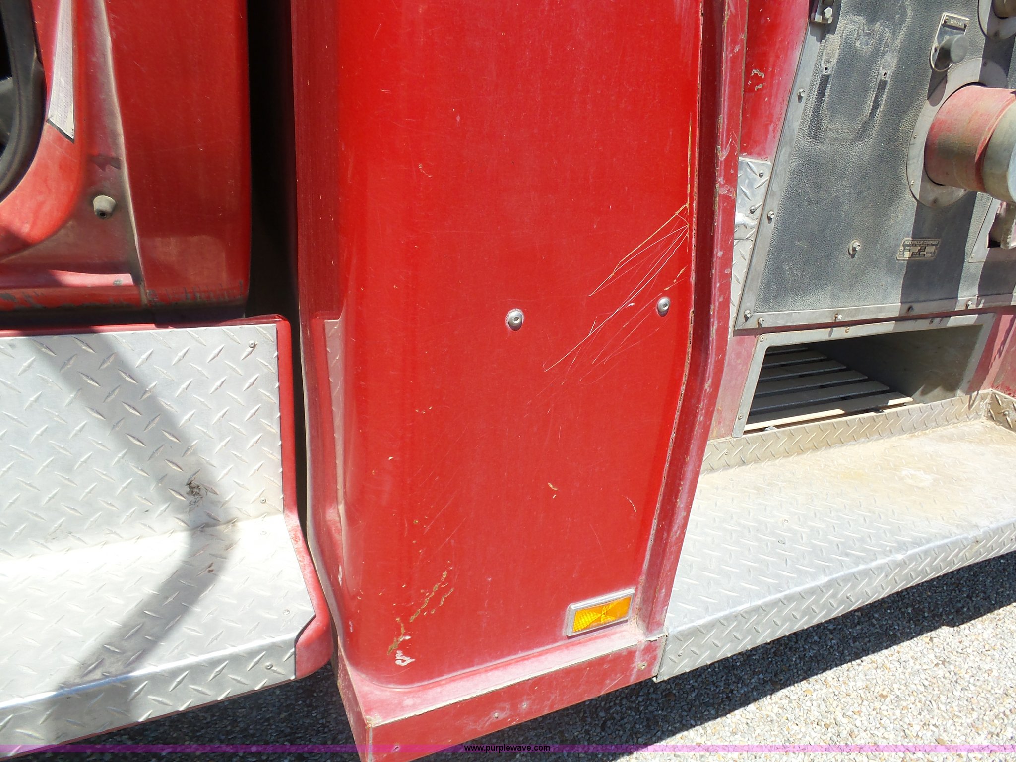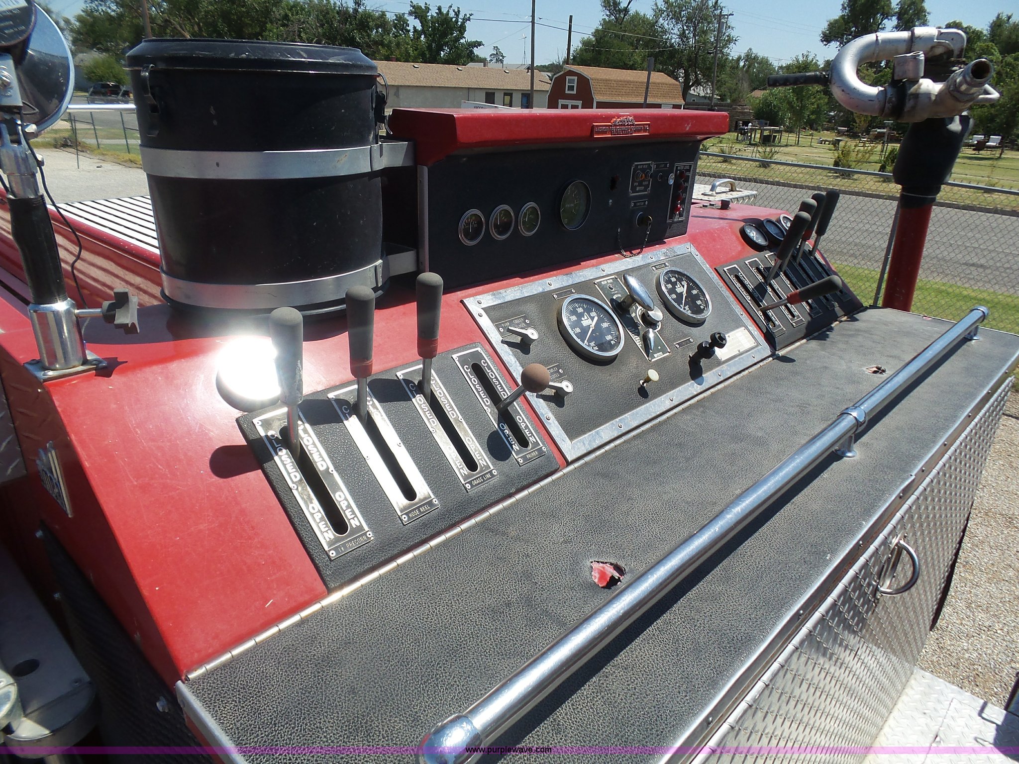 Purple Wave is selling a used Fire Truck or Emergency Vehicle in Kansas. This item is a 1985 GMC 7000 fire truck with the following: 27,139 miles on odometer, 7.0L eight cylinder gas engine, Five speed manual transmission, Single axle, Heat, 17'L bed, 750 gallon tank, 750 gpm pump, Smeal V-801 platform, Waterous CGNT fire apparatus, Elevated control station, Water gun, Electric cord reel, Outlet box, Work lights, Eight cylinder pump engine, Hose, Extension ladder, (4) sections, Air brakes, 10.00-20 tires, Additional air filters, Weak batteries, Unit# 400