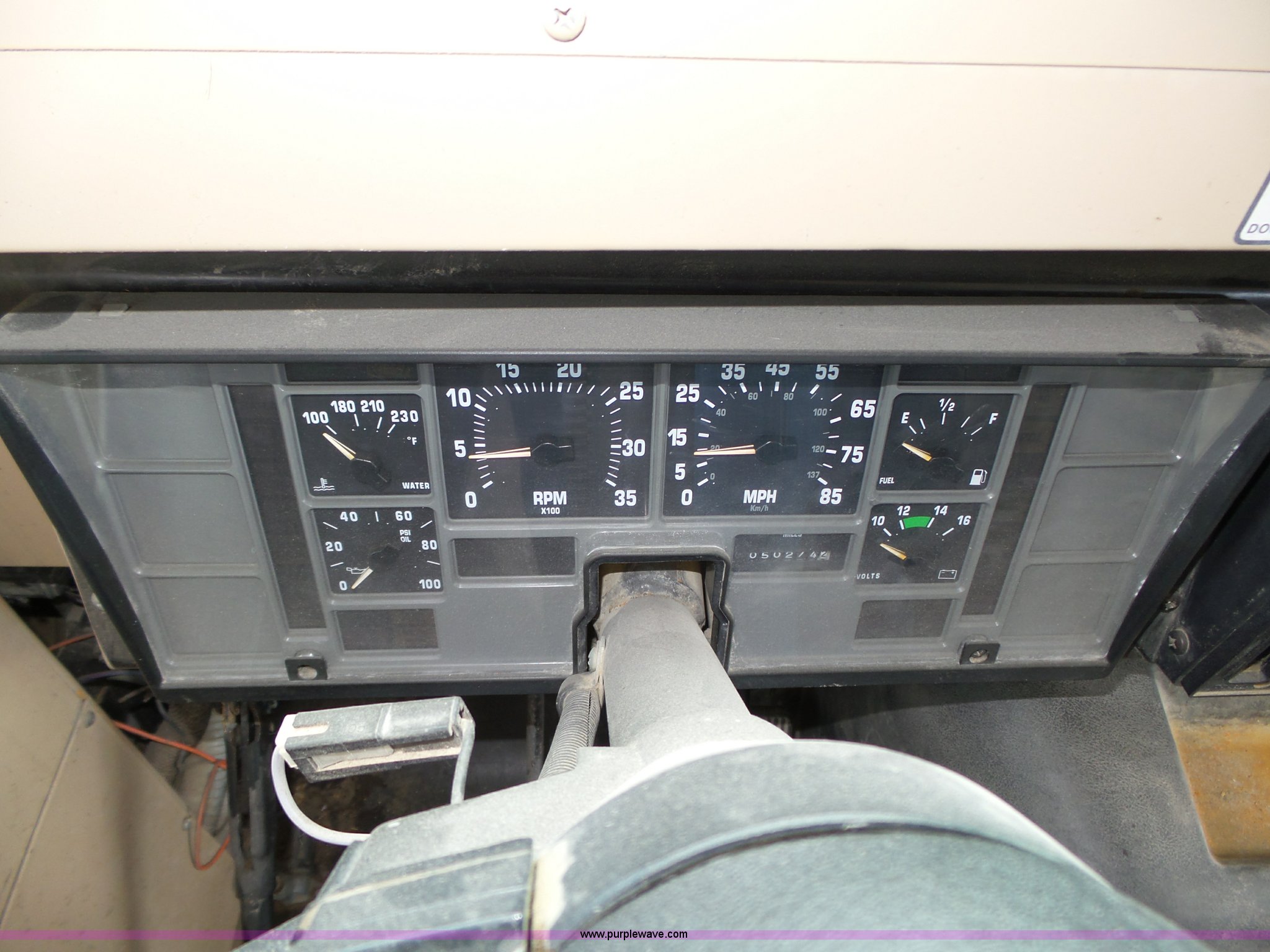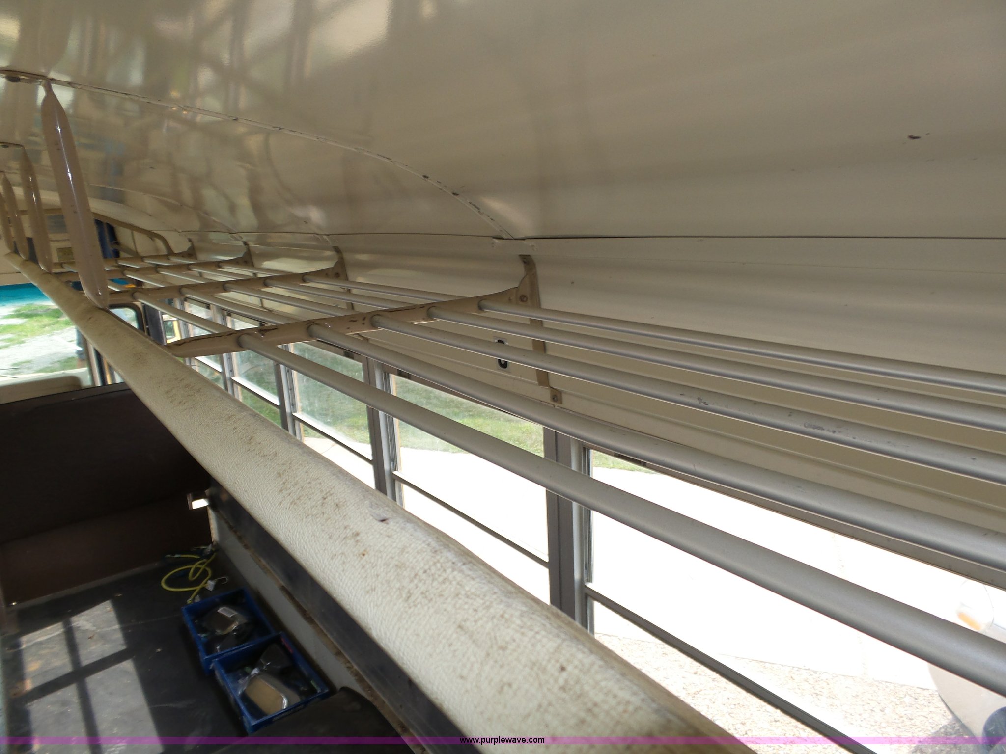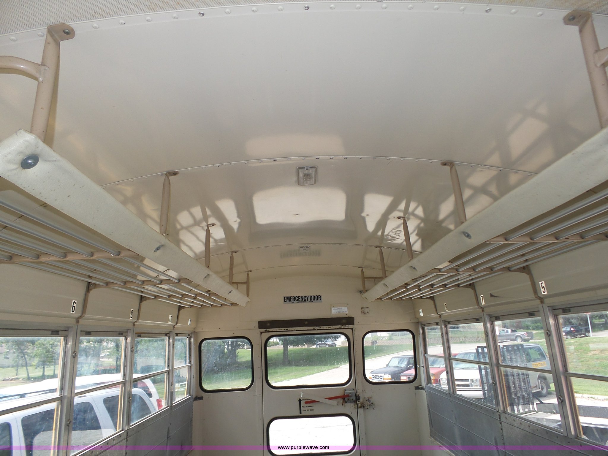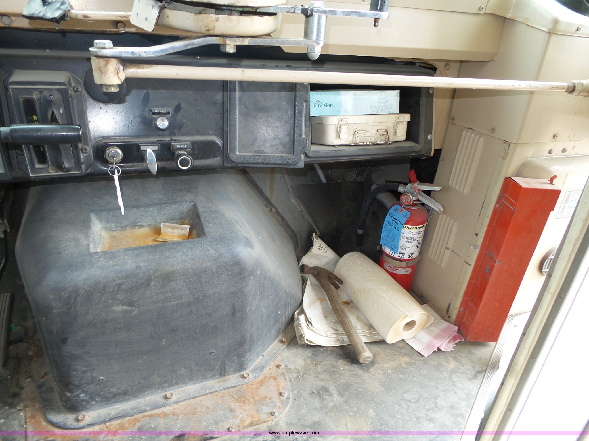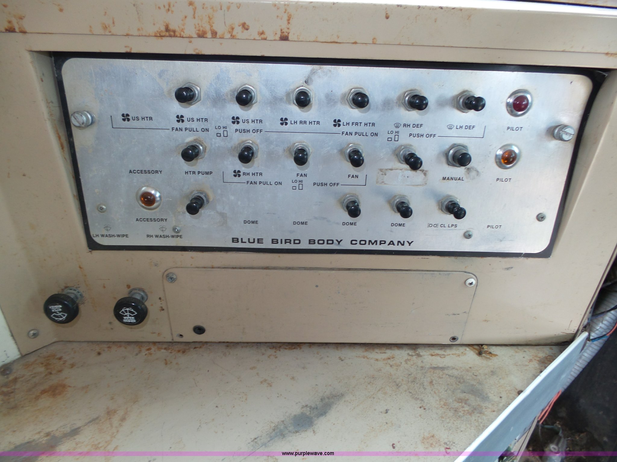 Purple Wave is selling a used Bus in Nebraska. This item is a 1990 International 3800 school bus with the following: 50,275 miles on odometer, International B170F 5.9L L6 turbo diesel engine, Allison A750 automatic transmission, Single axle, Heat, Fan, Suspension seat, Overhead storage, First aid kits, Block heater, Blue Bird body, No. M49075, Service no. 346676, Rear emergency egress, Front and rear tow hooks, Spring suspension, Hydraulic brakes, 152" wheelbase, Bridgestone 9R22.5 tires, GVWR 23,800 lbs, FAWR 8,000 lbs, RAWR 15,800 lbs, One owner, Additional mirrors included, No seats, Unit# 12