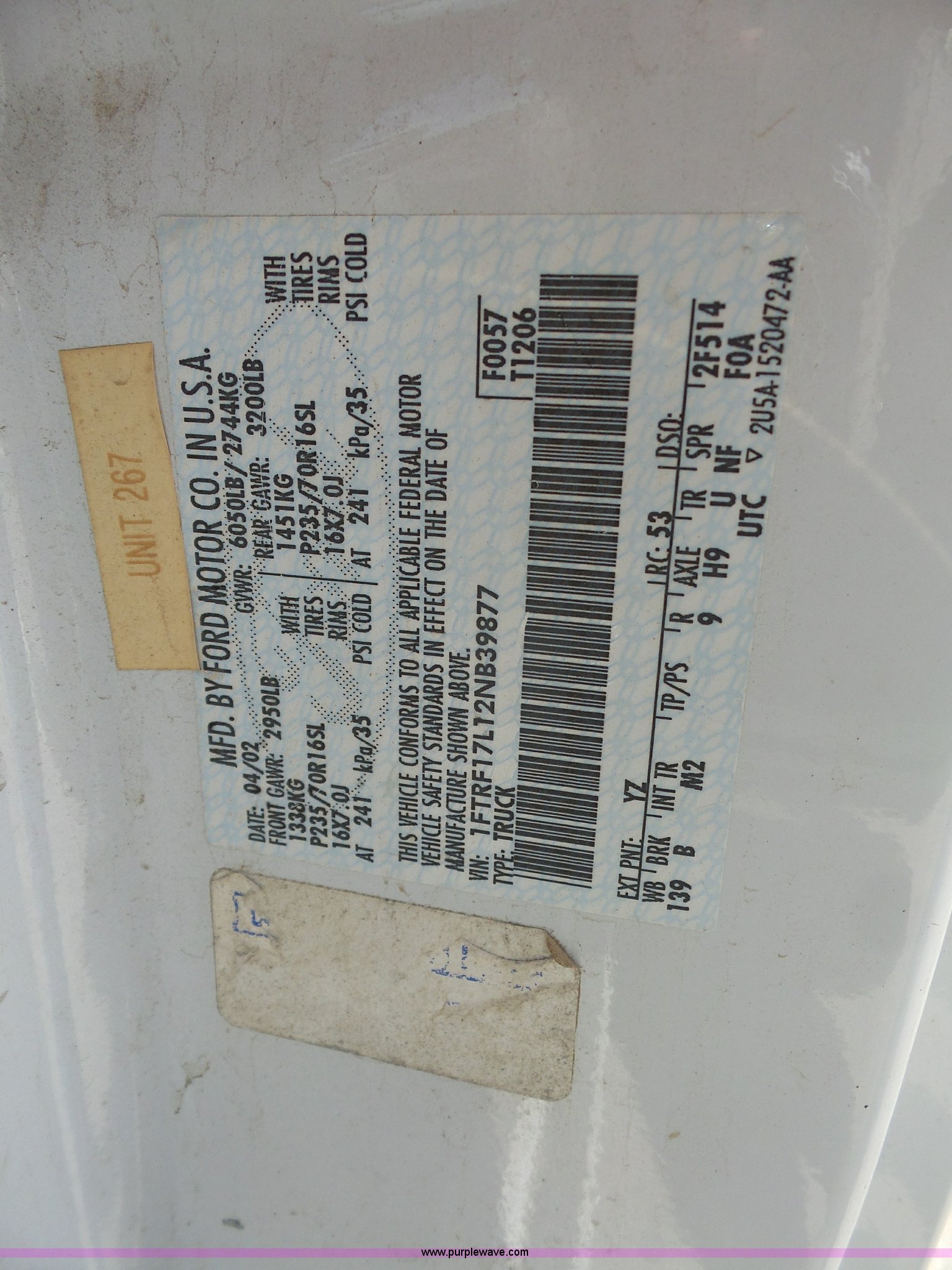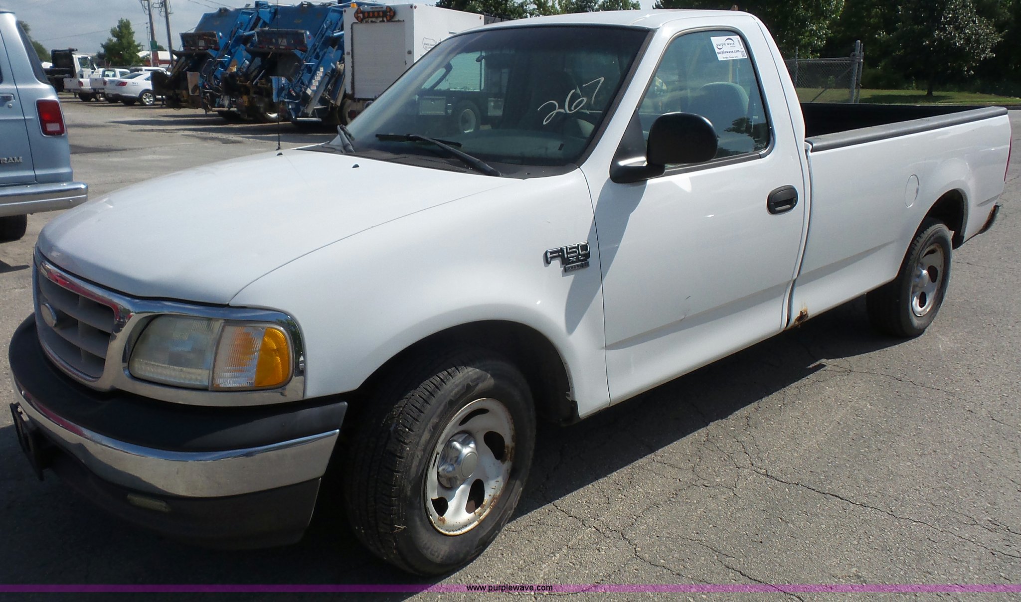 Purple Wave is selling a used 1/2 Ton Pickup or Van in Kansas. This item is a 2002 Ford F150 pickup truck with the following: 104,480 miles on odometer, 5.4L V8 SOHC 16V gas engine, Automatic transmission, AC and heat, Tilt, Cruise, AM/FM/cassette, Manual windows and locks, Cloth interior, Long bed, 235/70R16 tires, Unit# 267