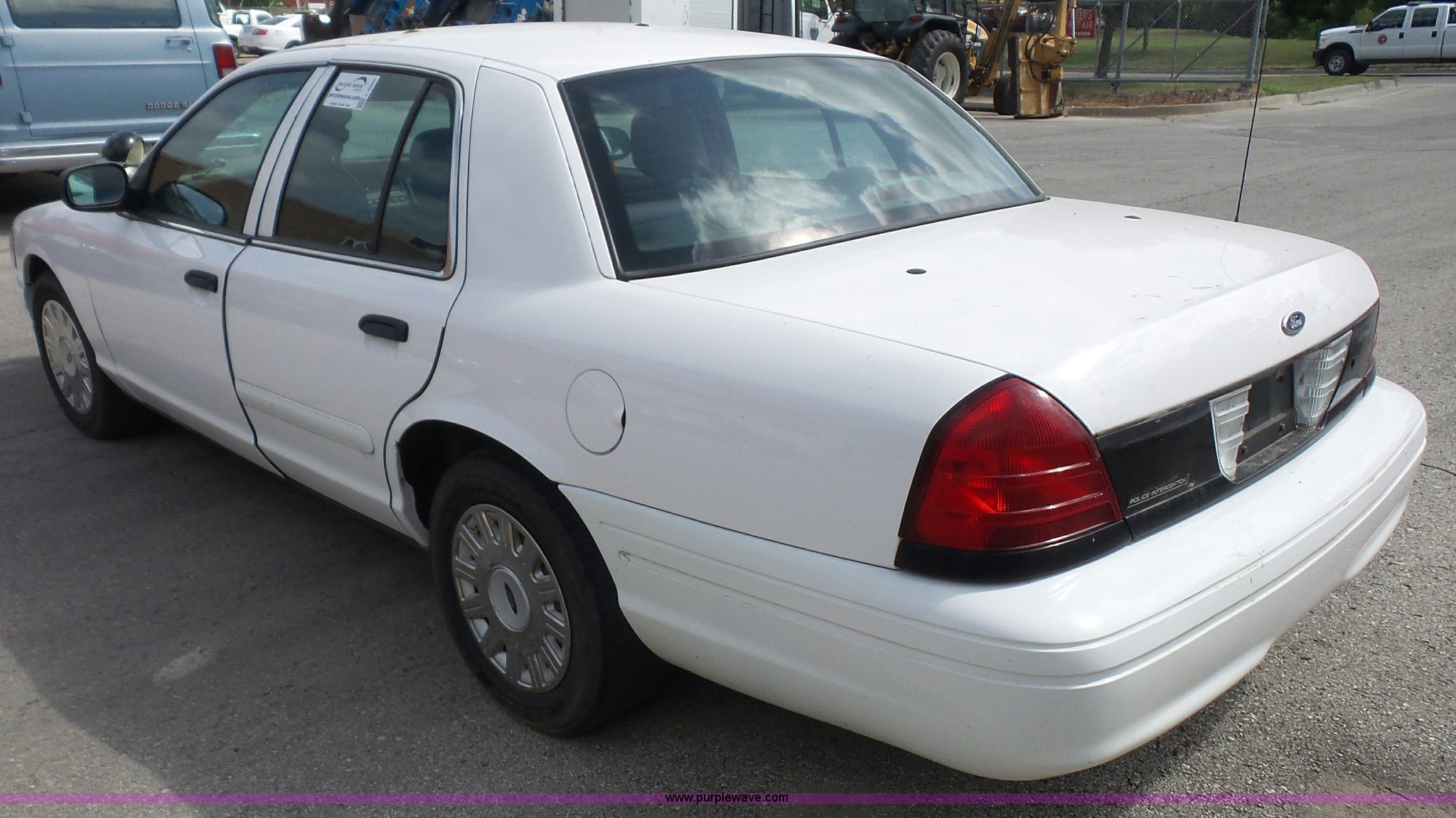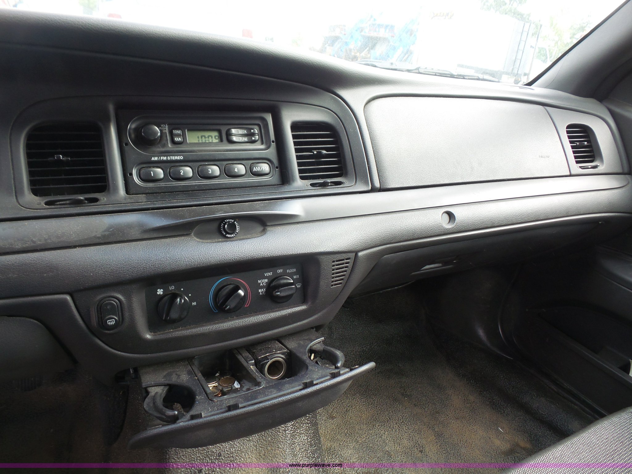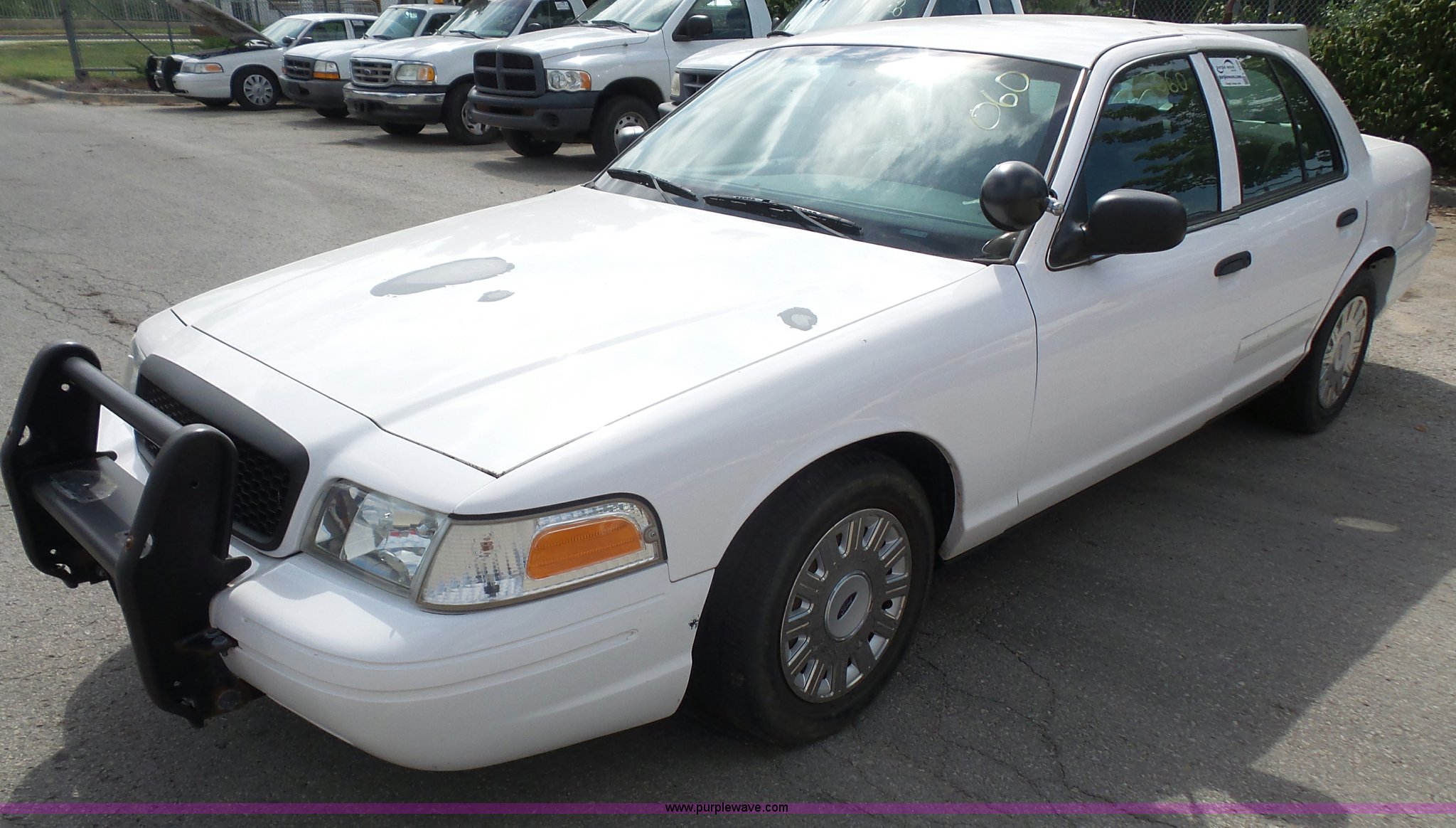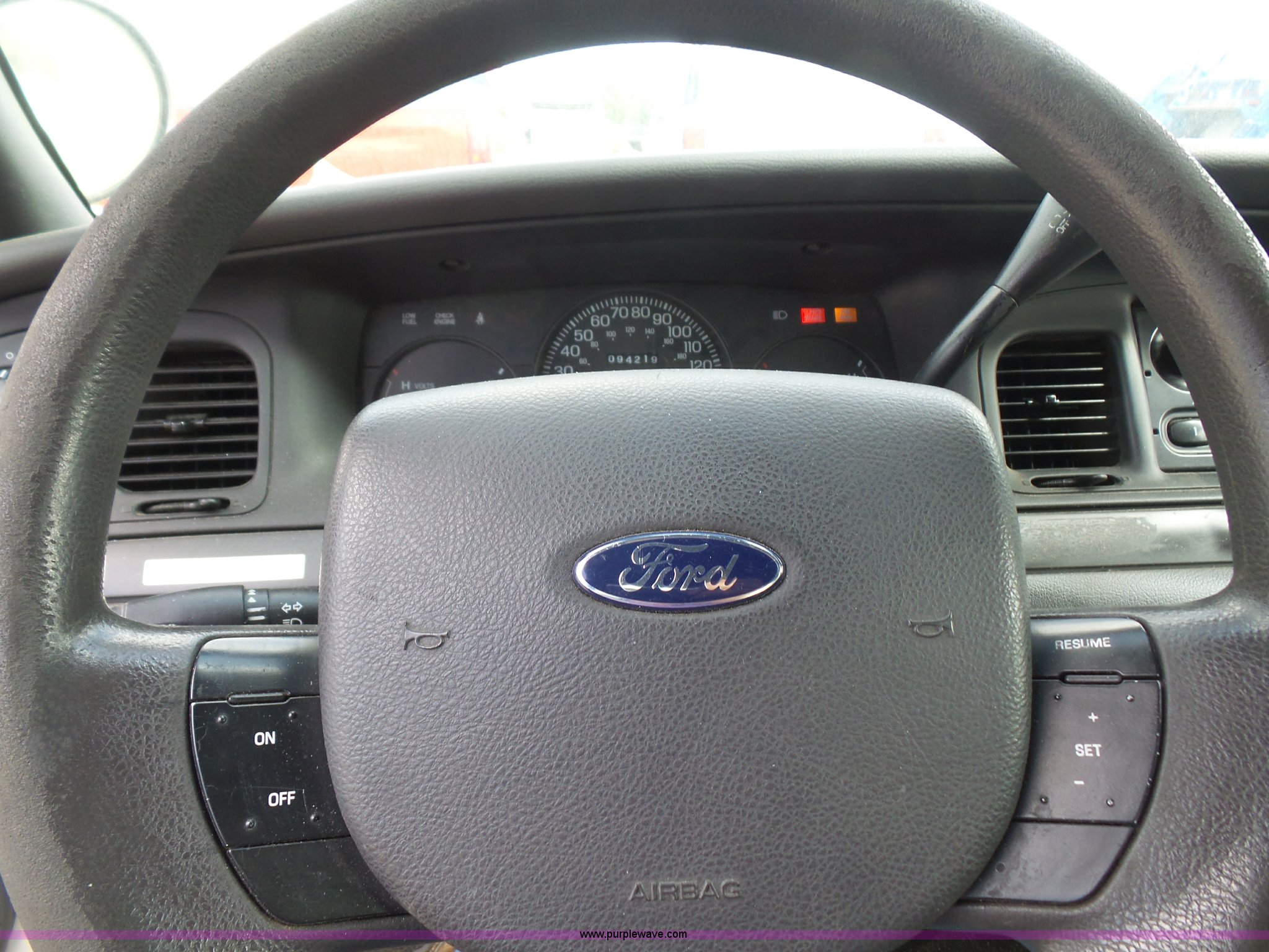Purple Wave is selling a used Passenger Vehicle in Kansas. This item is a 2005 Ford Crown Victoria Police Interceptor with the following: 94,219 miles on odometer, 4.6L V8 SOHC 16V gas engine, Automatic transmission, AC and heat, Tilt, Cruise, AM/FM, Power windows, locks, mirrors, and seat, Cloth interior, Spotlight, Grill guard, 225/60R16 tires, Unit# 060