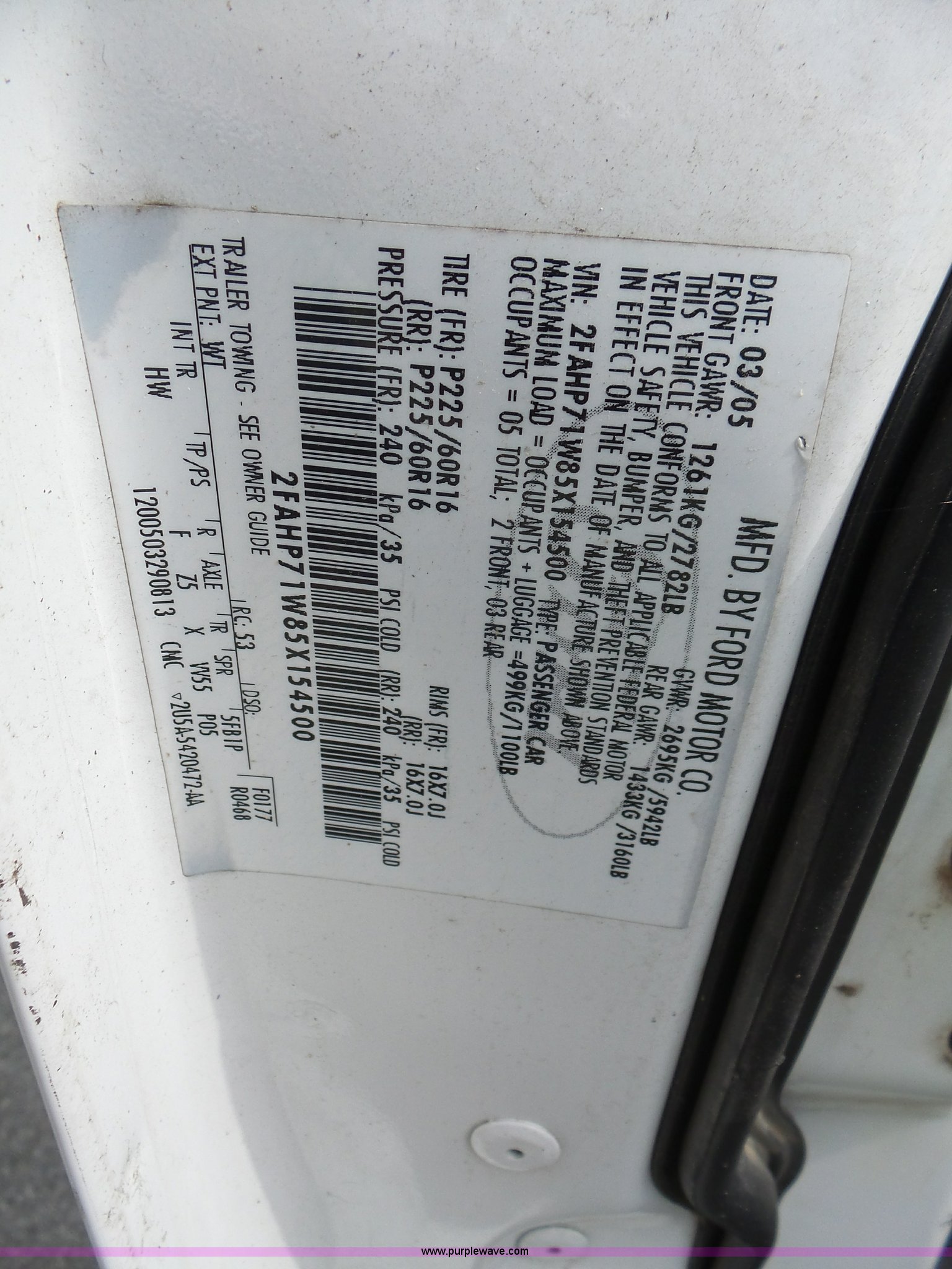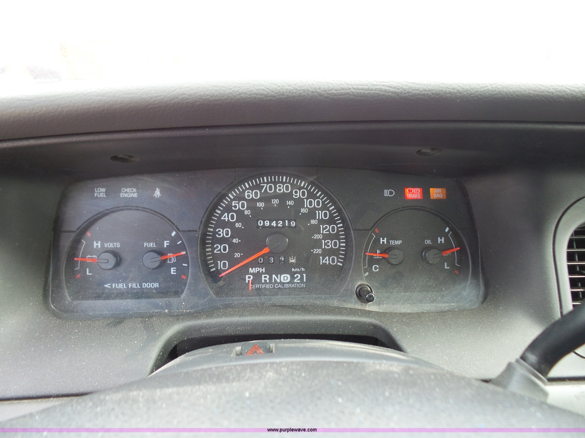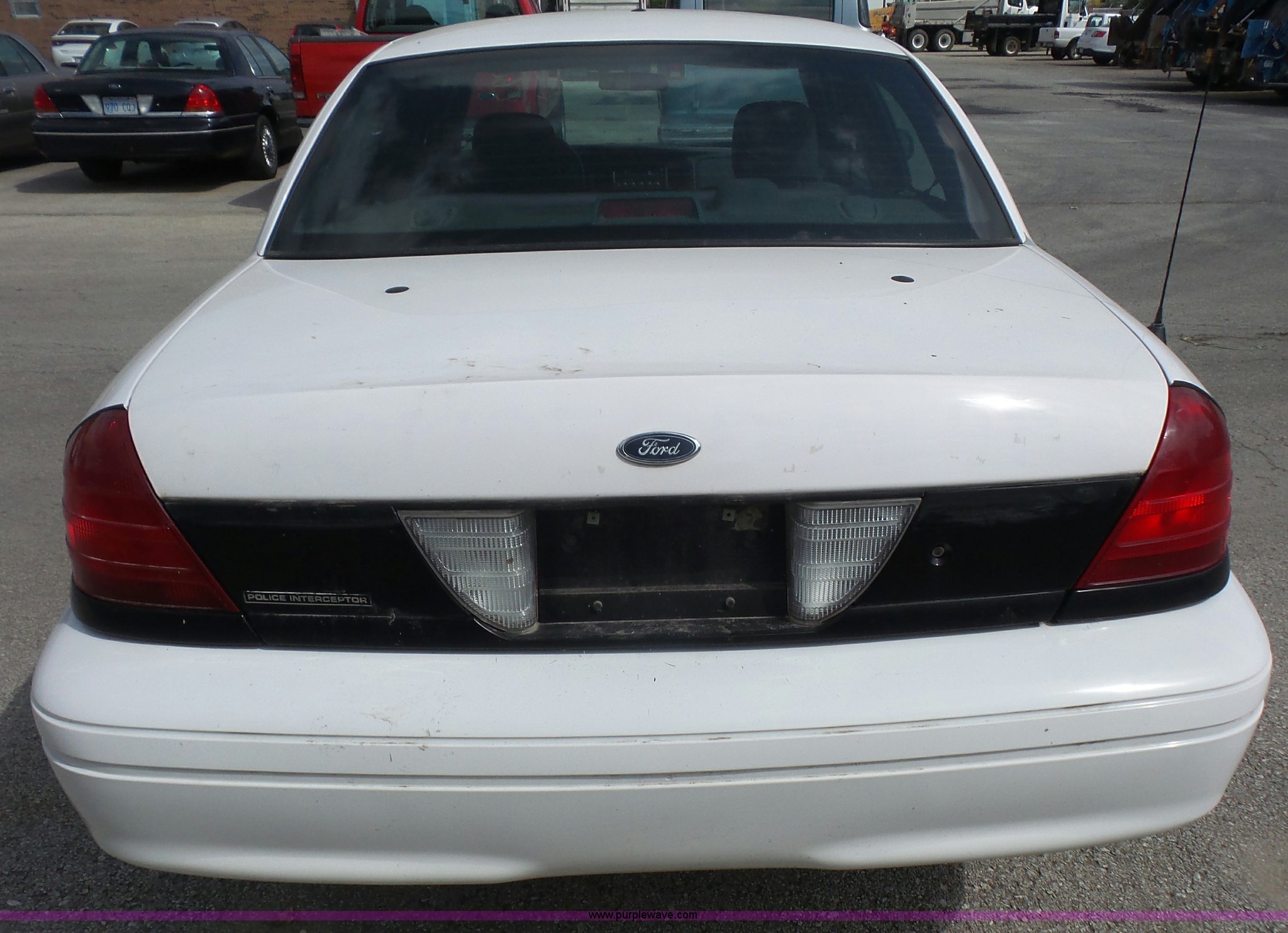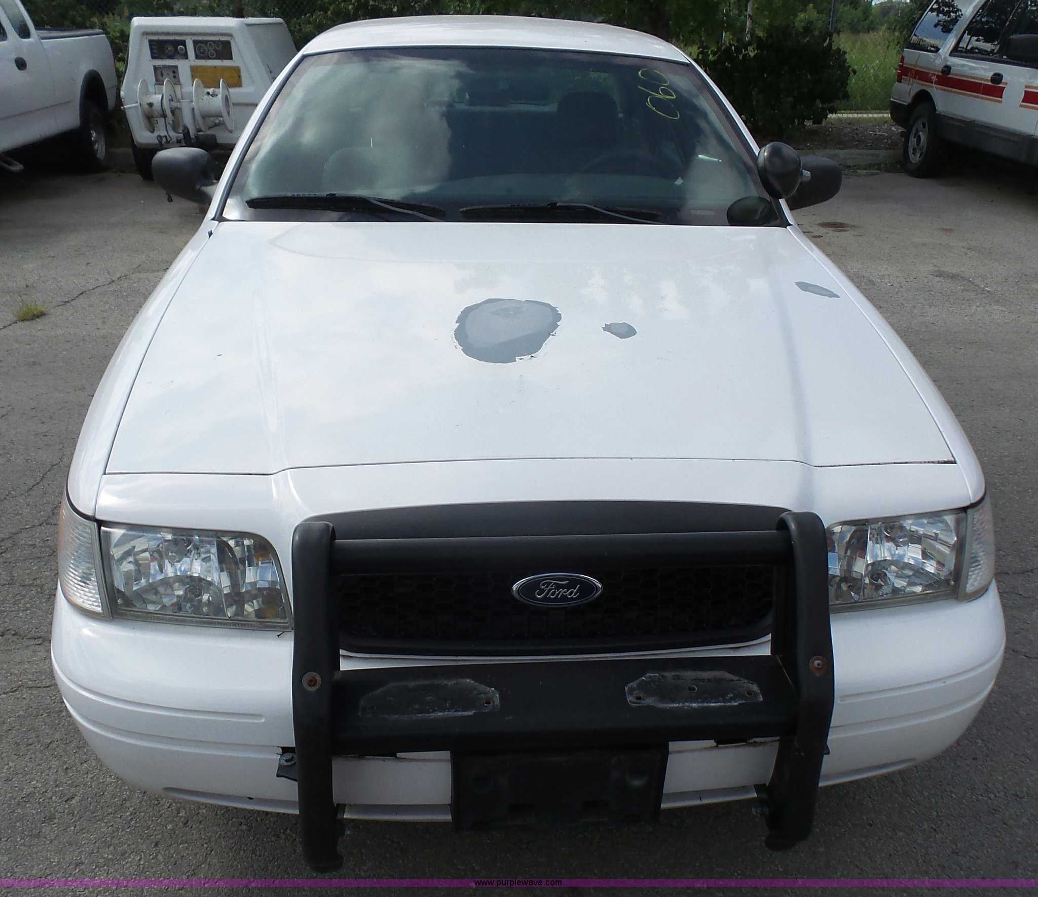 Purple Wave is selling a used Passenger Vehicle in Kansas. This item is a 2005 Ford Crown Victoria Police Interceptor with the following: 94,219 miles on odometer, 4.6L V8 SOHC 16V gas engine, Automatic transmission, AC and heat, Tilt, Cruise, AM/FM, Power windows, locks, mirrors, and seat, Cloth interior, Spotlight, Grill guard, 225/60R16 tires, Unit# 060