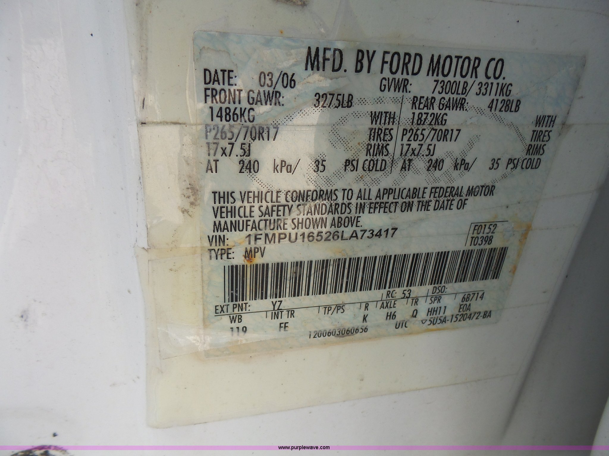 Purple Wave is selling a used Passenger Vehicle in Kansas. This item is a 2006 Ford Expedition XLT SUV with the following: 96,428 miles on odometer, 5.4L V8 SOHC 16V gas engine, Automatic transmission, Four wheel drive, AC and heat, Tilt, Cruise, AM/FM/CD, Power windows, locks, and mirrors, Cloth interior, Receiver hitch, 265/70R17 tires, No third row seat, Non-operational transmission, Unit# 675