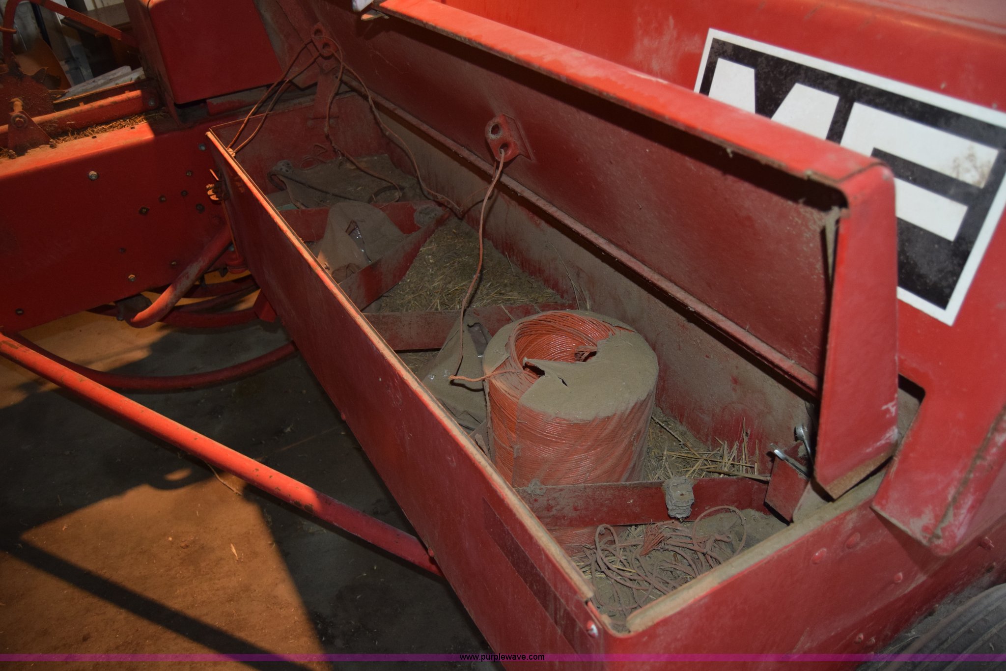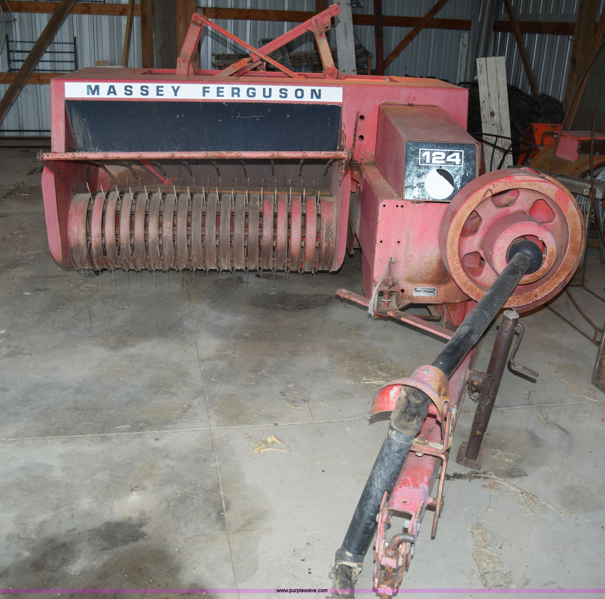 Purple Wave is selling a used Square Baler in Kansas. This item is a Massey-Ferguson 124 small square baler with the following: 4'W pickup, Twine tie, 540 PTO, Pin hitch, 5.00-15 tires, Serial 1474009570