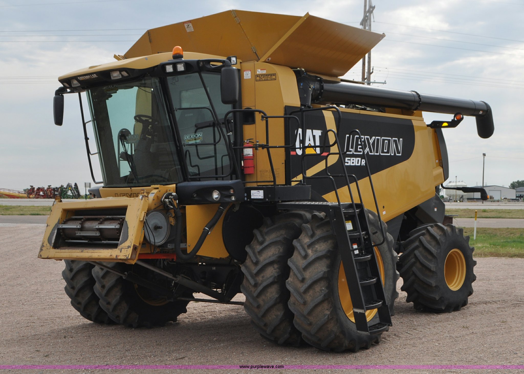 Purple Wave is selling a used Combine in Nebraska. This item is a 2006 Lexion 580R combine with the following: 1,678 engine hours on meter, 1,109 separator hours on meter, Caterpillar C13 six cylinder turbo diesel engine, Serial LGK01856, Hydrostatic transmission, 3F-3R gears, Feederhouse, Lateral tilt, Variable speed, Reverser, Single point header coupler, AC and heat, Tilt steering wheel, AM/FM, Air suspension seat, Instructor's seat, Shade, Cebis color display, Ag Leader ready, Chaff spreader, Straw chopper, Power folding bin, Work lights, 24' unloading auger, 620/70R42 dual front tires, 28LR26 rear tires, Operator's manual, Serial 57600381