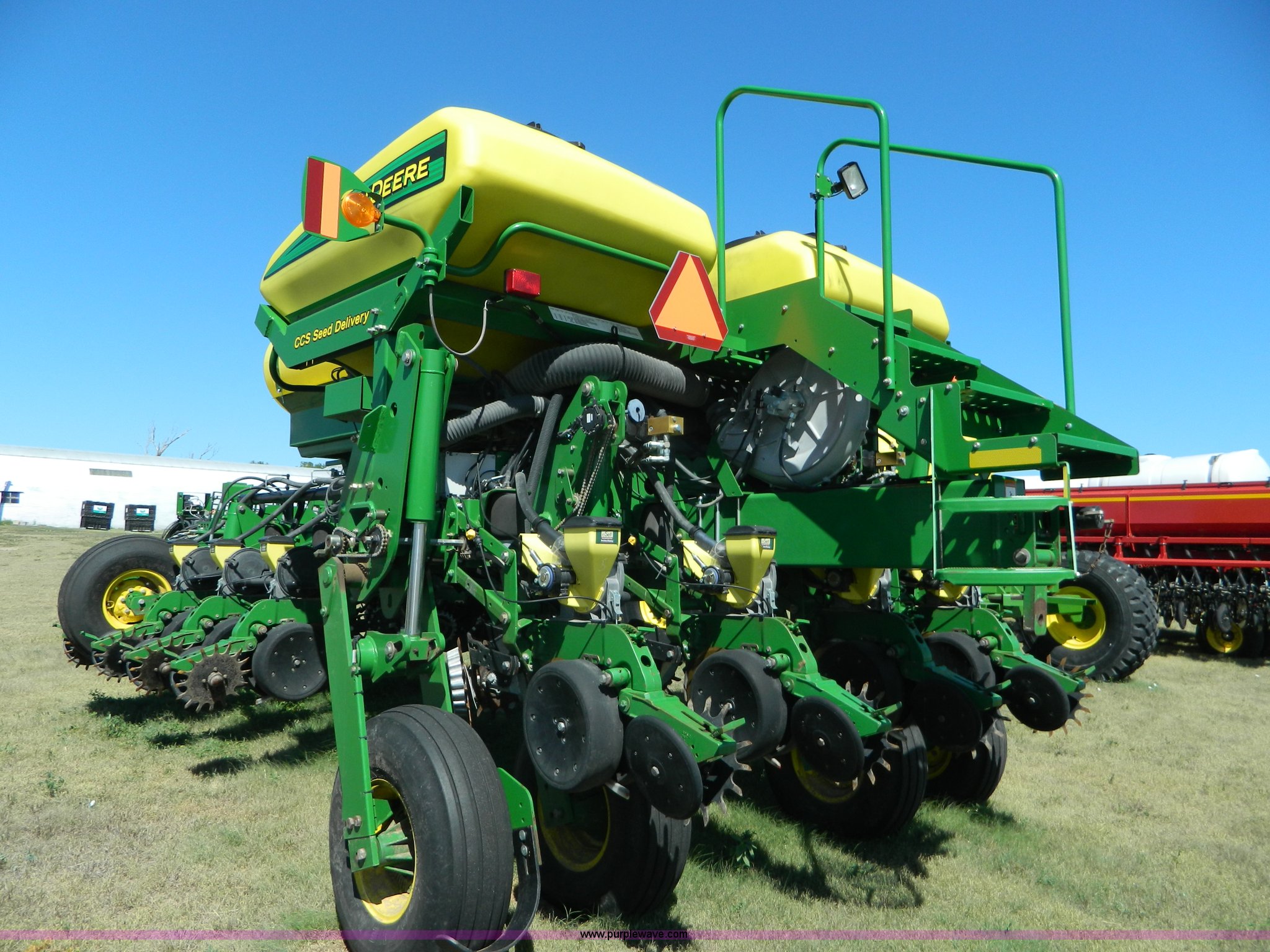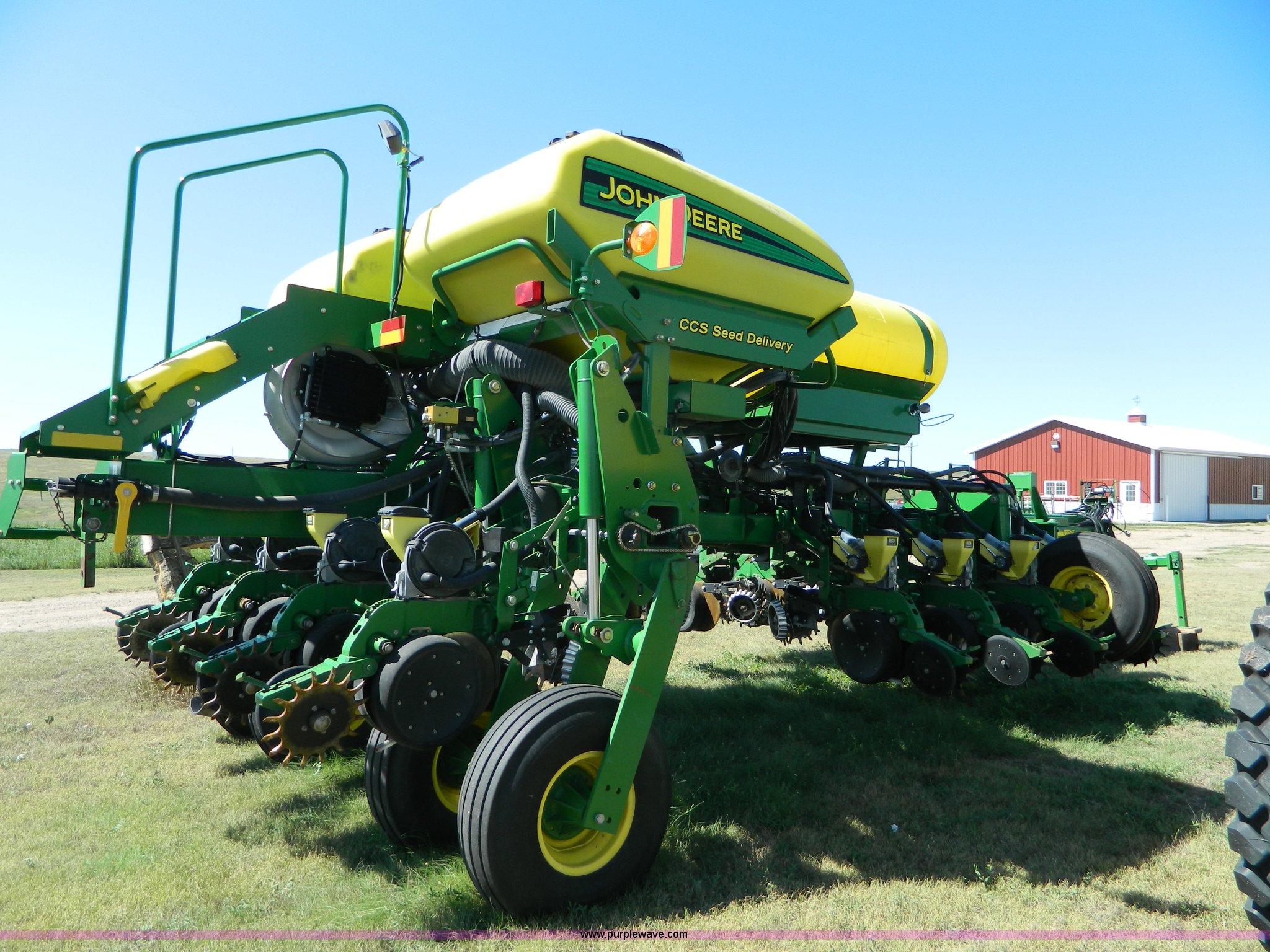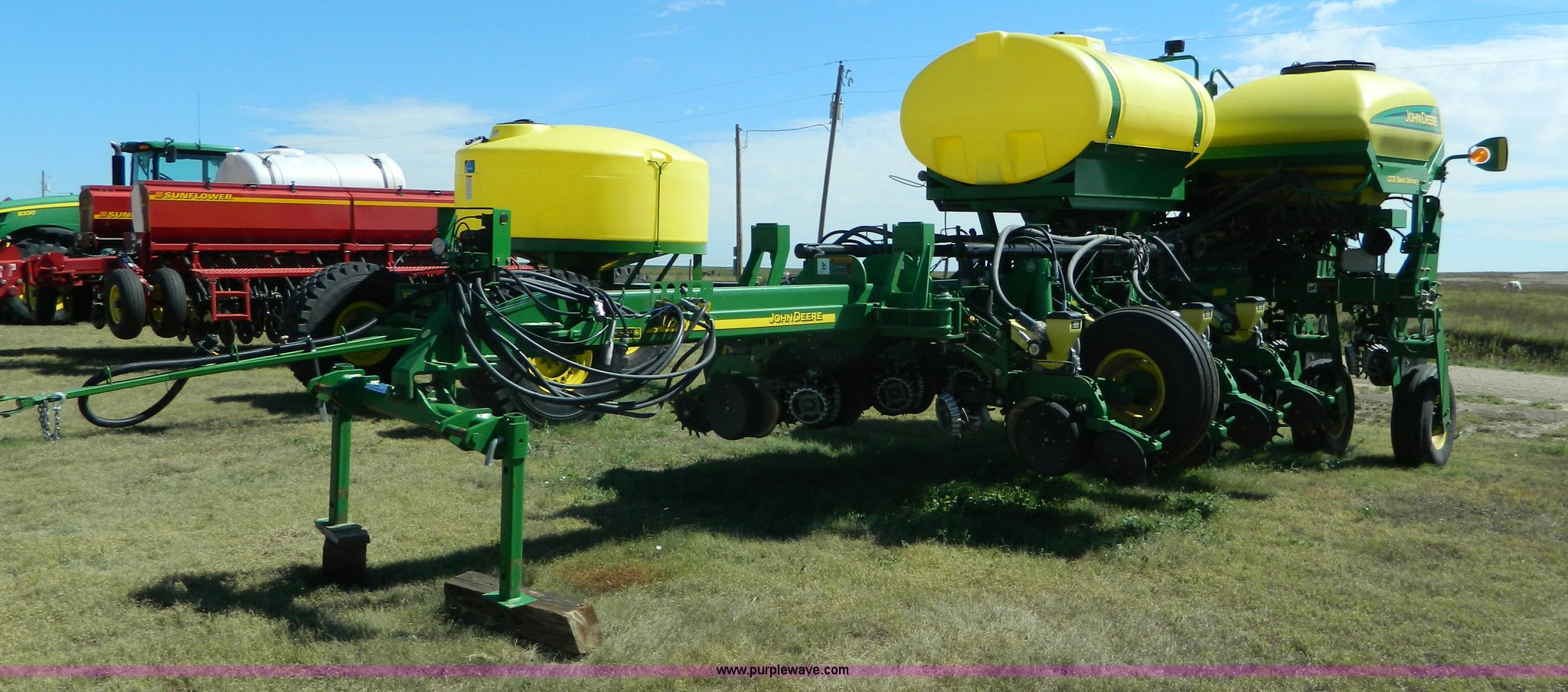 Purple Wave is selling a used Planter in Kansas. This item is a 2008 John Deere 1770NT CCS planter with the following: 12 row units, 30" row spacing, Hydraulic front fold, Pro Series row unit, Bulk fill system, Air delivery, Seed boxes, Hydraulic meter drive, Corn seed meters, Pneumatic down pressure, Martin row cleaners, Seed firmers, Double disk openers, Double rubber spiked closing system, 350 gallon liquid fertilizer tank, Seed firmer application, Insecticide boxes,, Three point, 10.00-15 transport tires, Operator's manual, Additional parts included, Unused seed firmers, TruCount air clutch system will be removed and replaced with factory standard parts, No additional seed boxes included, Serial A01770Z725134