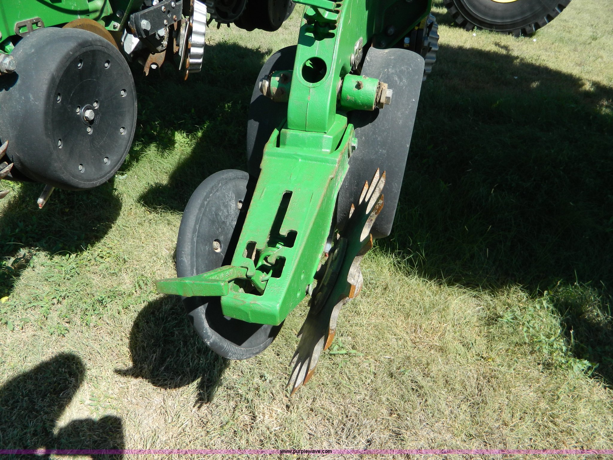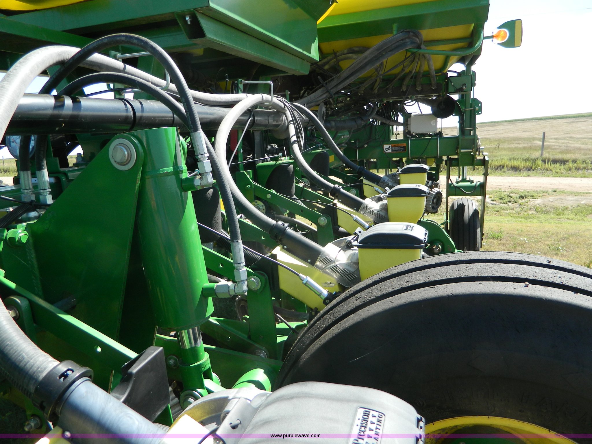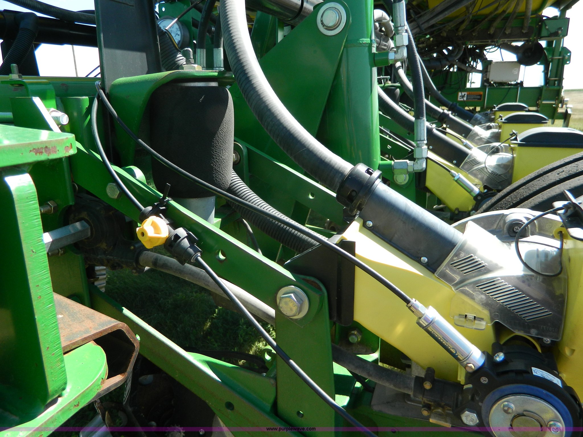 Purple Wave is selling a used Planter in Kansas. This item is a 2008 John Deere 1770NT CCS planter with the following: 12 row units, 30" row spacing, Hydraulic front fold, Pro Series row unit, Bulk fill system, Air delivery, Seed boxes, Hydraulic meter drive, Corn seed meters, Pneumatic down pressure, Martin row cleaners, Seed firmers, Double disk openers, Double rubber spiked closing system, 350 gallon liquid fertilizer tank, Seed firmer application, Insecticide boxes,, Three point, 10.00-15 transport tires, Operator's manual, Additional parts included, Unused seed firmers, TruCount air clutch system will be removed and replaced with factory standard parts, No additional seed boxes included, Serial A01770Z725134