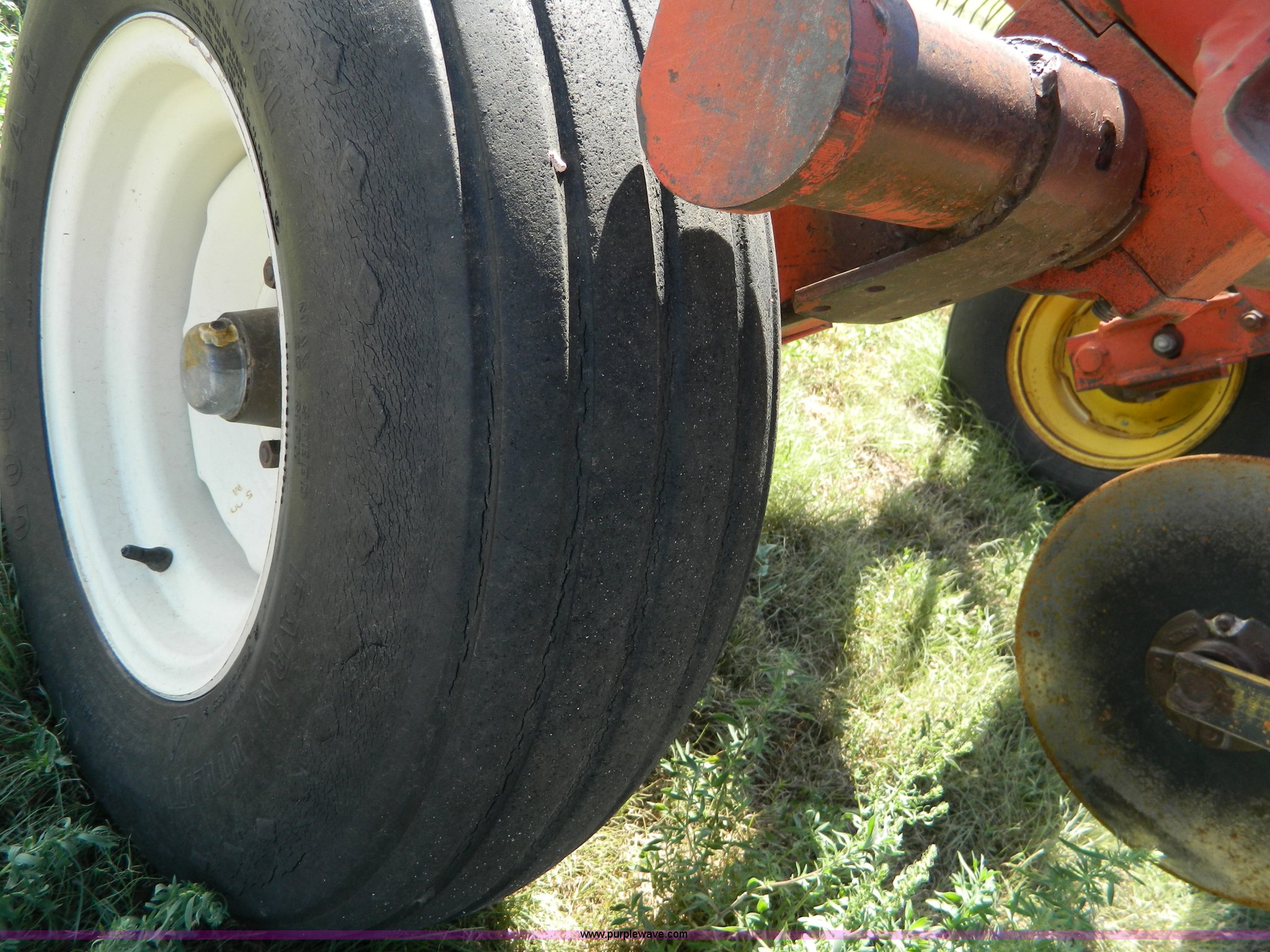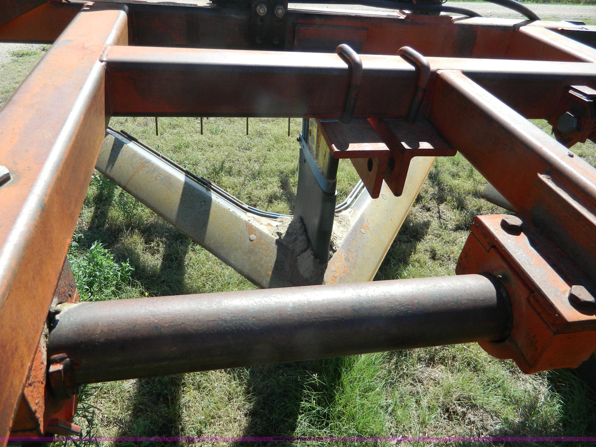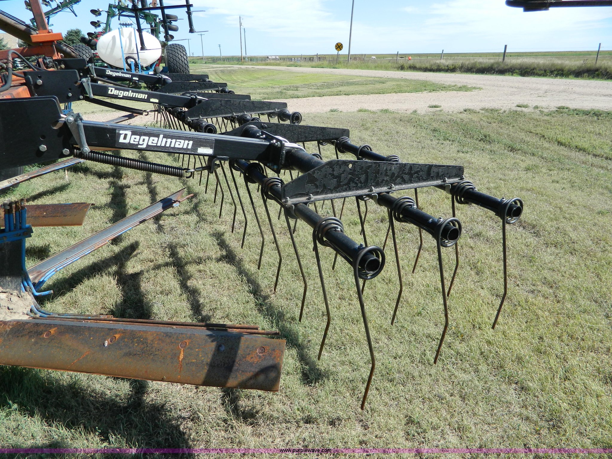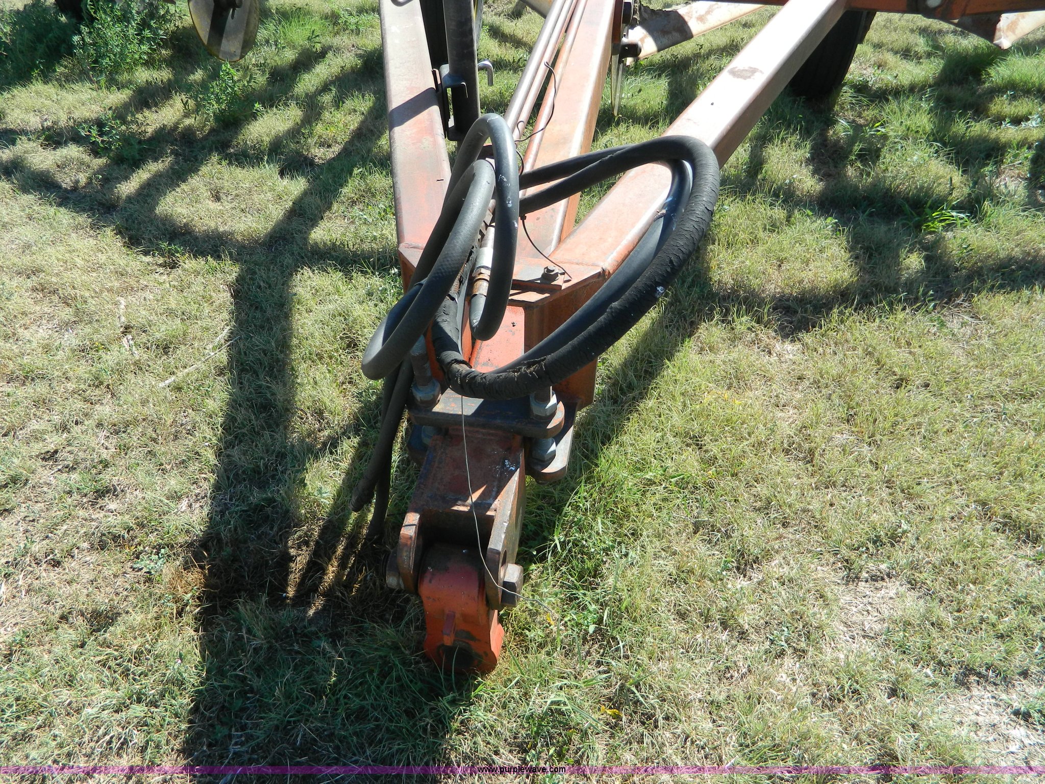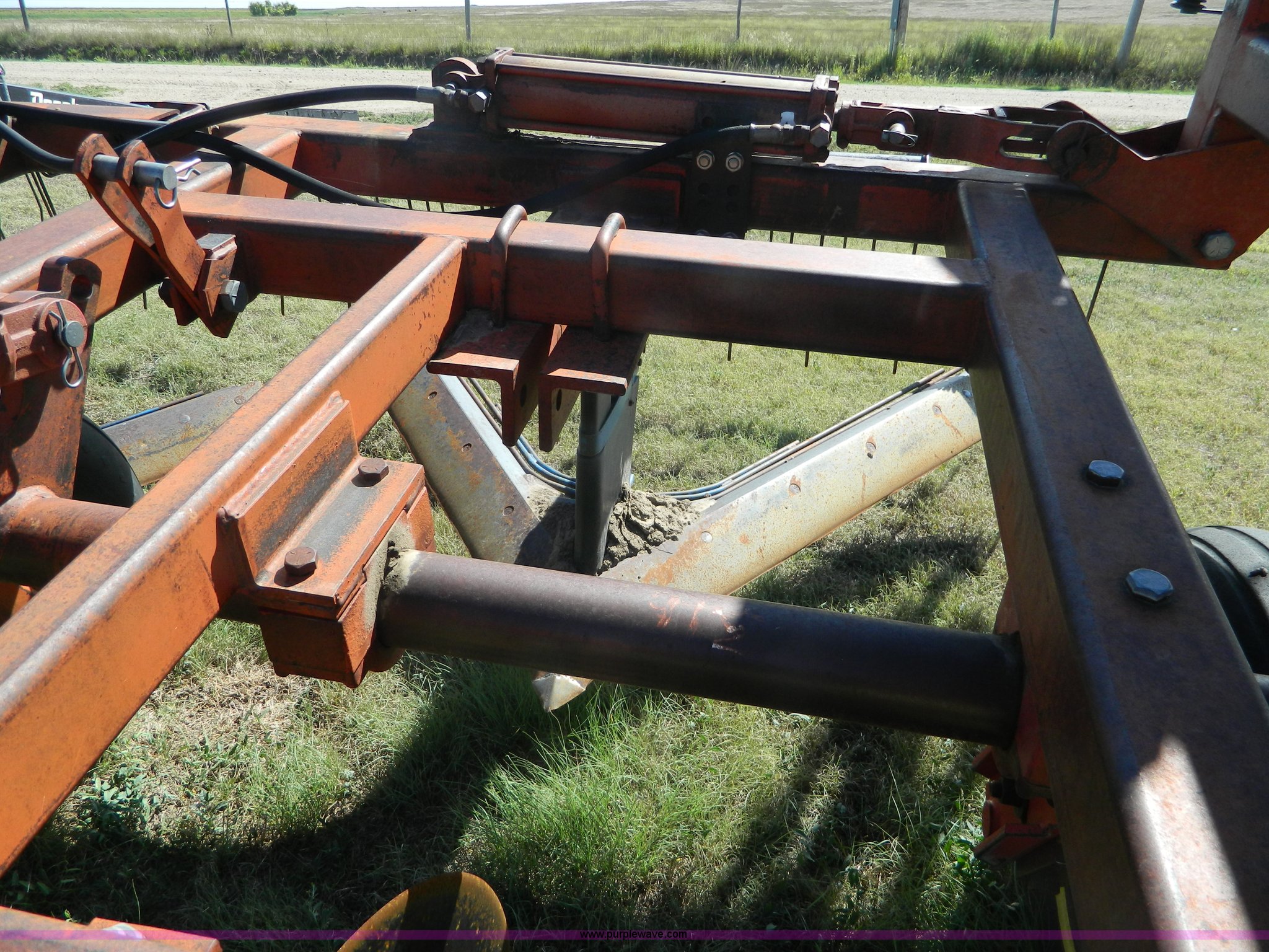 Purple Wave is selling a used Field Cultivator or Sweep Plow in Kansas. This item is a Sunflower sweep plow with the following: 30'W, (5) 6' blades, Dangelman three bar tine harrow, Hydraulic lift and fold, Pin/clevis hitch, 9.5L-15 transport tires