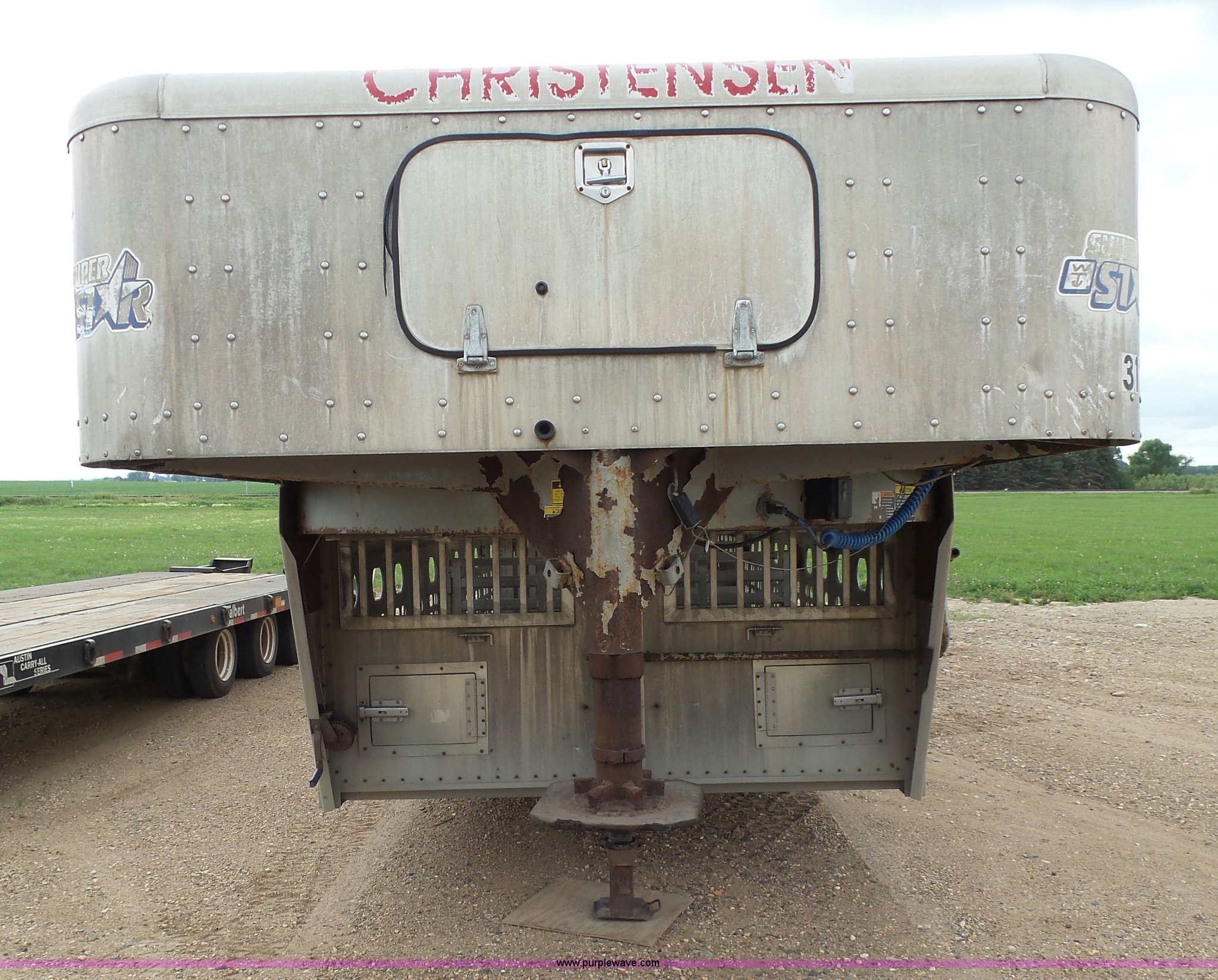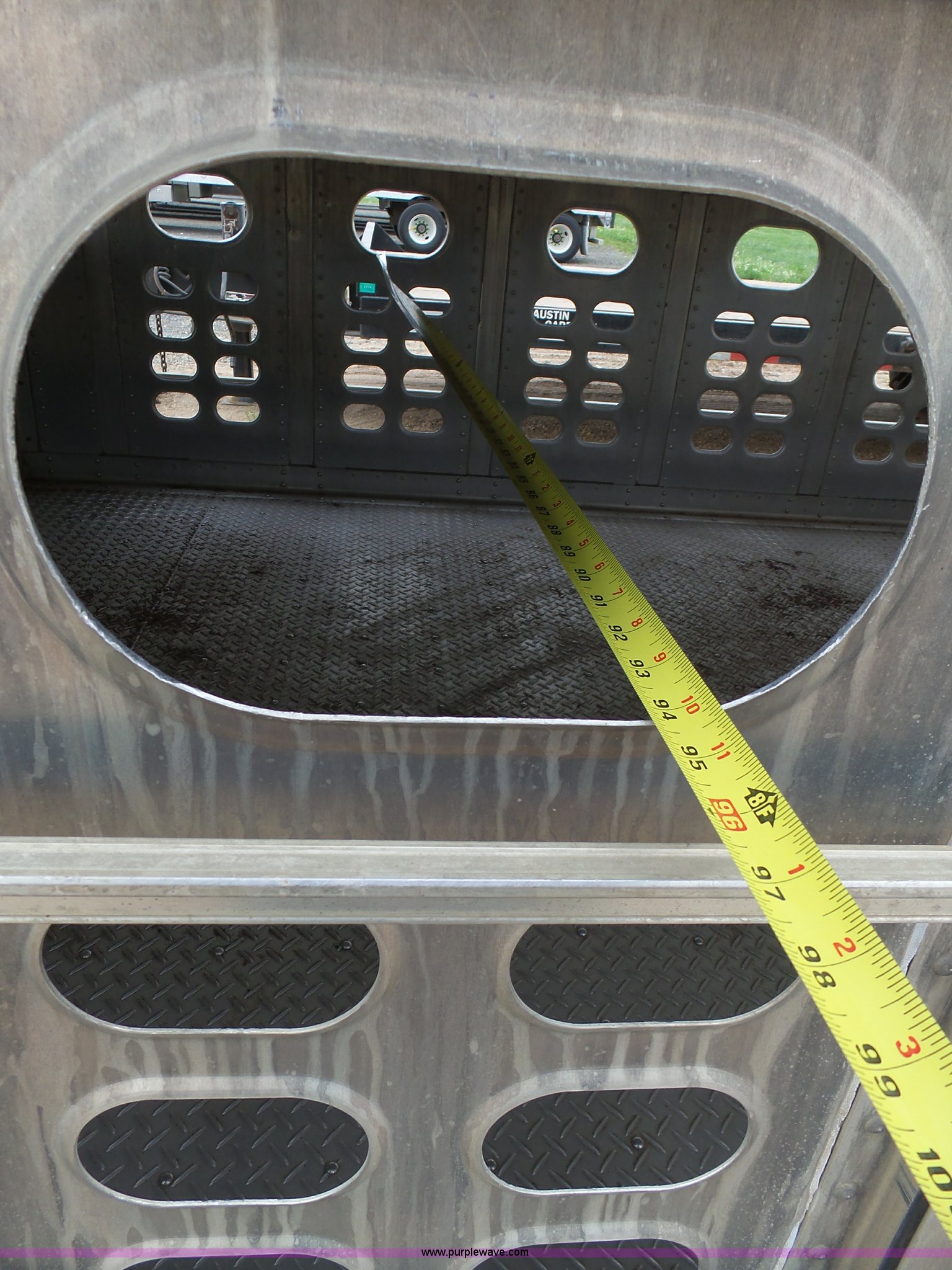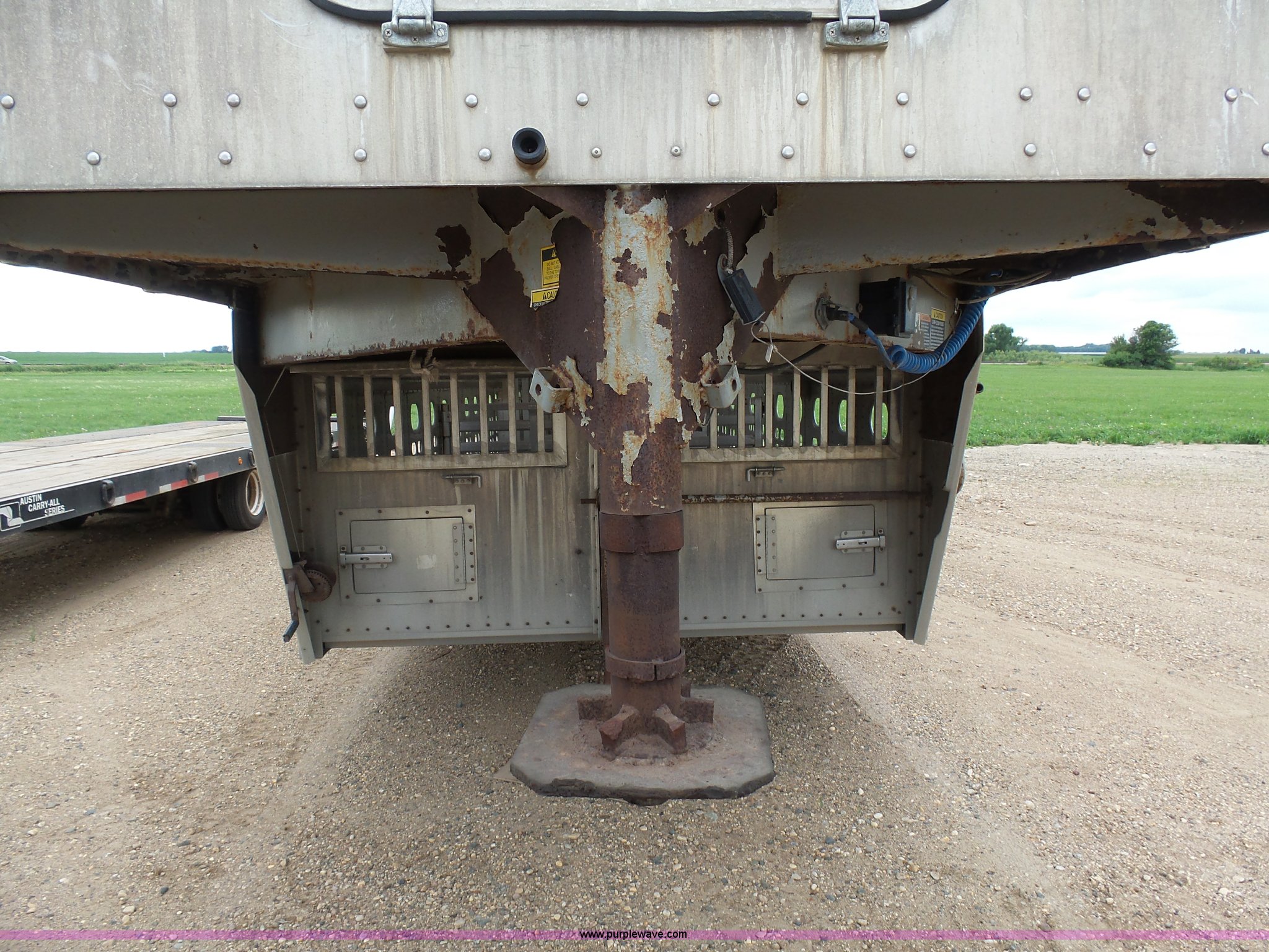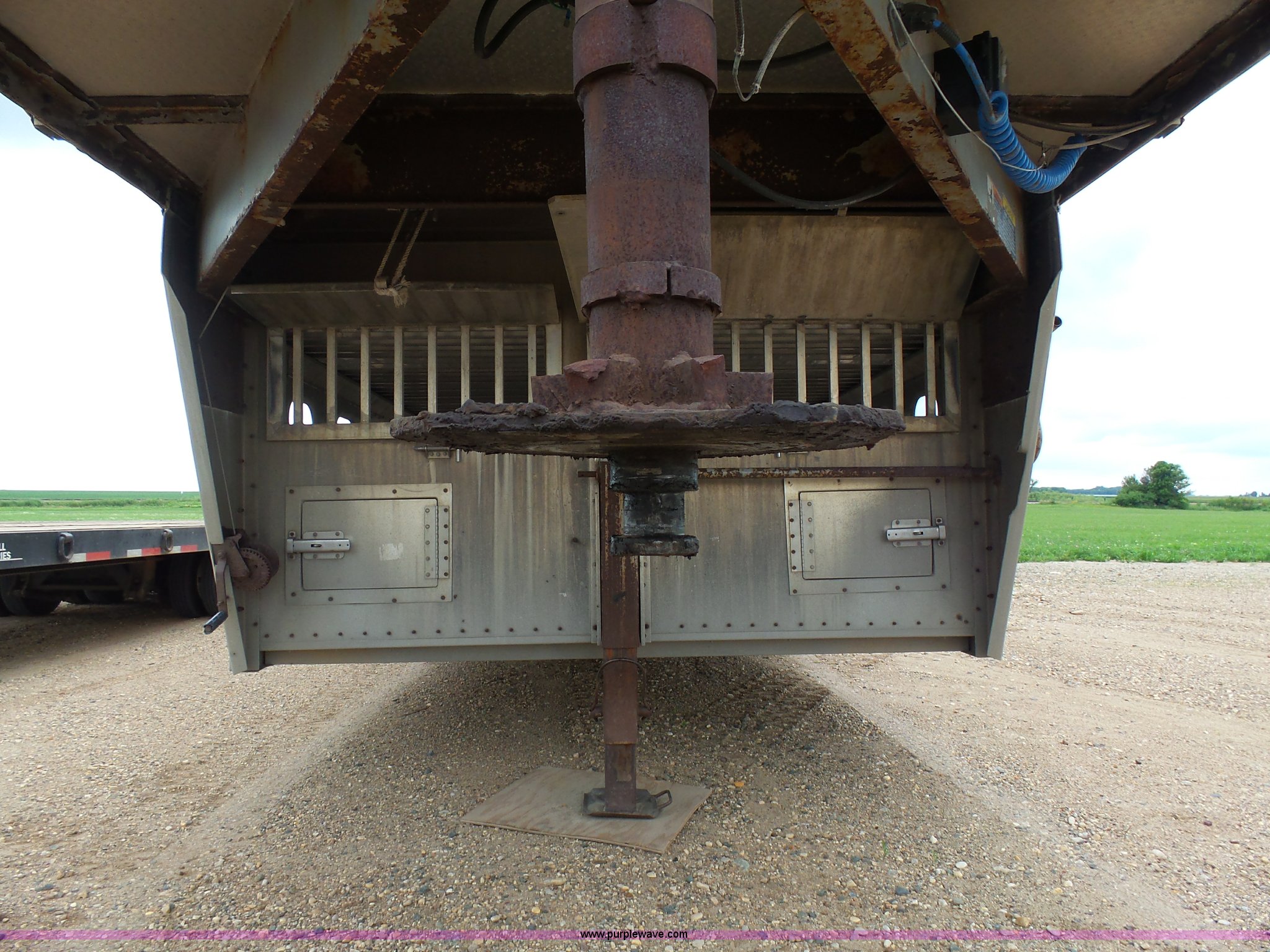Purple Wave is selling a used Livestock Equip. in Minnesota. This item is a 2004 Wilson TRL livestock trailer with the following: 42'L x 94"W, 6' side height, (2) center divider gates, Side door, Rear roll up gate, Side load gate, Ground load, Dock bumper, Aluminum construction, Fifth wheel plate, Single leg landing gear, Spring suspension, Electric brakes, Steel wheels, 10R17.5 tires, GVWR 25,000 lbs, GAWR 9,350 lbs