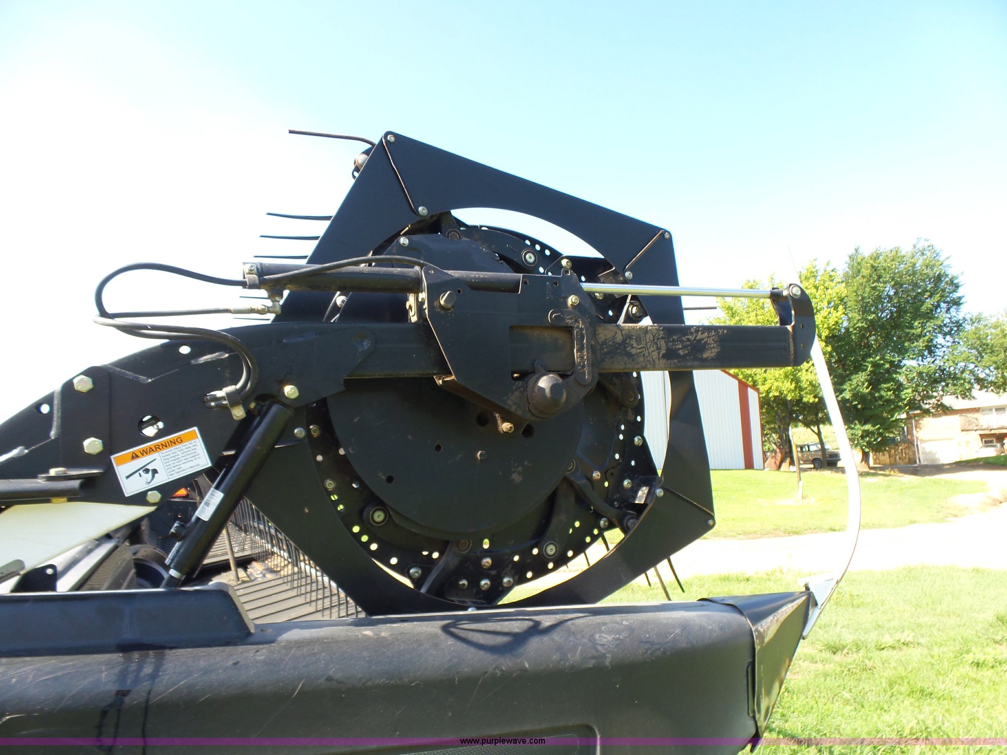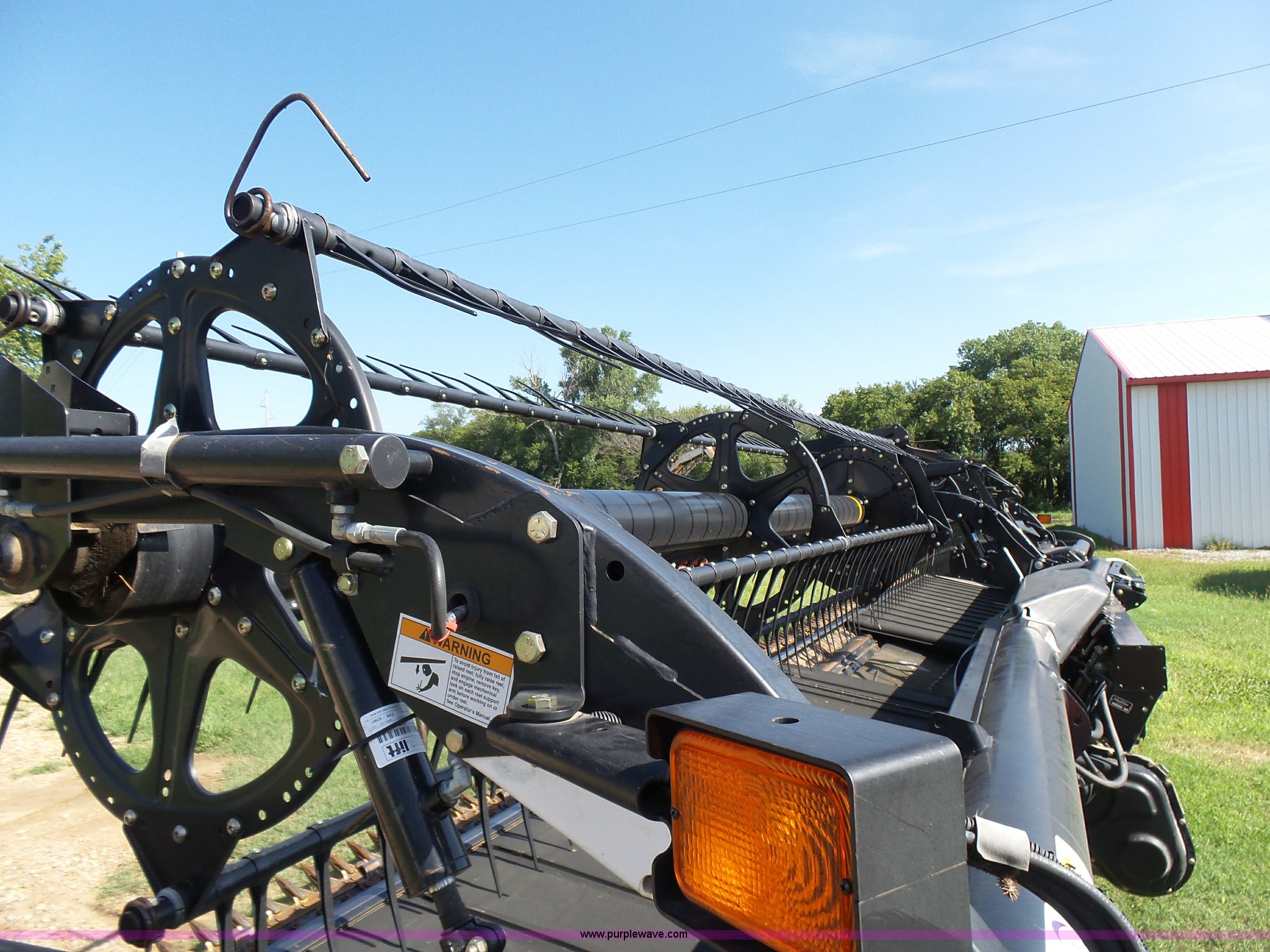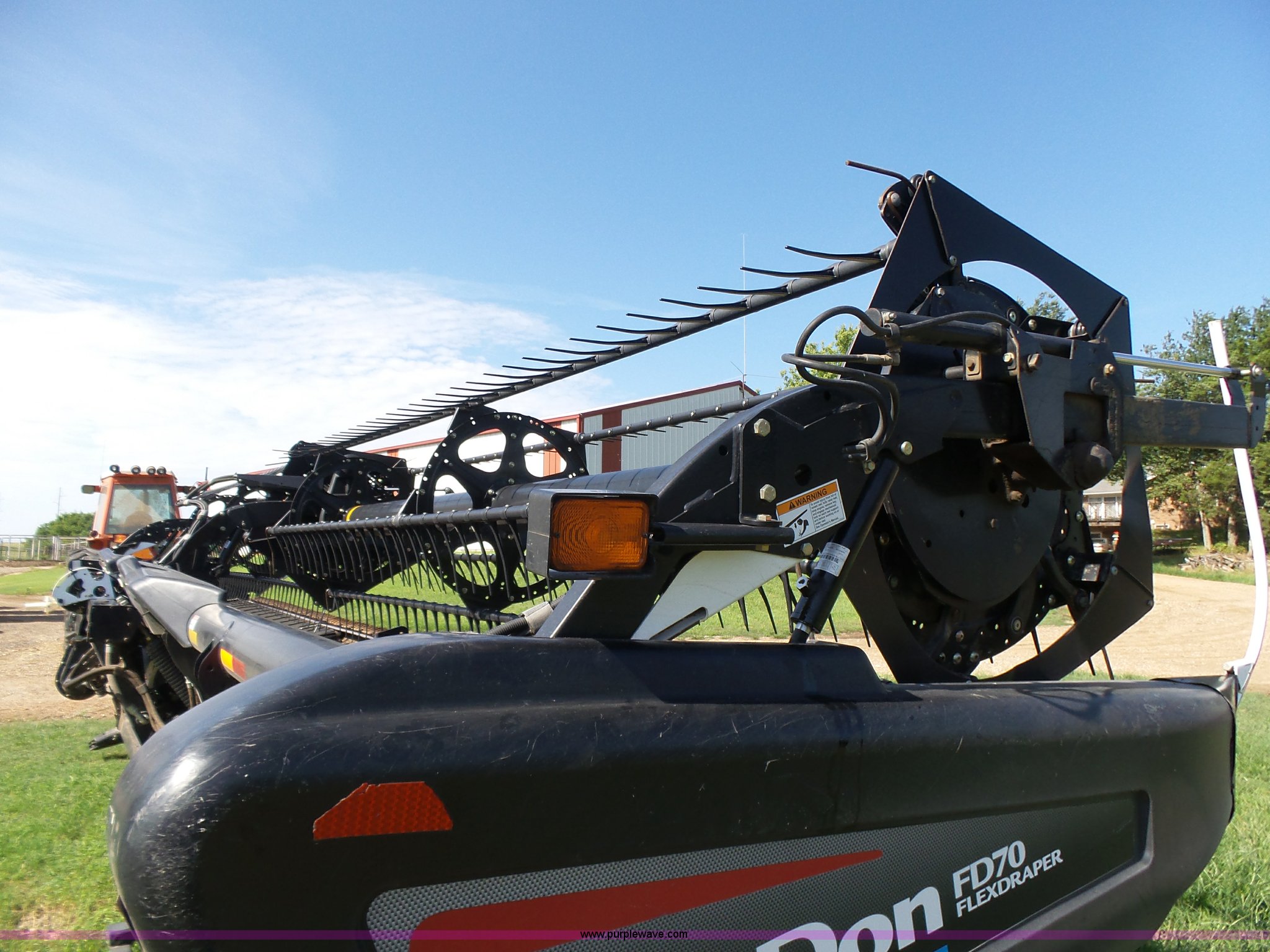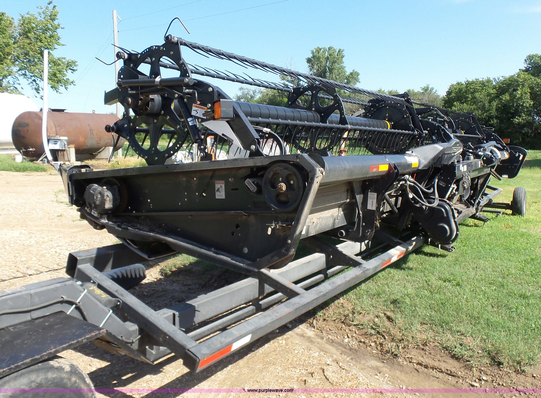 Purple Wave is selling a used Platform or Stripper Head in Kansas. This item is a 2009 MacDon FD70 flex draper head with the following: 35'W, Finger reel, Hydraulic fore/aft, Hydraulic reel height control, Single driveline, Unknown operating condition, Collision damage, Trailer not included, Serial 186629