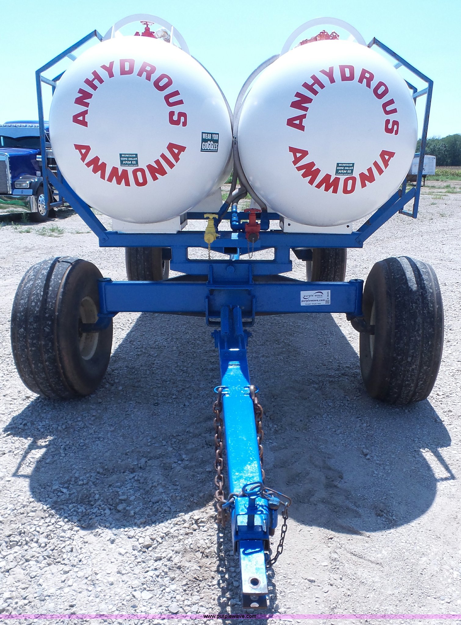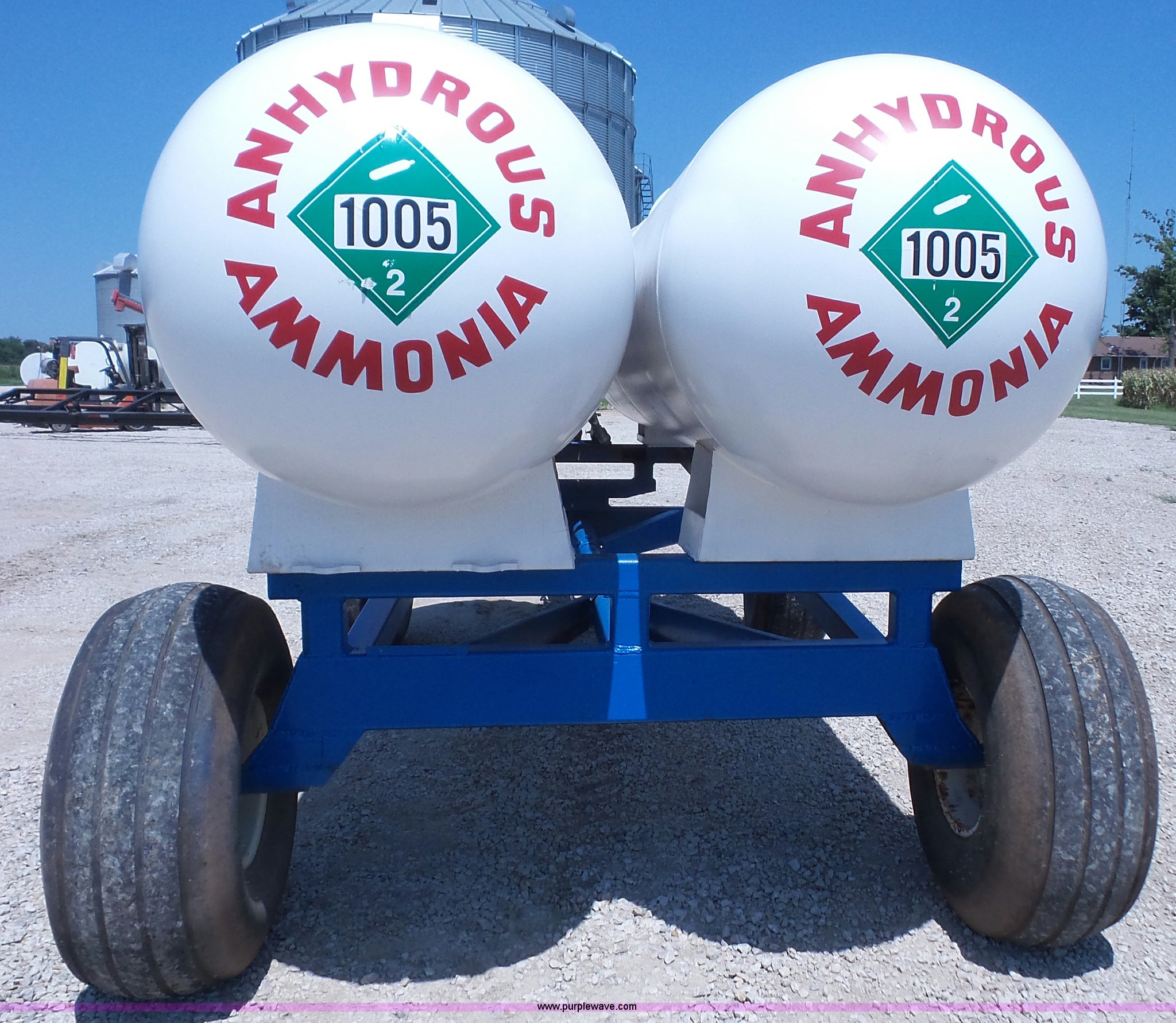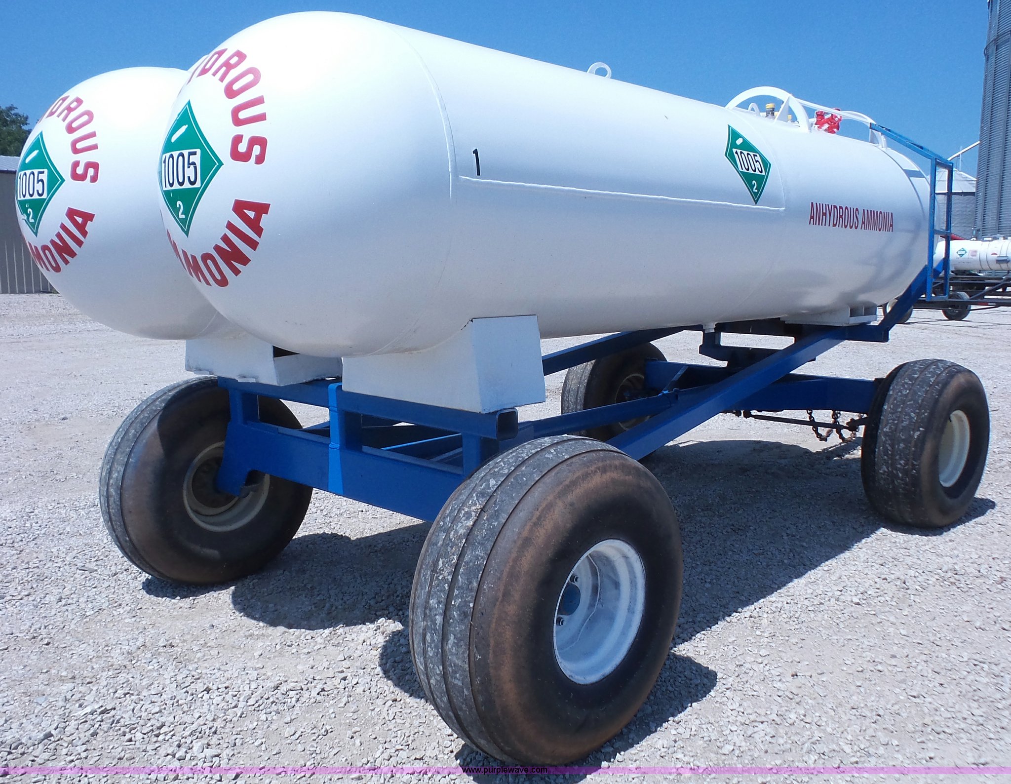 Purple Wave is selling a used Applicator Attach. in Kansas. This item is a LTC dual anhydrous tank unit with the following: (2) 1,000 gallon capacity tanks, Valves and couplers for each tank, Ladder on each side, Pin hitch, 16.5L-16.1 tires