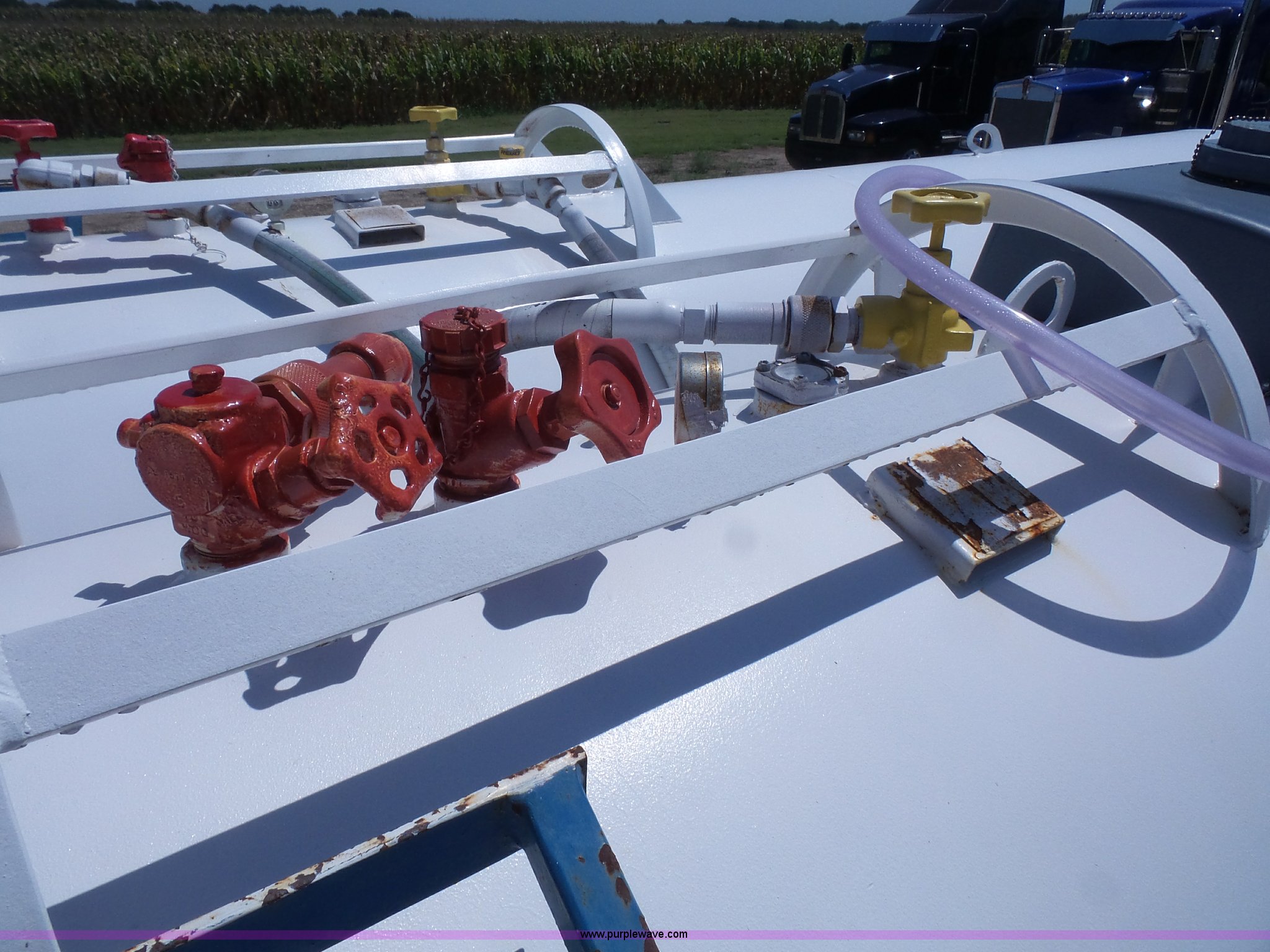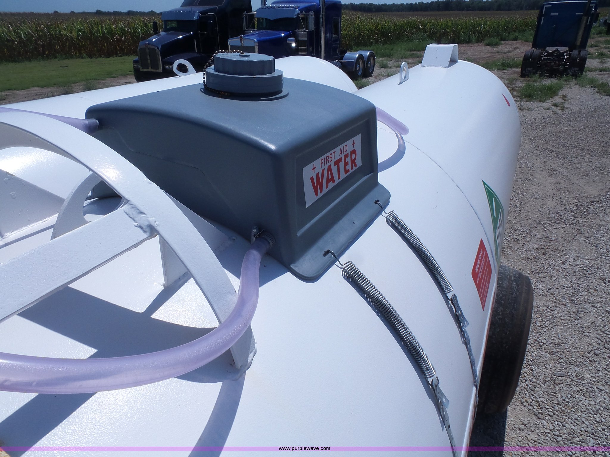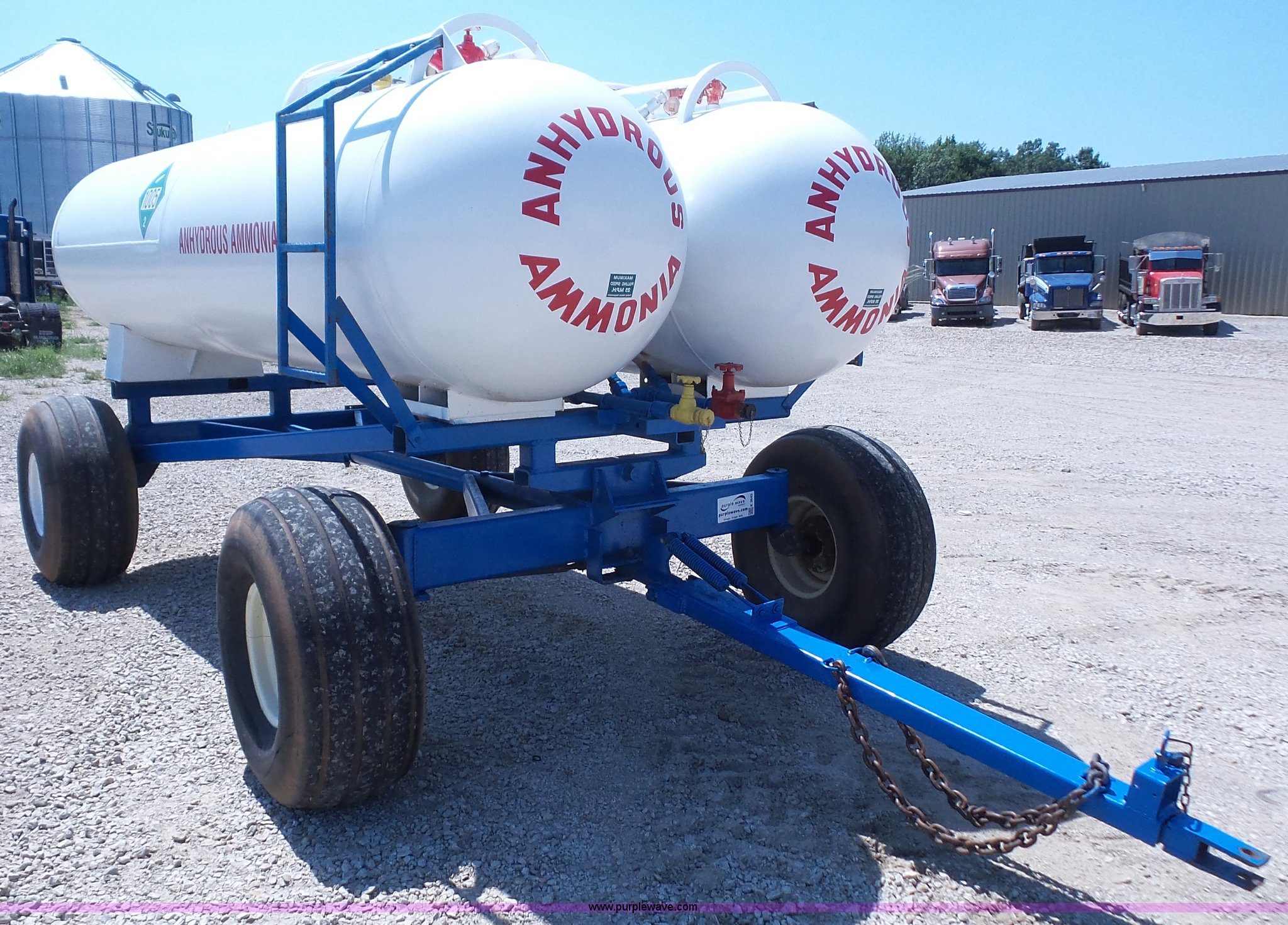 Purple Wave is selling a used Applicator Attach. in Kansas. This item is a LTC dual anhydrous tank unit with the following: (2) 1,000 gallon capacity tanks, Valves and couplers for each tank, Ladder on each side, Pin hitch, 16.5L-16.1 tires