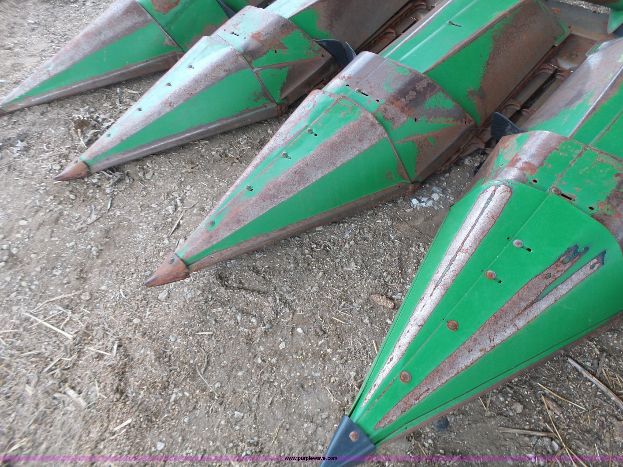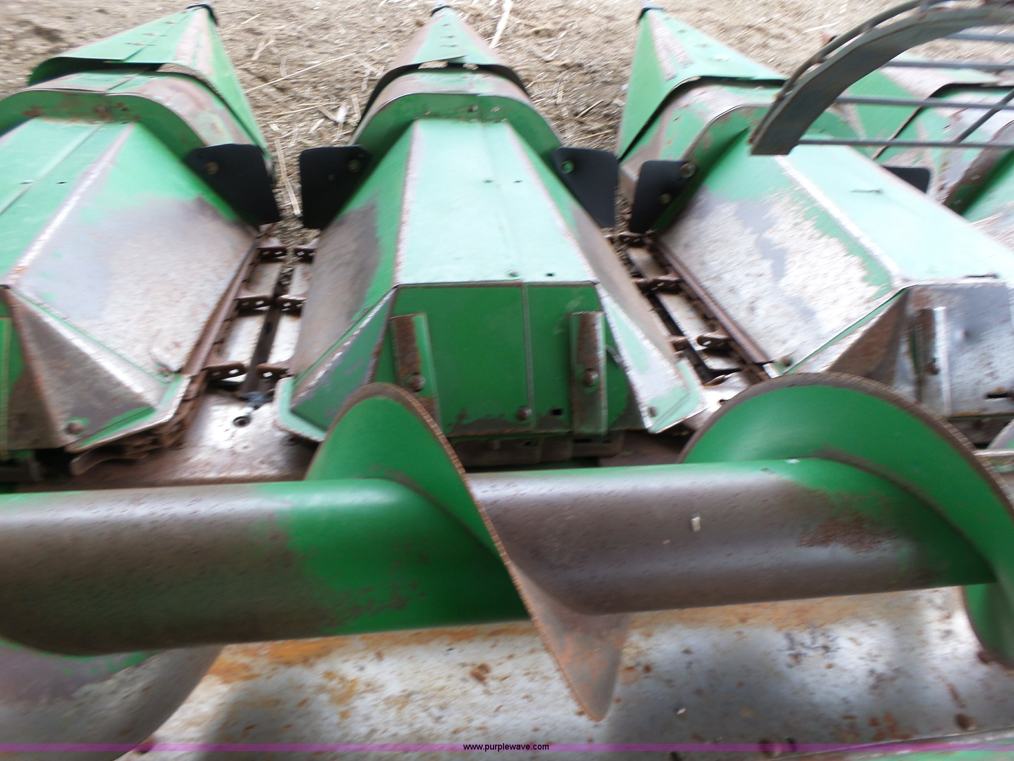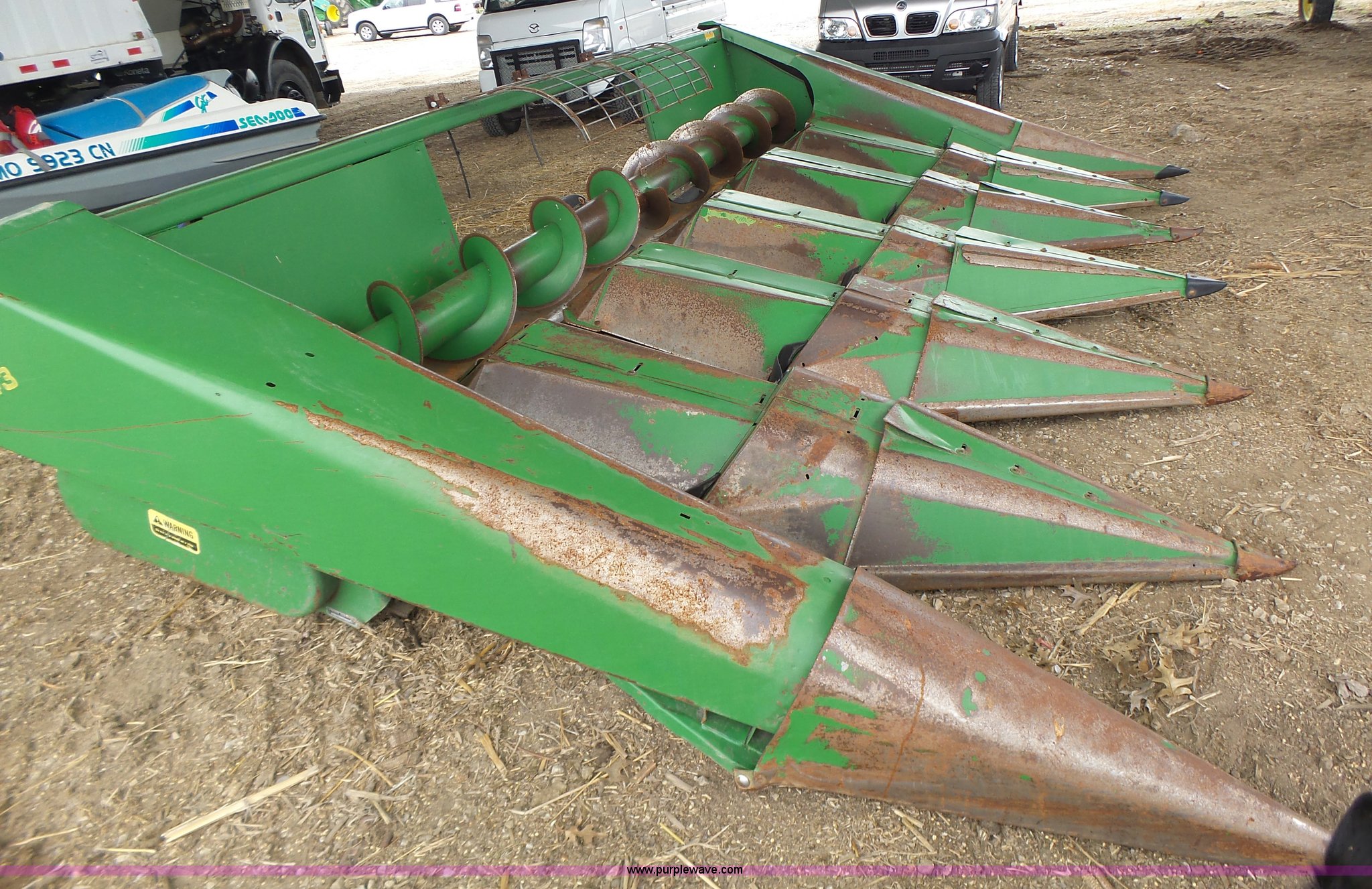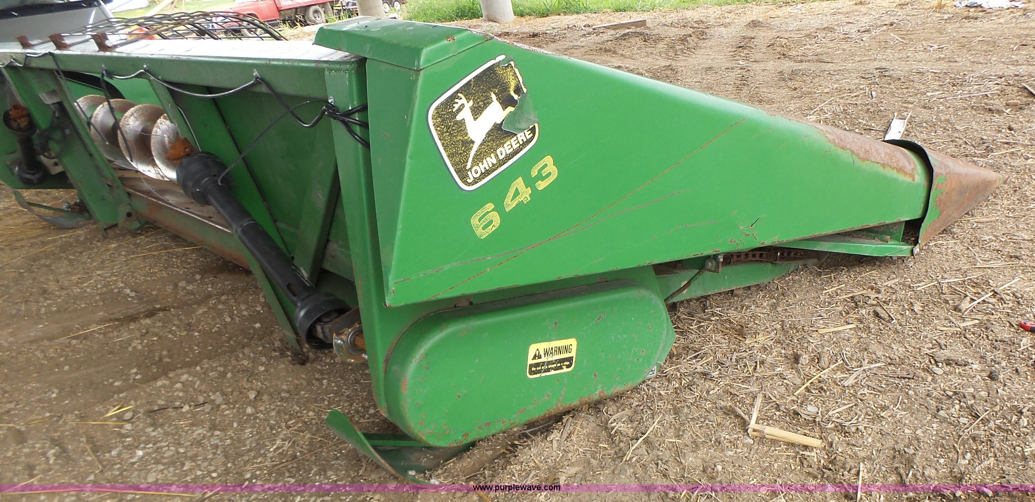 Purple Wave is selling a used Corn or Row Head in Missouri. This item is a John Deere 643 corn head with the following: Six row, 30" row spacing, Contour Master, Stalk stompers, 1000 PTO, Serial 384538