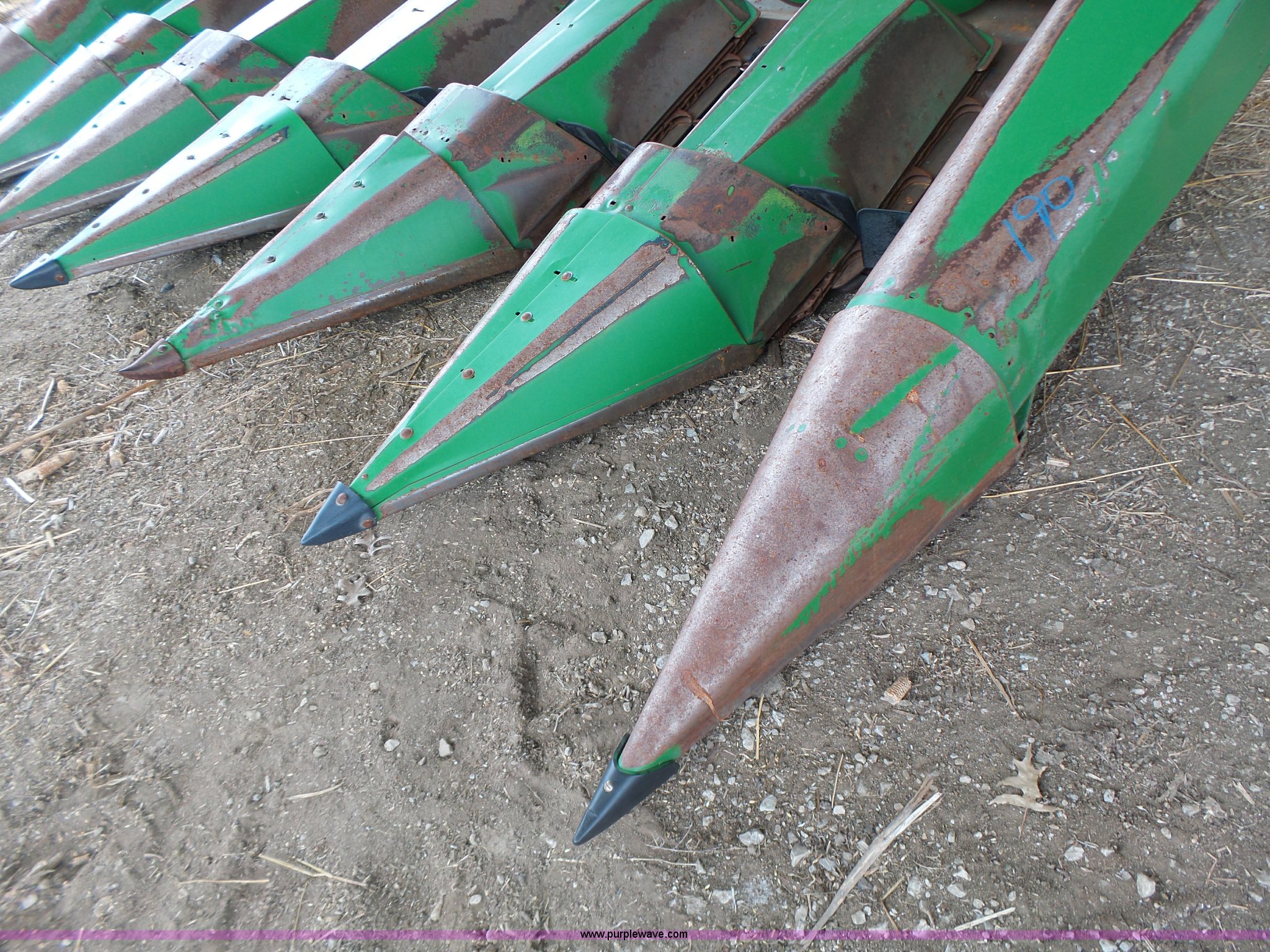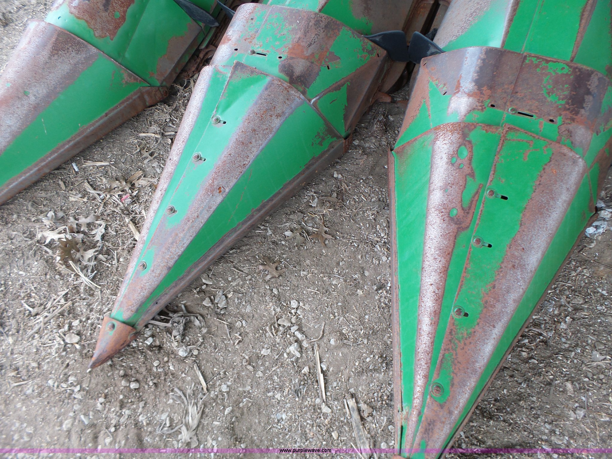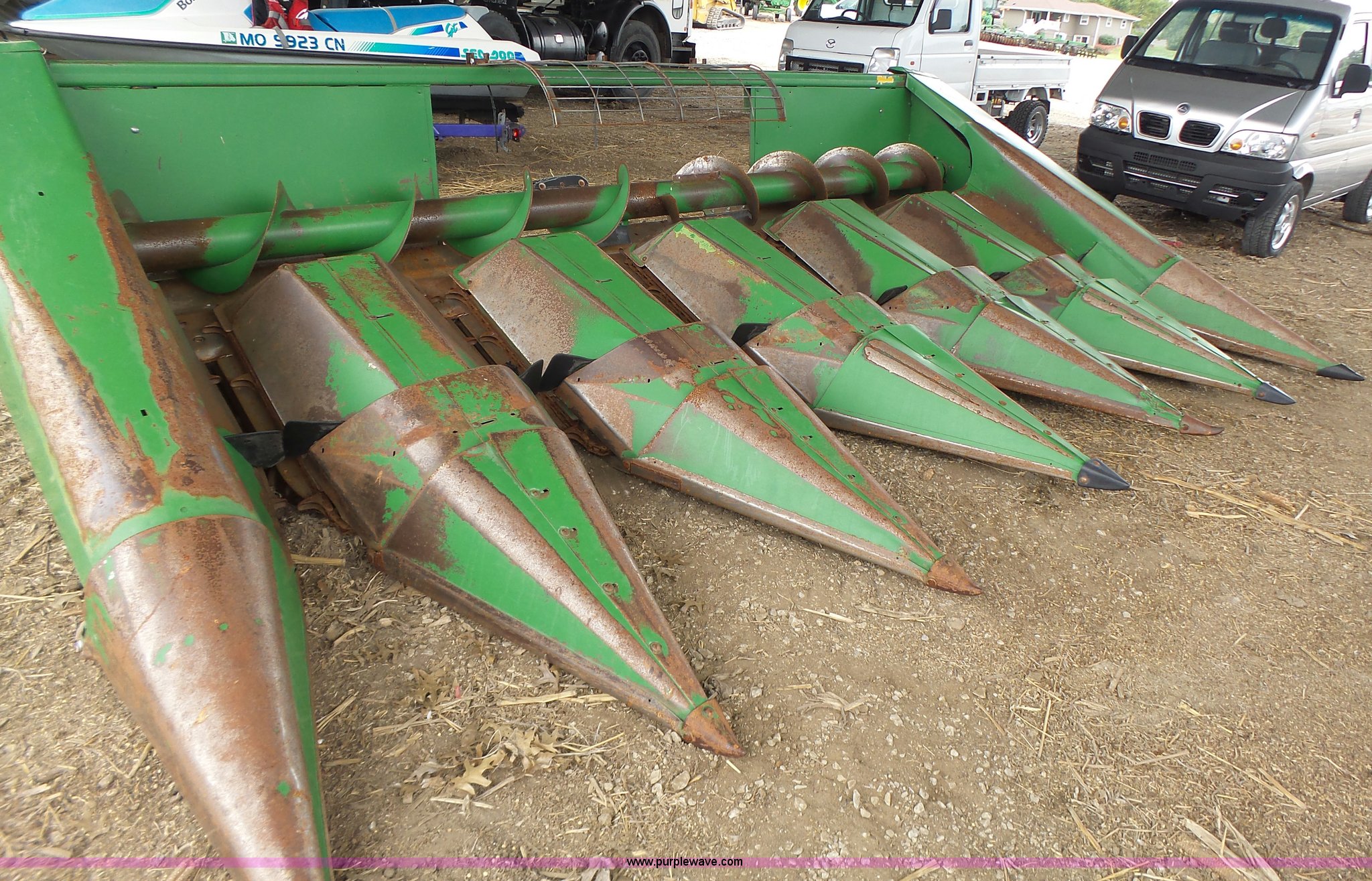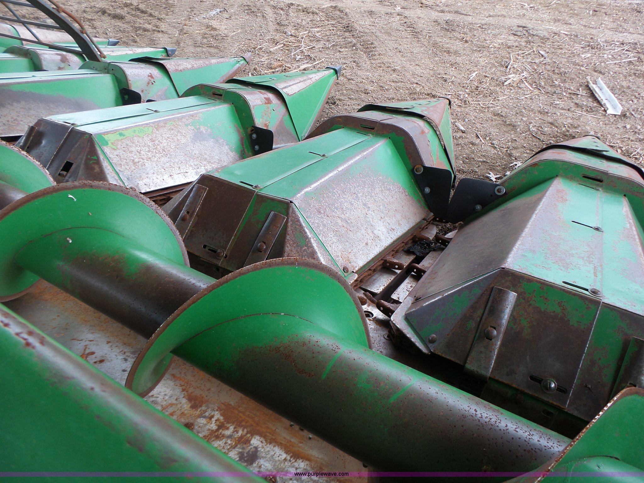 Purple Wave is selling a used Corn or Row Head in Missouri. This item is a John Deere 643 corn head with the following: Six row, 30" row spacing, Contour Master, Stalk stompers, 1000 PTO, Serial 384538