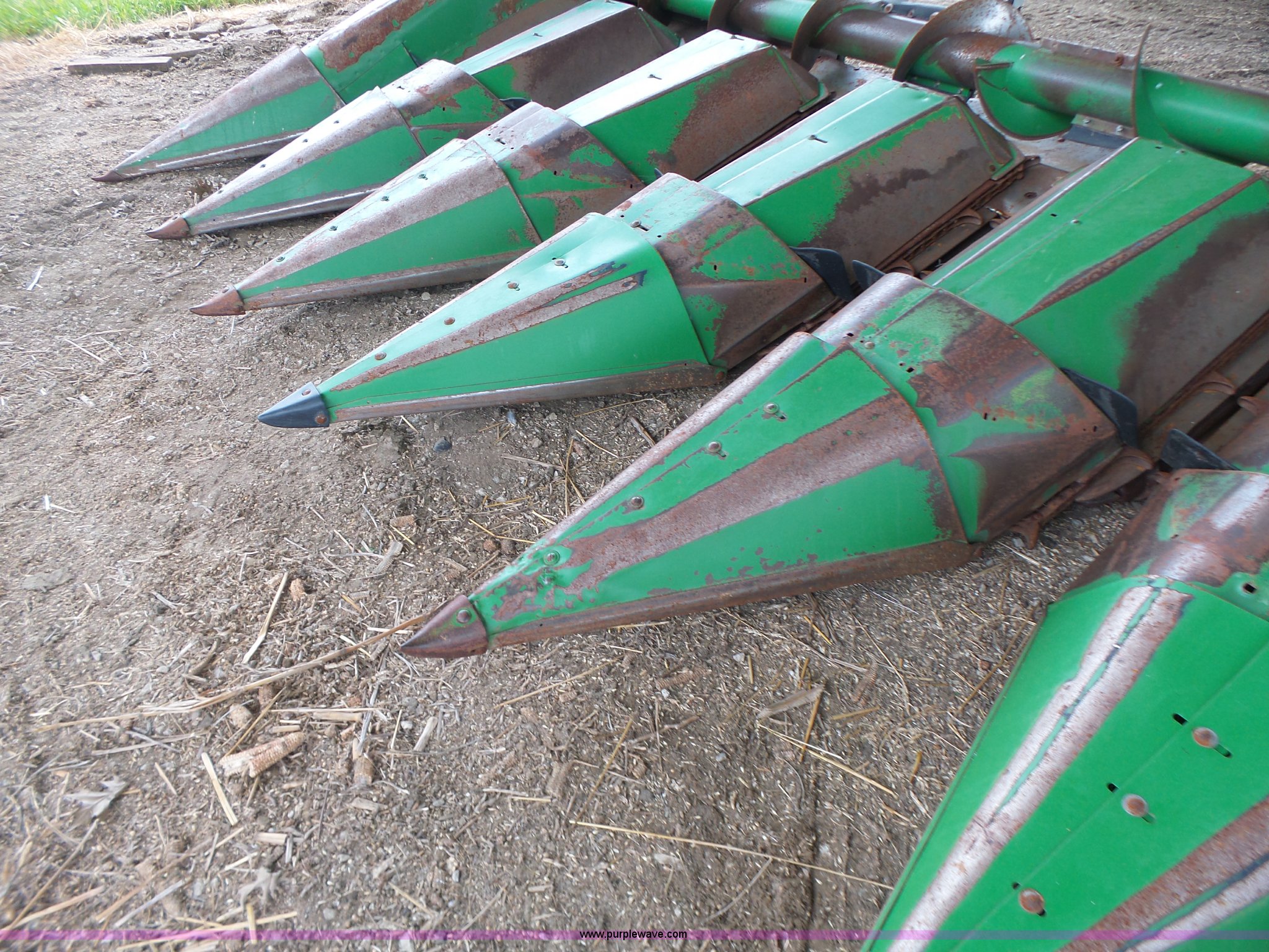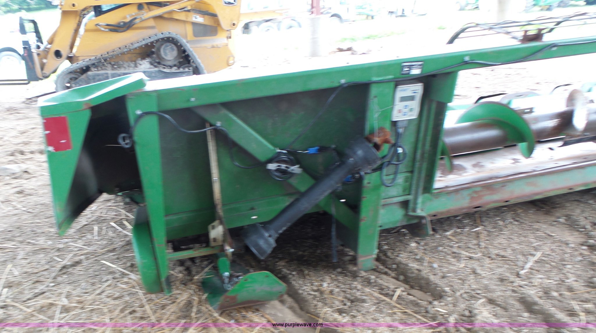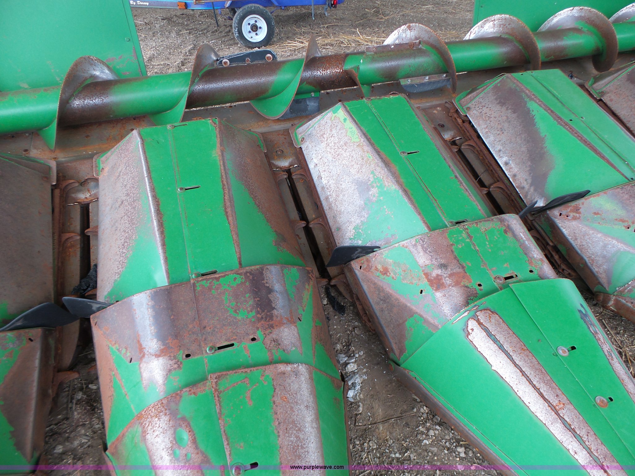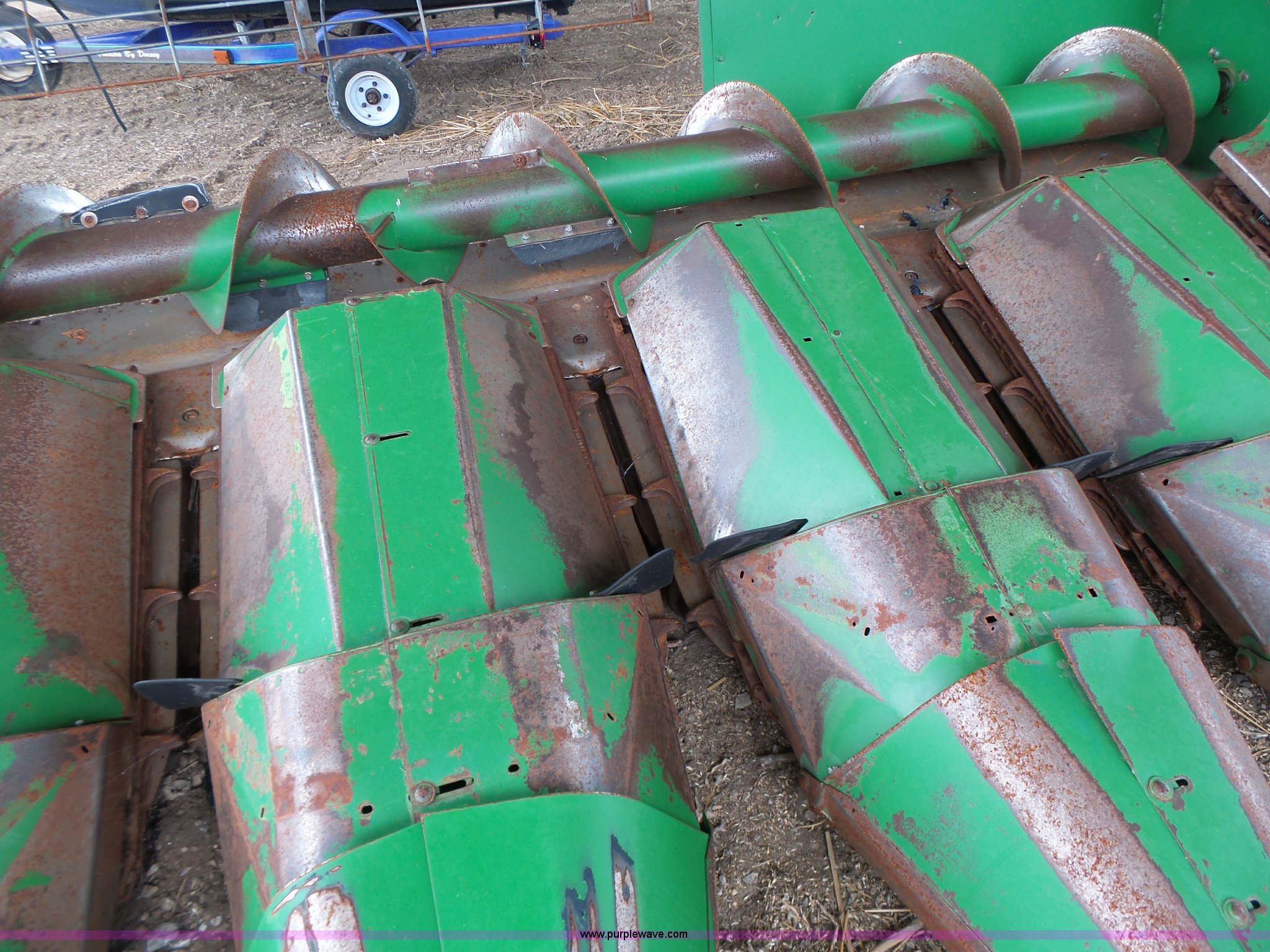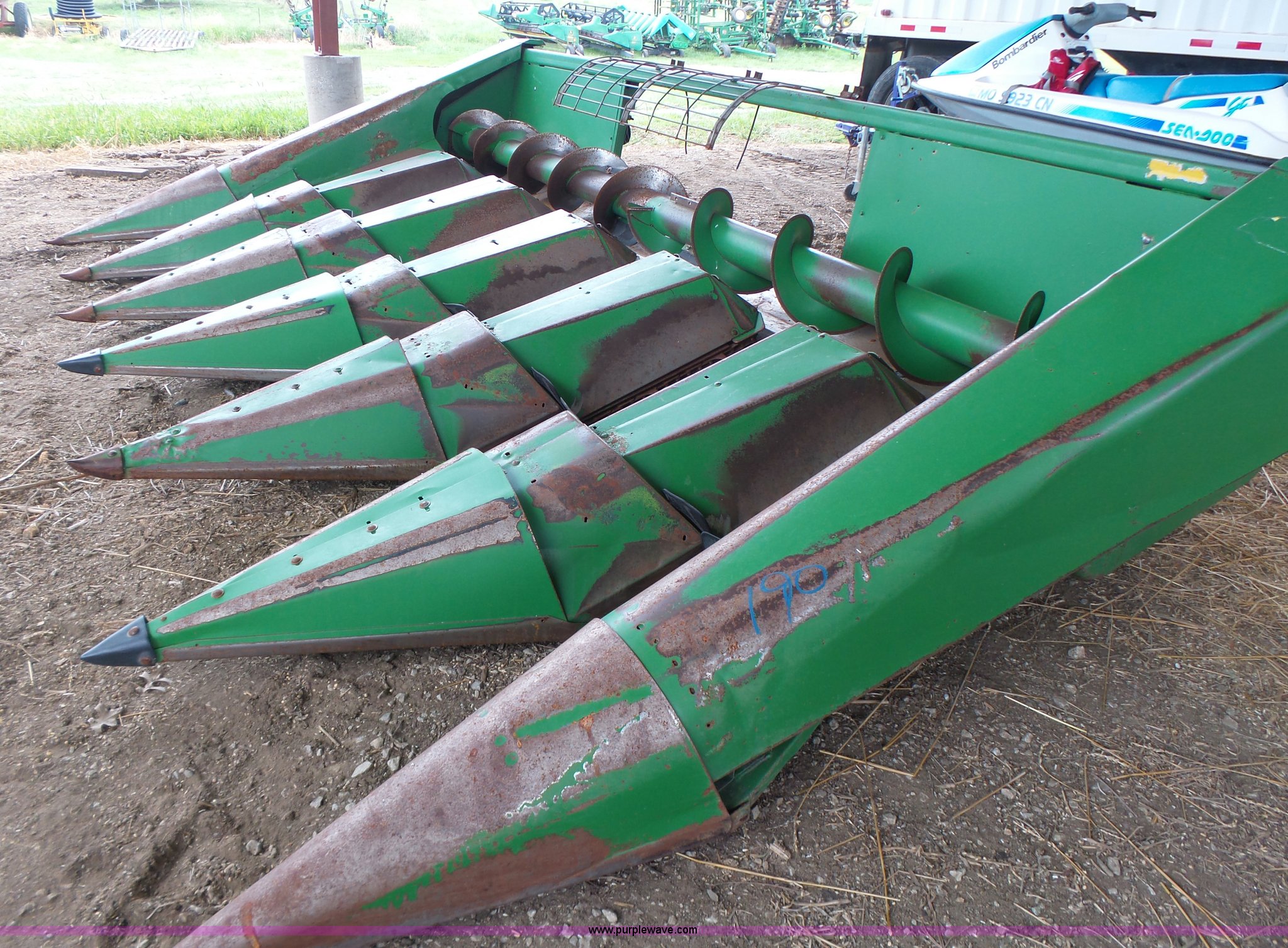 Purple Wave is selling a used Corn or Row Head in Missouri. This item is a John Deere 643 corn head with the following: Six row, 30" row spacing, Contour Master, Stalk stompers, 1000 PTO, Serial 384538