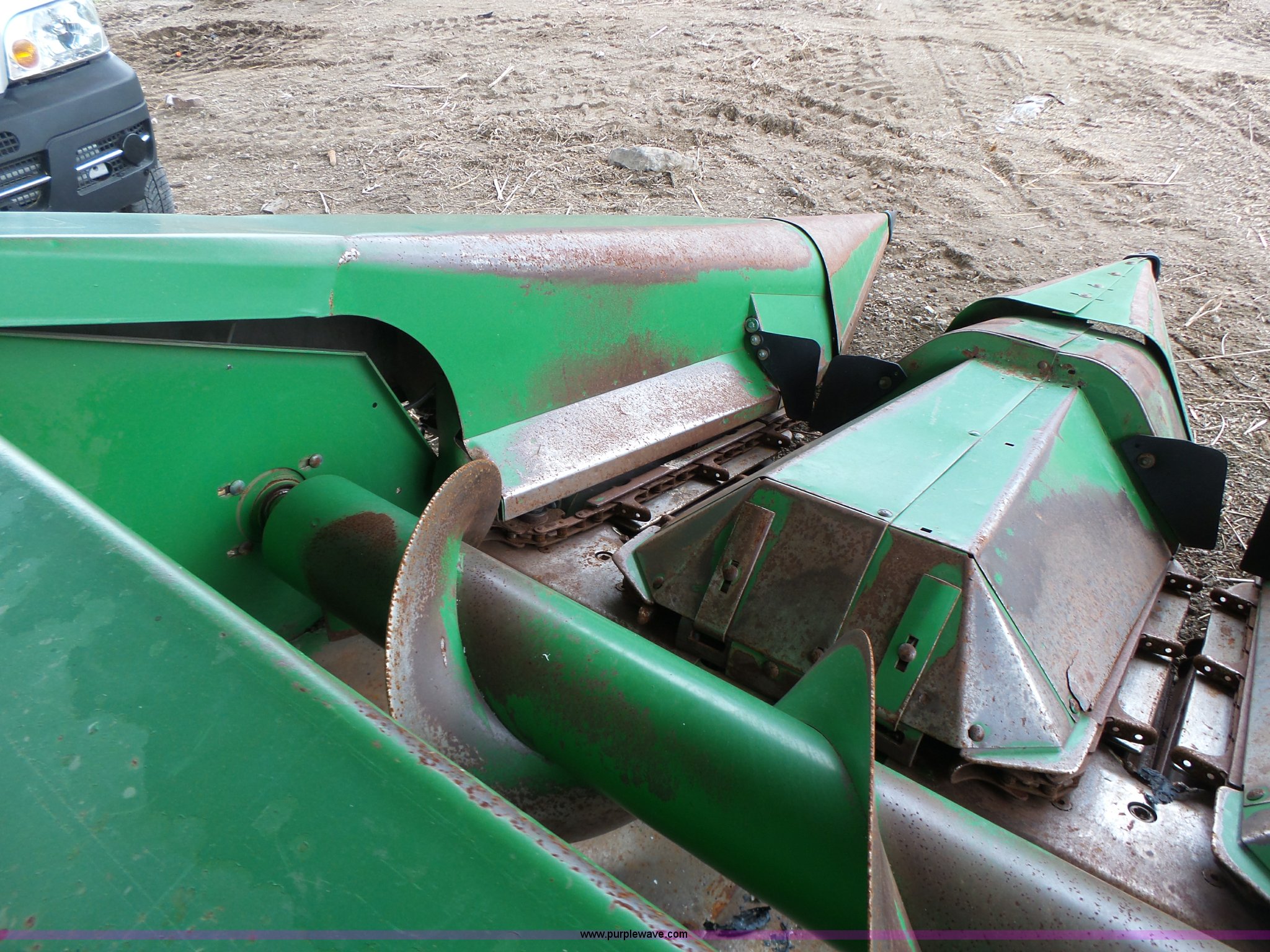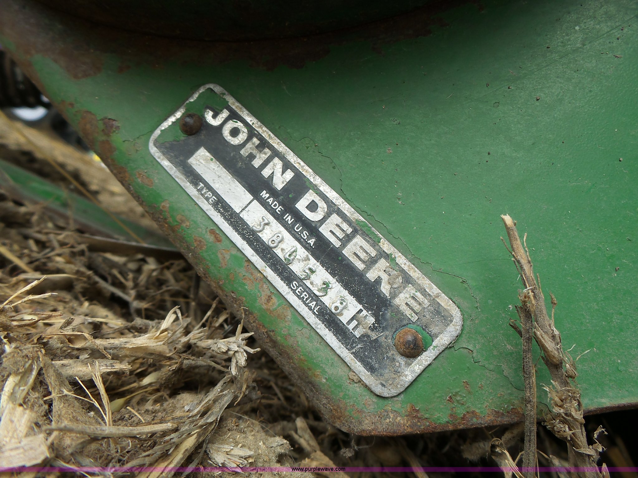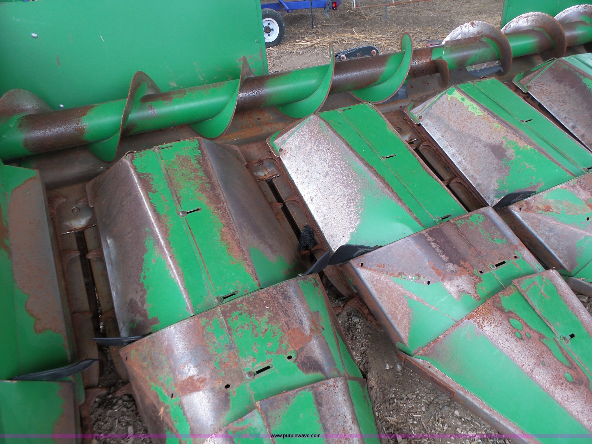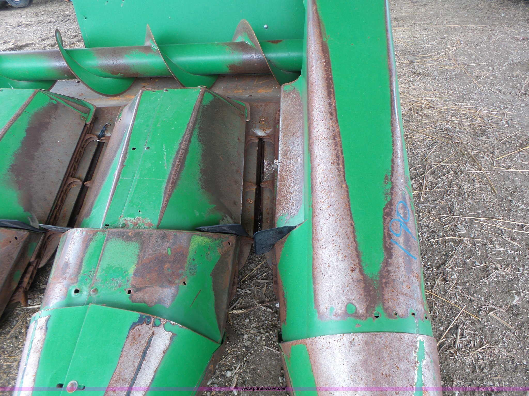 Purple Wave is selling a used Corn or Row Head in Missouri. This item is a John Deere 643 corn head with the following: Six row, 30" row spacing, Contour Master, Stalk stompers, 1000 PTO, Serial 384538