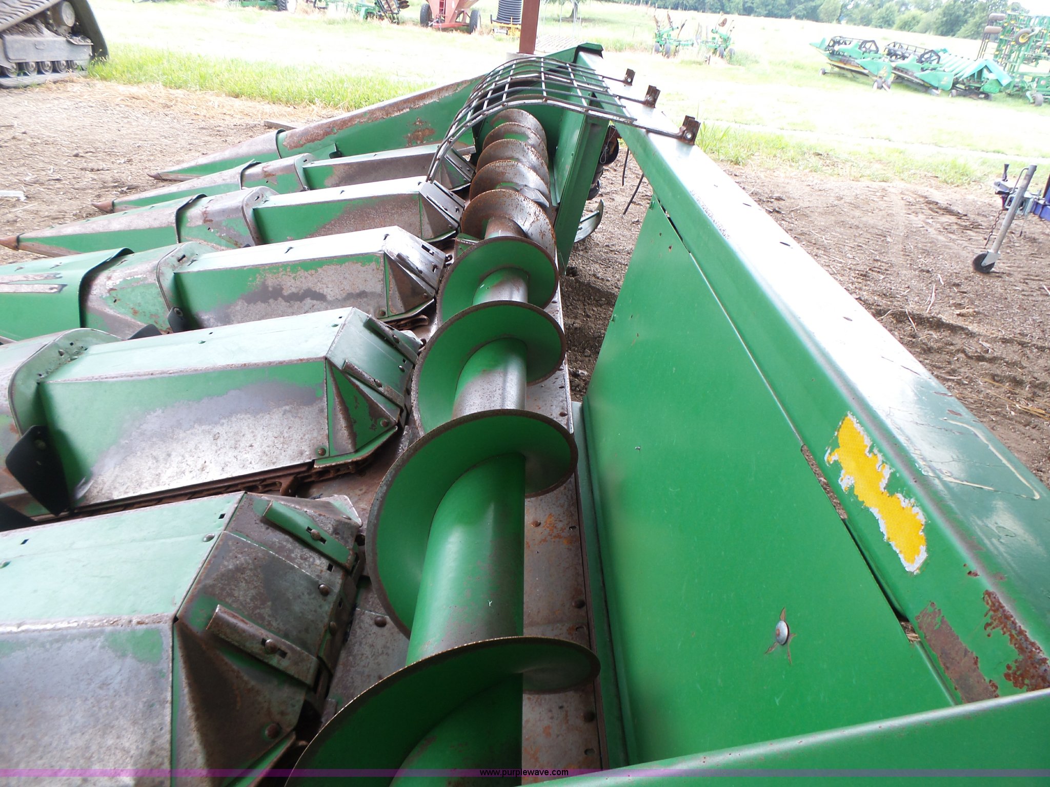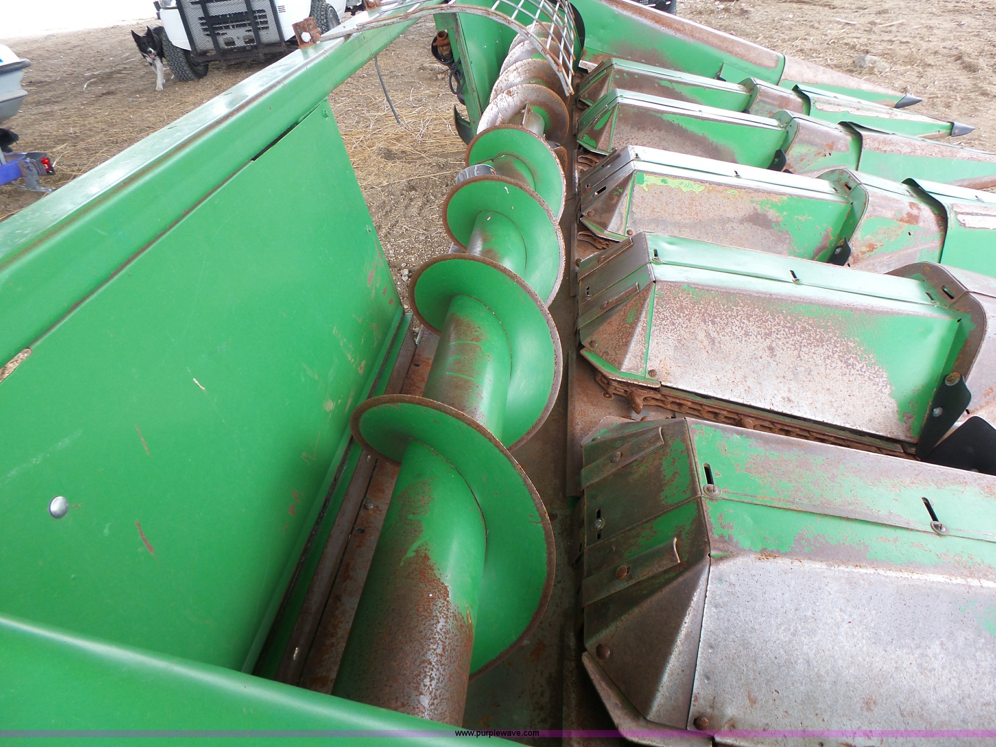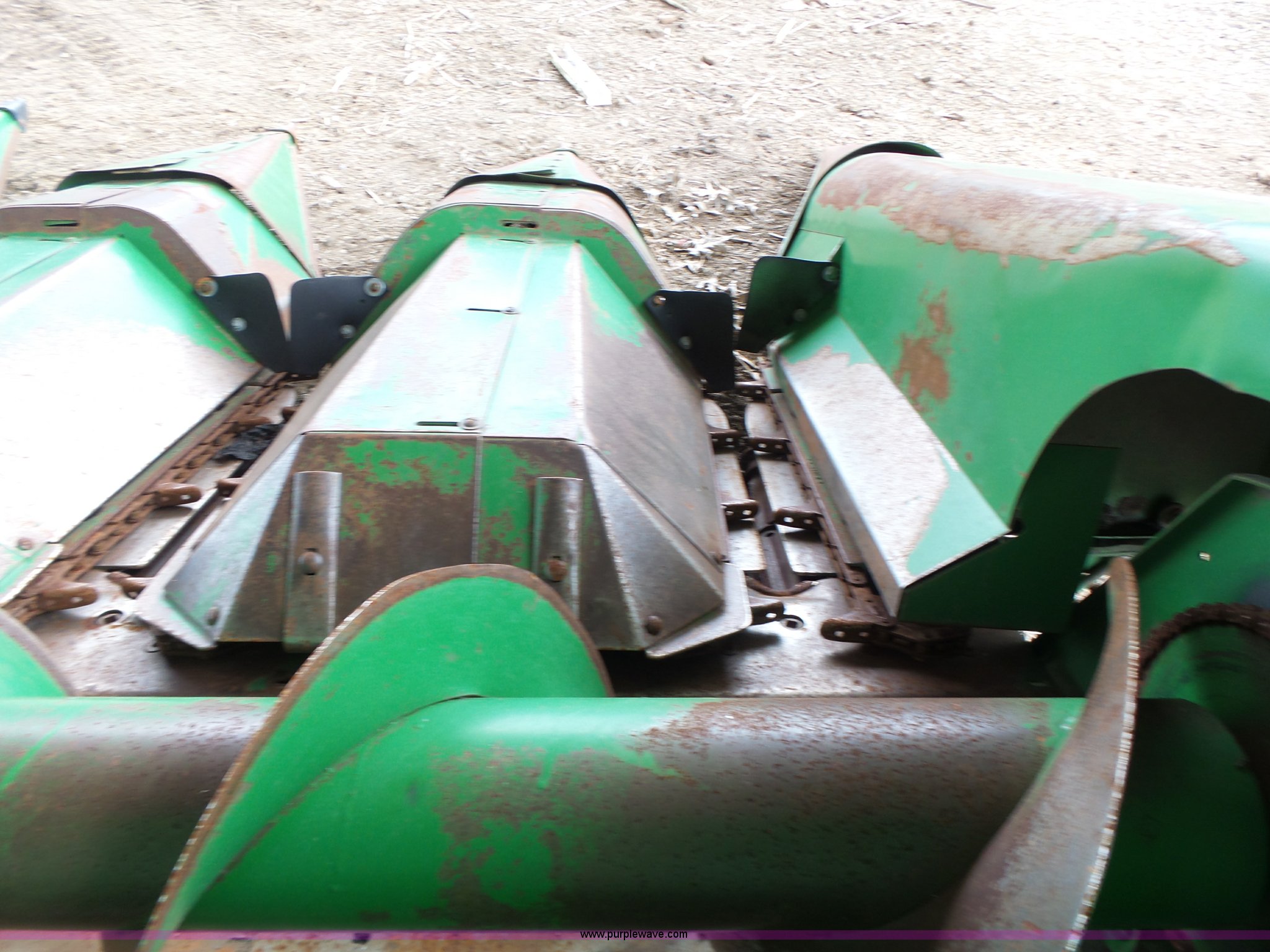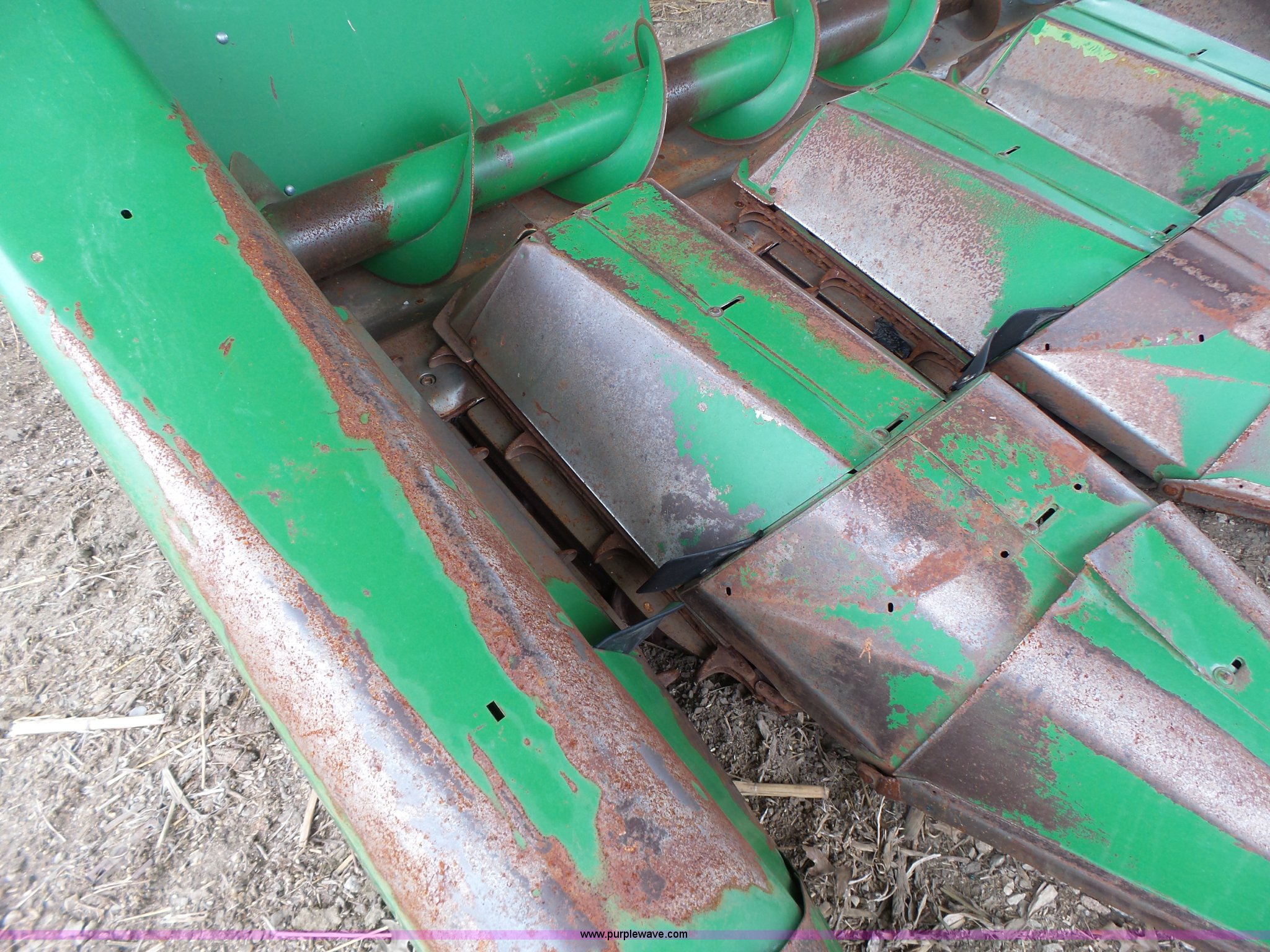 Purple Wave is selling a used Corn or Row Head in Missouri. This item is a John Deere 643 corn head with the following: Six row, 30" row spacing, Contour Master, Stalk stompers, 1000 PTO, Serial 384538