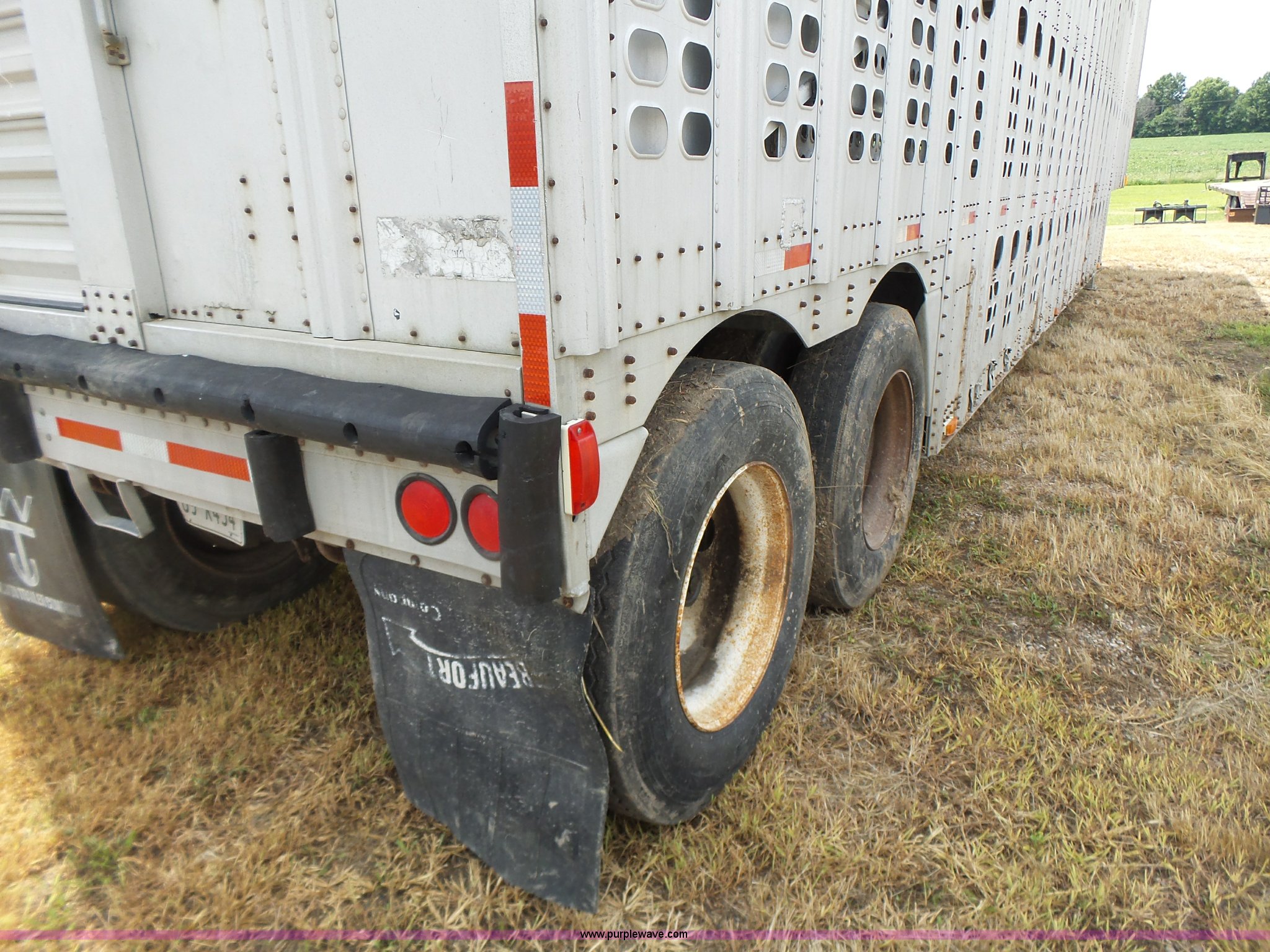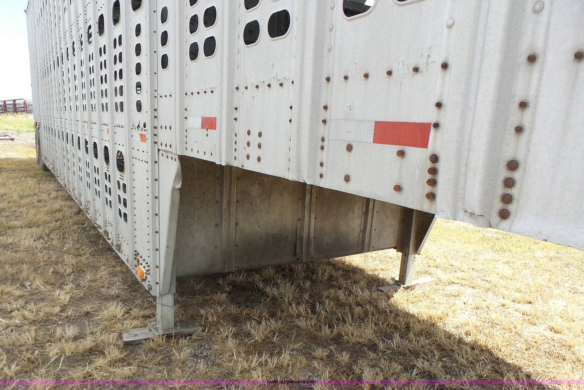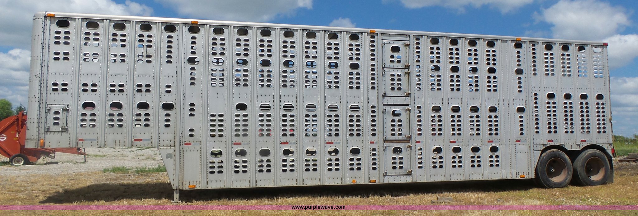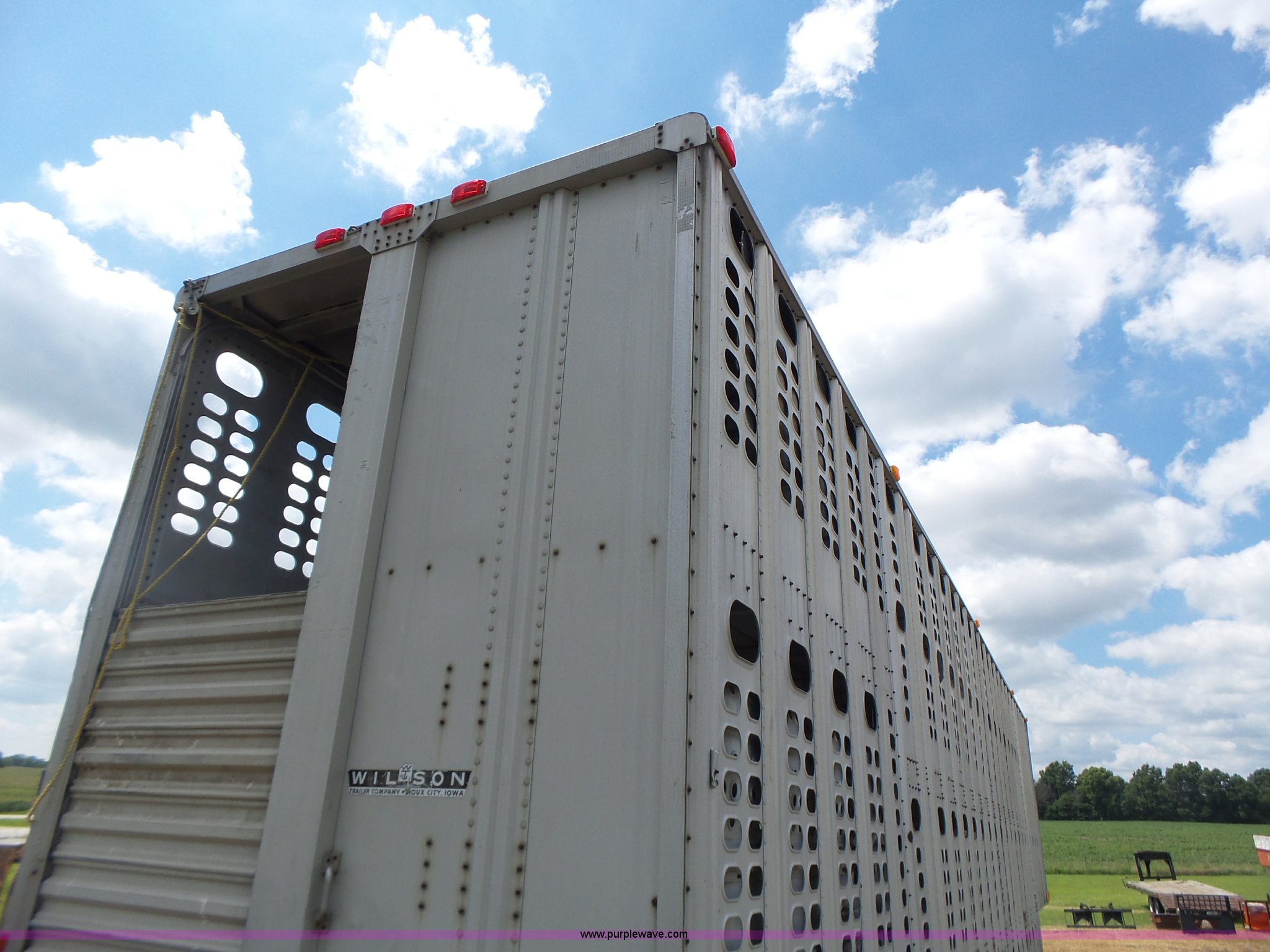 Purple Wave is selling a used Livestock Trailer in Missouri. This item is a 1986 Wilson PSDCL-208 livestock trailer with the following: 48'L x 8'W, Two decks, (2) center gates, Rear roll up gate, Side door, Dock bumper, Fifth wheel plate, Dual leg landing gear, Air brakes, Steel wheels, 11R24.5 tires