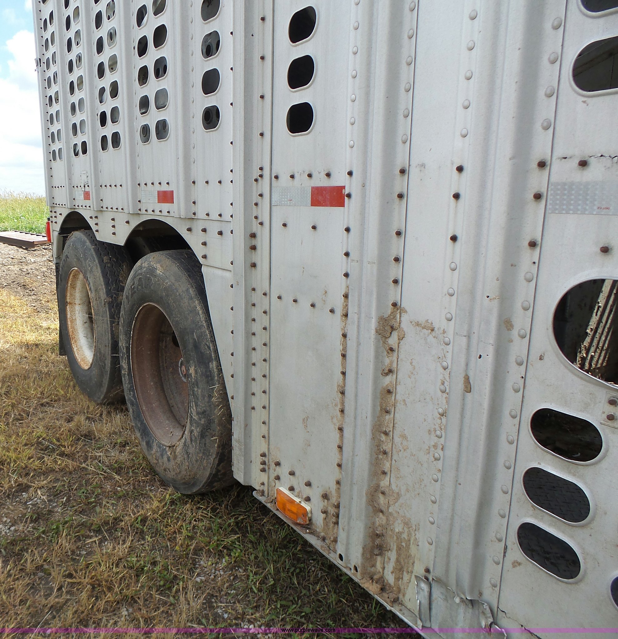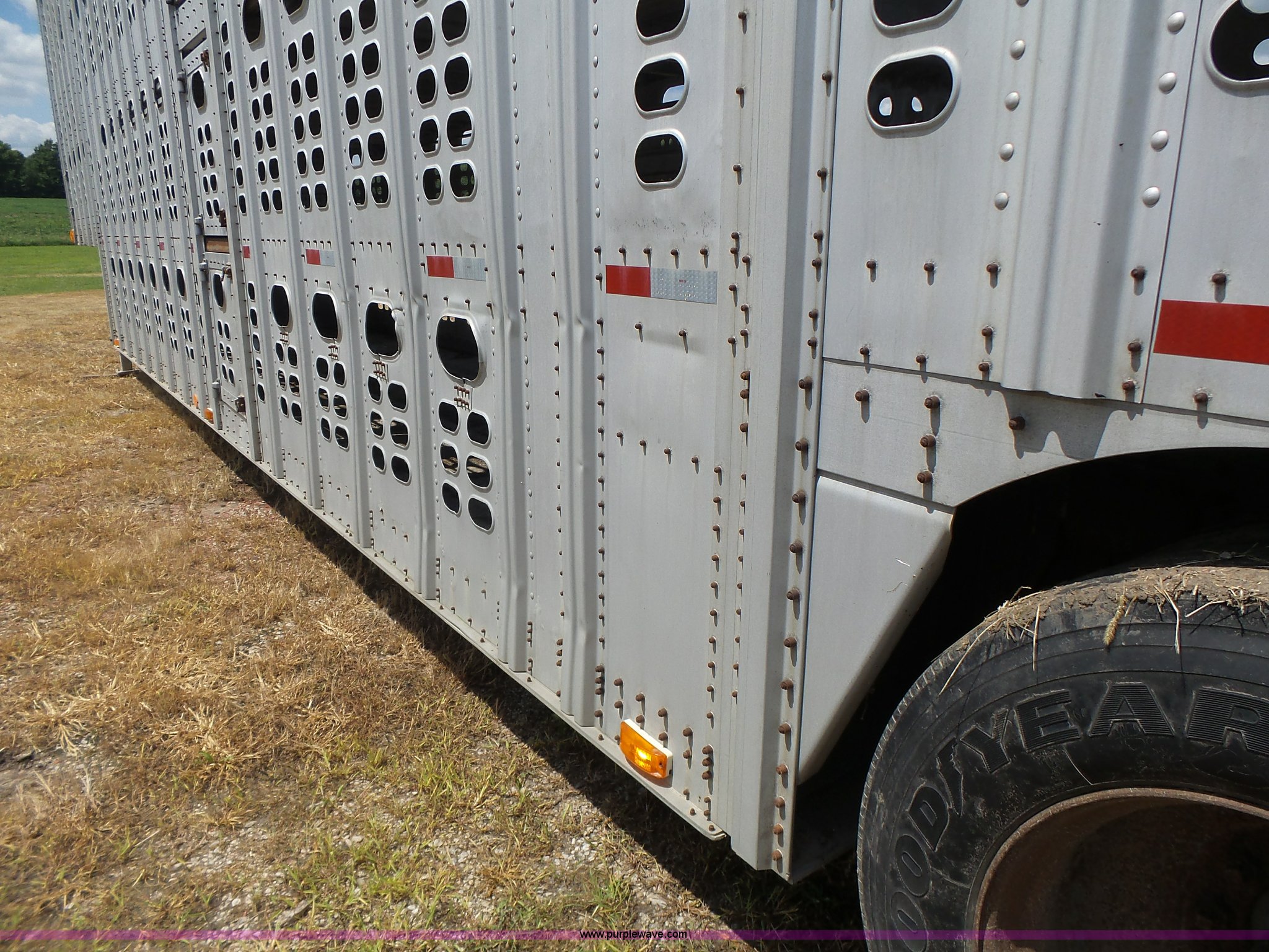 1986 Wilson PSDCL-208 livestock trailer. 48'L x 8'W, Two decks, (2) center gates, Rear roll up gate, Side door, Dock bumper, Fifth wheel plate, Dual leg landing gear, Air brakes, Steel wheels, 11R24.5 tires. Missouri title. Seller is a Missouri licensed motor vehicle dealer. Title will be assigned and distributed by the dealer. Please contact the seller for distribution questions. 1W15JS629G5510308. 305 Pleasant St. Laclede, MO 64651