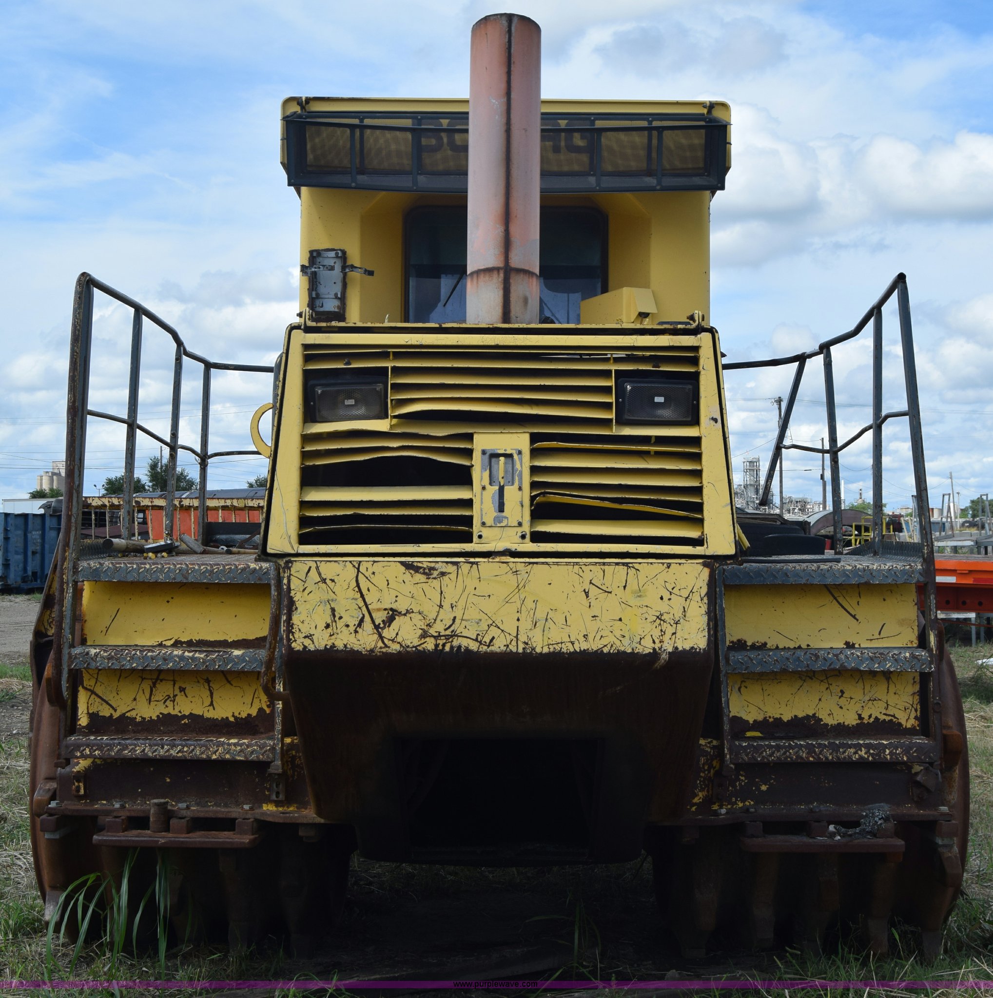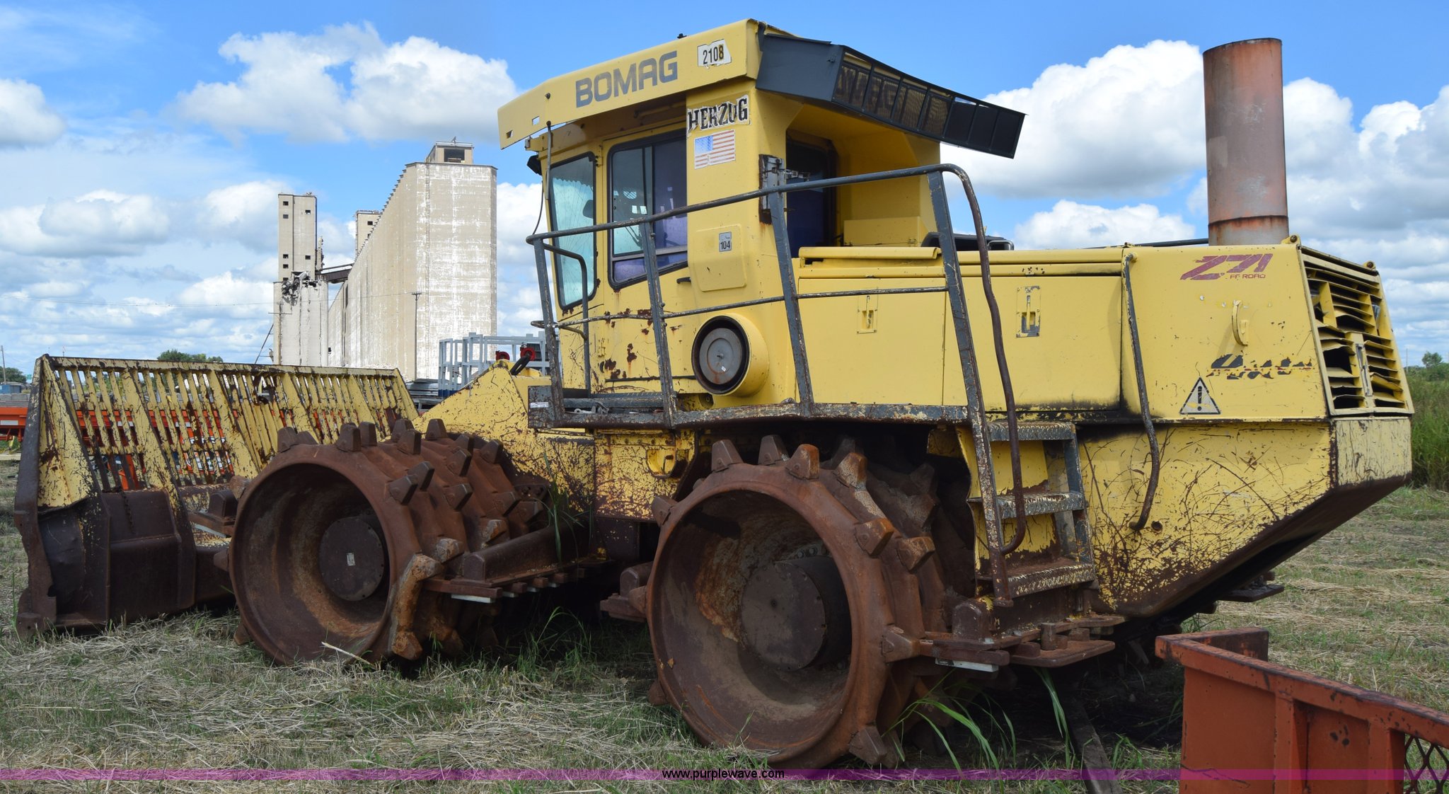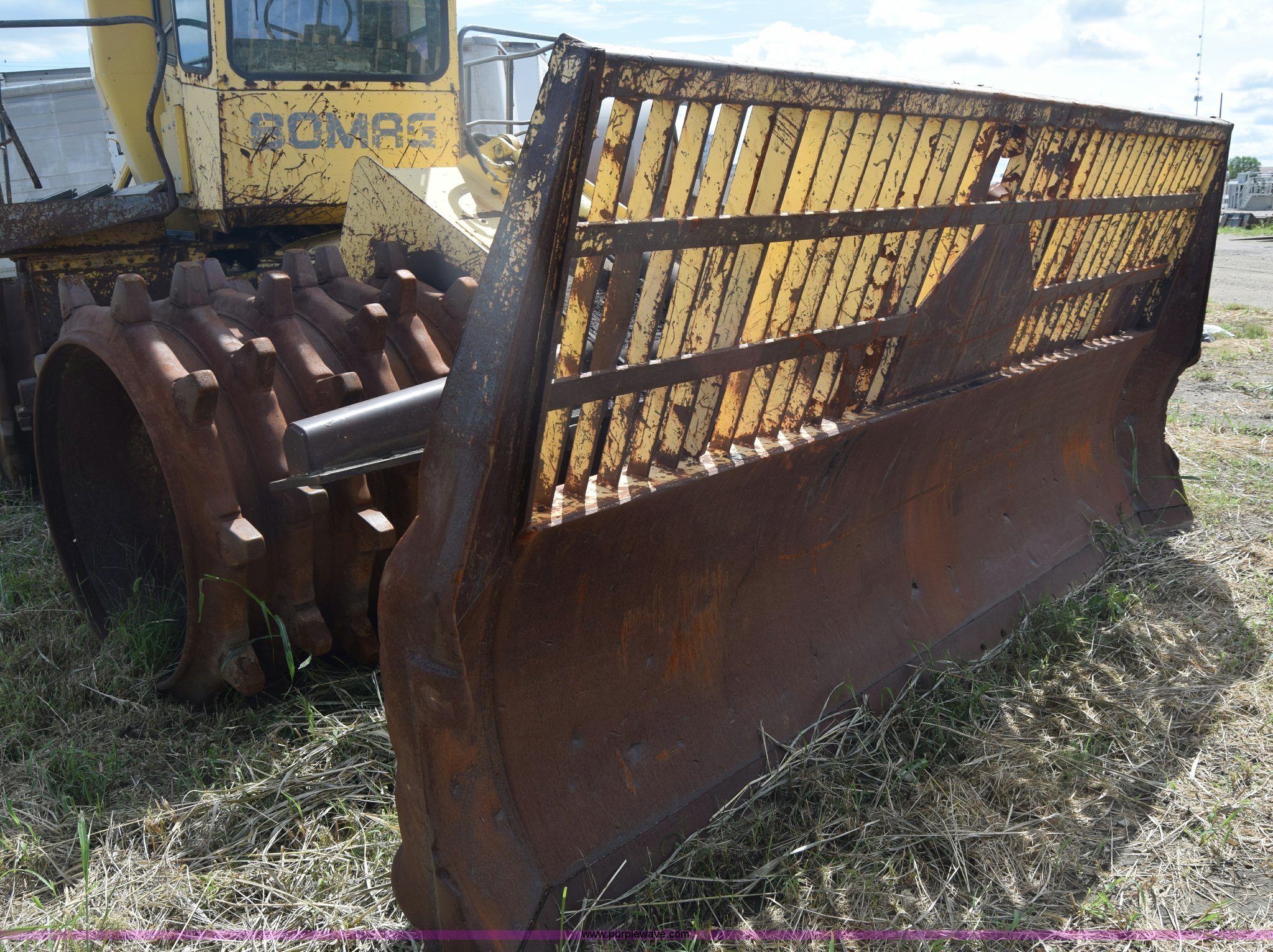 Purple Wave is selling a used Soil or Landfill Compactor in Kansas. This item is a Bomag landfill compactor with the following: 14,462 hours on meter, Cummins M11 six cylinder diesel engine, Hydrostatic transmission, Enclosed cab, Lights, Wipers, 12'W blade, 4'W x 4' diameter wheel compactors, Non-operational unit
