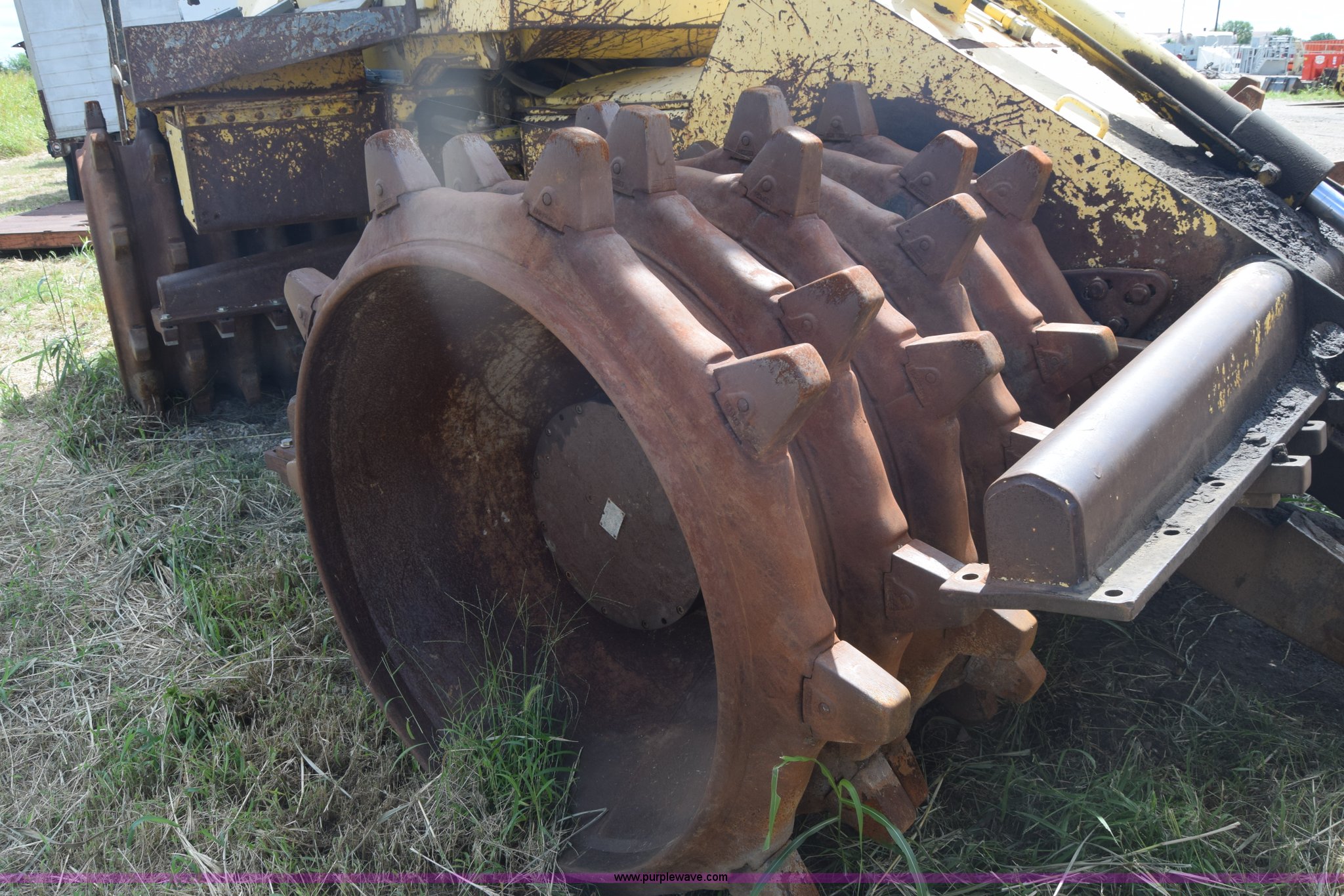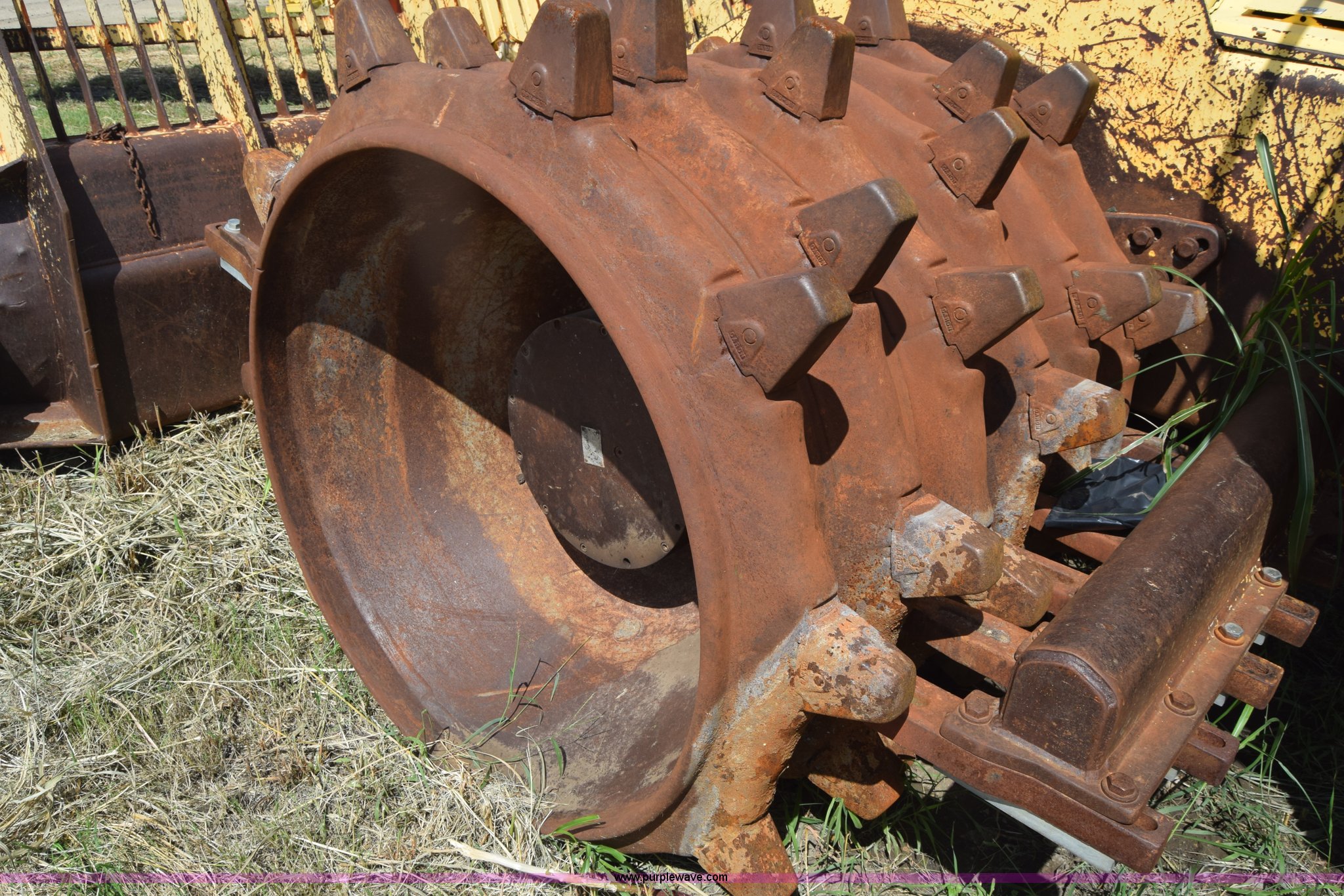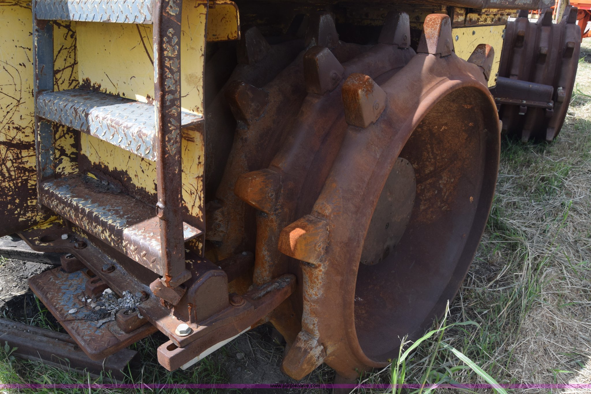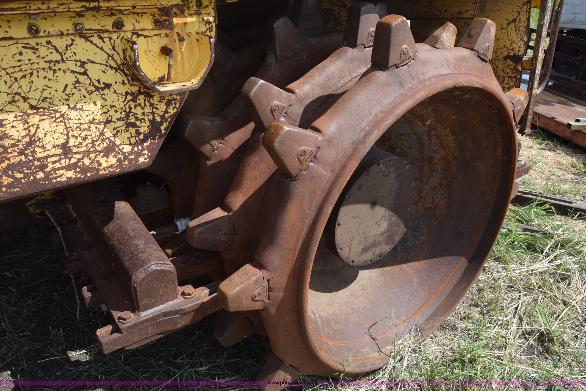 Purple Wave is selling a used Soil or Landfill Compactor in Kansas. This item is a Bomag landfill compactor with the following: 14,462 hours on meter, Cummins M11 six cylinder diesel engine, Hydrostatic transmission, Enclosed cab, Lights, Wipers, 12'W blade, 4'W x 4' diameter wheel compactors, Non-operational unit